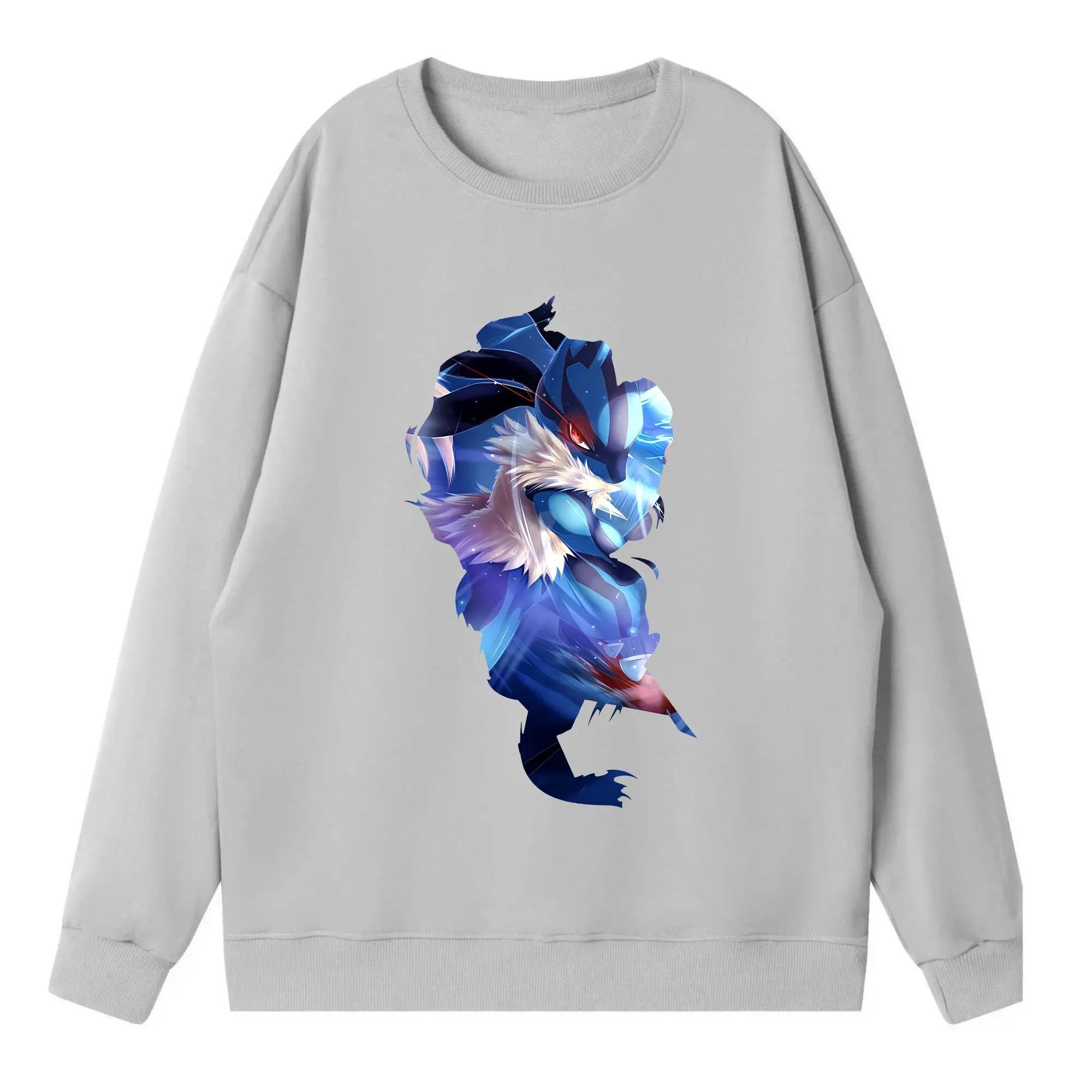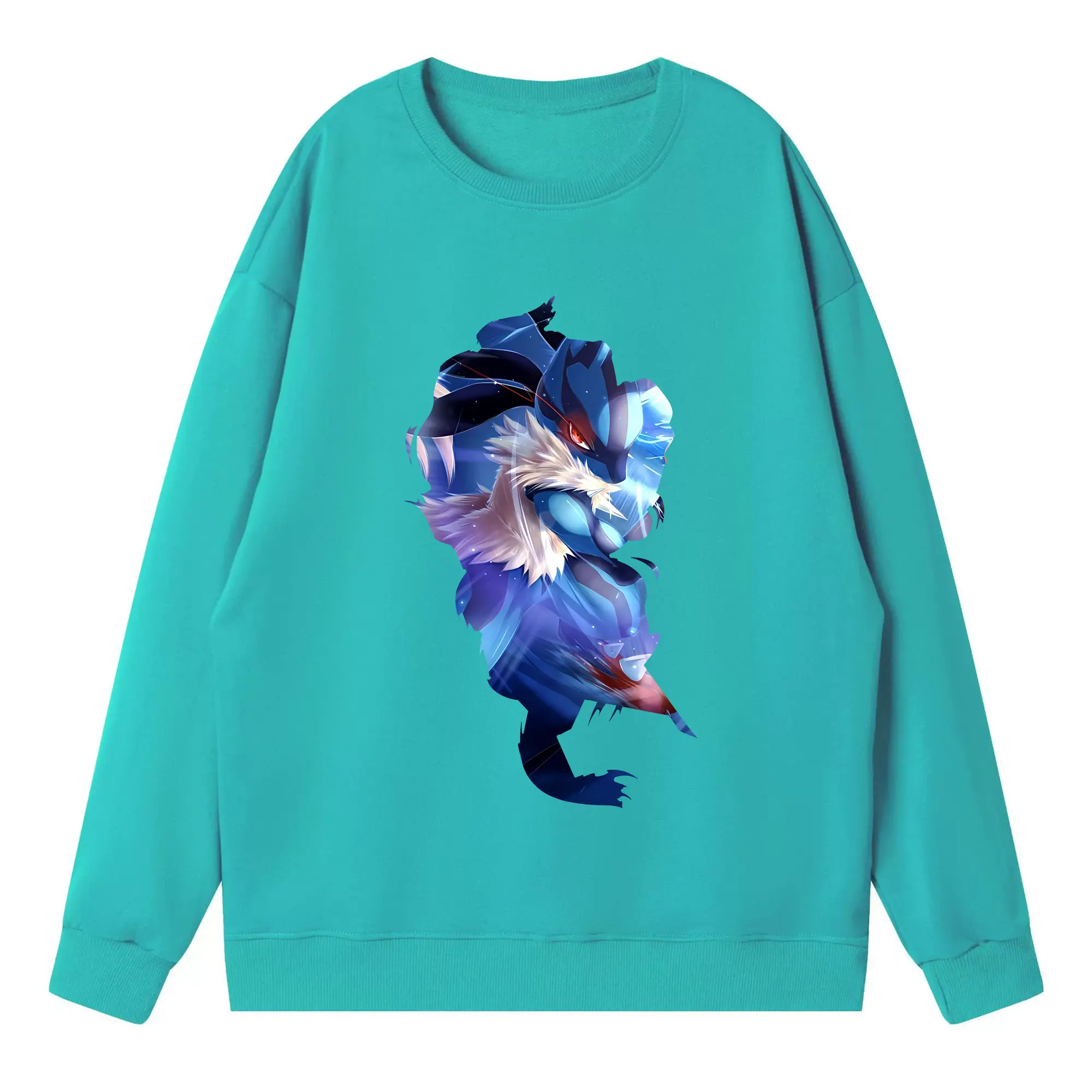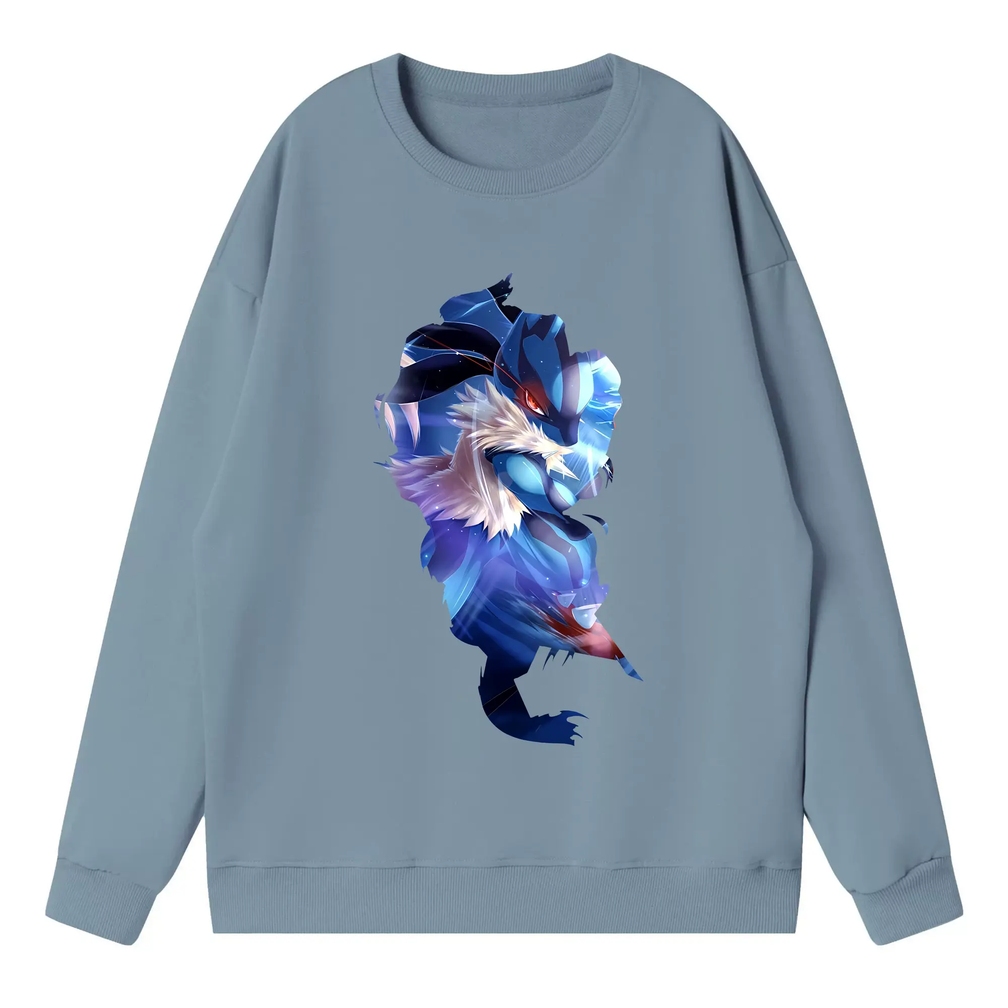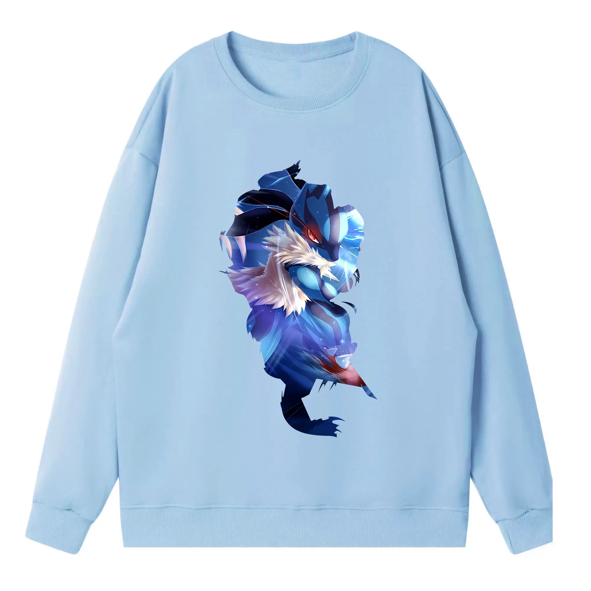 ポケモン グッズ,ルカリオ - 薄手 クルーネック スウェット 裏毛260g · ポリエステル 春秋向け カジュアル 男女兼用 · トレーナー デイリー スポーツ 散歩に最適