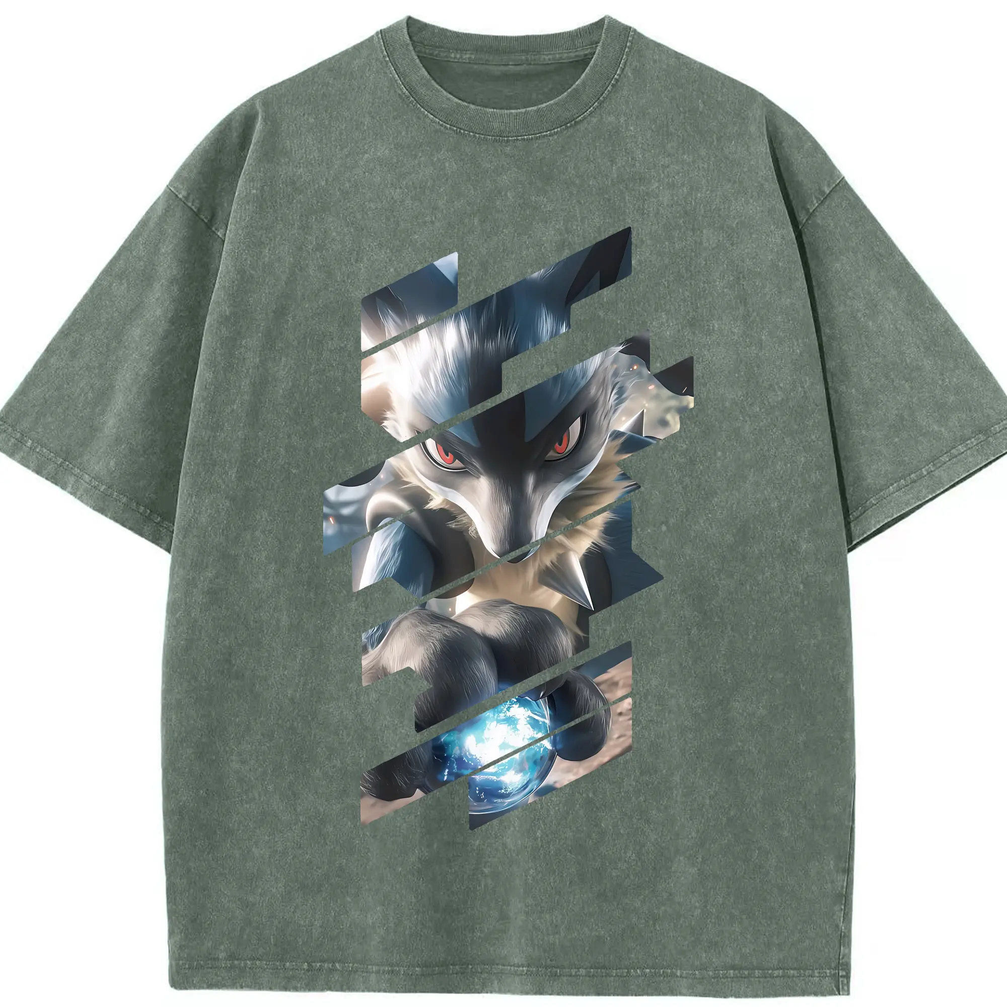 ポケモン グッズ,ルカリオ - 綿100% ヴィンテージ風 半袖Tシャツ ・ 背面プリント ・ 柔らか肌触り ・ 通気性 快適 ・ スポーツ カジュアル 外出用