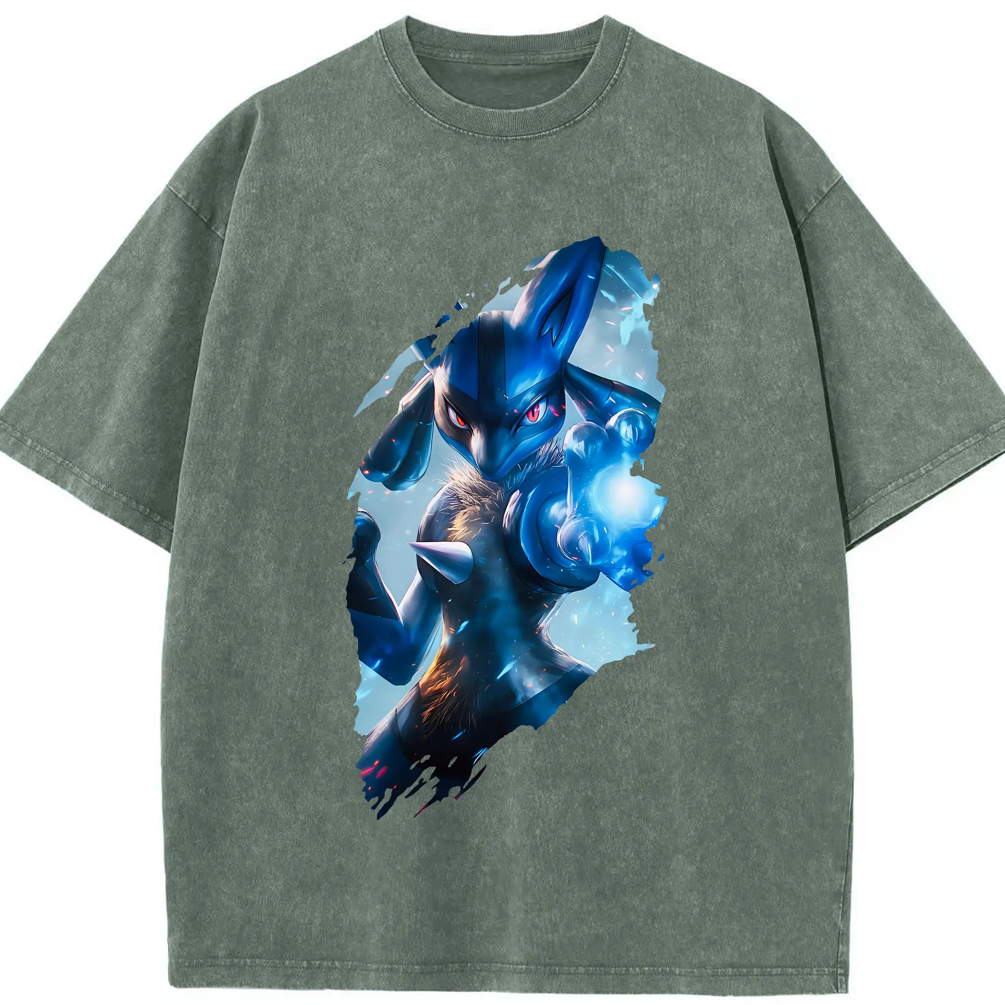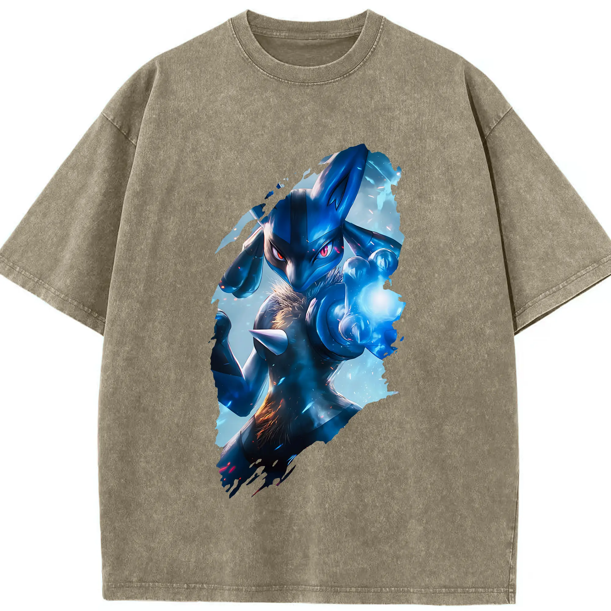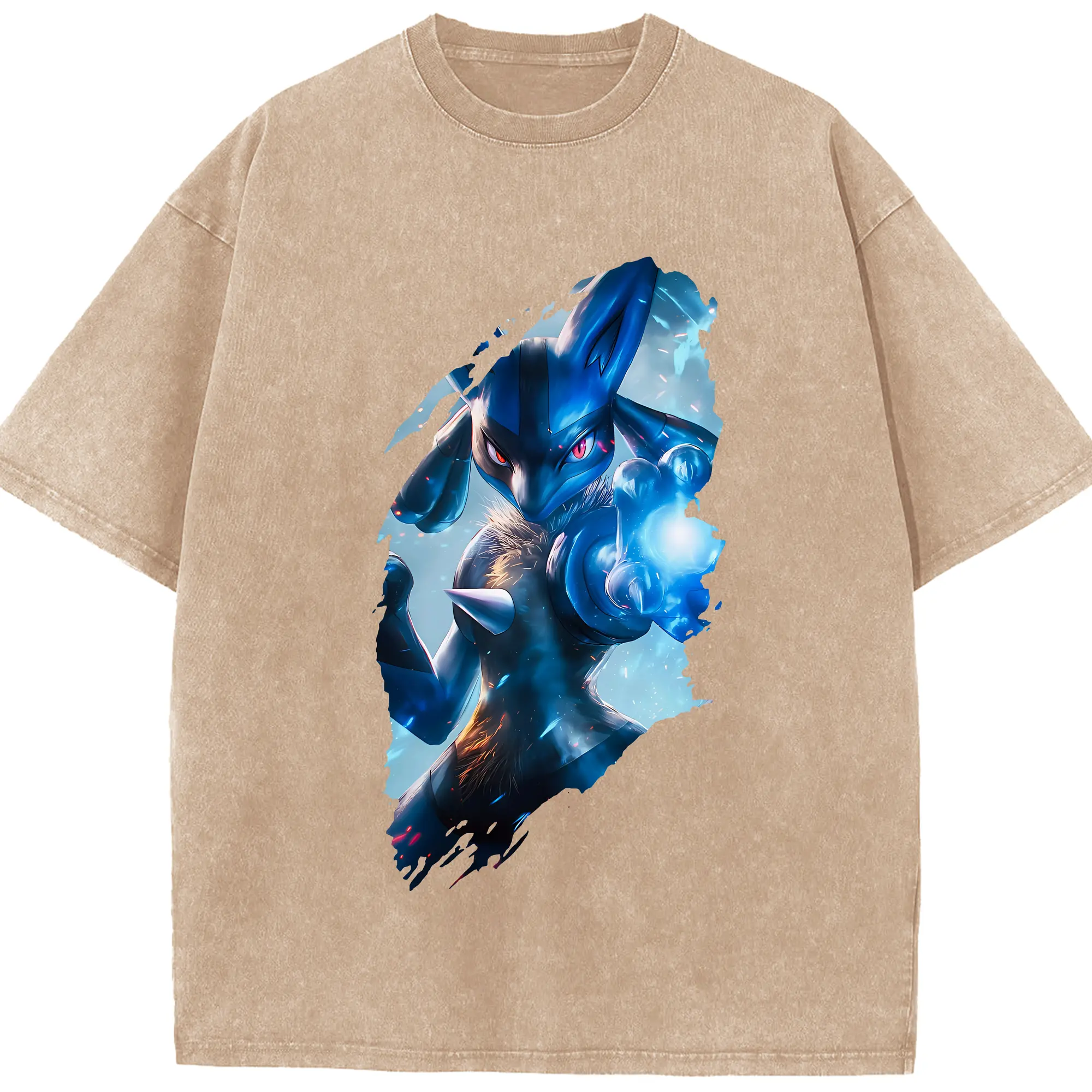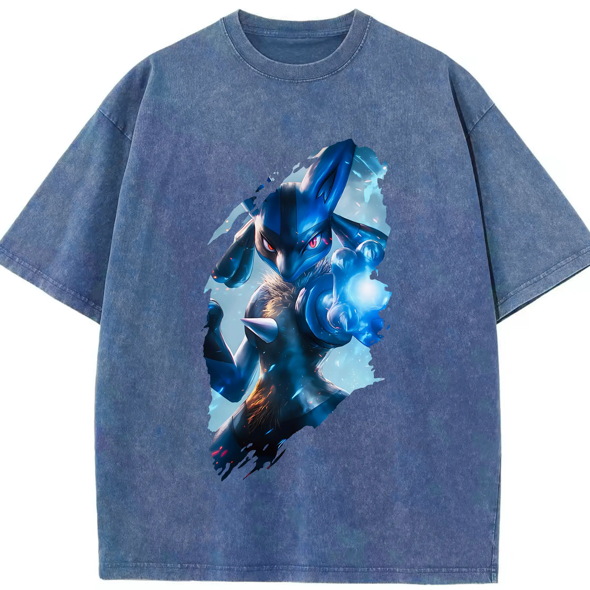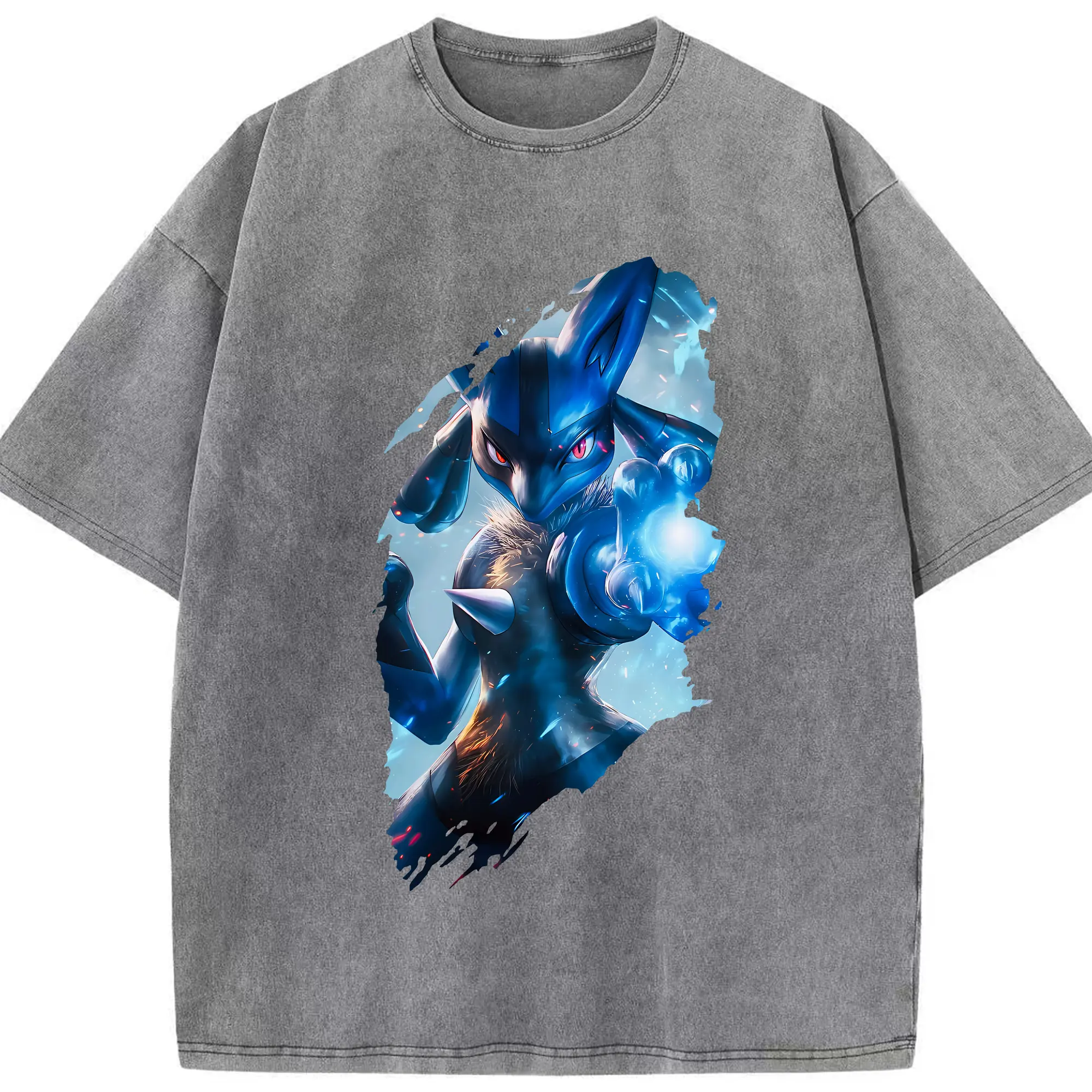 ポケモン グッズ,ルカリオ - 綿100% ヴィンテージ風 半袖Tシャツ ・ 背面プリント ・ 柔らか肌触り ・ 通気性 快適 ・ スポーツ カジュアル 外出用