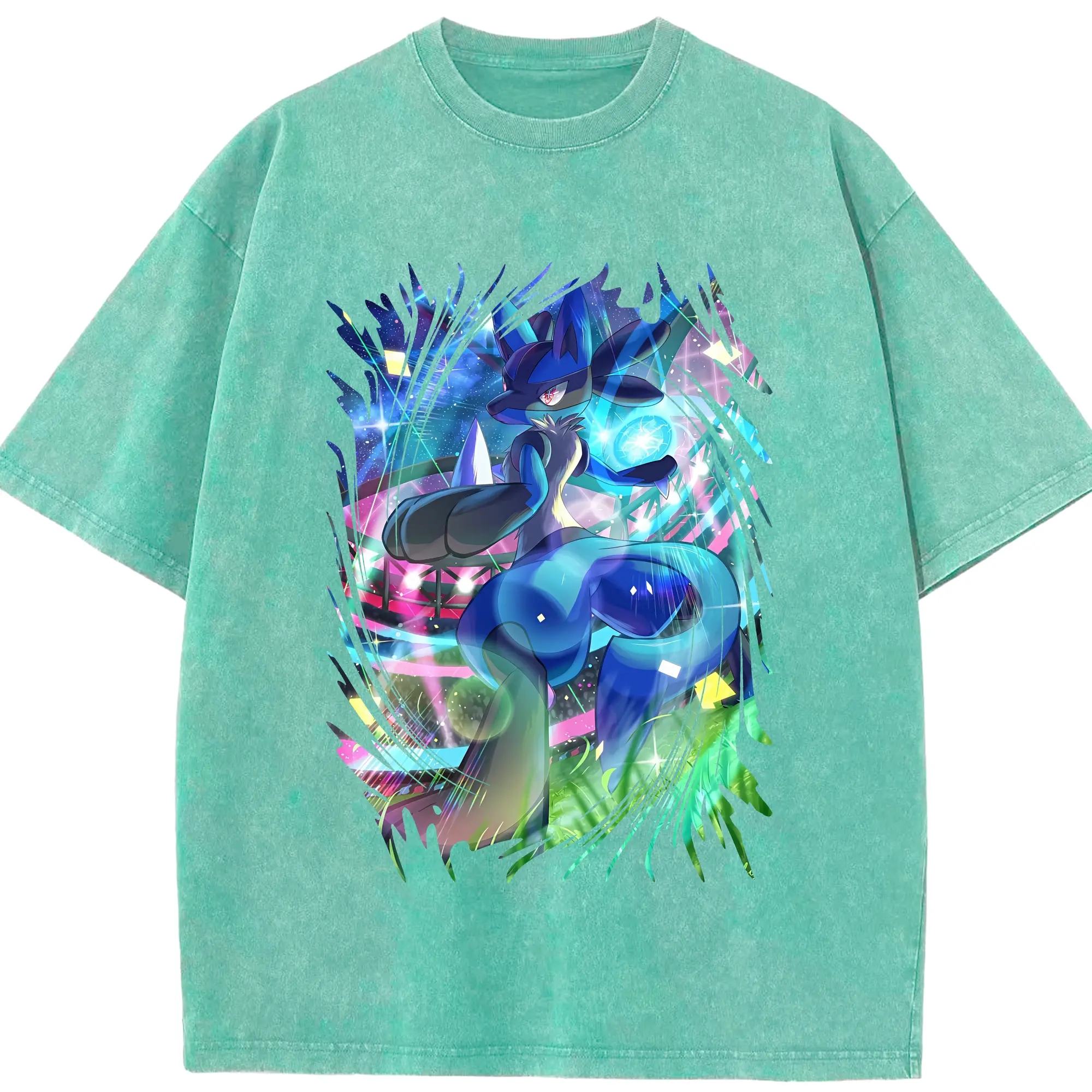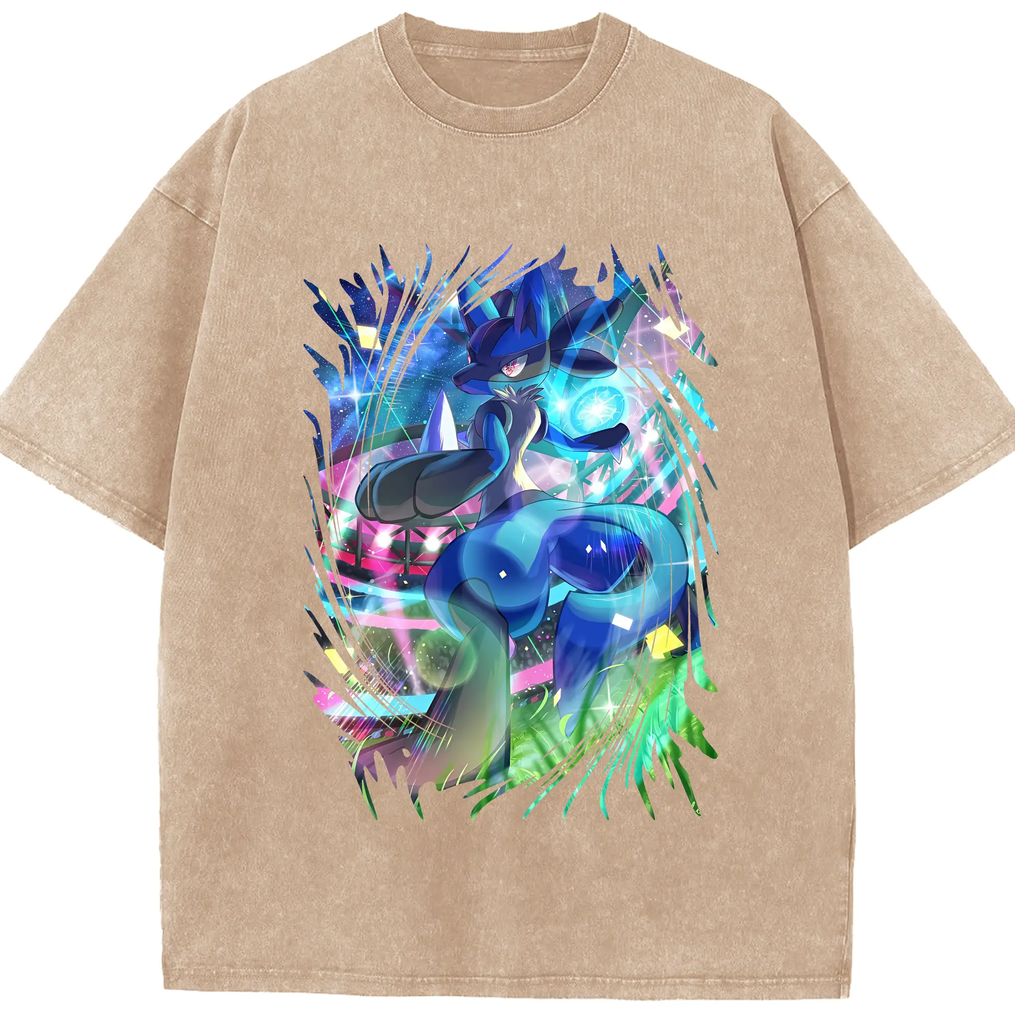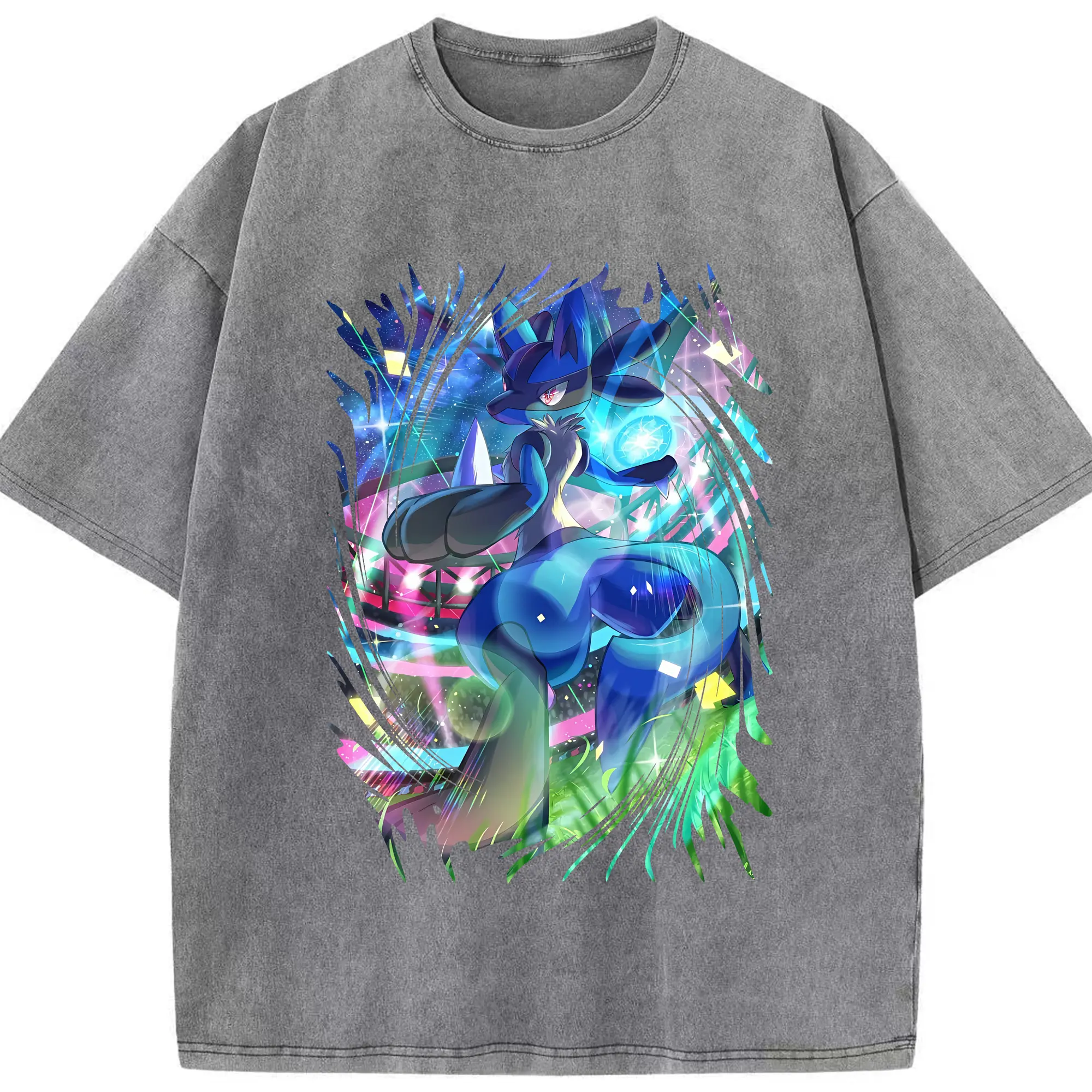 ポケモン グッズ,ルカリオ - 綿100% ヴィンテージ風 半袖Tシャツ ・ 背面プリント ・ 柔らか肌触り ・ 通気性 快適 ・ スポーツ カジュアル 外出用