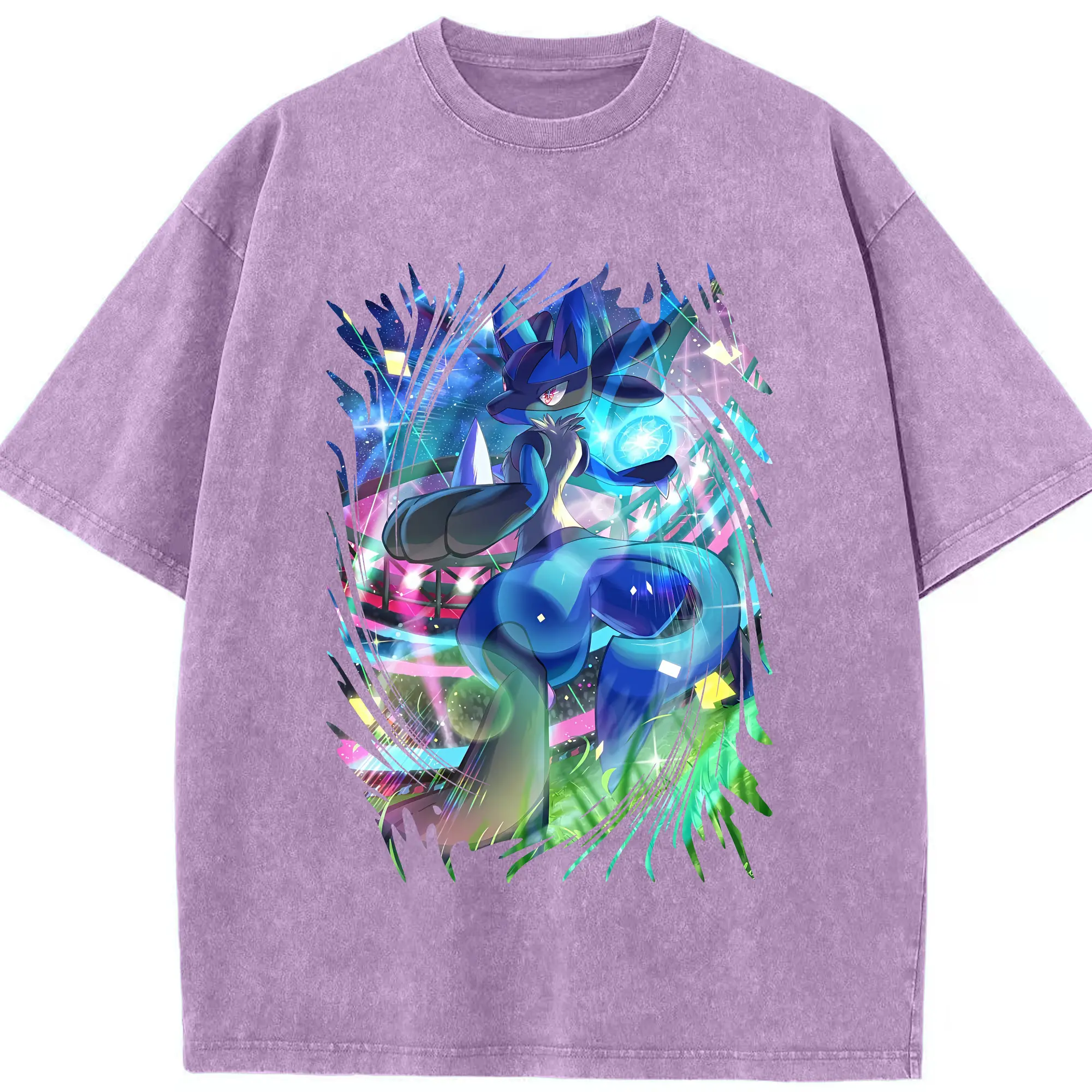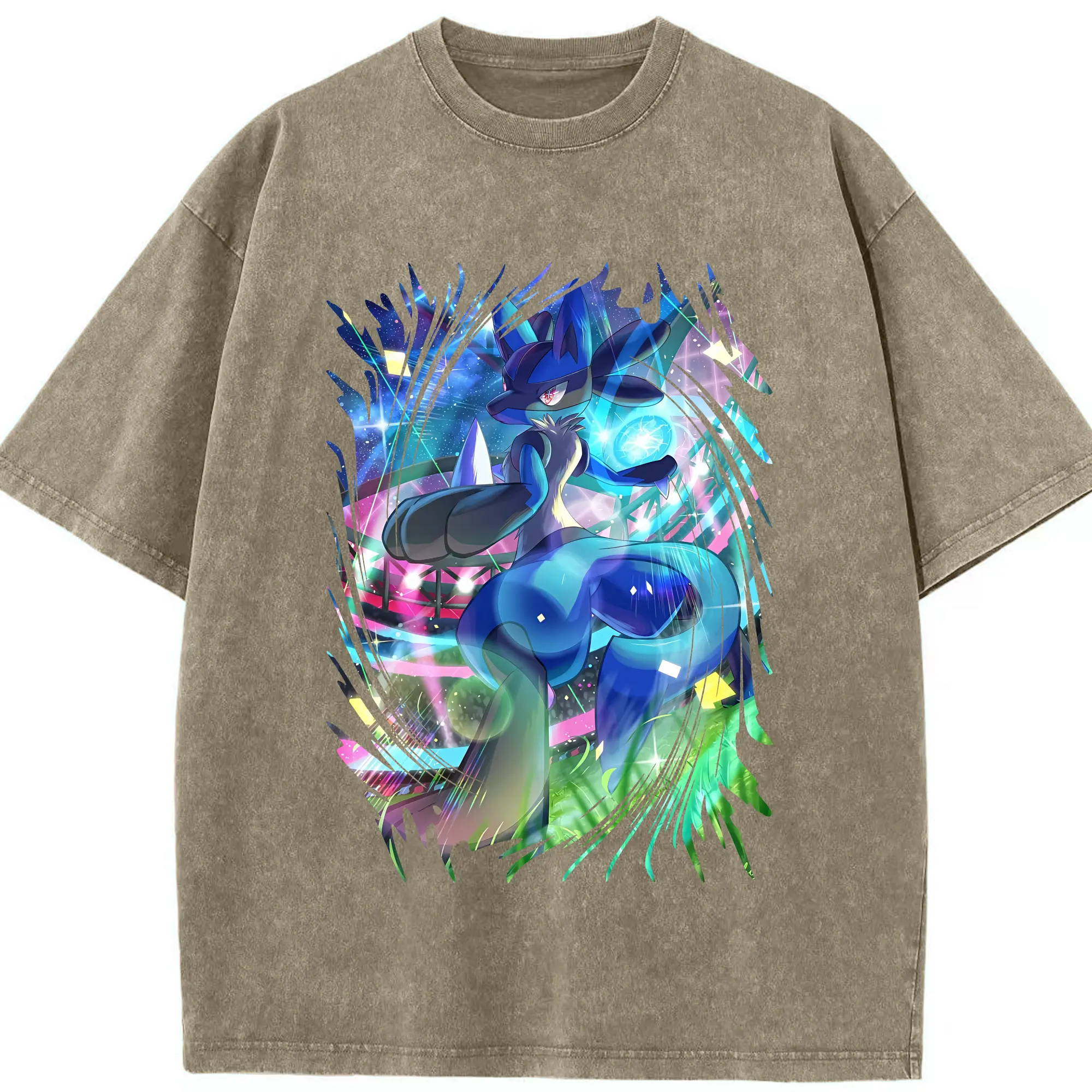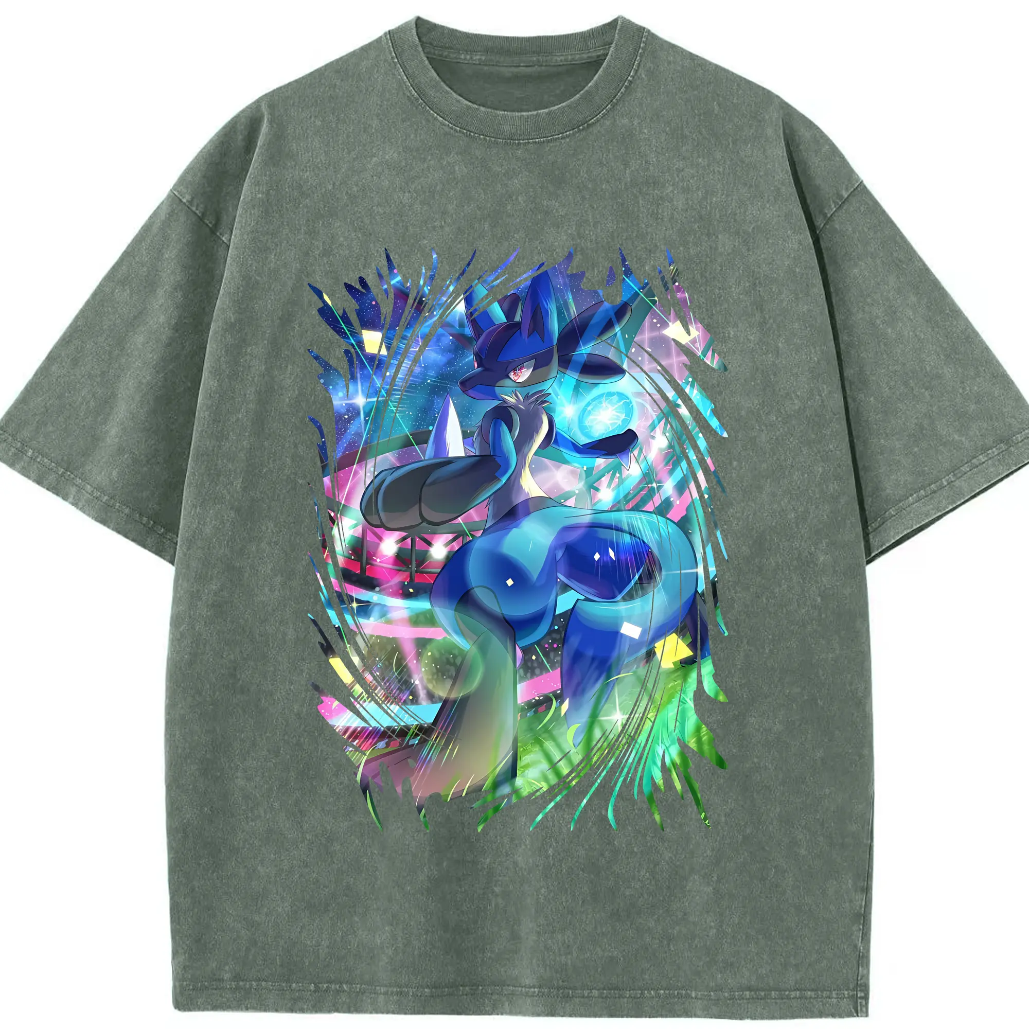ポケモン グッズ,ルカリオ - 綿100% ヴィンテージ風 半袖Tシャツ ・ 背面プリント ・ 柔らか肌触り ・ 通気性 快適 ・ スポーツ カジュアル 外出用