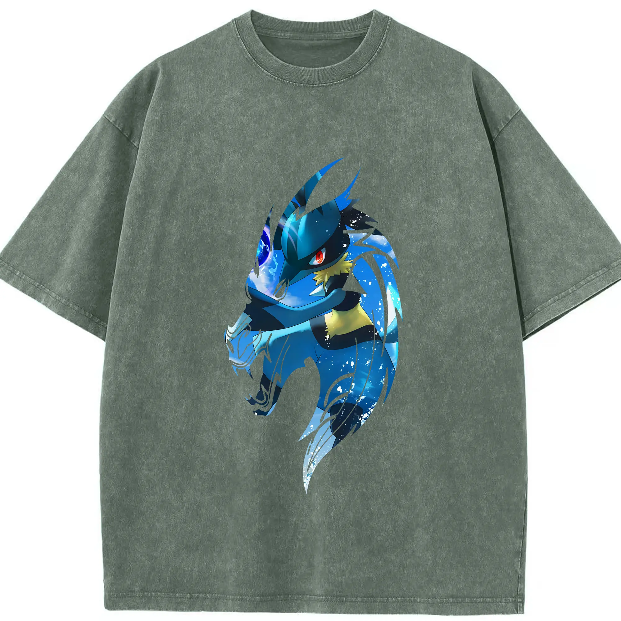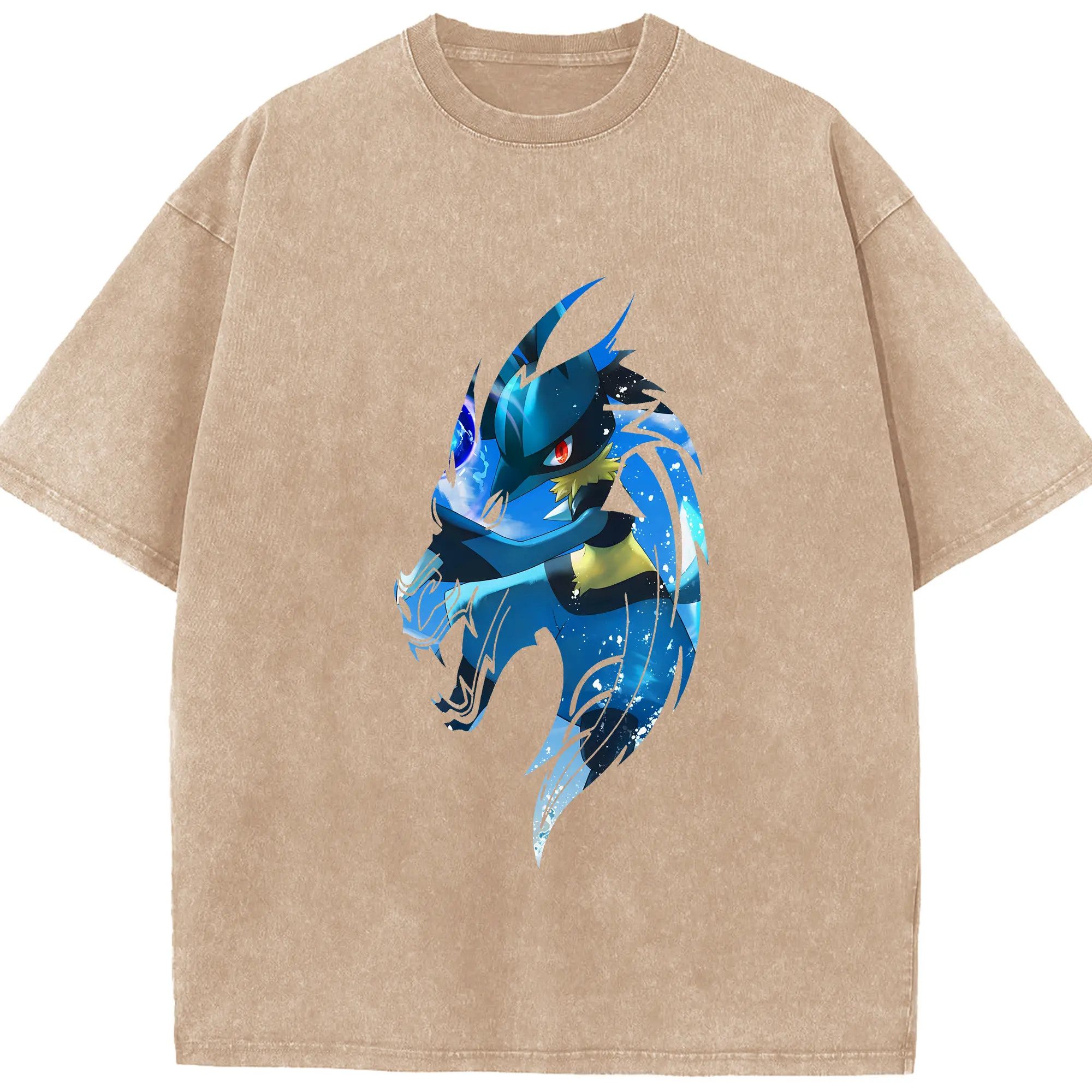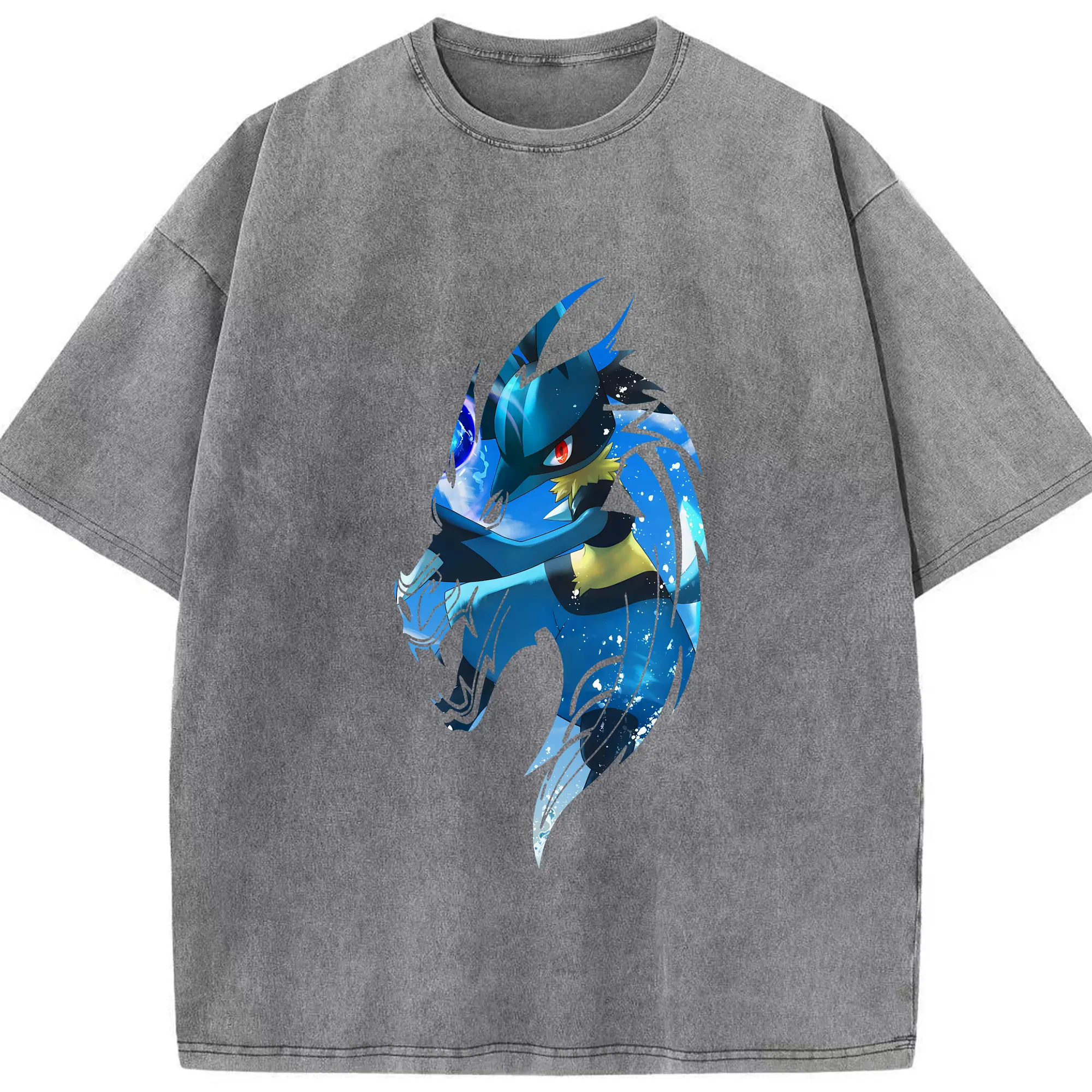ポケモン グッズ,ルカリオ - 綿100% ヴィンテージ風 半袖Tシャツ ・ 背面プリント ・ 柔らか肌触り ・ 通気性 快適 ・ スポーツ カジュアル 外出用