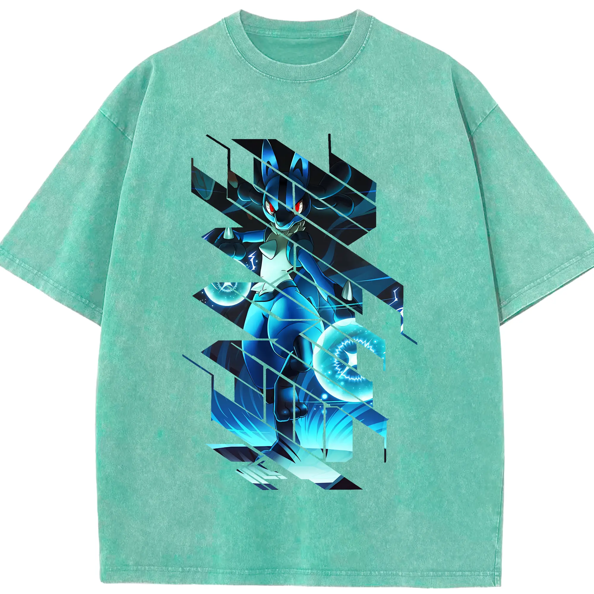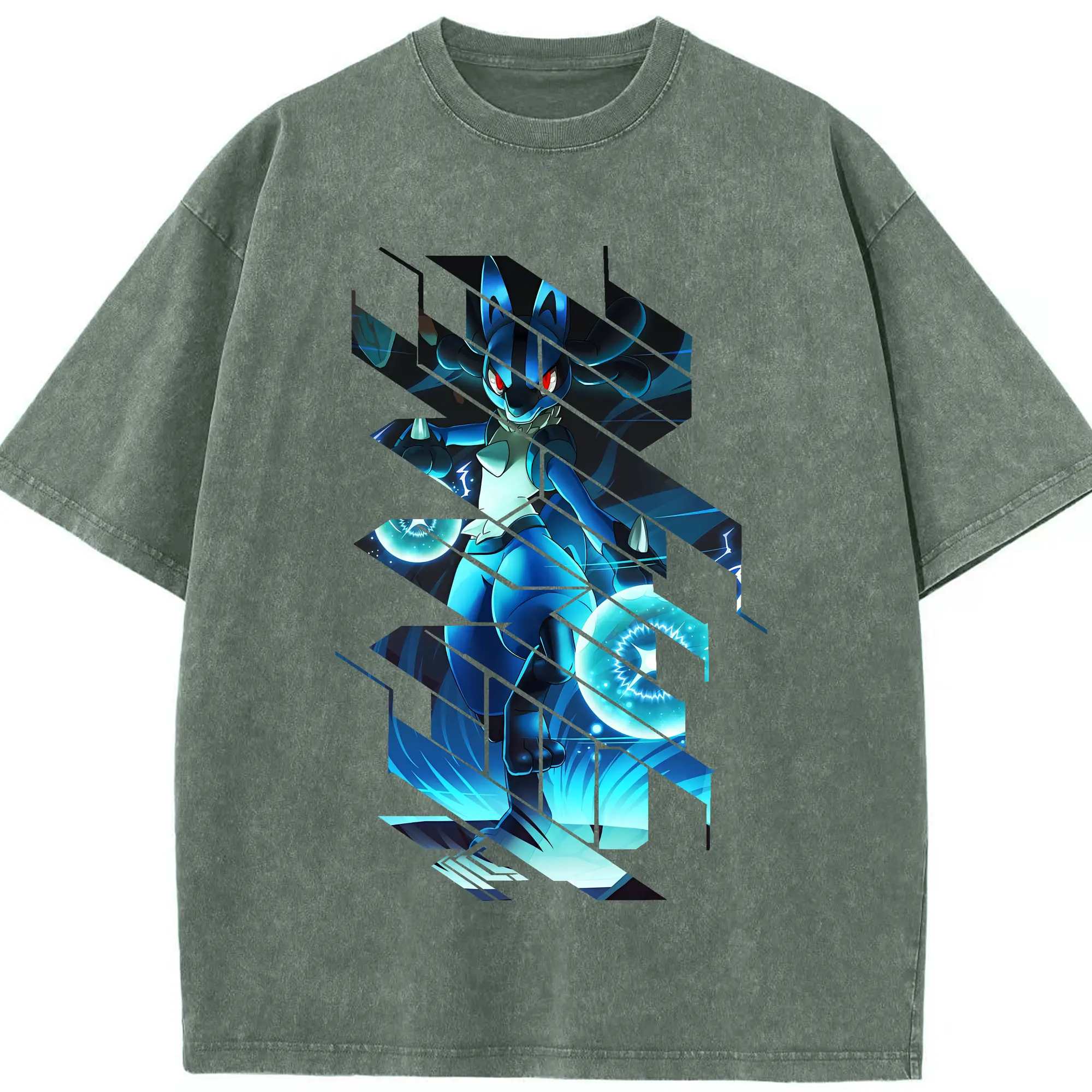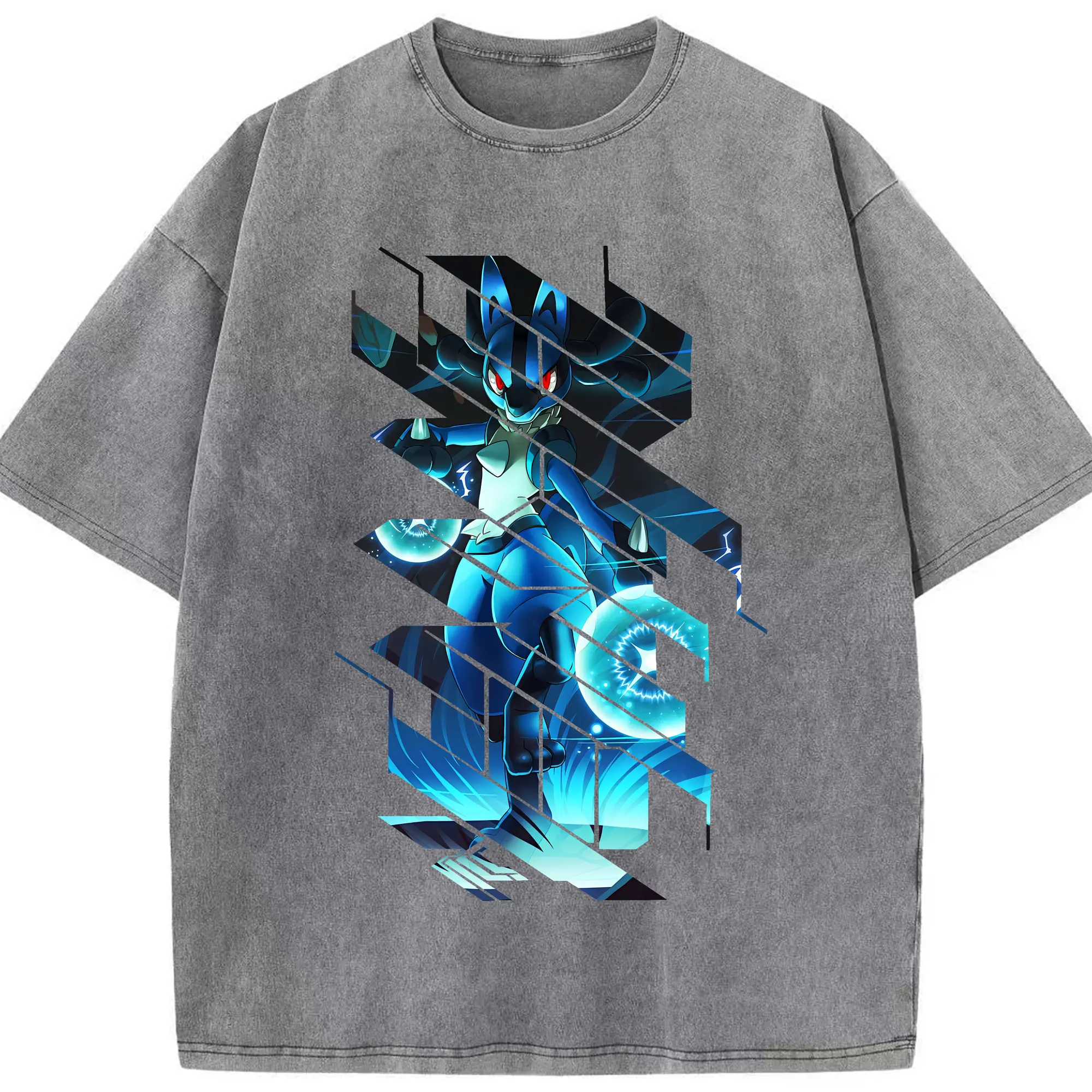 ポケモン グッズ,ルカリオ - 綿100% ヴィンテージ風 半袖Tシャツ ・ 背面プリント ・ 柔らか肌触り ・ 通気性 快適 ・ スポーツ カジュアル 外出用