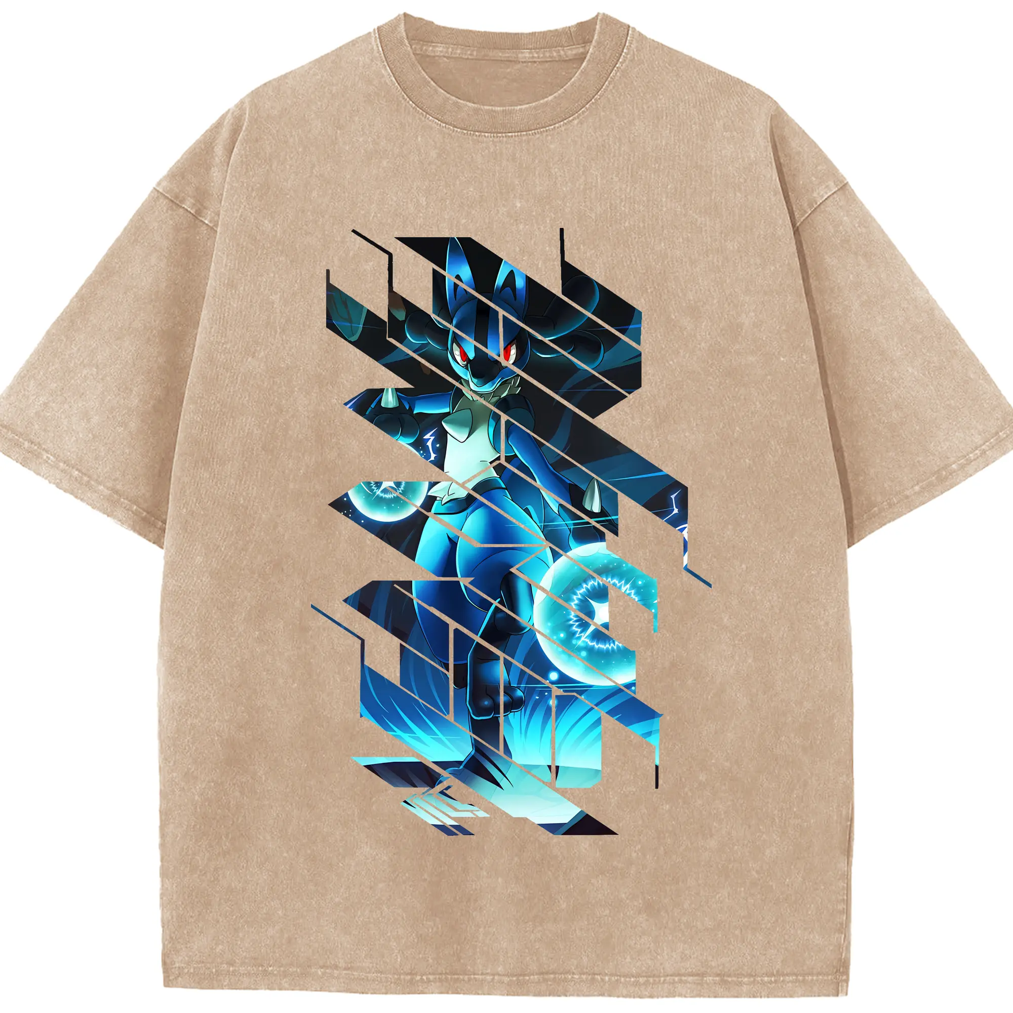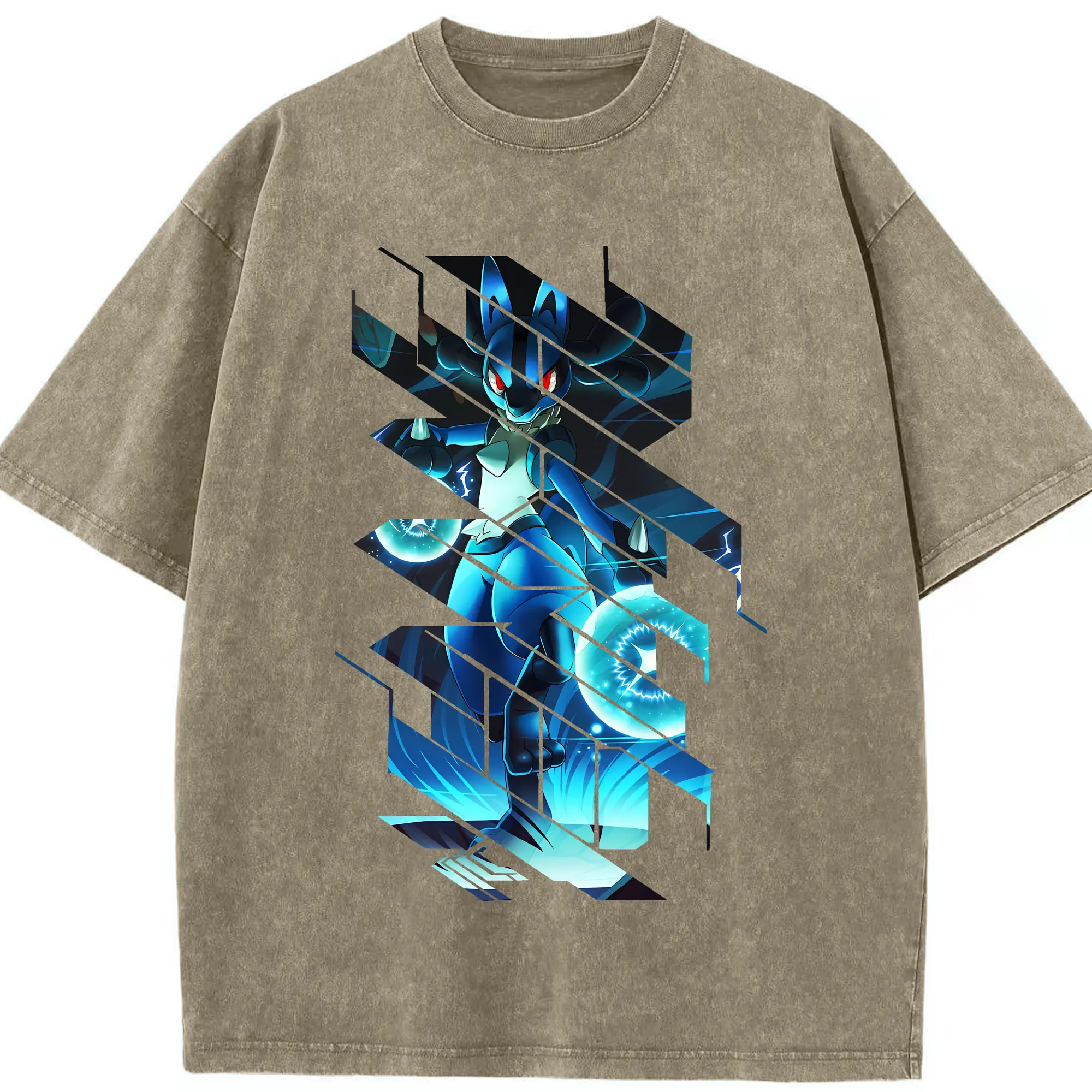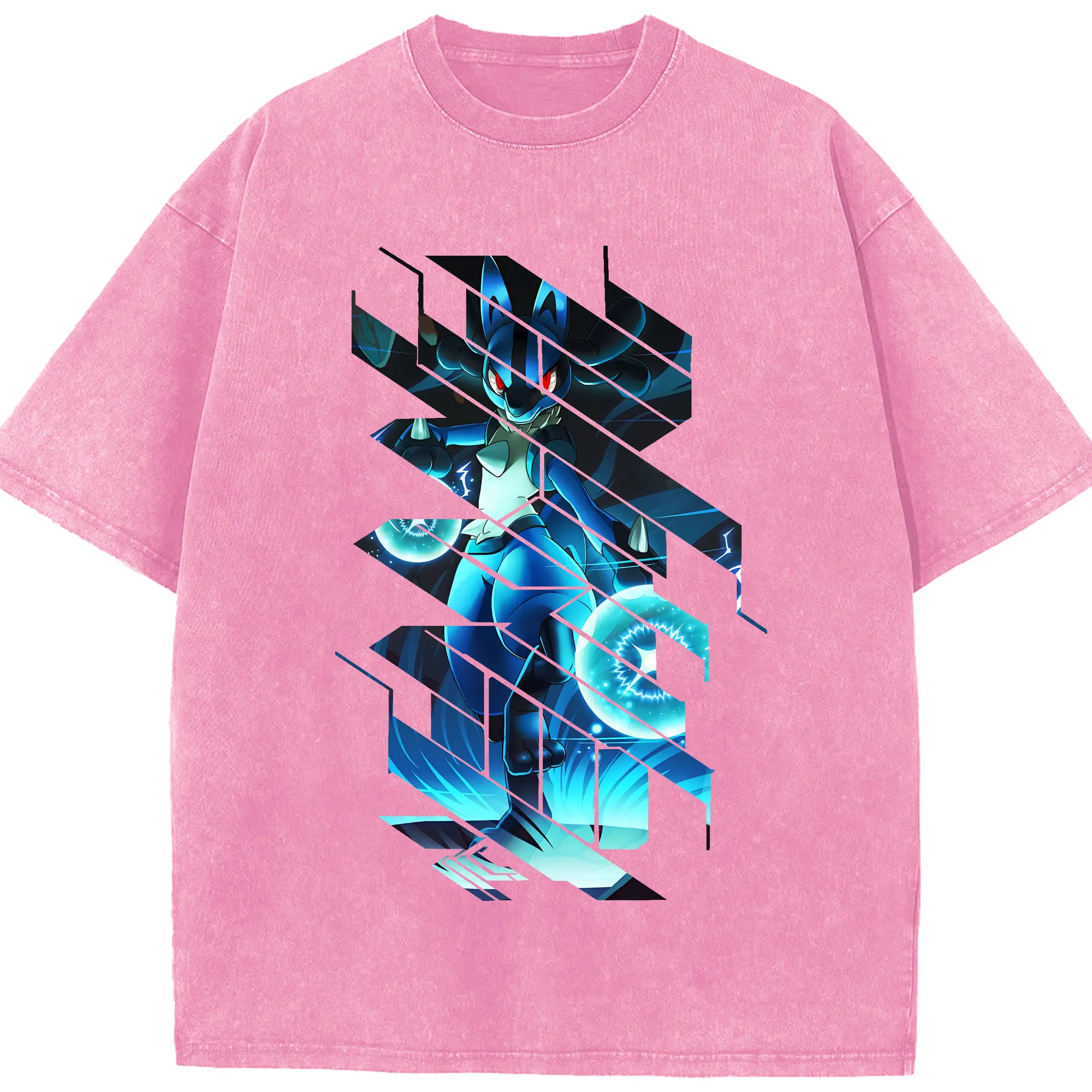 ポケモン グッズ,ルカリオ - 綿100% ヴィンテージ風 半袖Tシャツ ・ 背面プリント ・ 柔らか肌触り ・ 通気性 快適 ・ スポーツ カジュアル 外出用