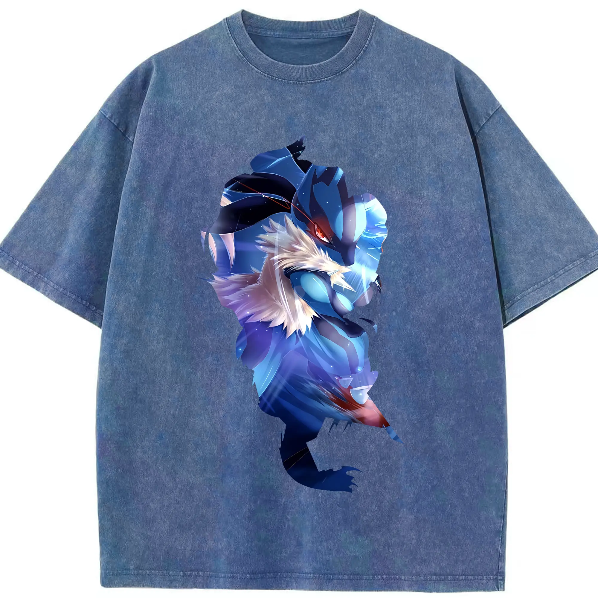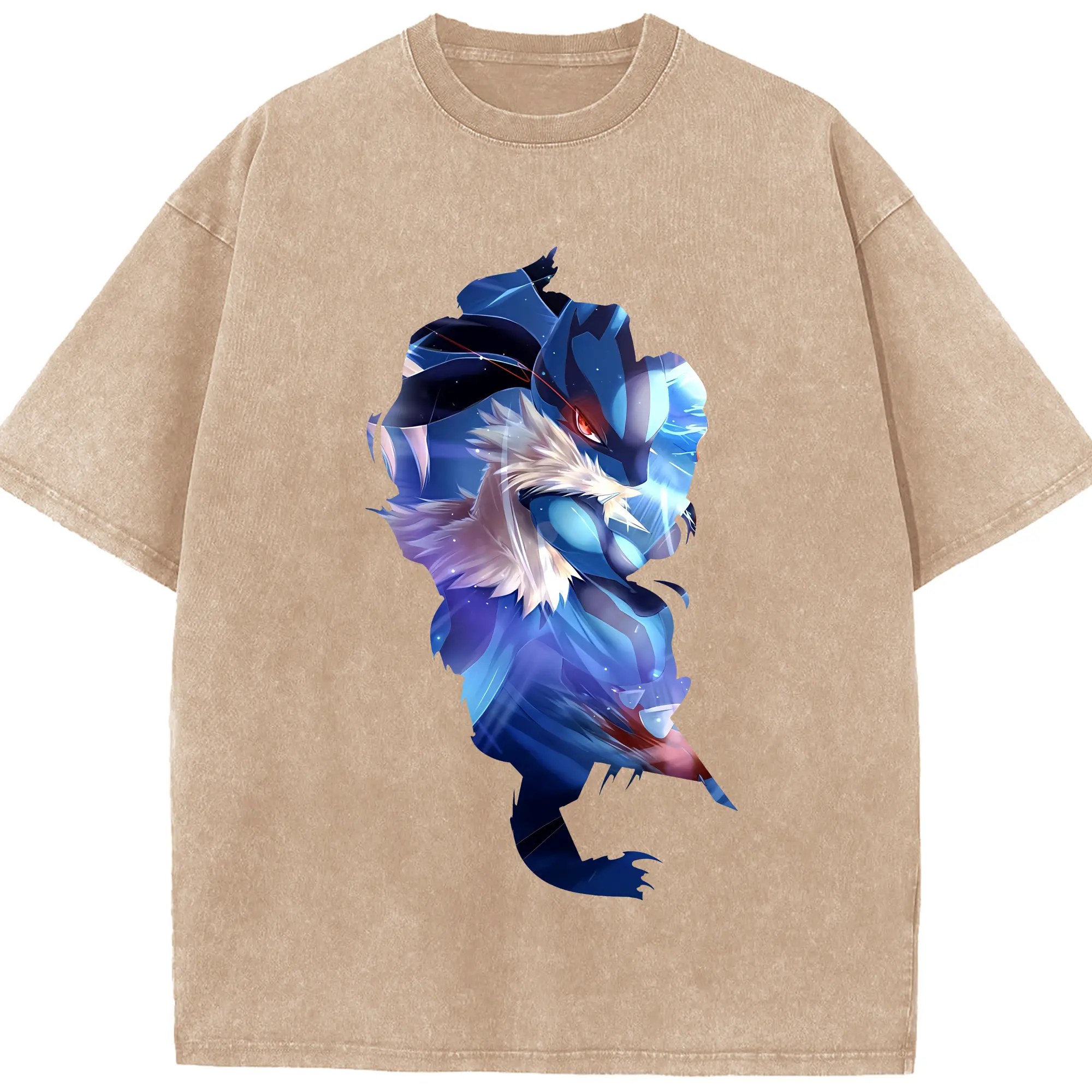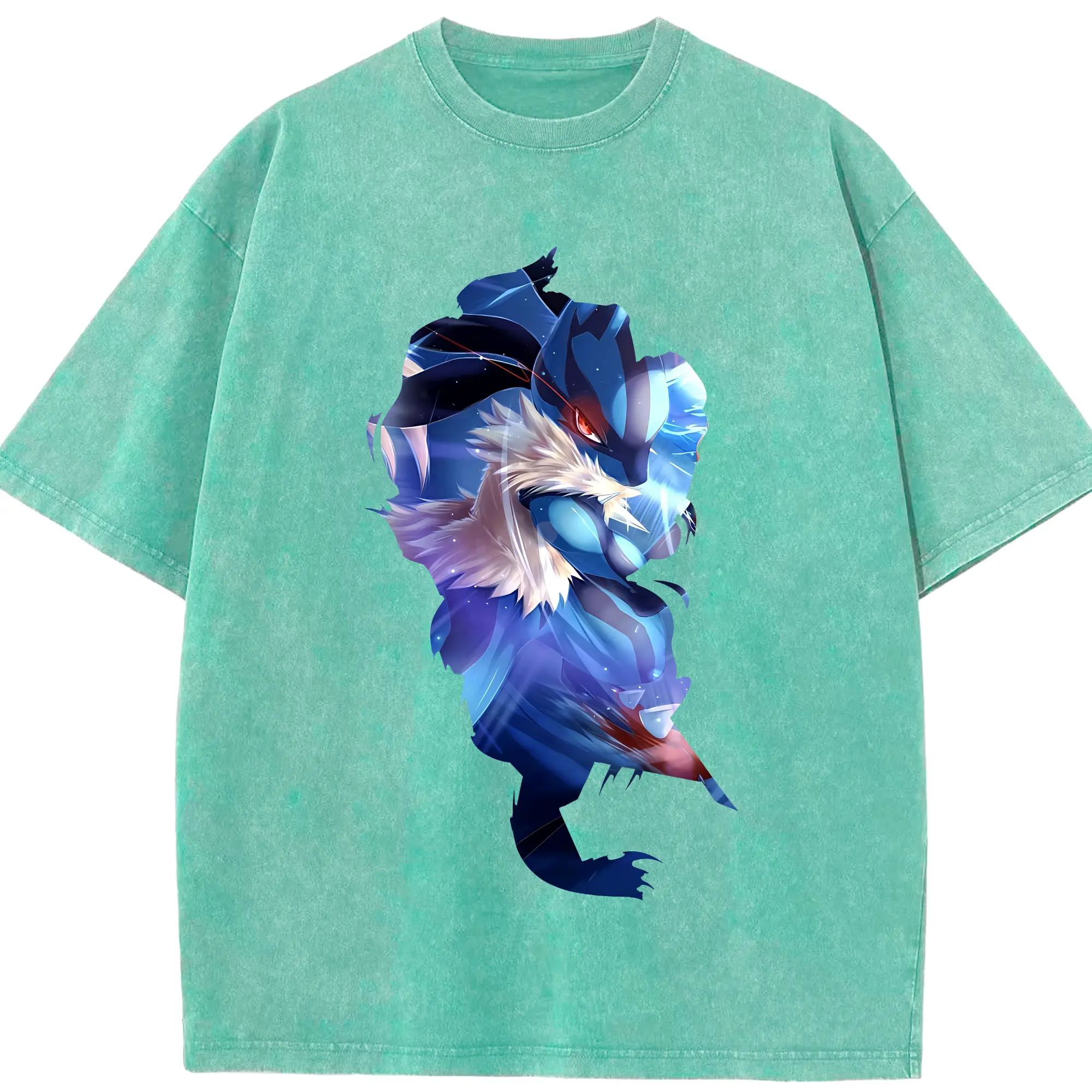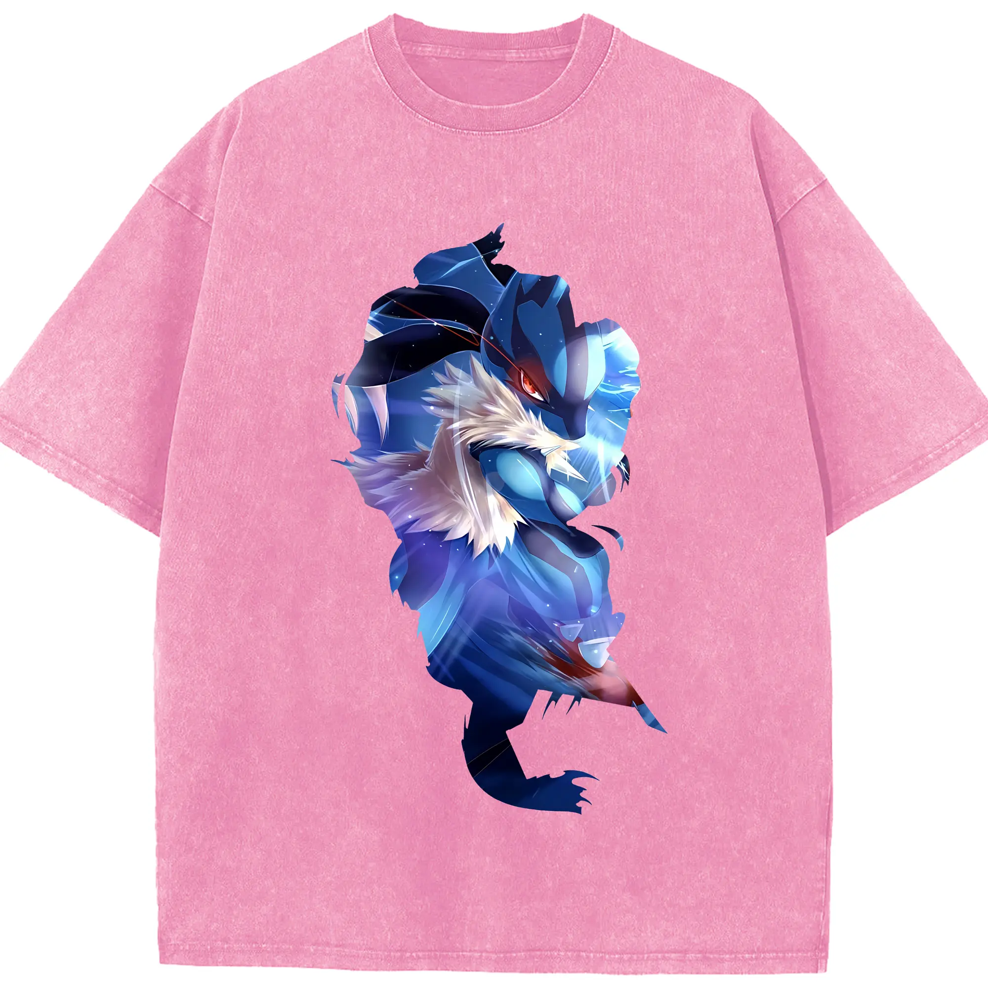 ポケモン グッズ,ルカリオ - 綿100% ヴィンテージ風 半袖Tシャツ ・ 背面プリント ・ 柔らか肌触り ・ 通気性 快適 ・ スポーツ カジュアル 外出用