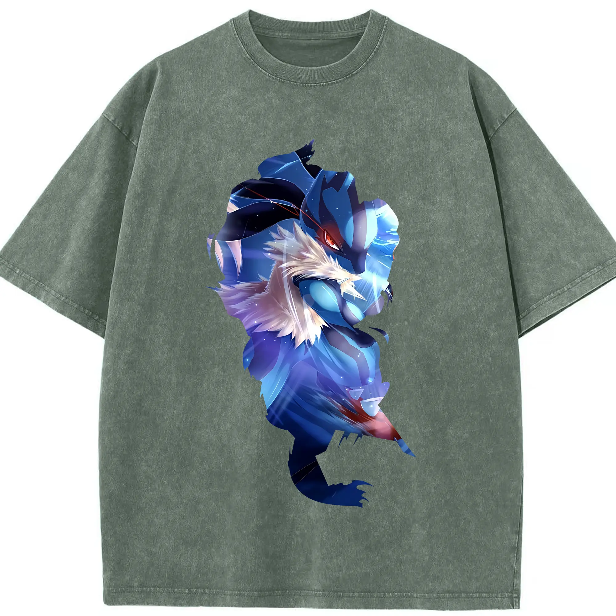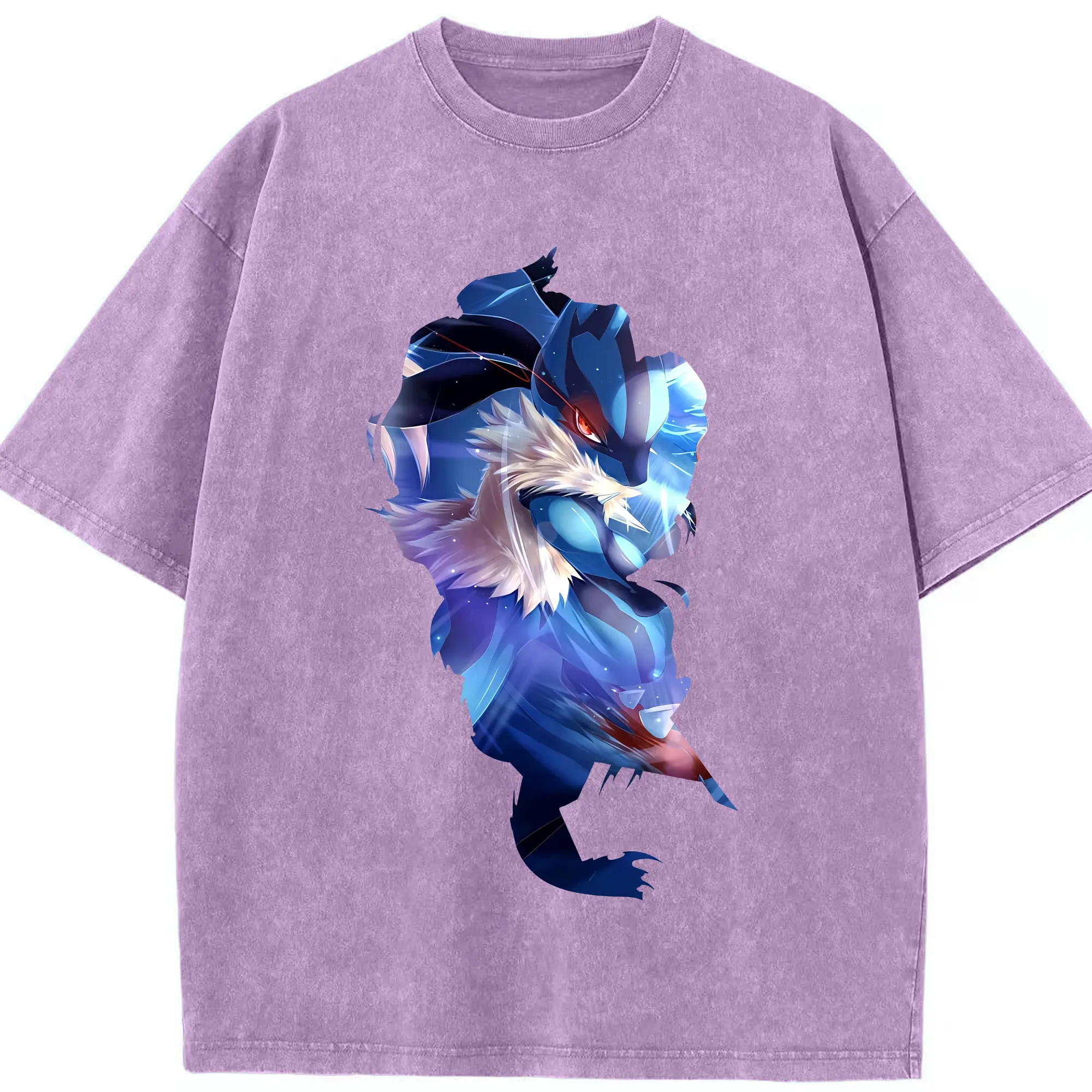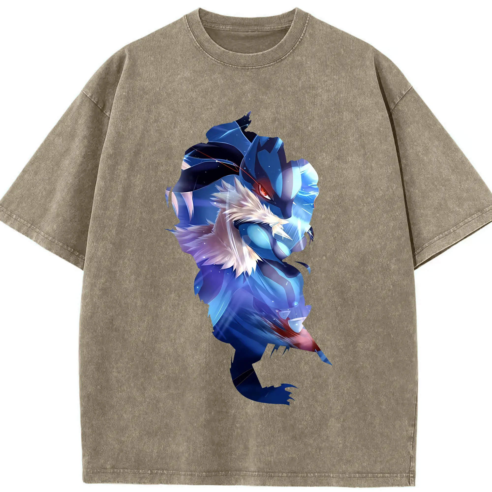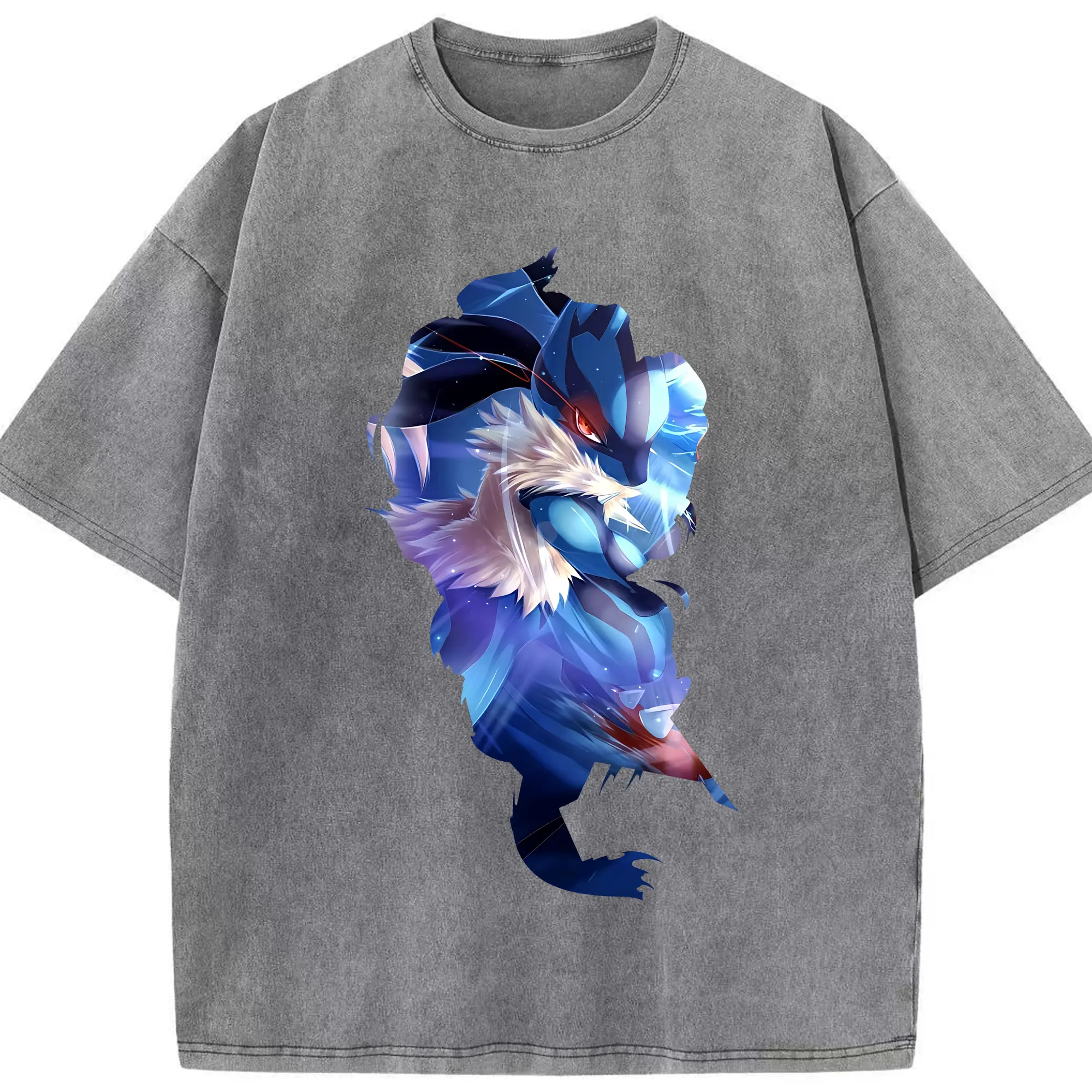 ポケモン グッズ,ルカリオ - 綿100% ヴィンテージ風 半袖Tシャツ ・ 背面プリント ・ 柔らか肌触り ・ 通気性 快適 ・ スポーツ カジュアル 外出用