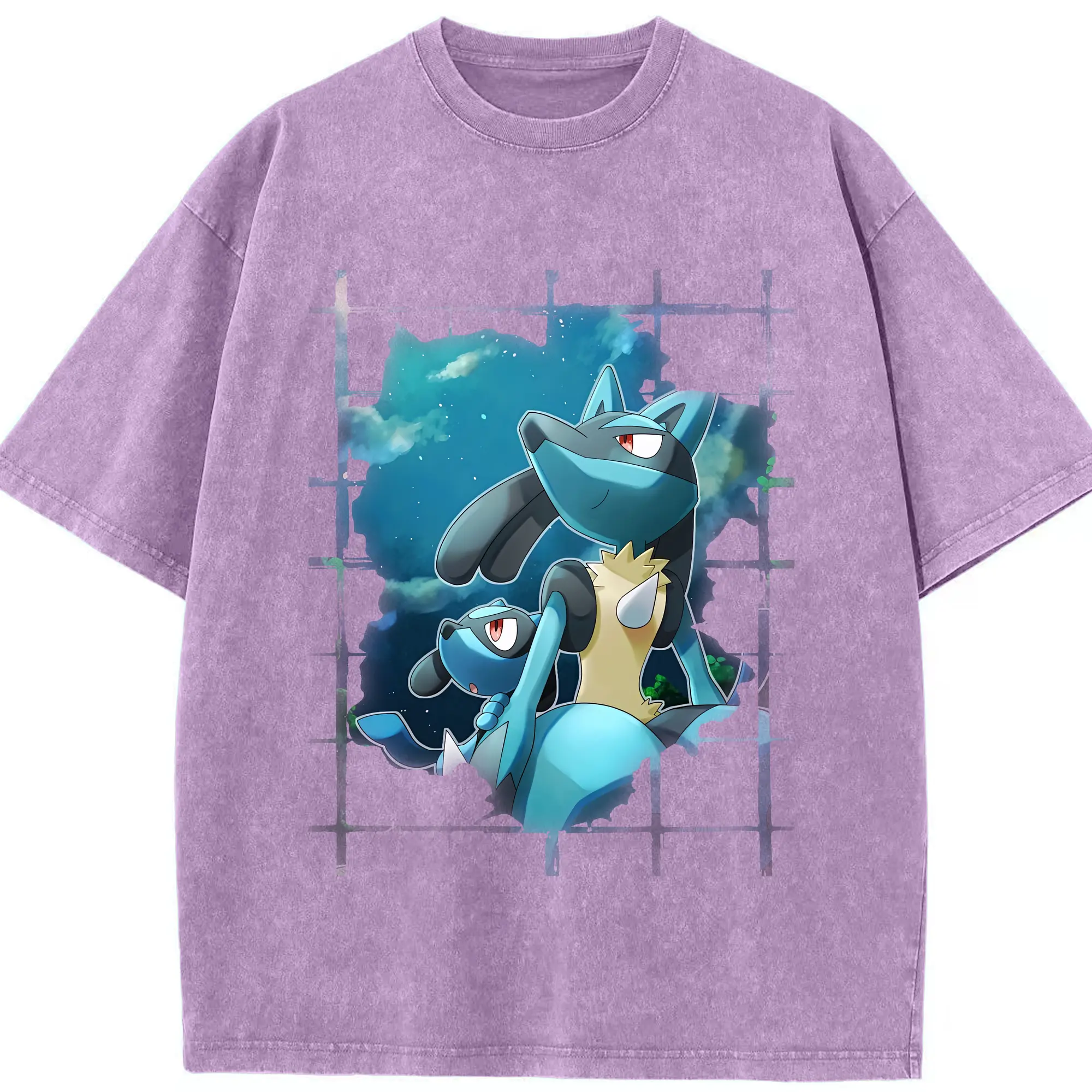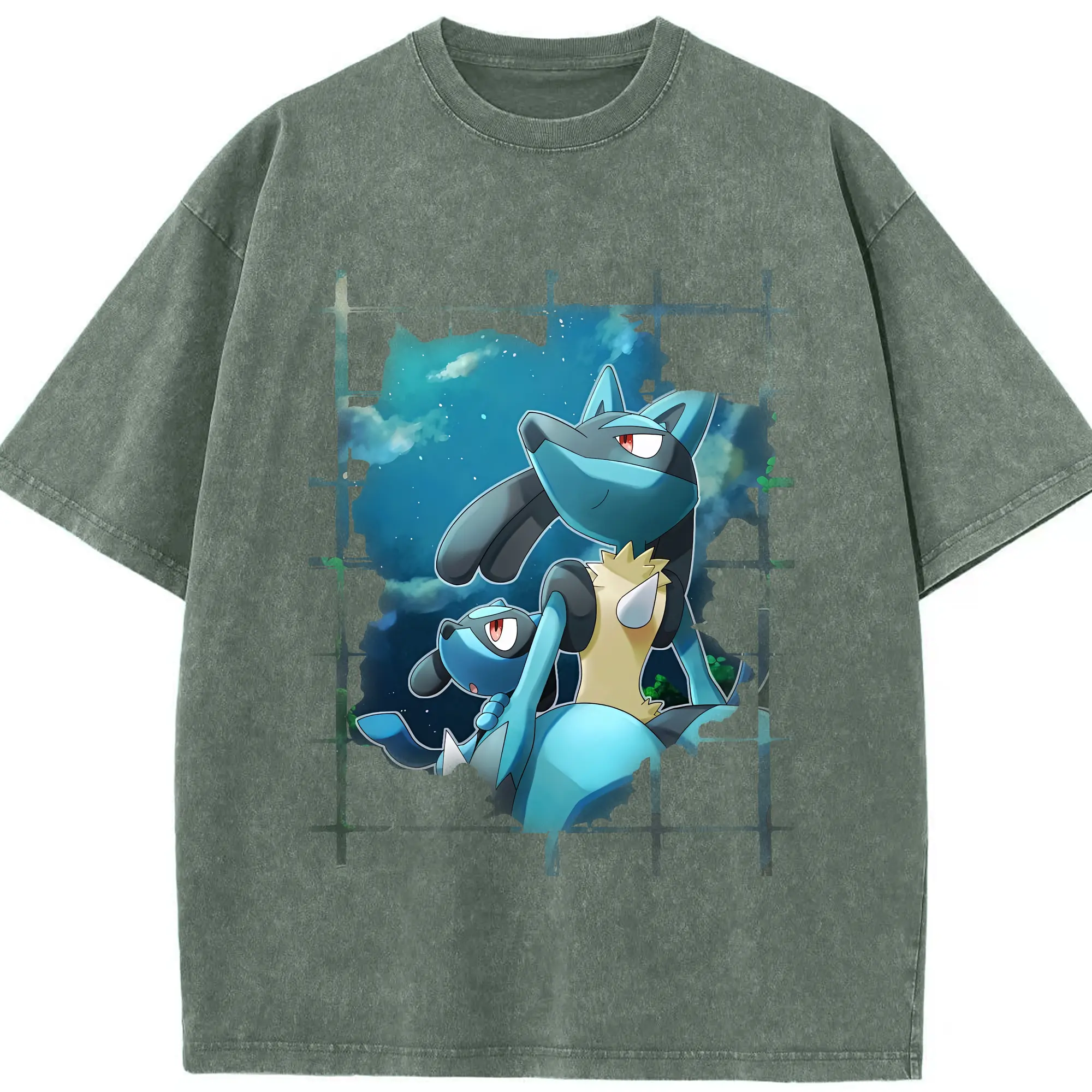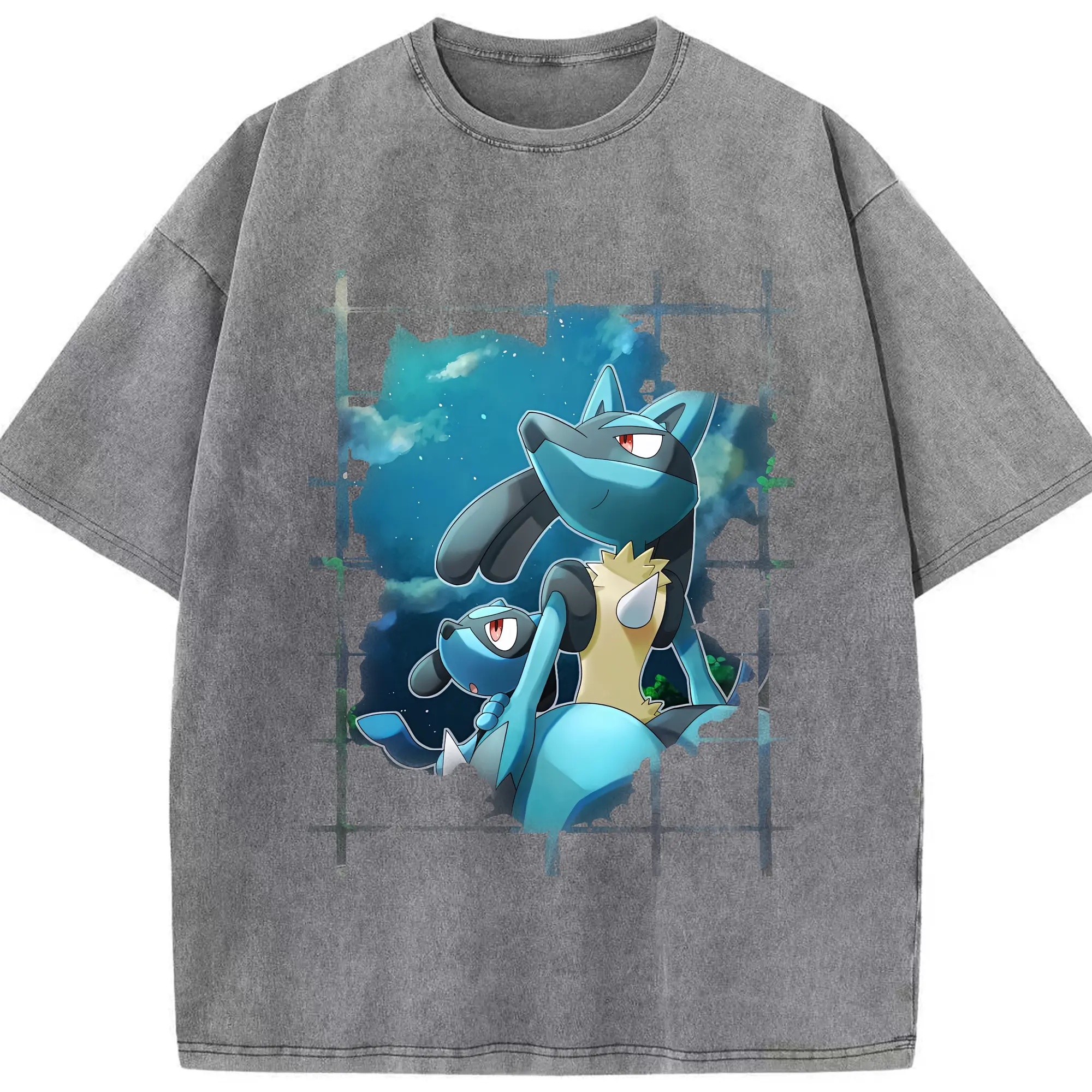 ポケモン グッズ,ルカリオ - 綿100% ヴィンテージ風 半袖Tシャツ ・ 背面プリント ・ 柔らか肌触り ・ 通気性 快適 ・ スポーツ カジュアル 外出用