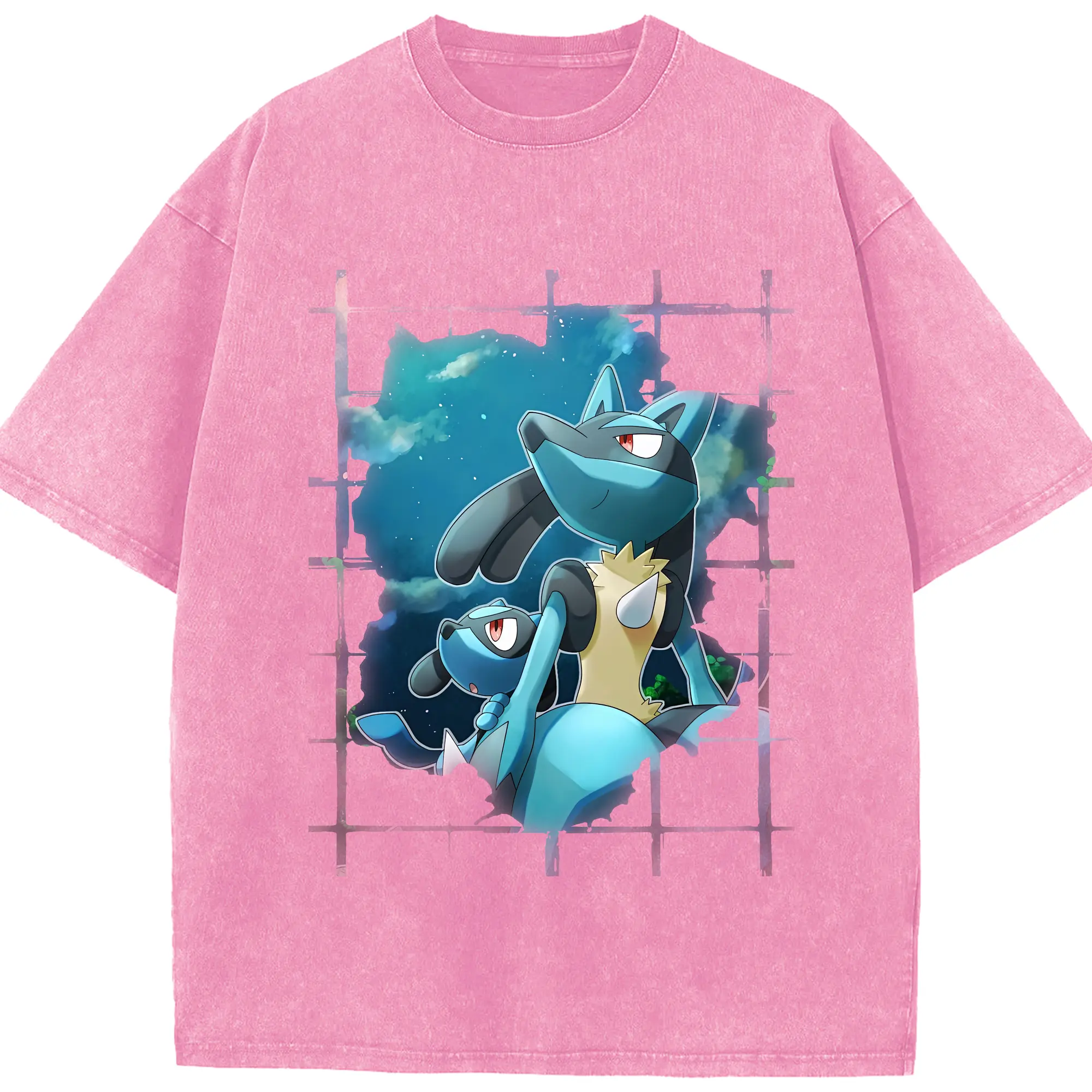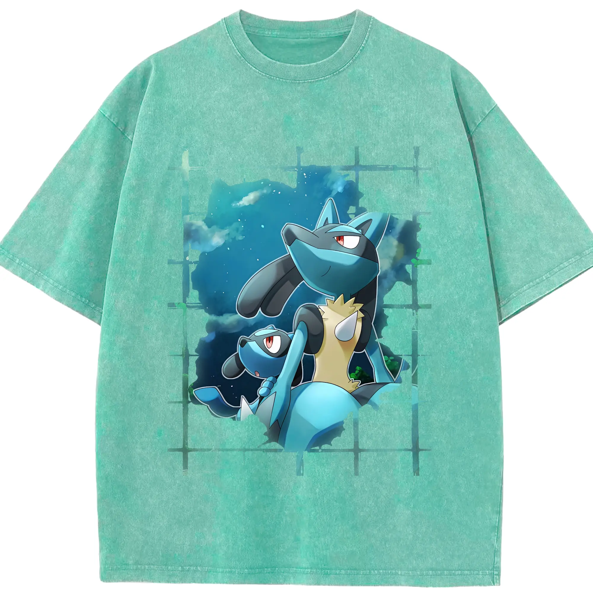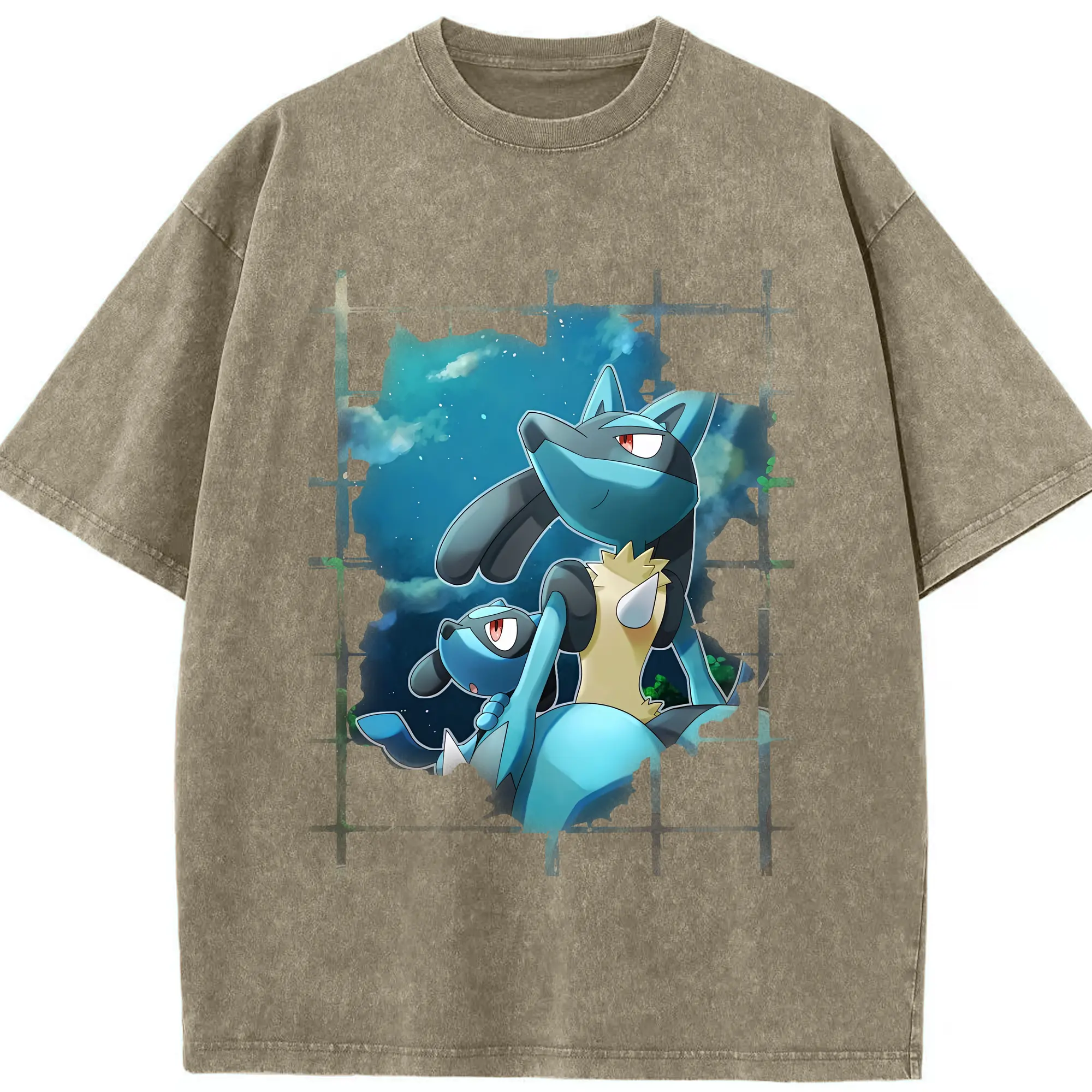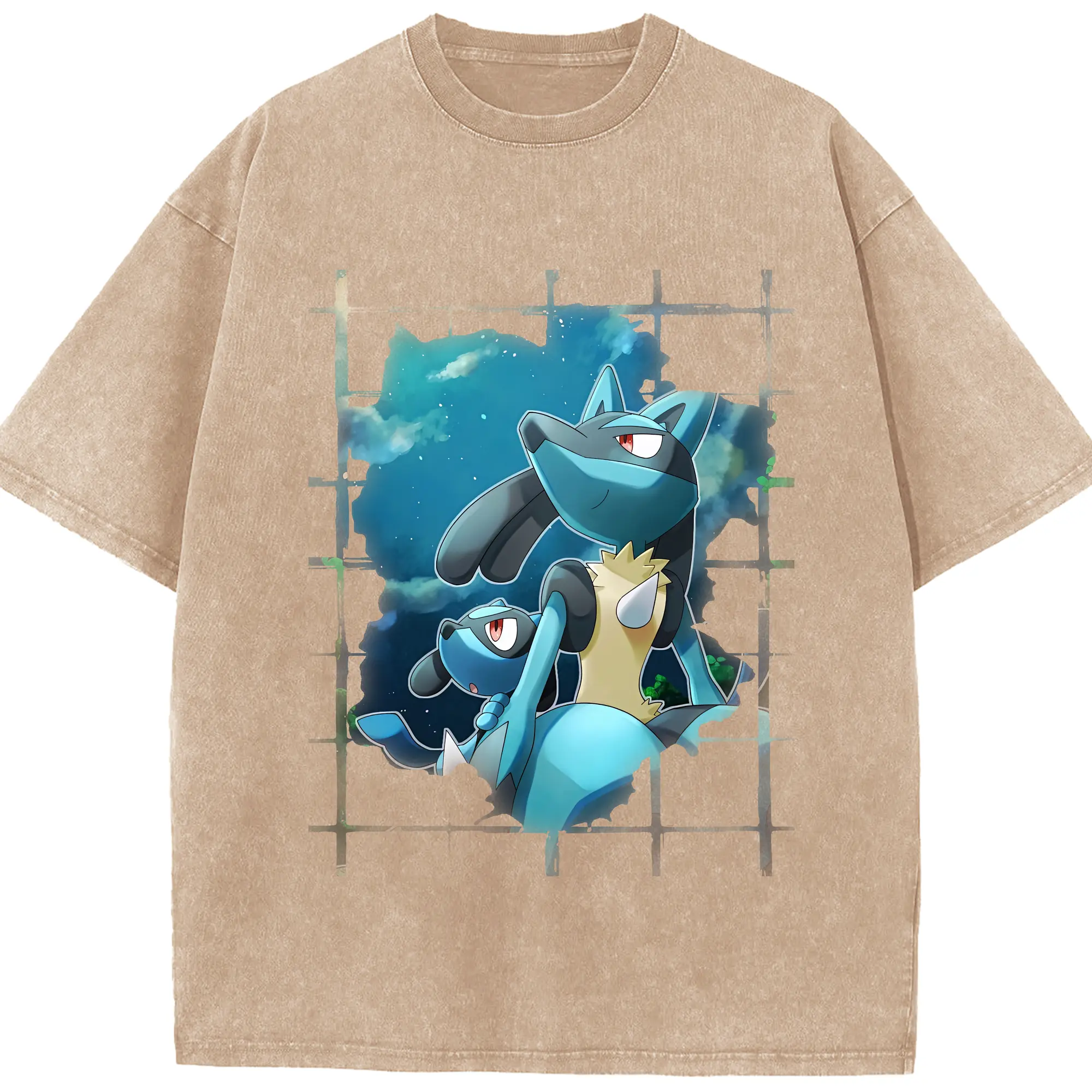 ポケモン グッズ,ルカリオ - 綿100% ヴィンテージ風 半袖Tシャツ ・ 背面プリント ・ 柔らか肌触り ・ 通気性 快適 ・ スポーツ カジュアル 外出用