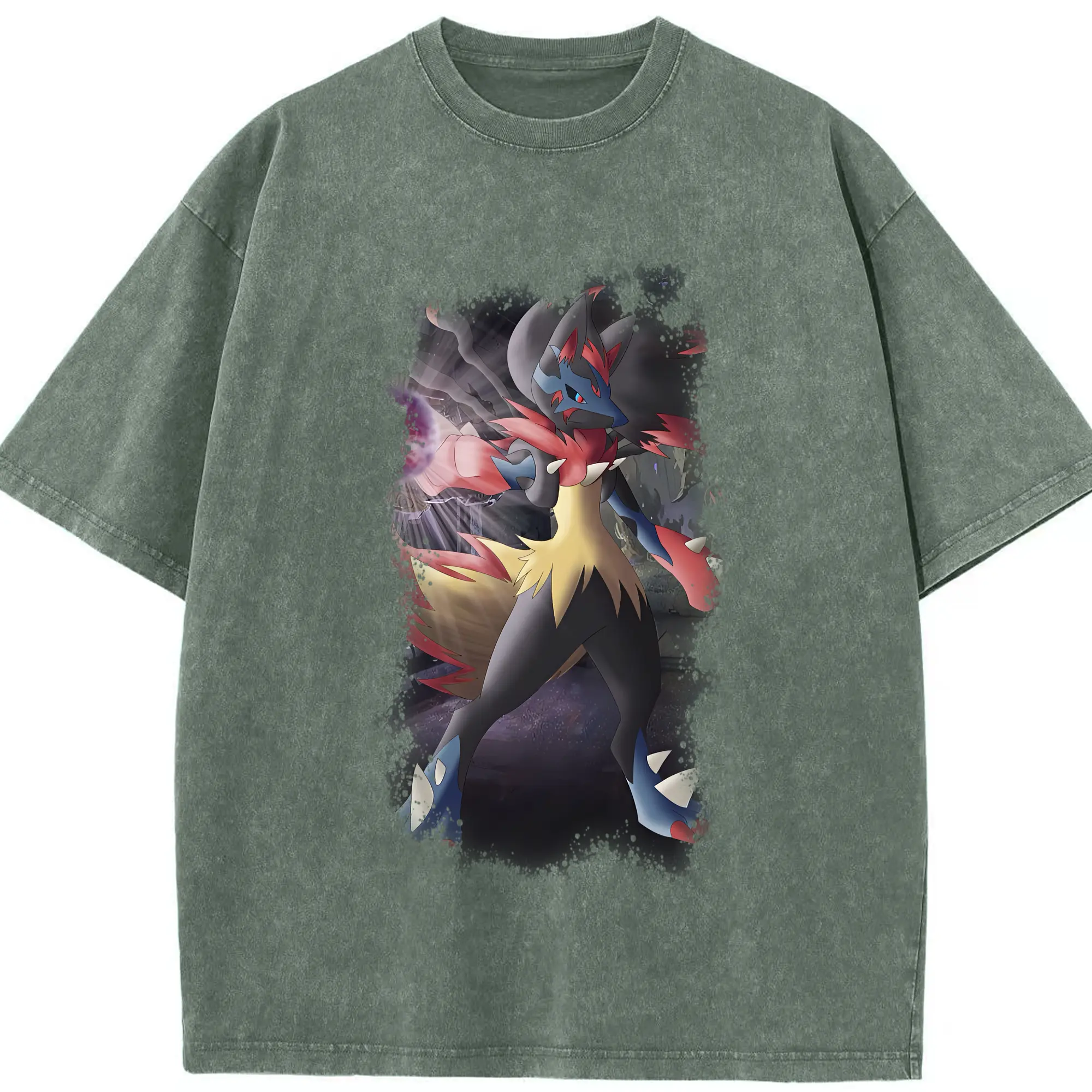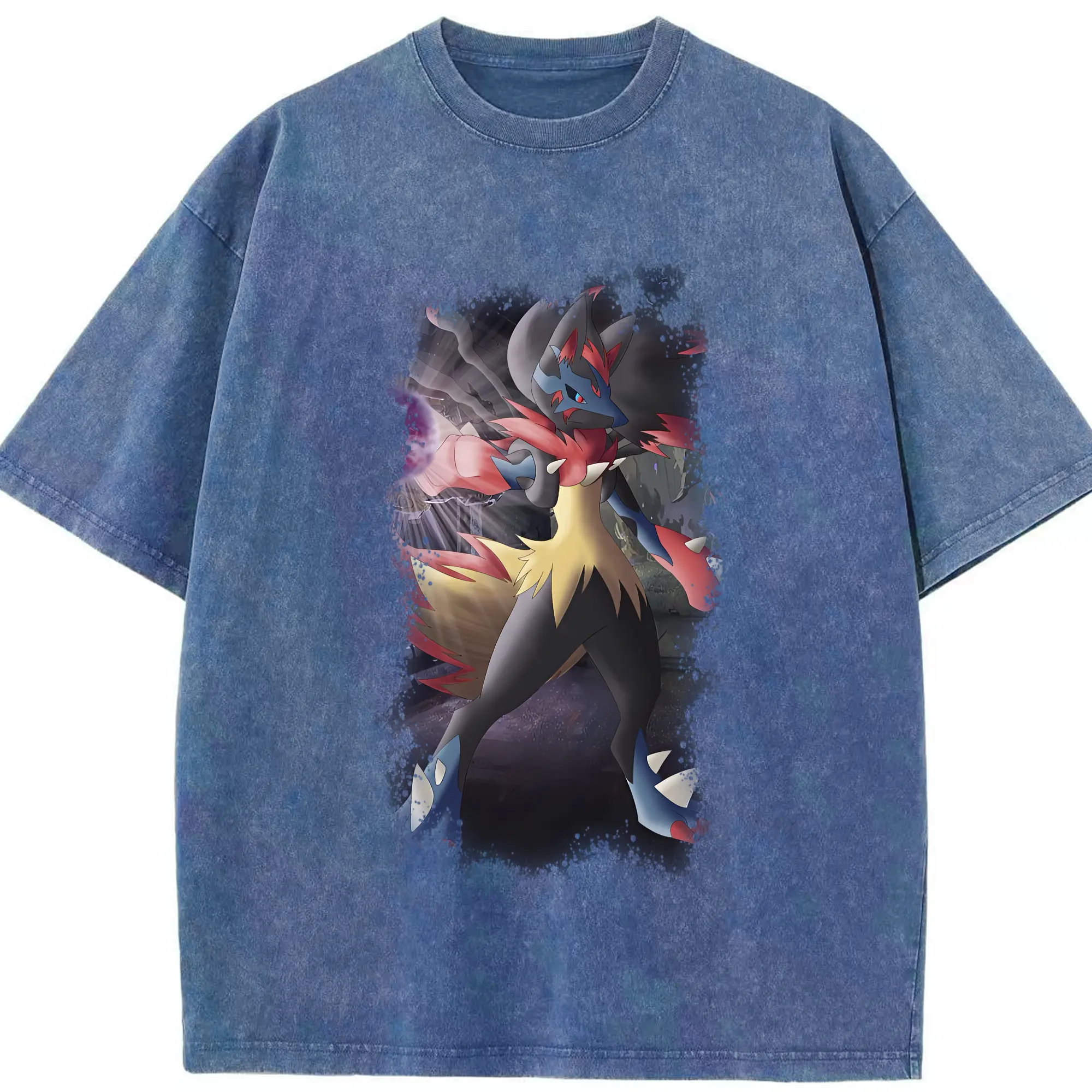 ポケモン グッズ,ルカリオ - 綿100% ヴィンテージ風 半袖Tシャツ ・ 背面プリント ・ 柔らか肌触り ・ 通気性 快適 ・ スポーツ カジュアル 外出用