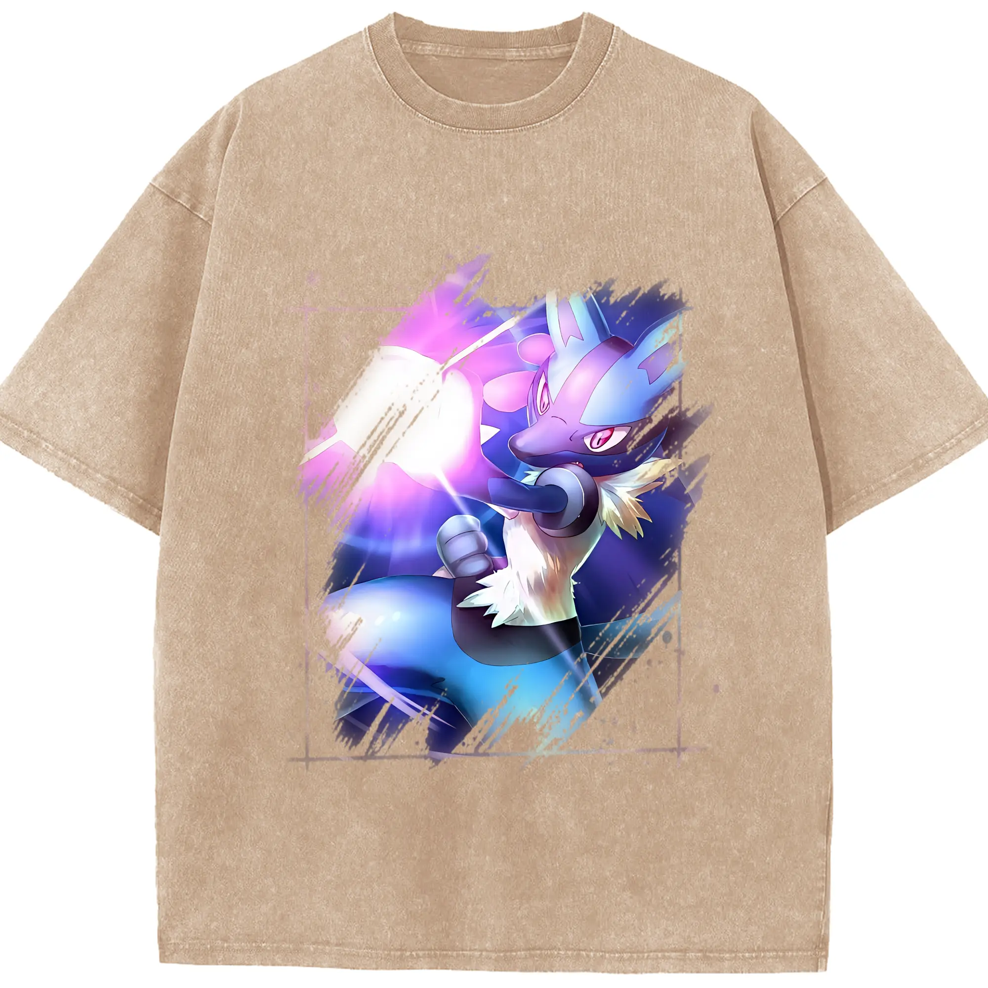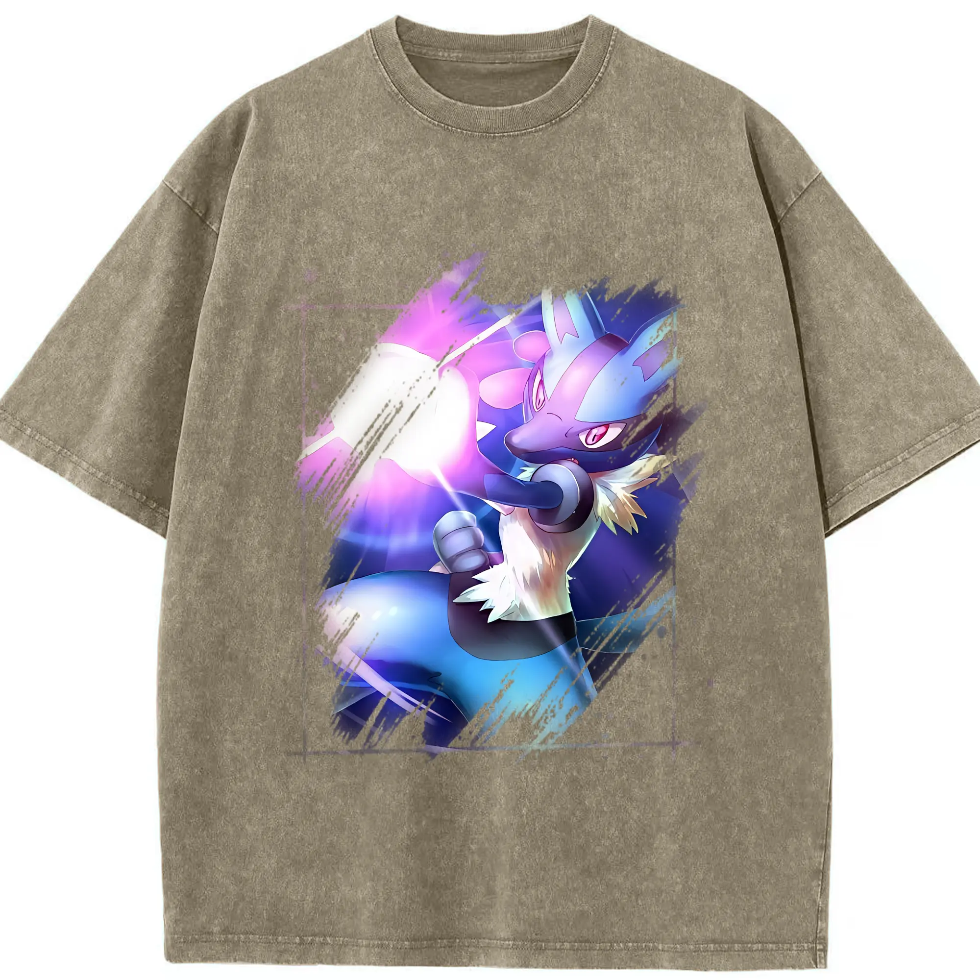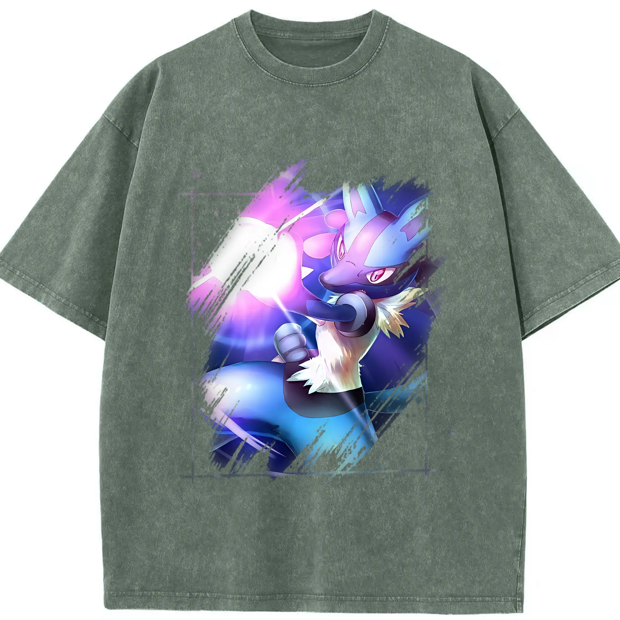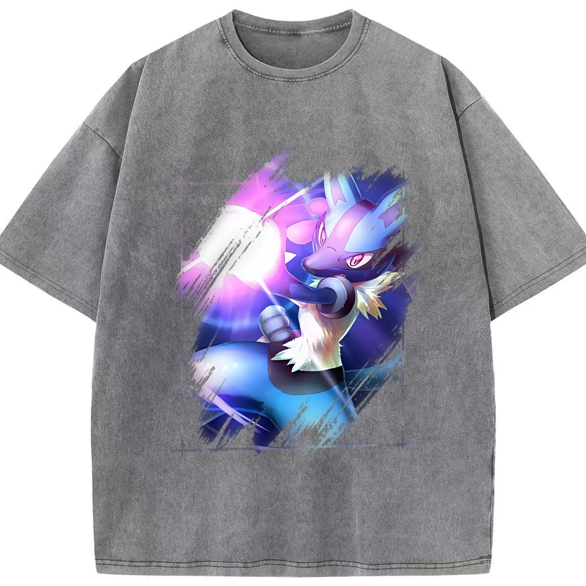 ポケモン グッズ,ルカリオ - 綿100% ヴィンテージ風 半袖Tシャツ ・ 背面プリント ・ 柔らか肌触り ・ 通気性 快適 ・ スポーツ カジュアル 外出用