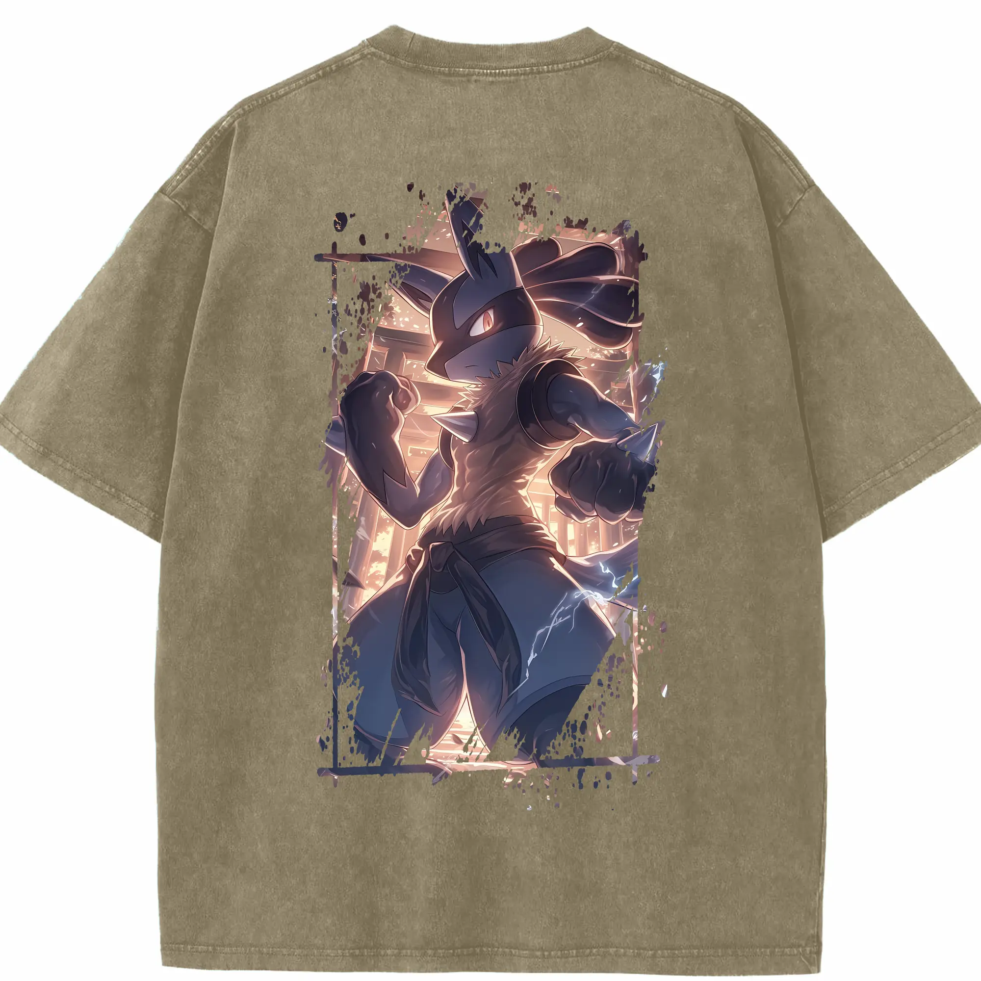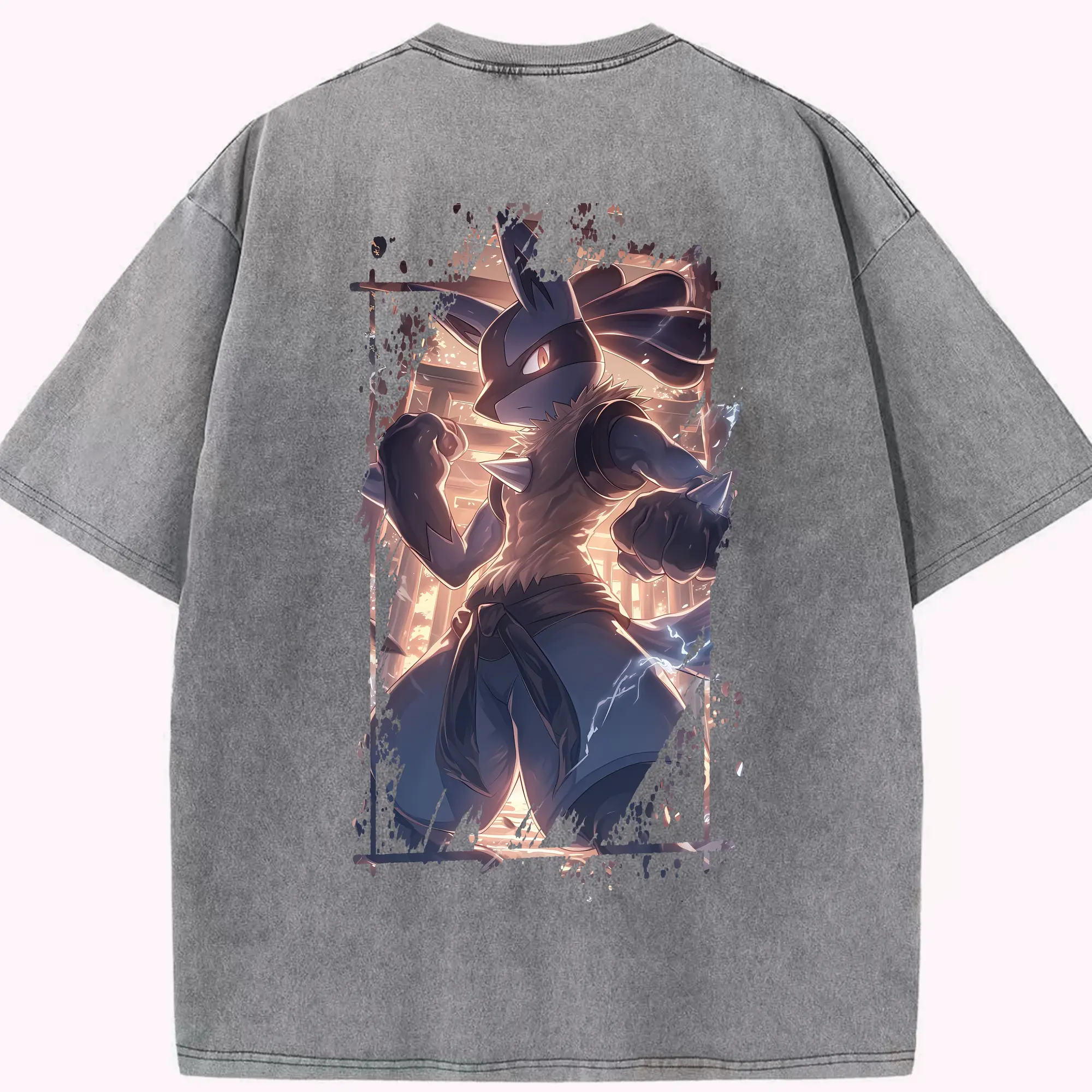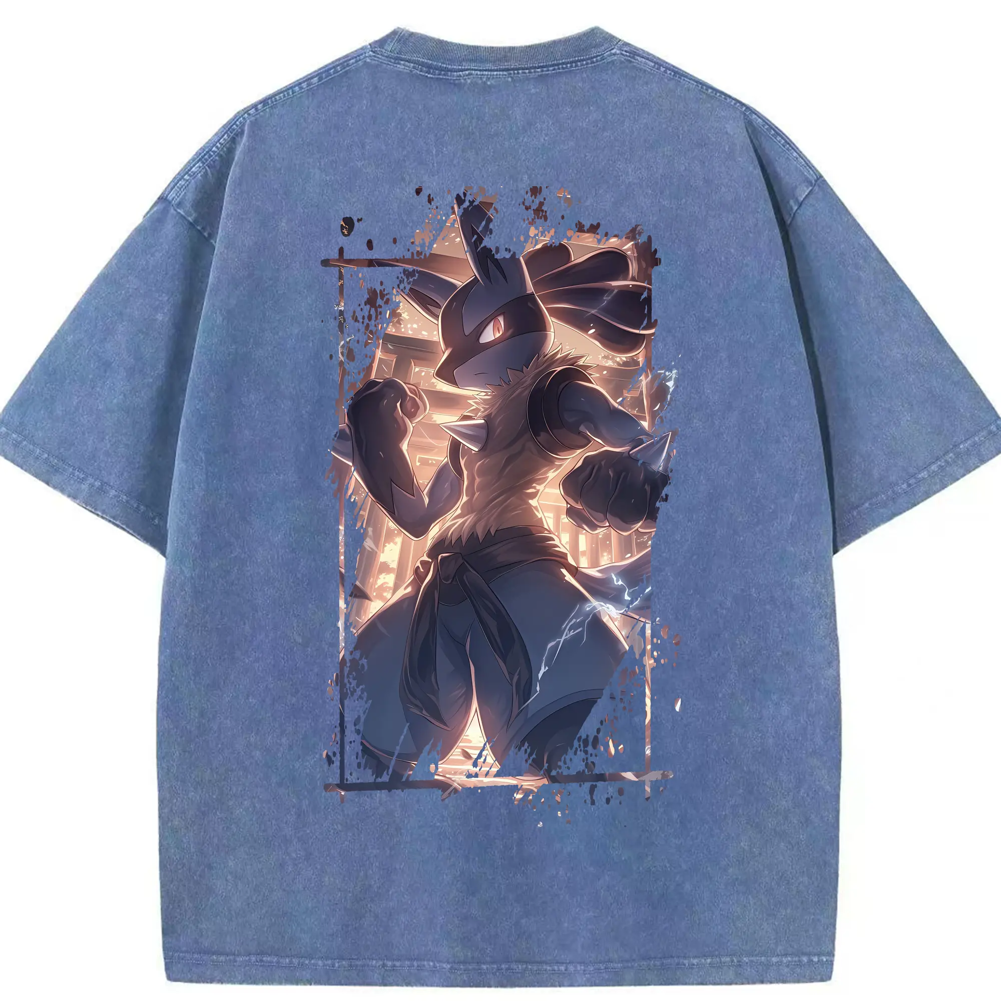 ポケモン グッズ,ルカリオ - 綿100% ヴィンテージ風 半袖Tシャツ ・ フロントプリント ・ 柔らか肌触り ・ 通気性 快適 ・ スポーツ カジュアル 外出用