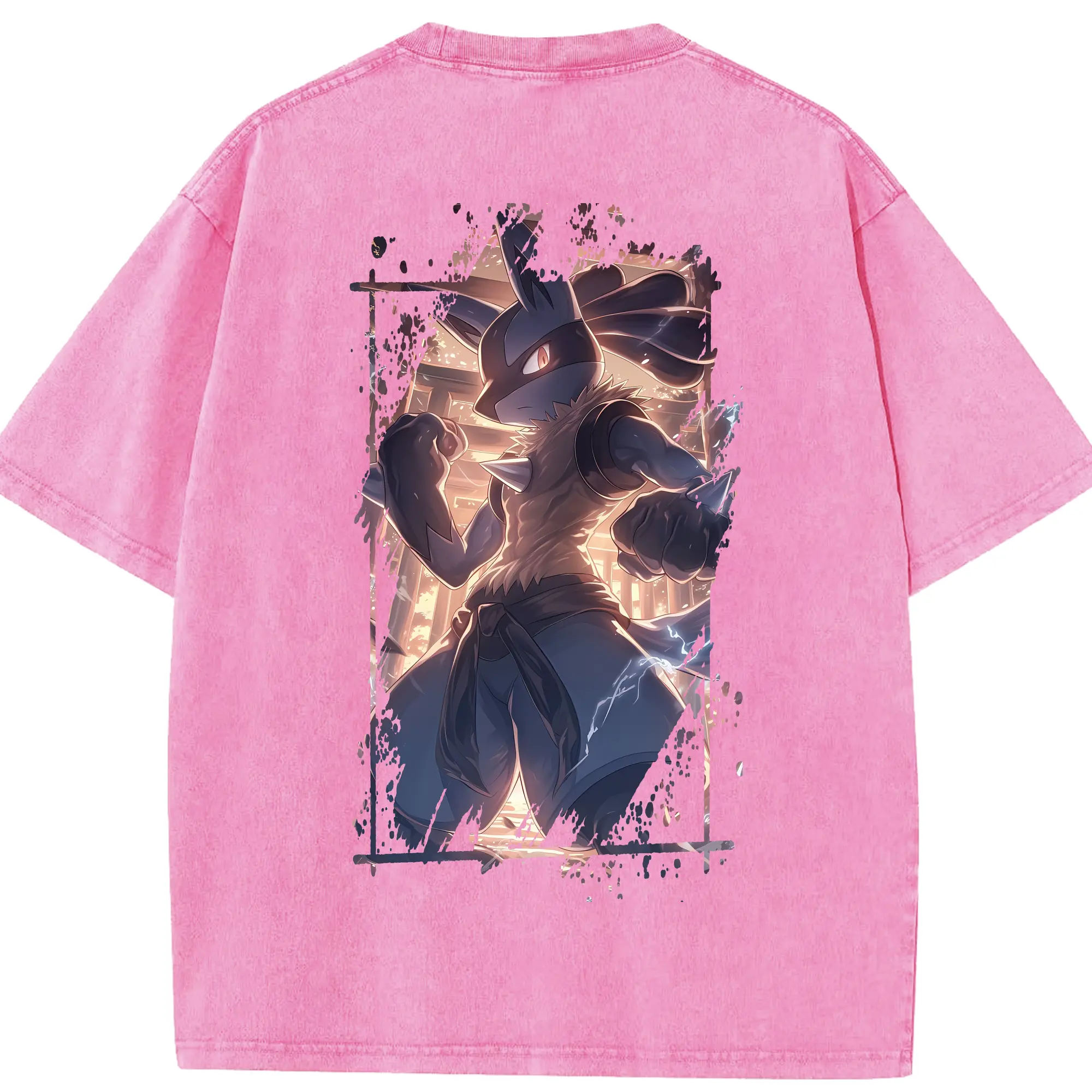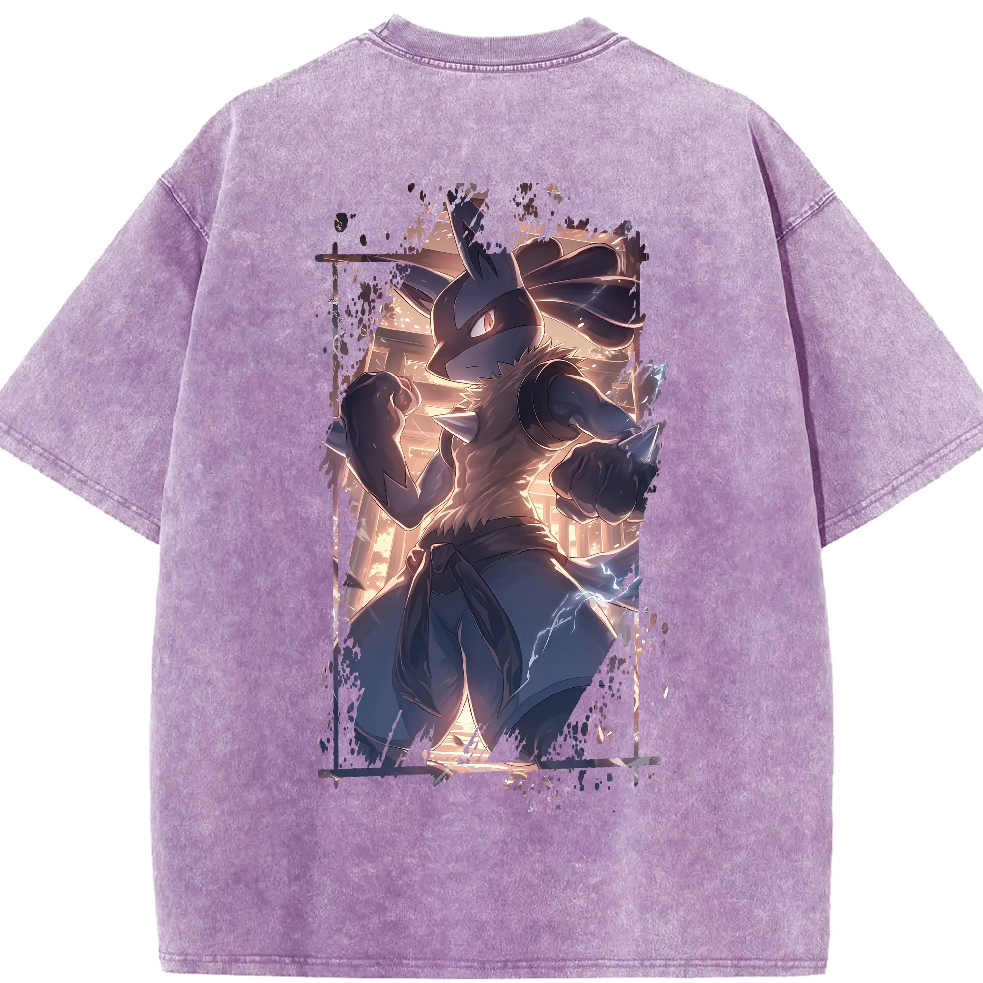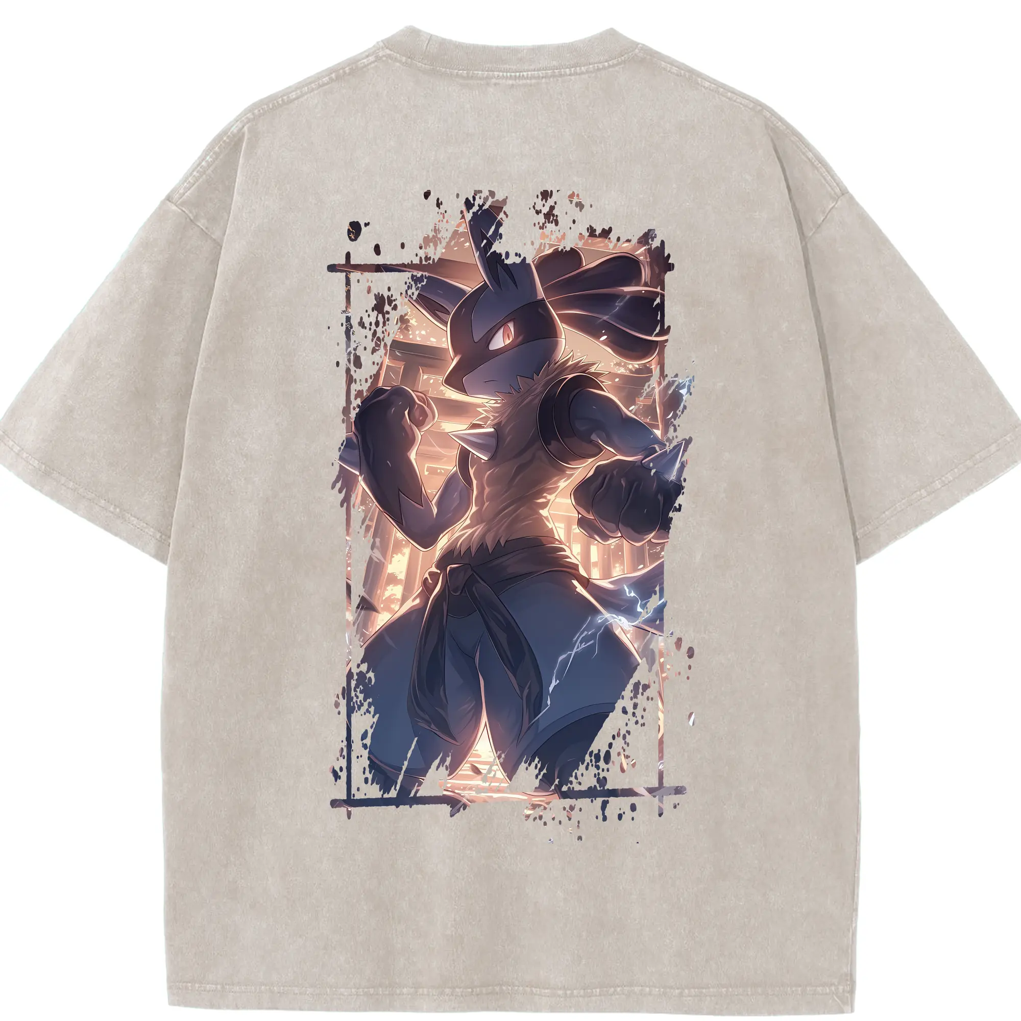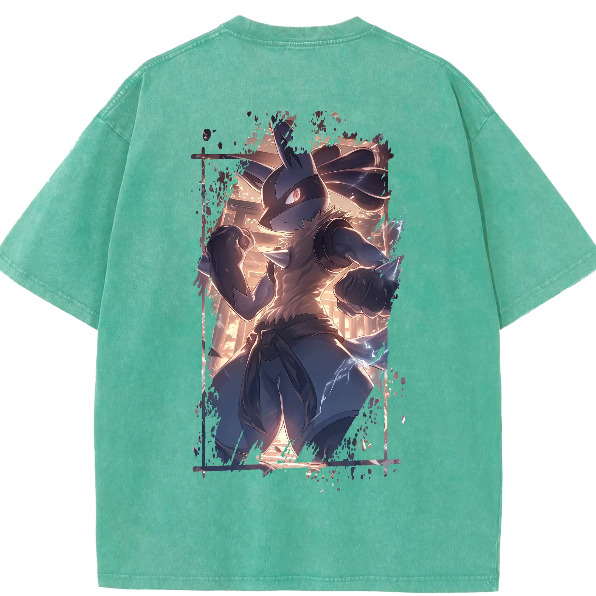 ポケモン グッズ,ルカリオ - 綿100% ヴィンテージ風 半袖Tシャツ ・ フロントプリント ・ 柔らか肌触り ・ 通気性 快適 ・ スポーツ カジュアル 外出用