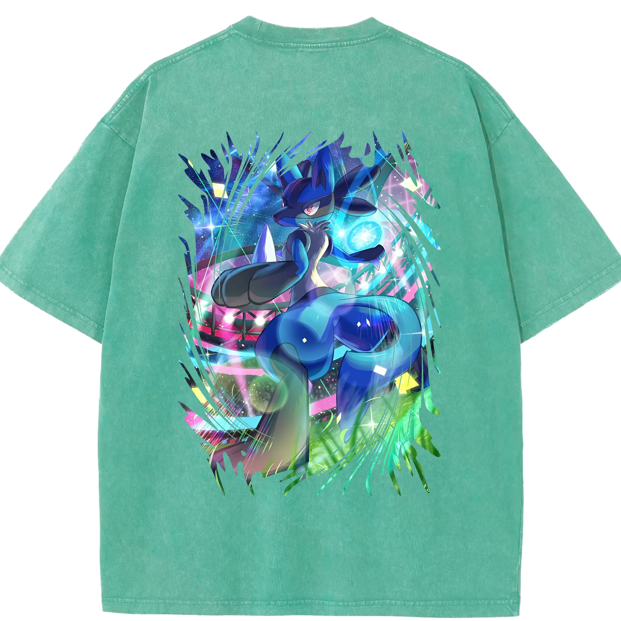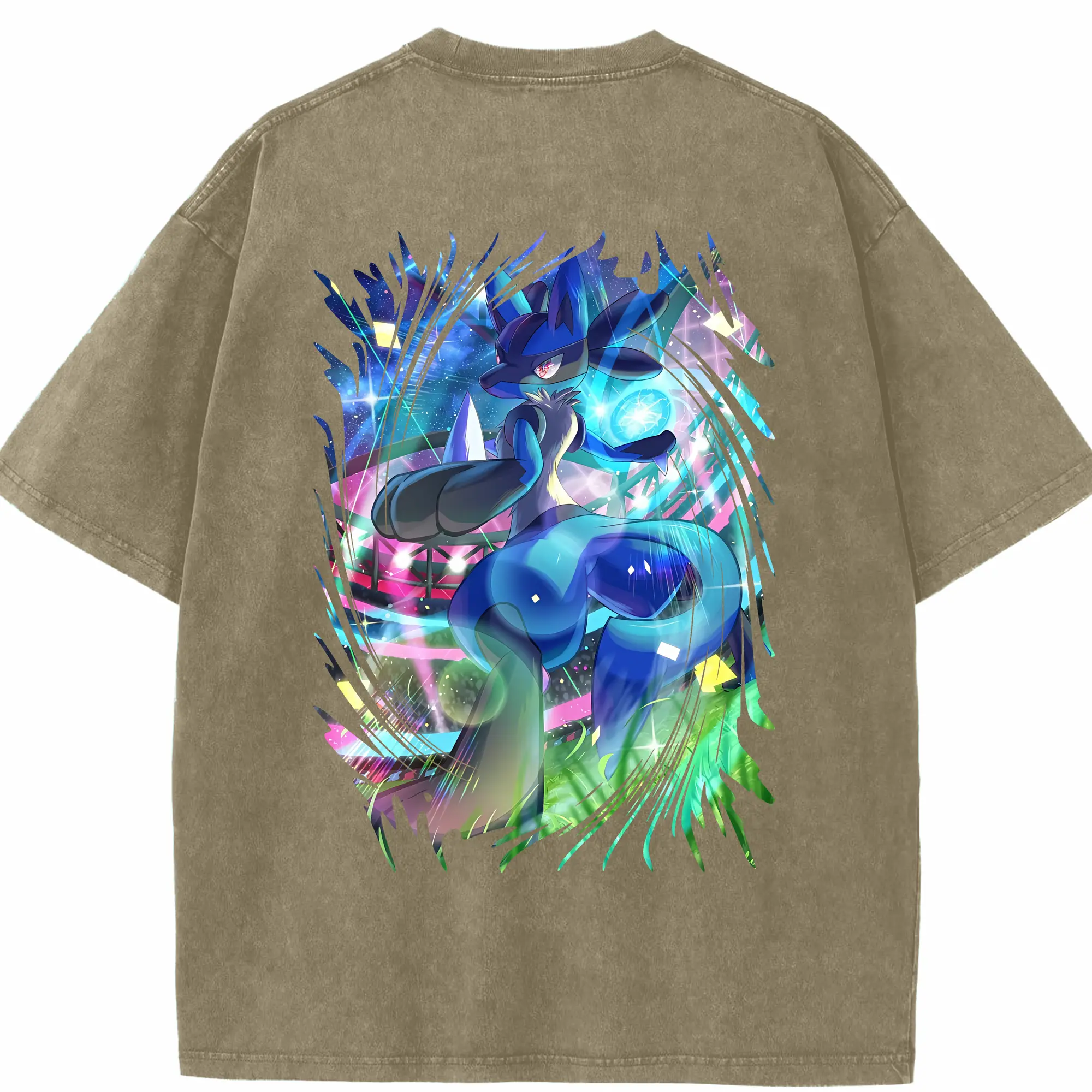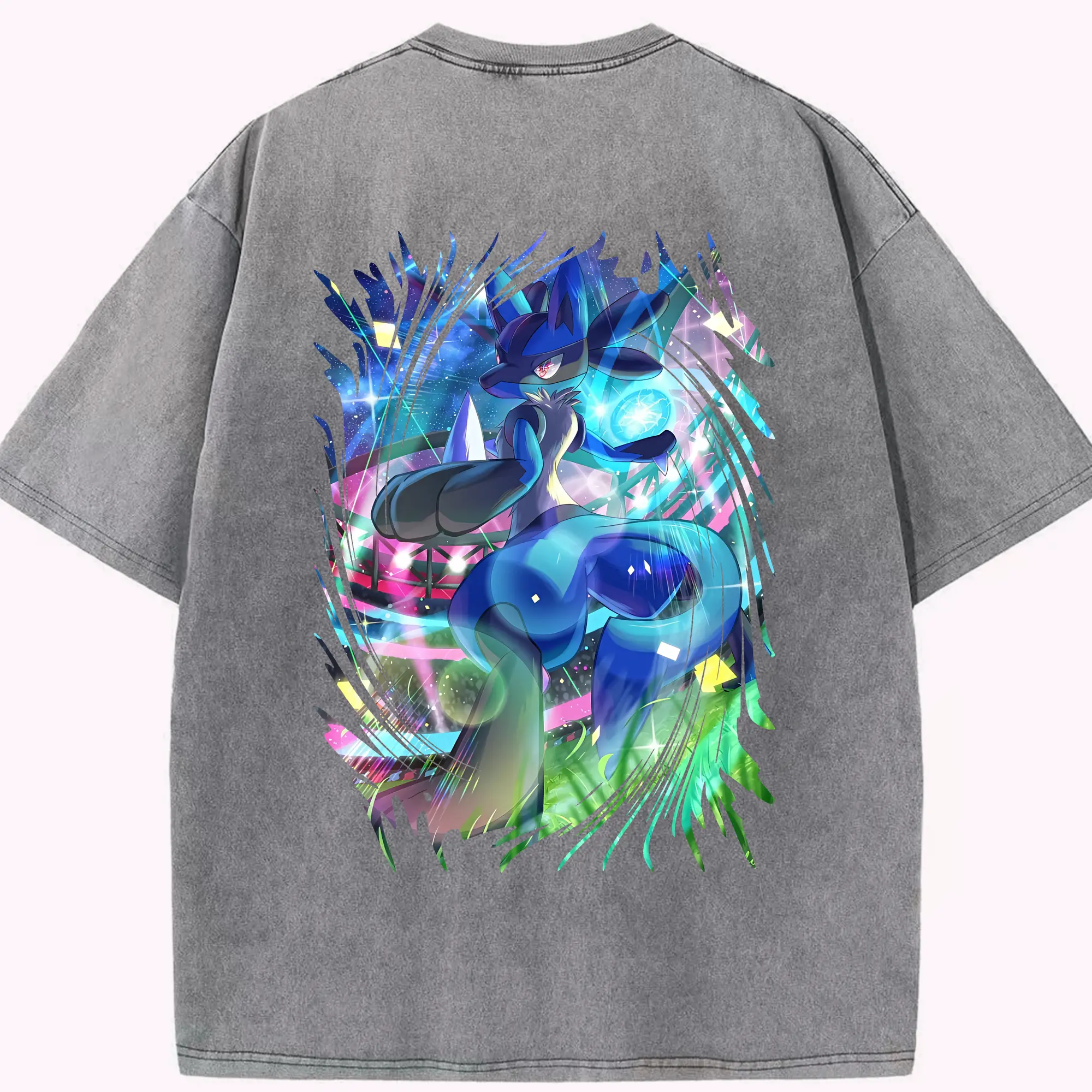 ポケモン グッズ,ルカリオ - 綿100% ヴィンテージ風 半袖Tシャツ ・ フロントプリント ・ 柔らか肌触り ・ 通気性 快適 ・ スポーツ カジュアル 外出用