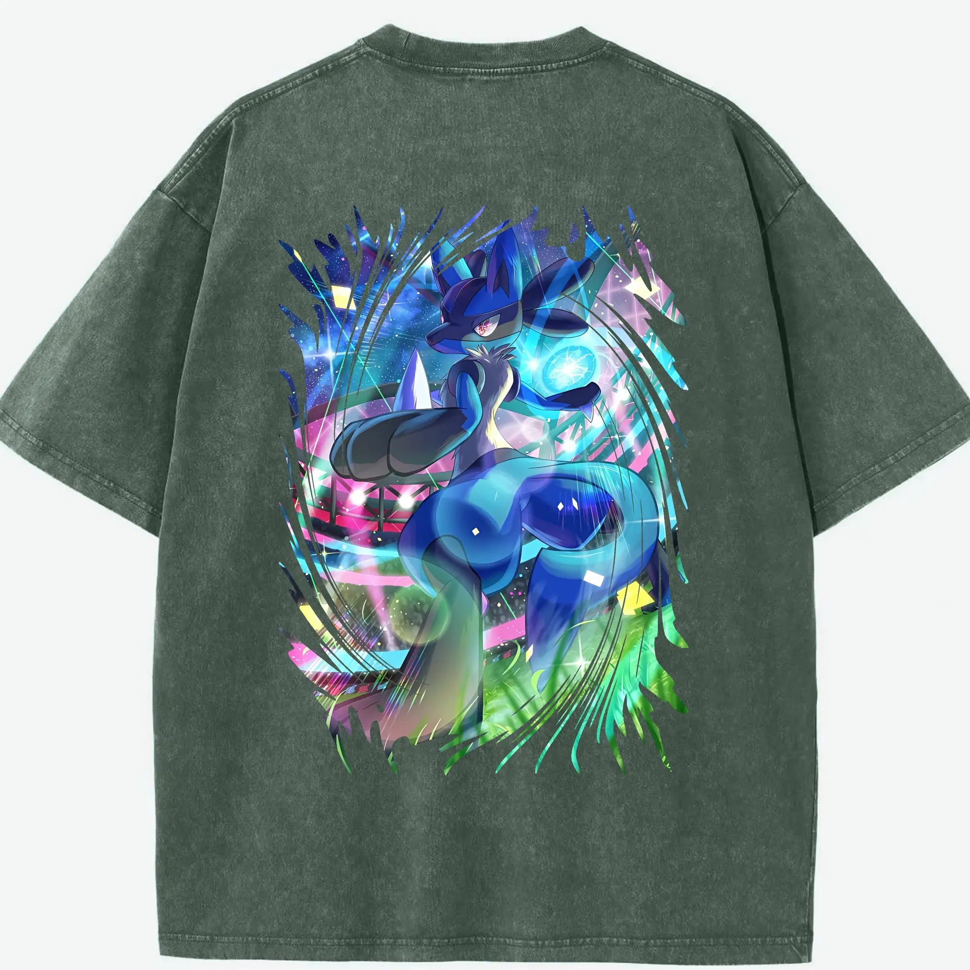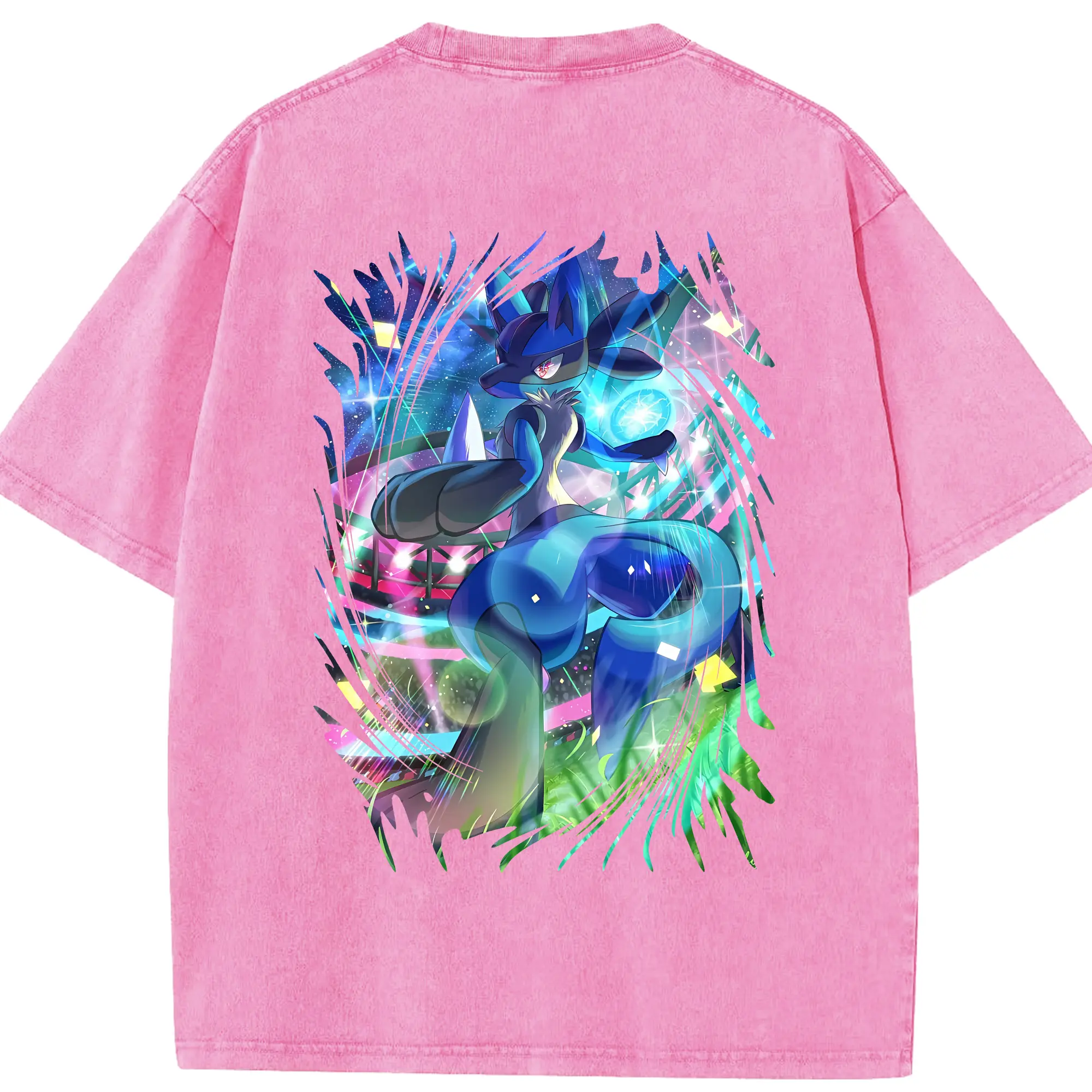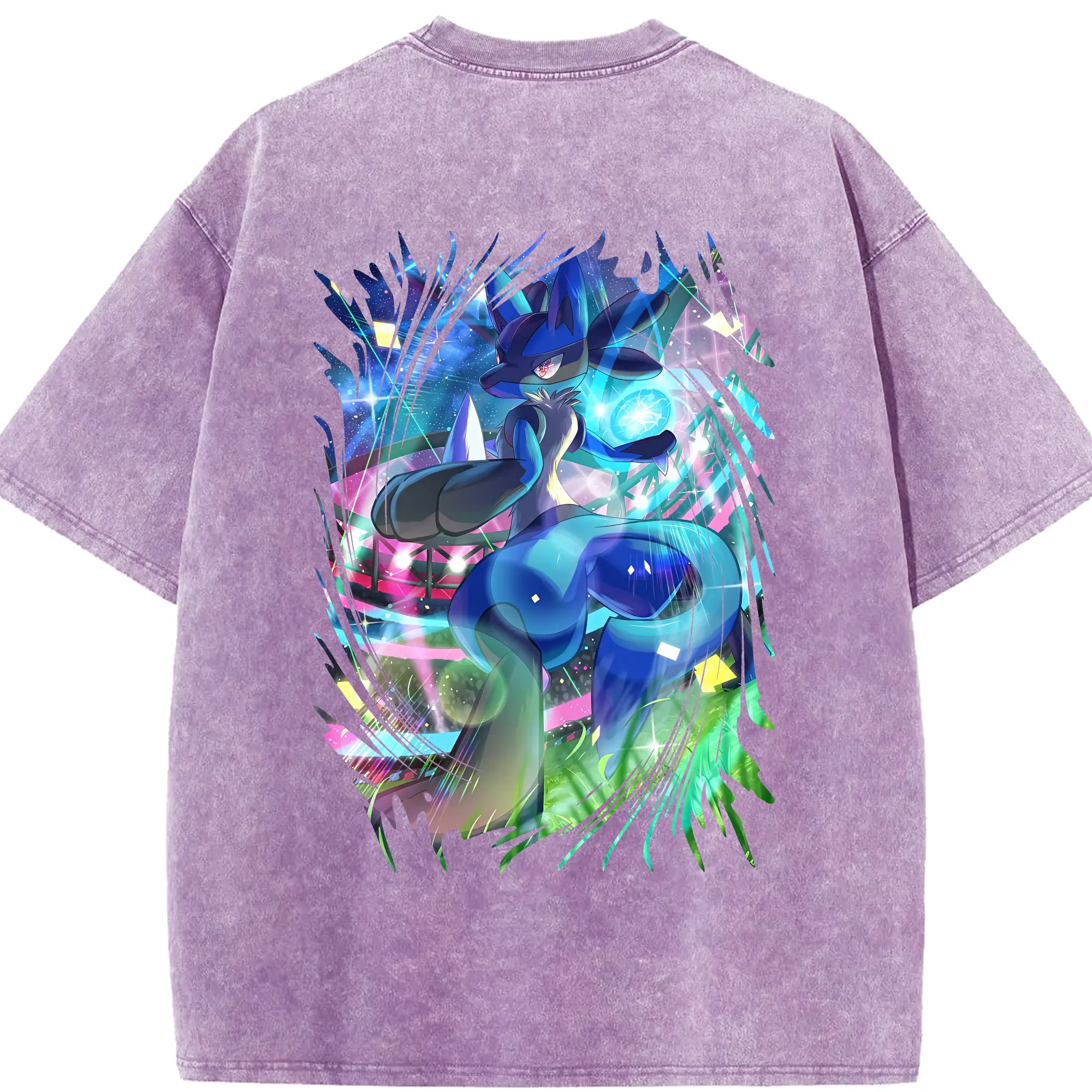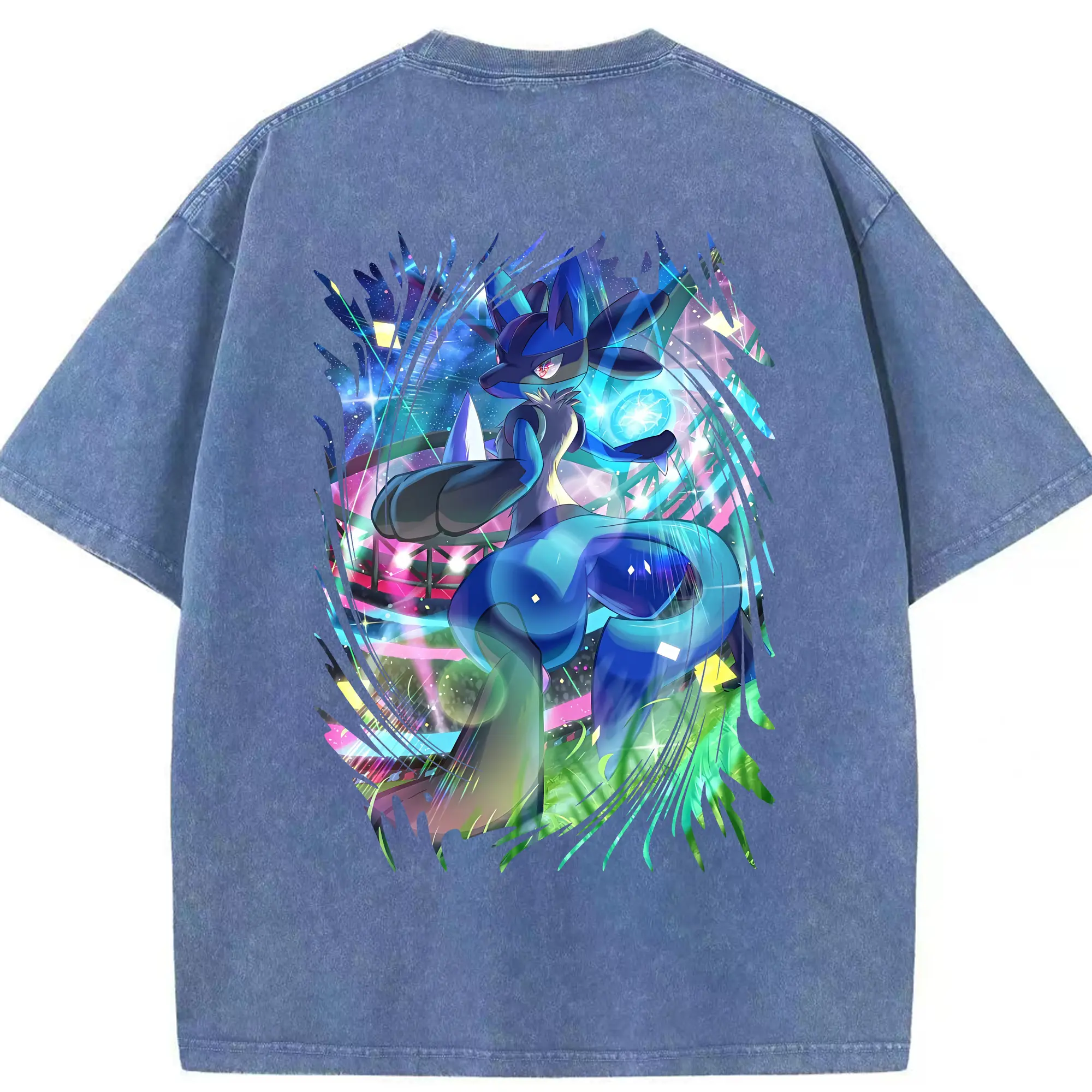 ポケモン グッズ,ルカリオ - 綿100% ヴィンテージ風 半袖Tシャツ ・ フロントプリント ・ 柔らか肌触り ・ 通気性 快適 ・ スポーツ カジュアル 外出用