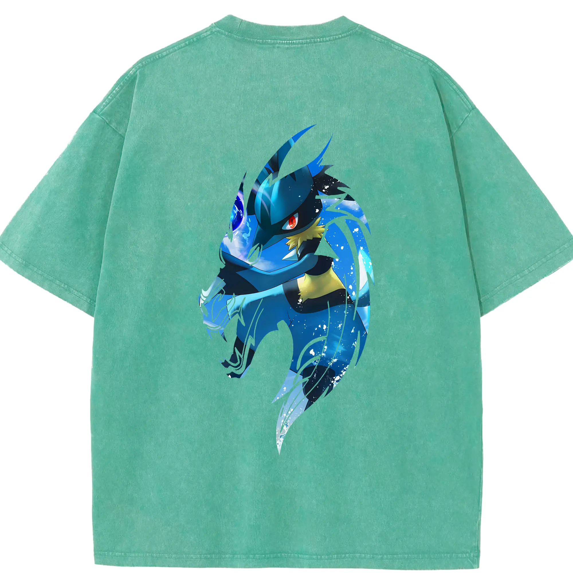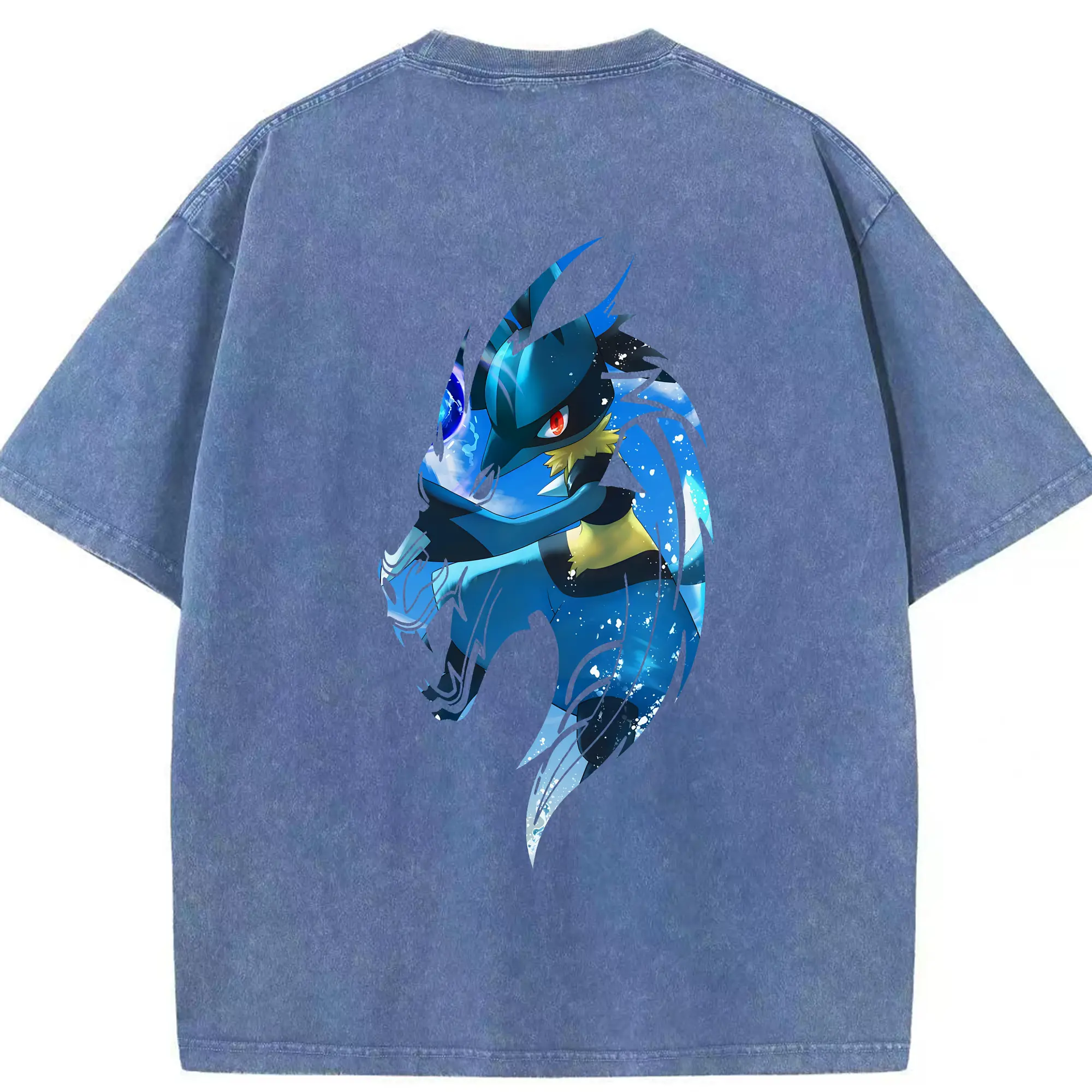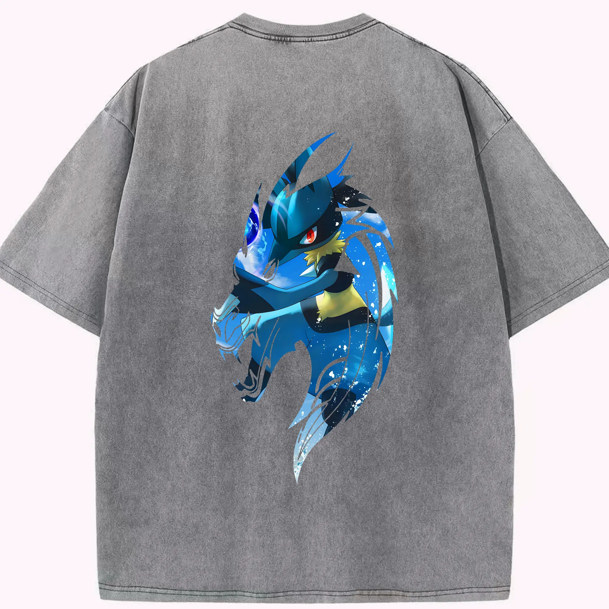 ポケモン グッズ,ルカリオ - 綿100% ヴィンテージ風 半袖Tシャツ ・ フロントプリント ・ 柔らか肌触り ・ 通気性 快適 ・ スポーツ カジュアル 外出用