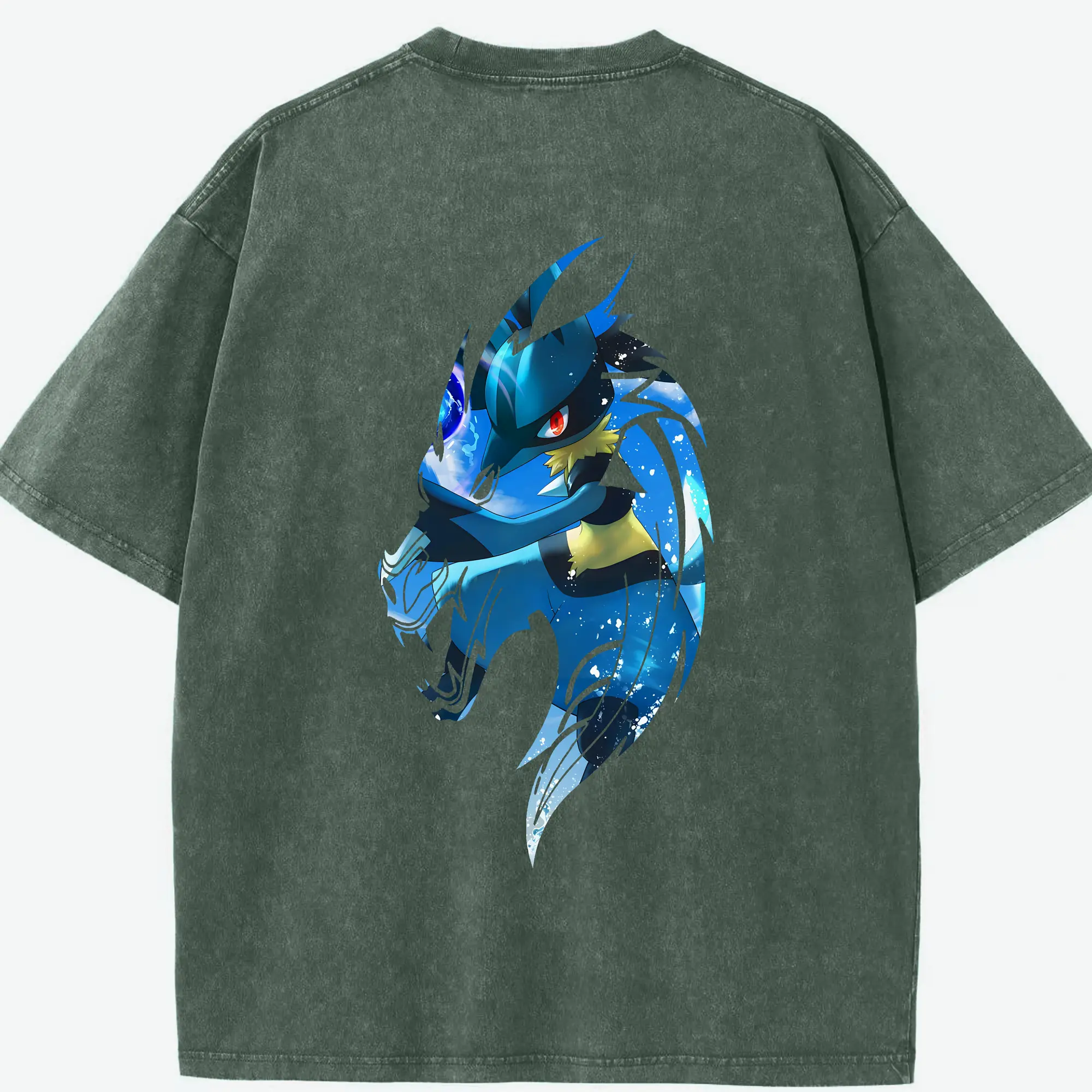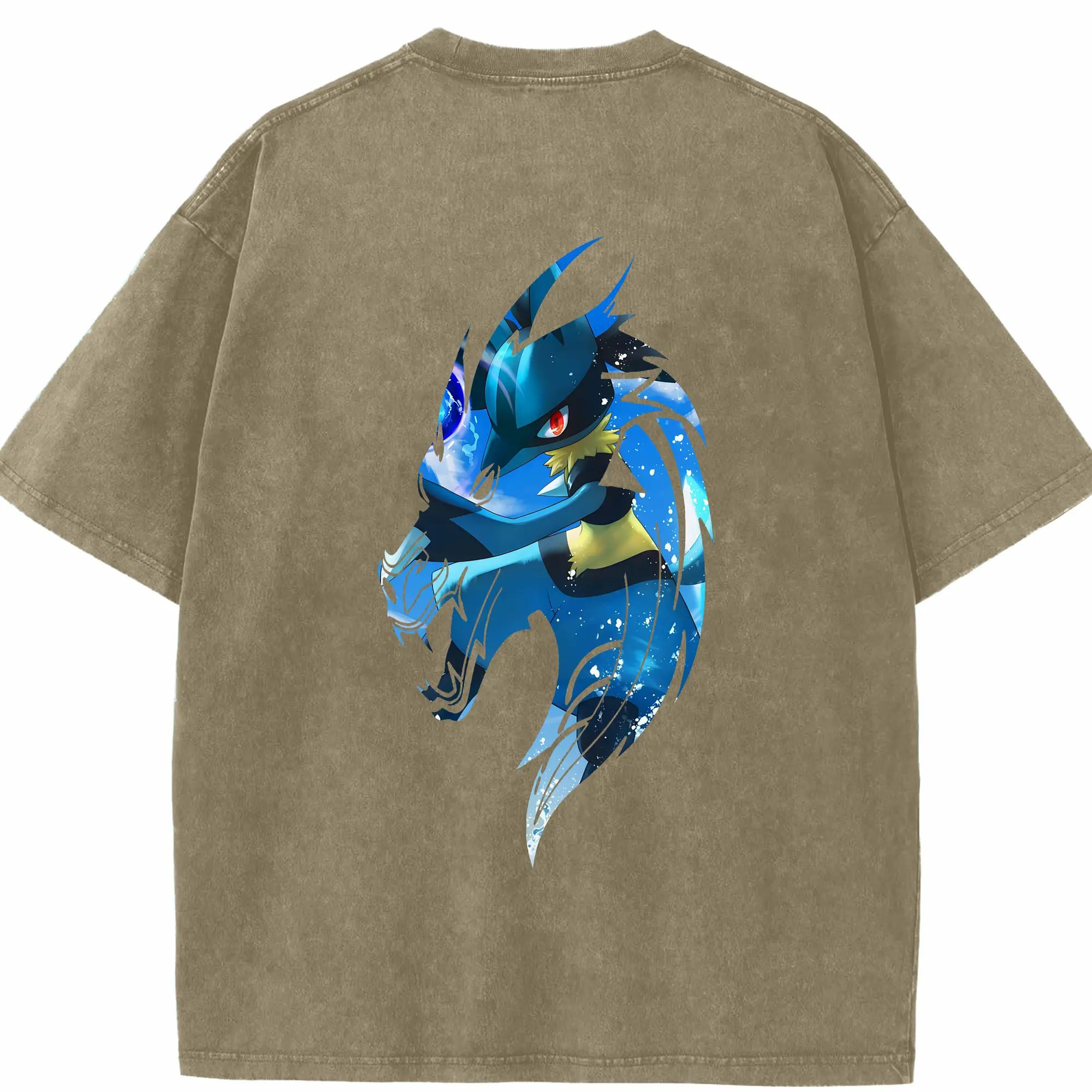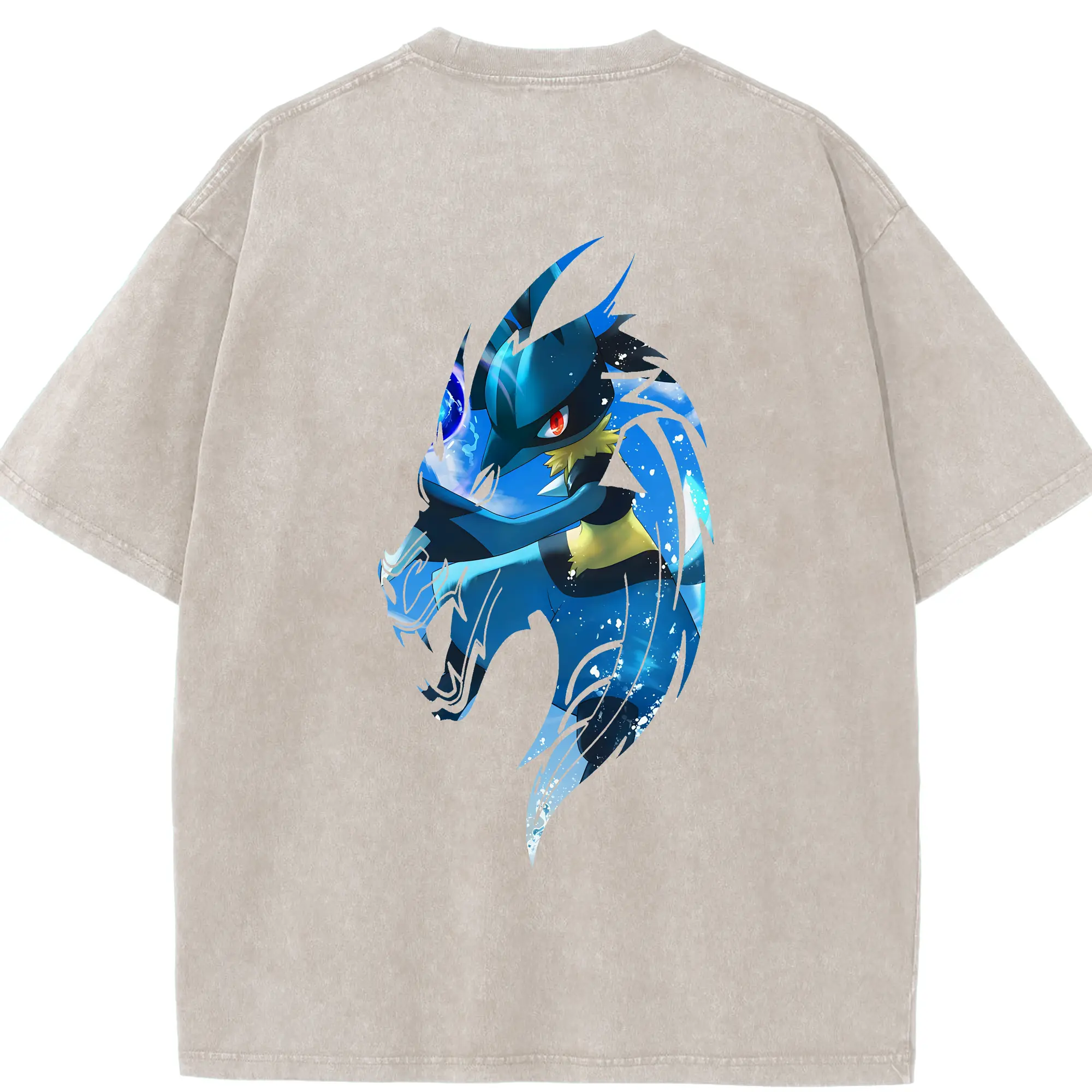 ポケモン グッズ,ルカリオ - 綿100% ヴィンテージ風 半袖Tシャツ ・ フロントプリント ・ 柔らか肌触り ・ 通気性 快適 ・ スポーツ カジュアル 外出用