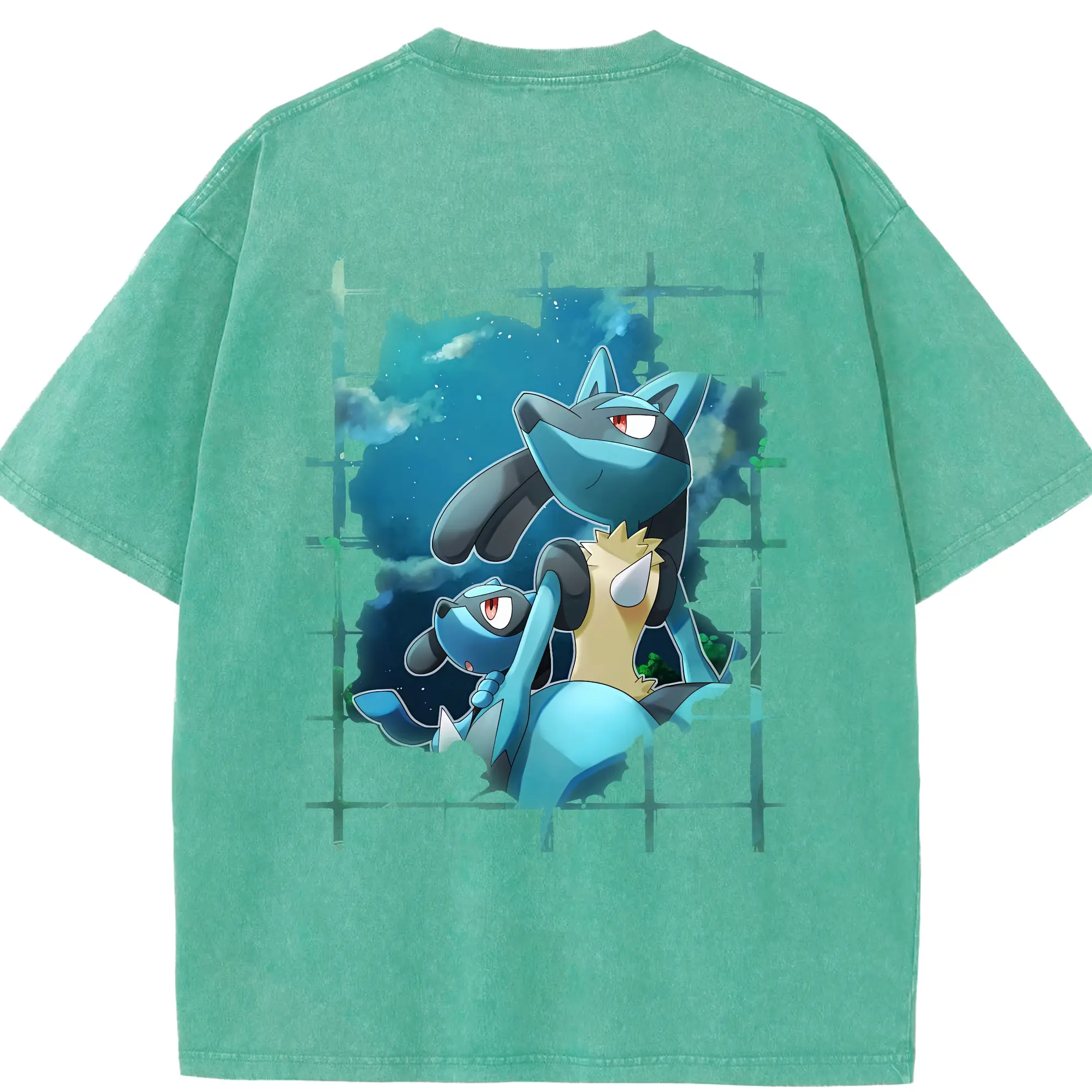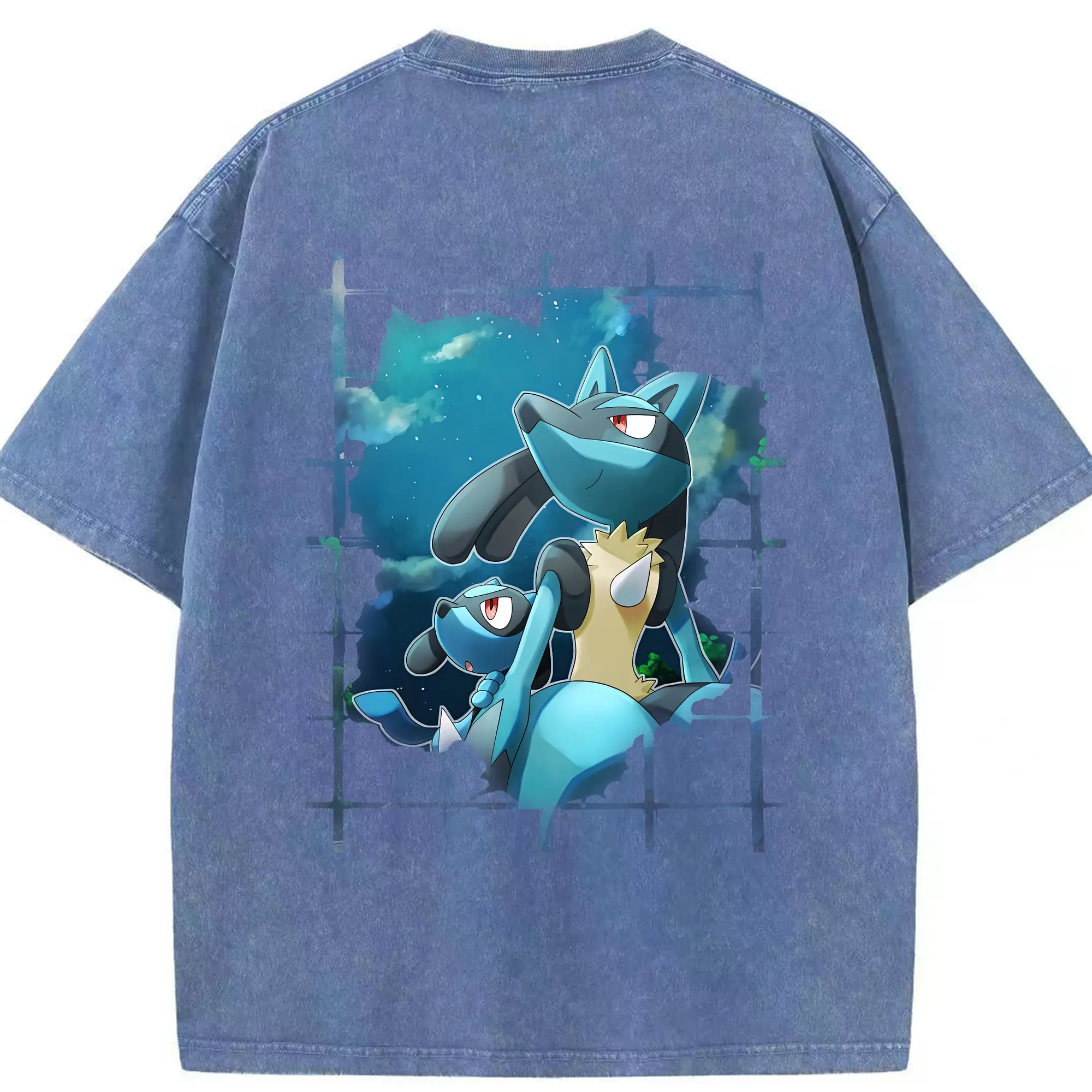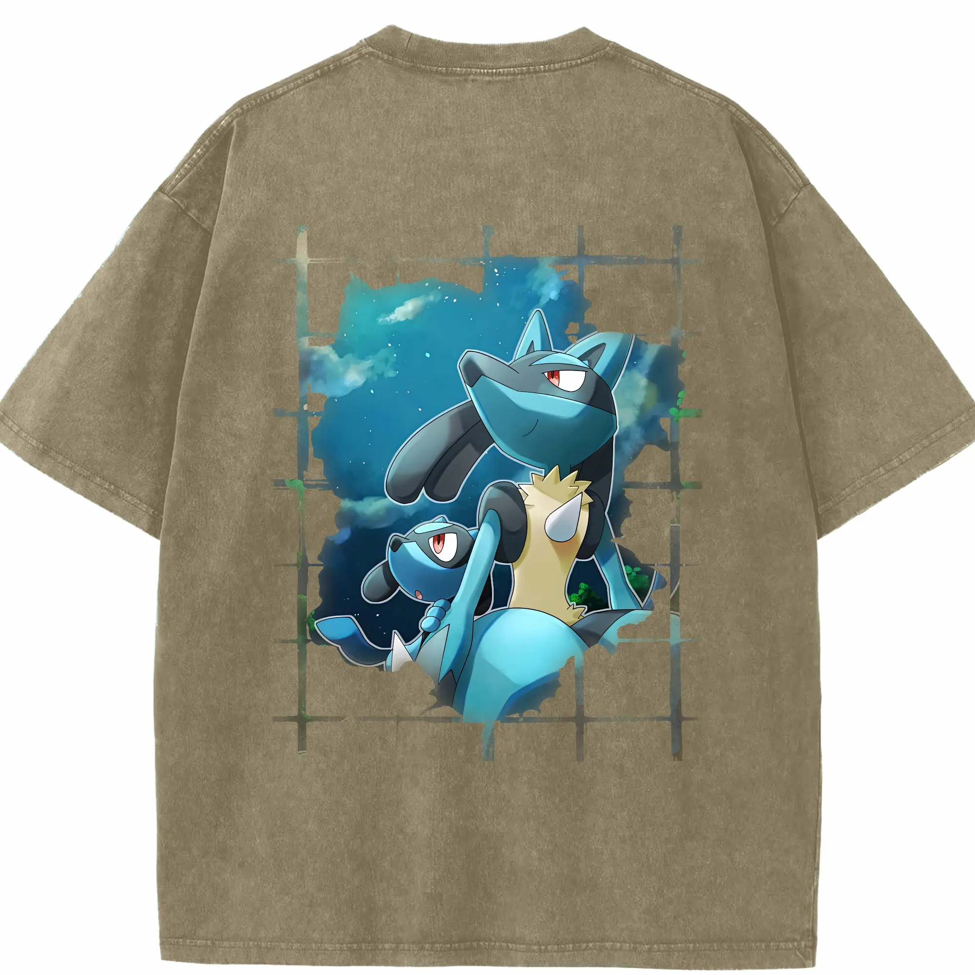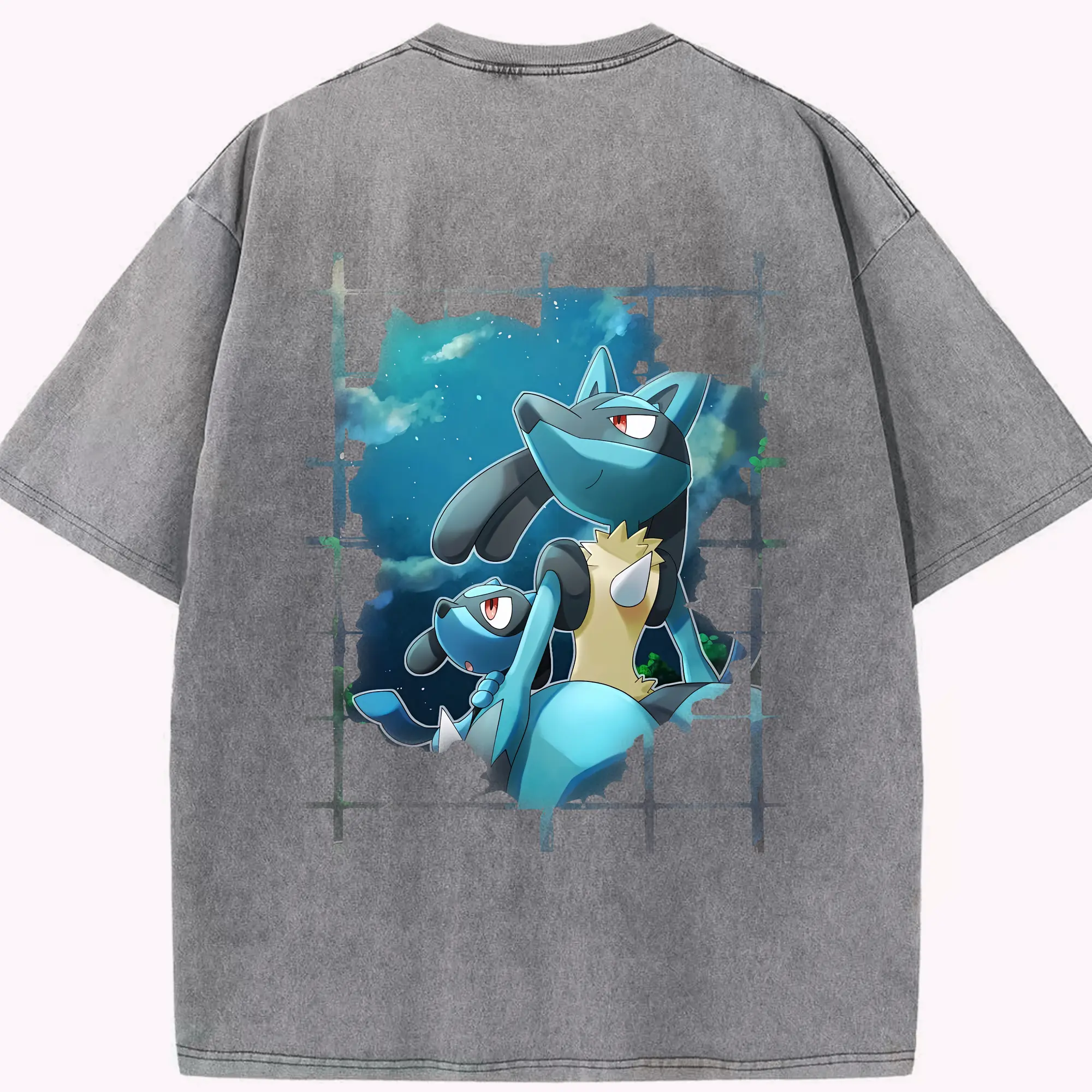 ポケモン グッズ,ルカリオ - 綿100% ヴィンテージ風 半袖Tシャツ ・ フロントプリント ・ 柔らか肌触り ・ 通気性 快適 ・ スポーツ カジュアル 外出用