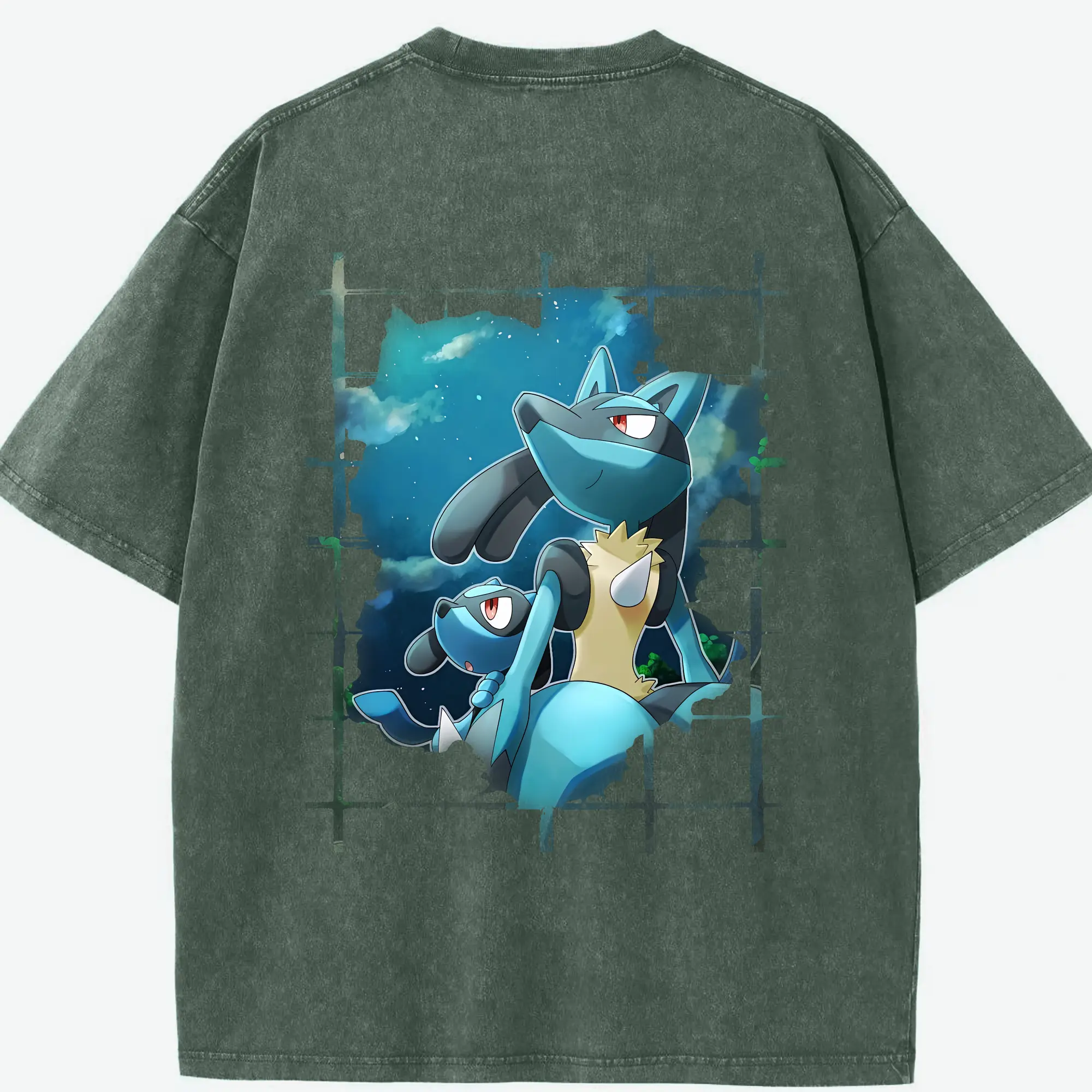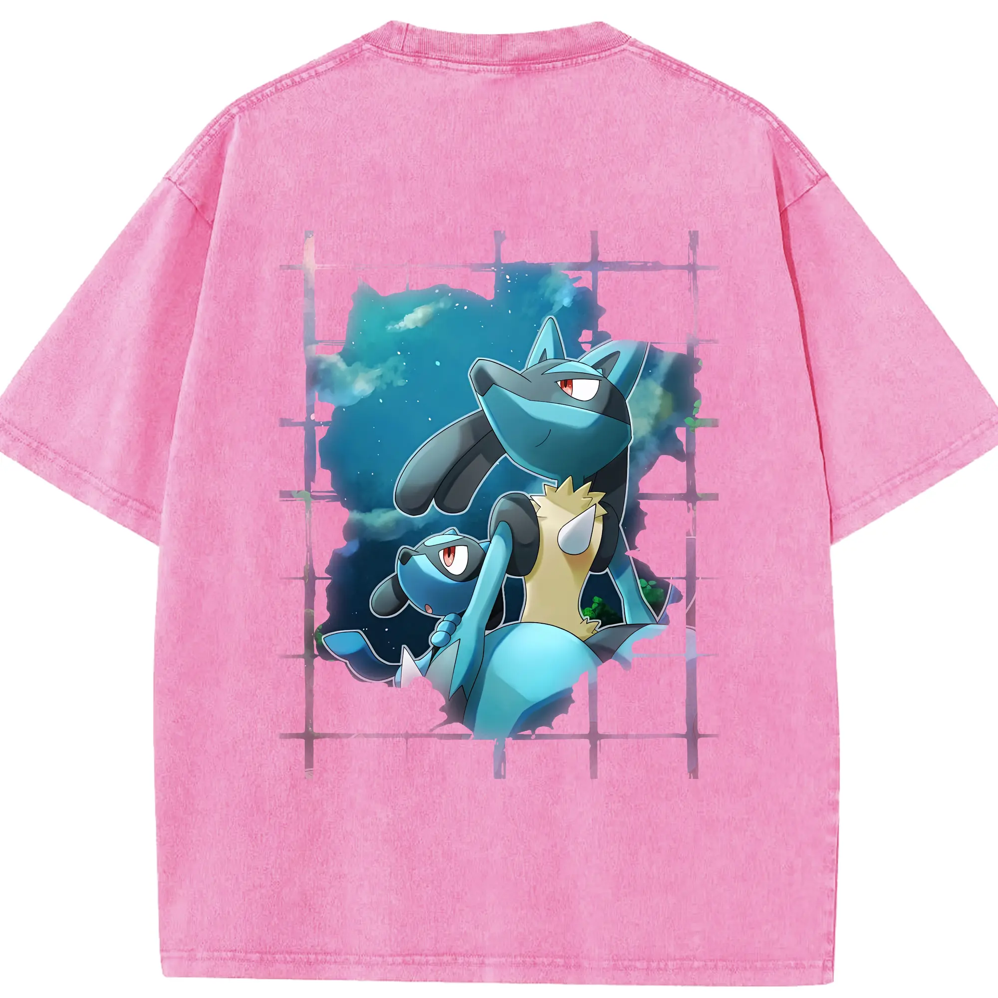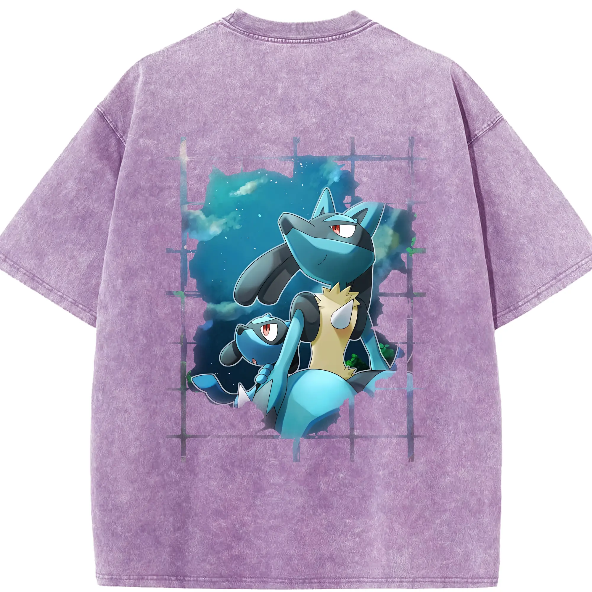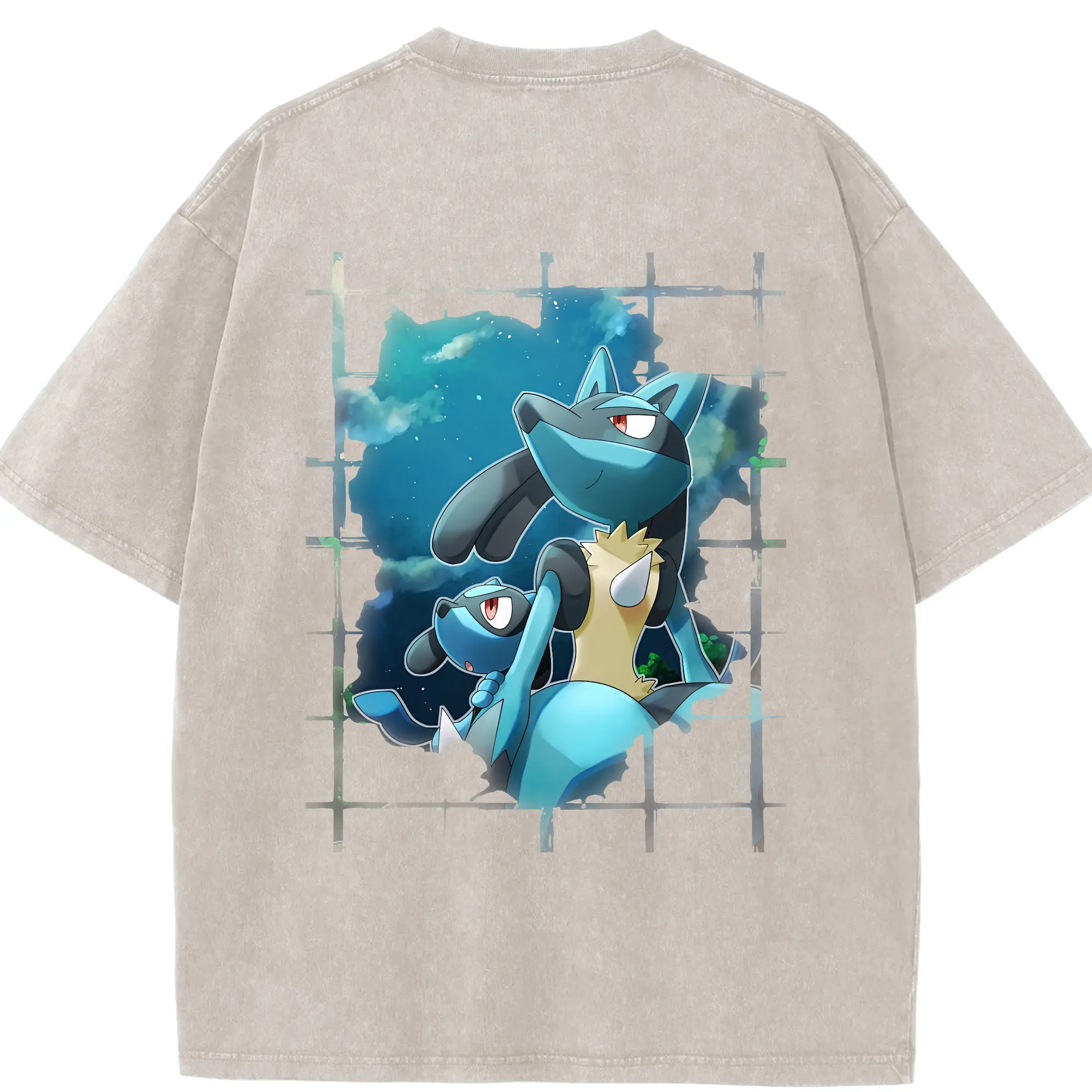 ポケモン グッズ,ルカリオ - 綿100% ヴィンテージ風 半袖Tシャツ ・ フロントプリント ・ 柔らか肌触り ・ 通気性 快適 ・ スポーツ カジュアル 外出用