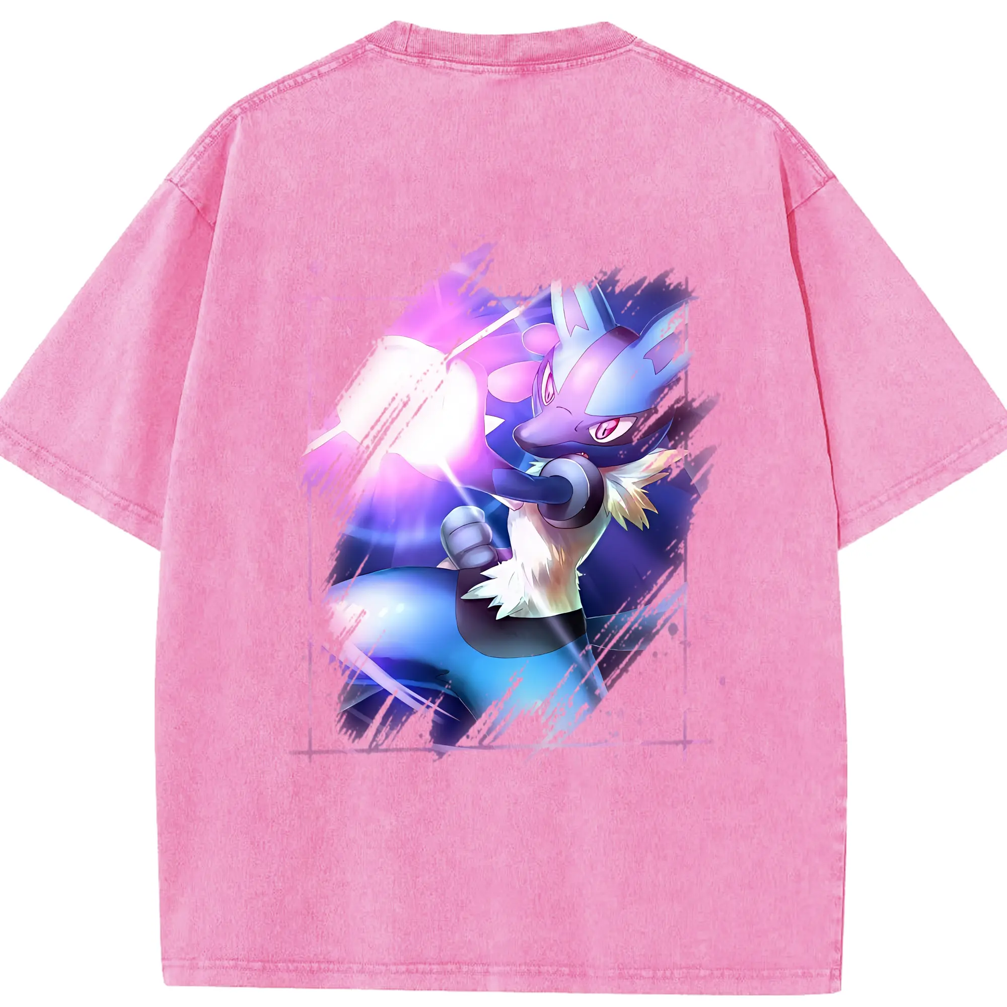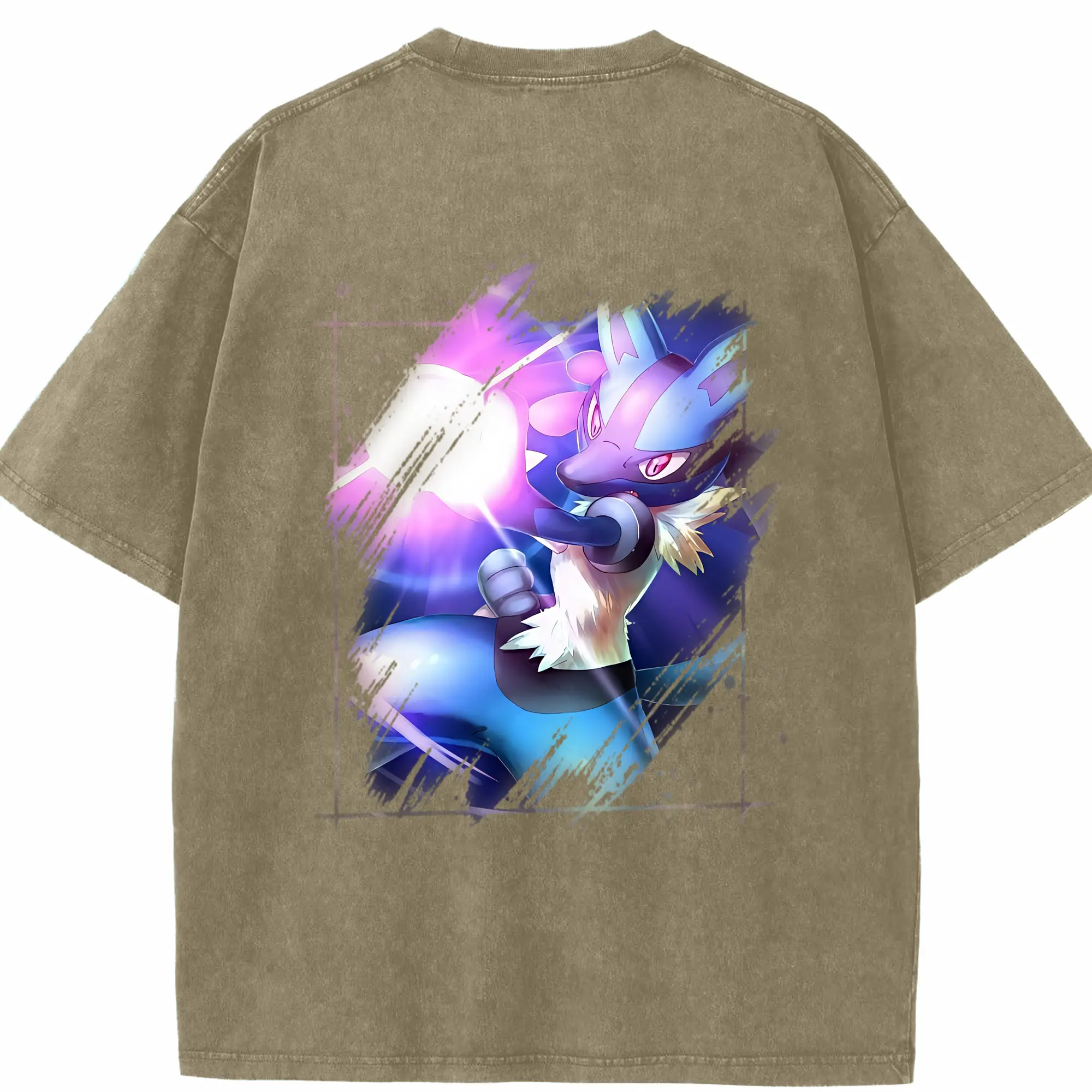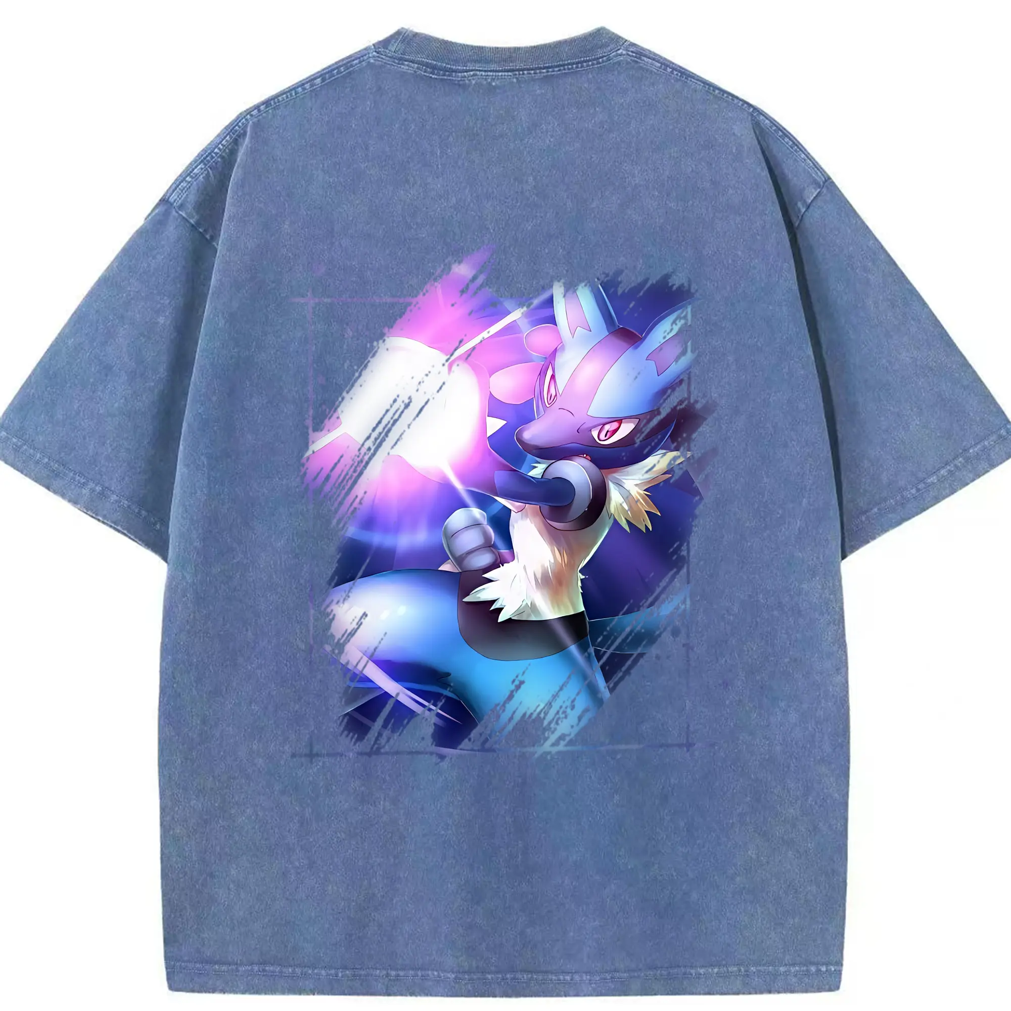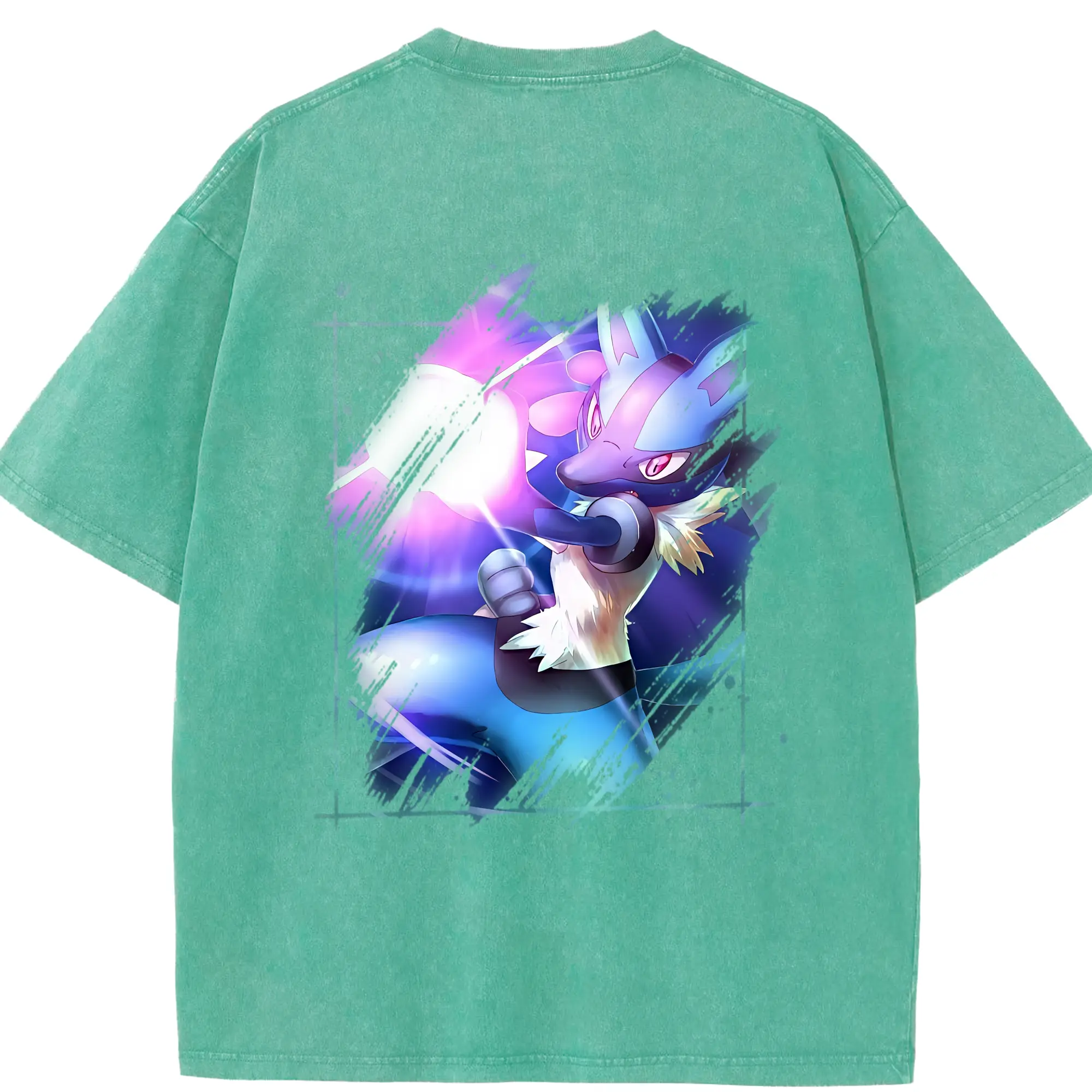 ポケモン グッズ,ルカリオ - 綿100% ヴィンテージ風 半袖Tシャツ ・ フロントプリント ・ 柔らか肌触り ・ 通気性 快適 ・ スポーツ カジュアル 外出用