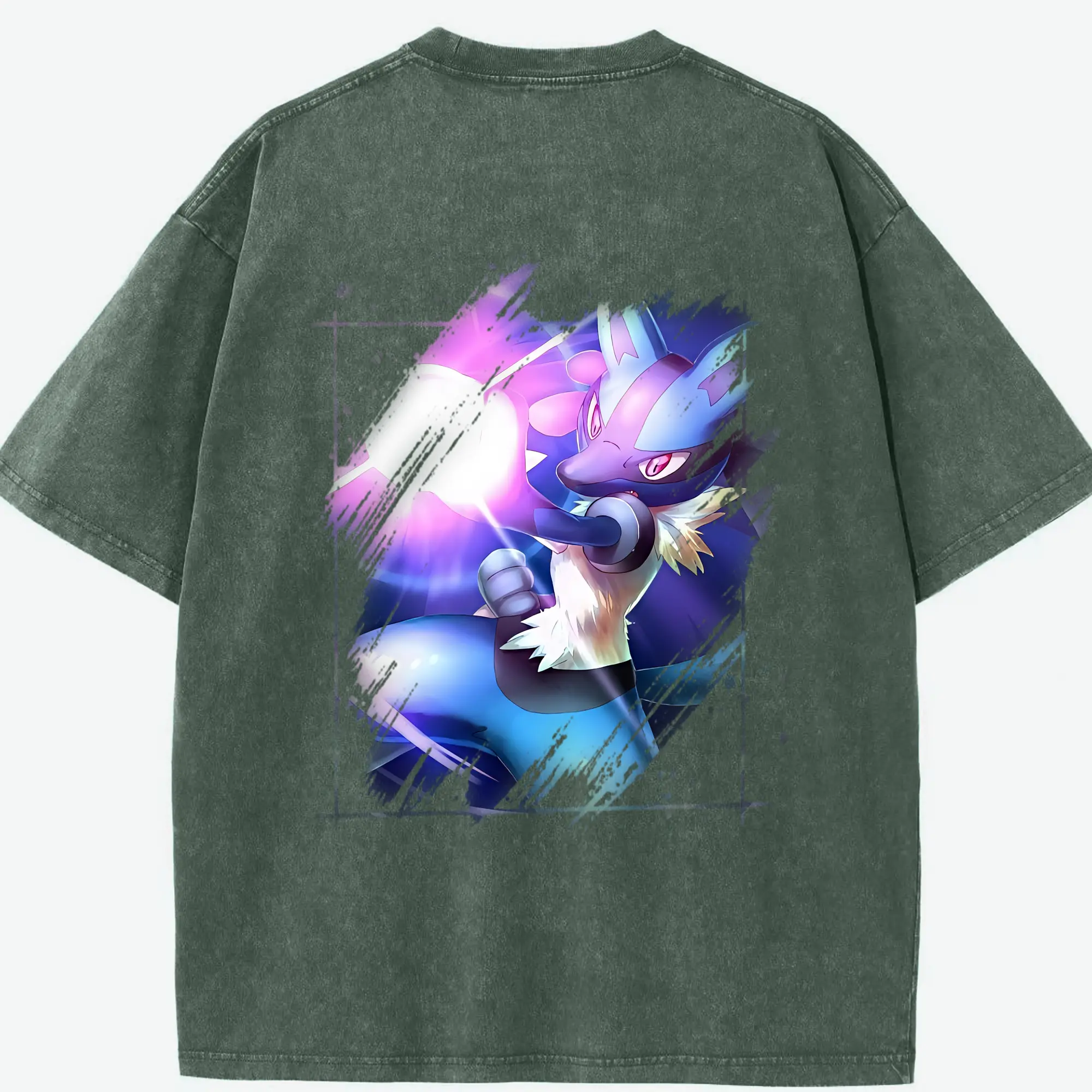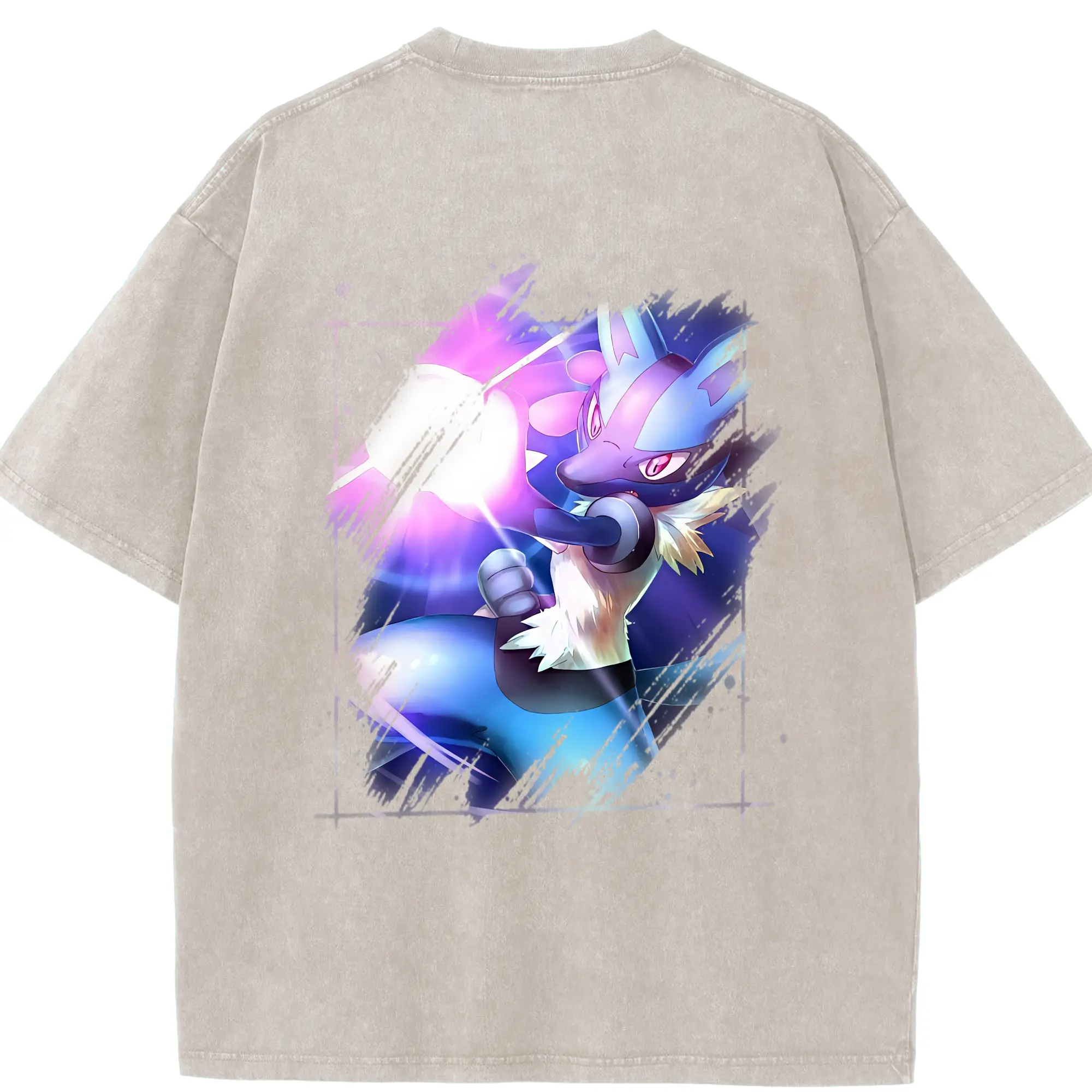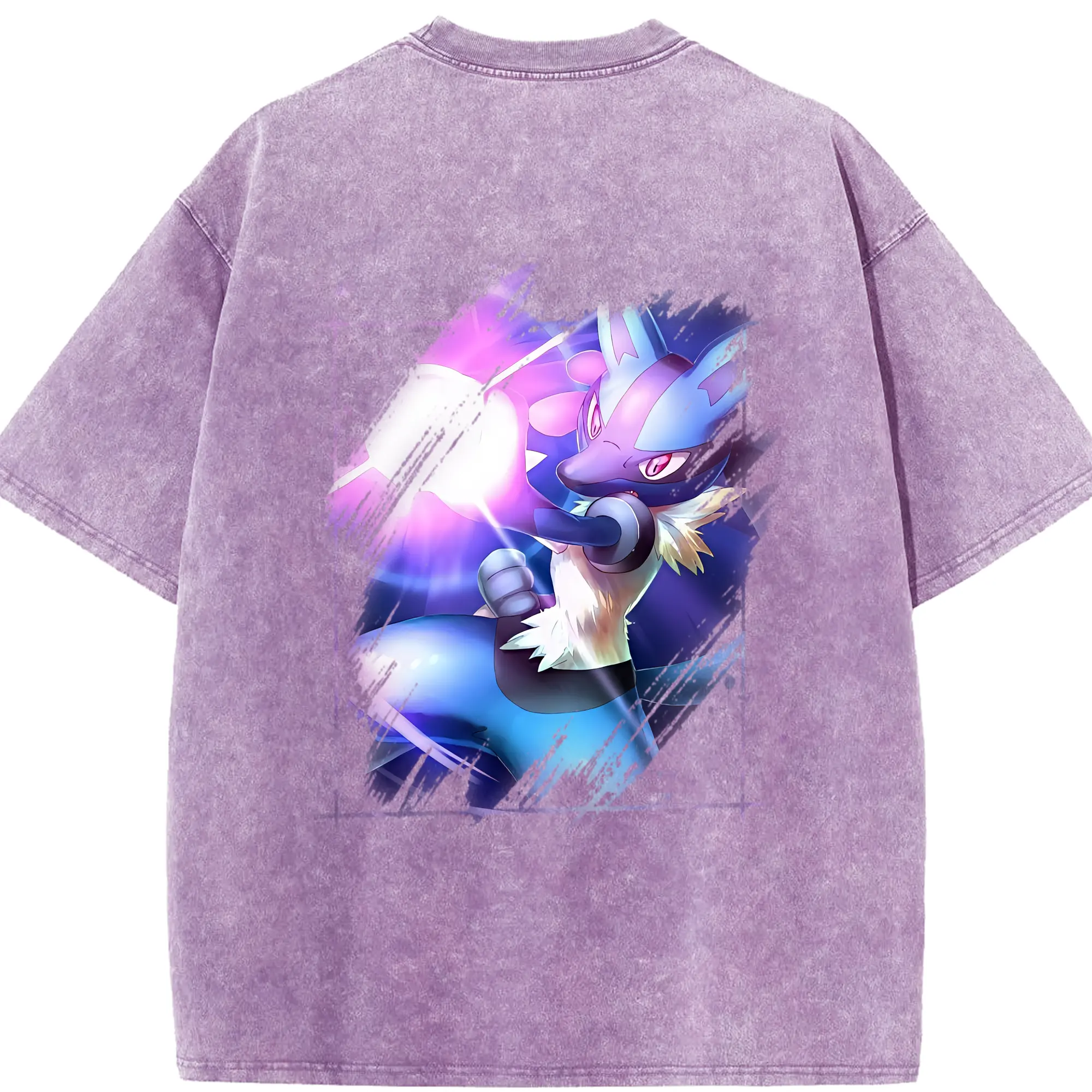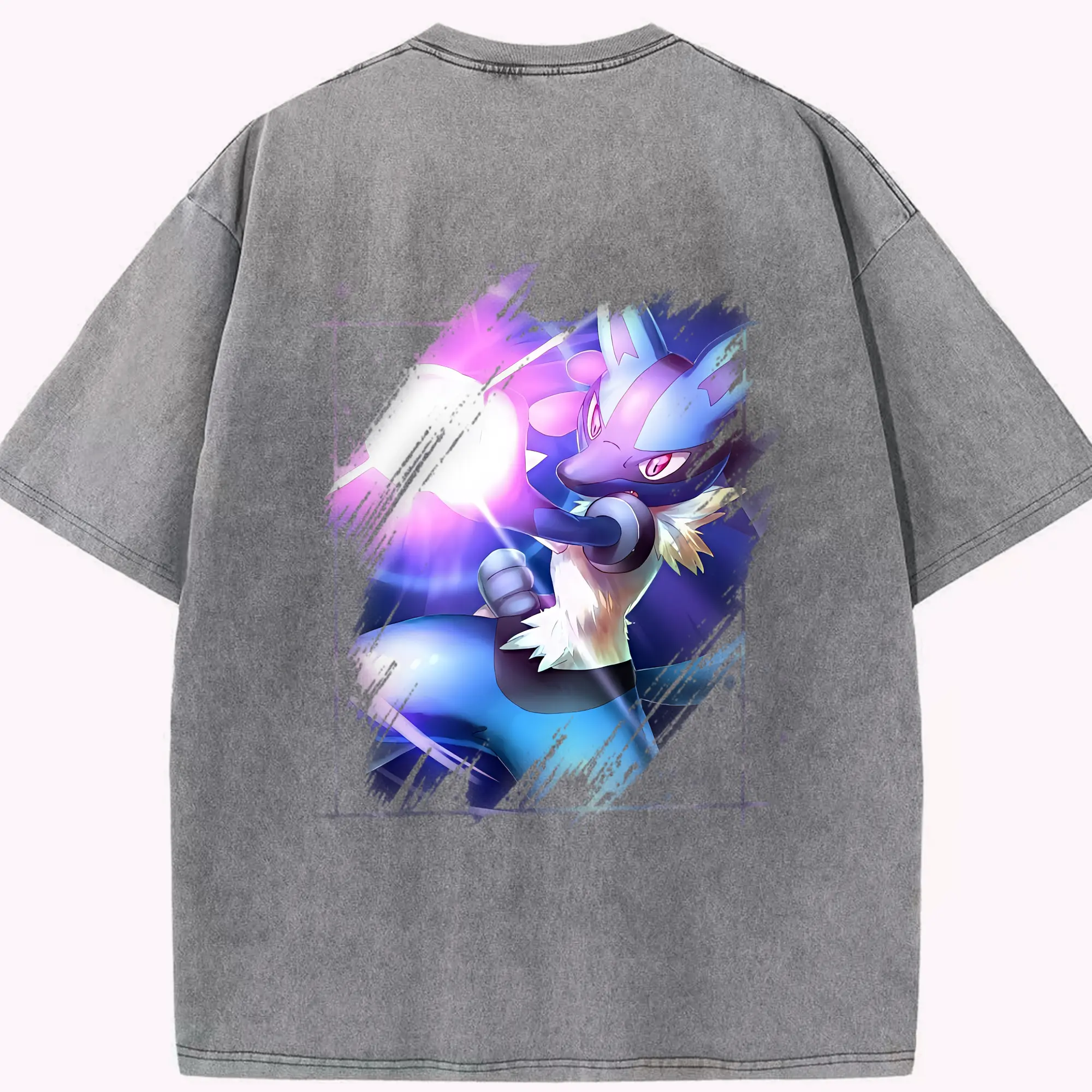 ポケモン グッズ,ルカリオ - 綿100% ヴィンテージ風 半袖Tシャツ ・ フロントプリント ・ 柔らか肌触り ・ 通気性 快適 ・ スポーツ カジュアル 外出用