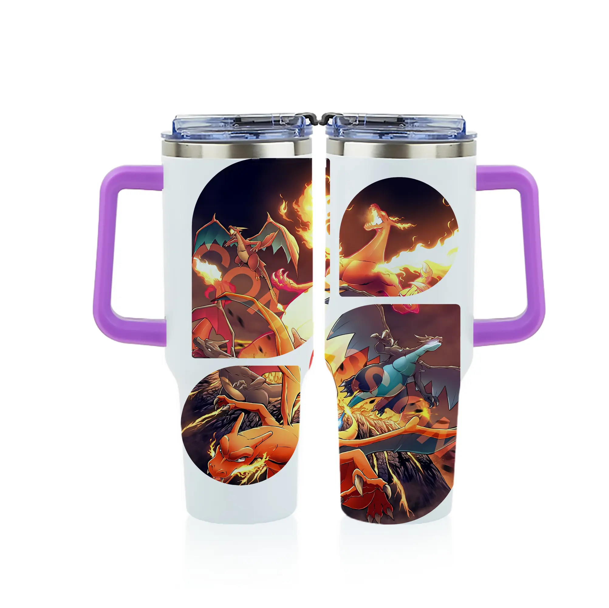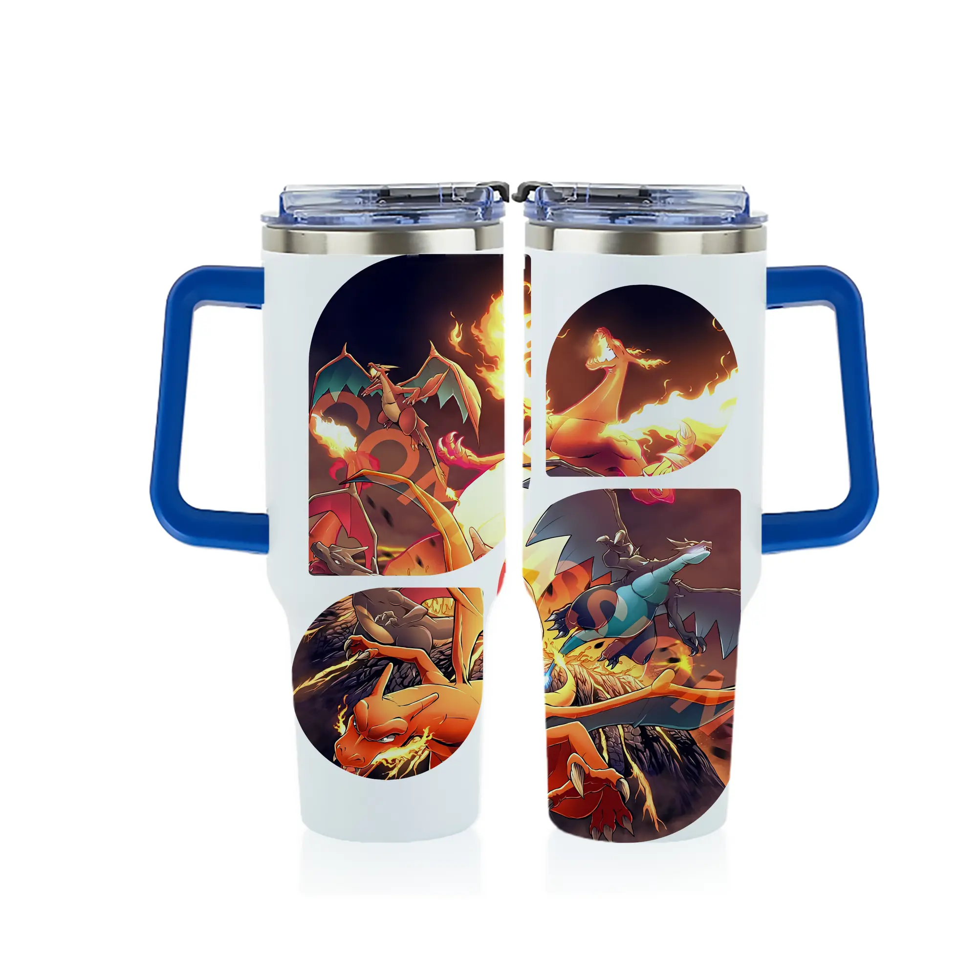 ポケモン グッズ,リザードン - 1200mL フルプリント車用タンブラー ・ 304ステンレス 内側 ・ 201ステンレス 外側 ・ 保温 保冷 ・ 通勤 ドライブ アウトドア用