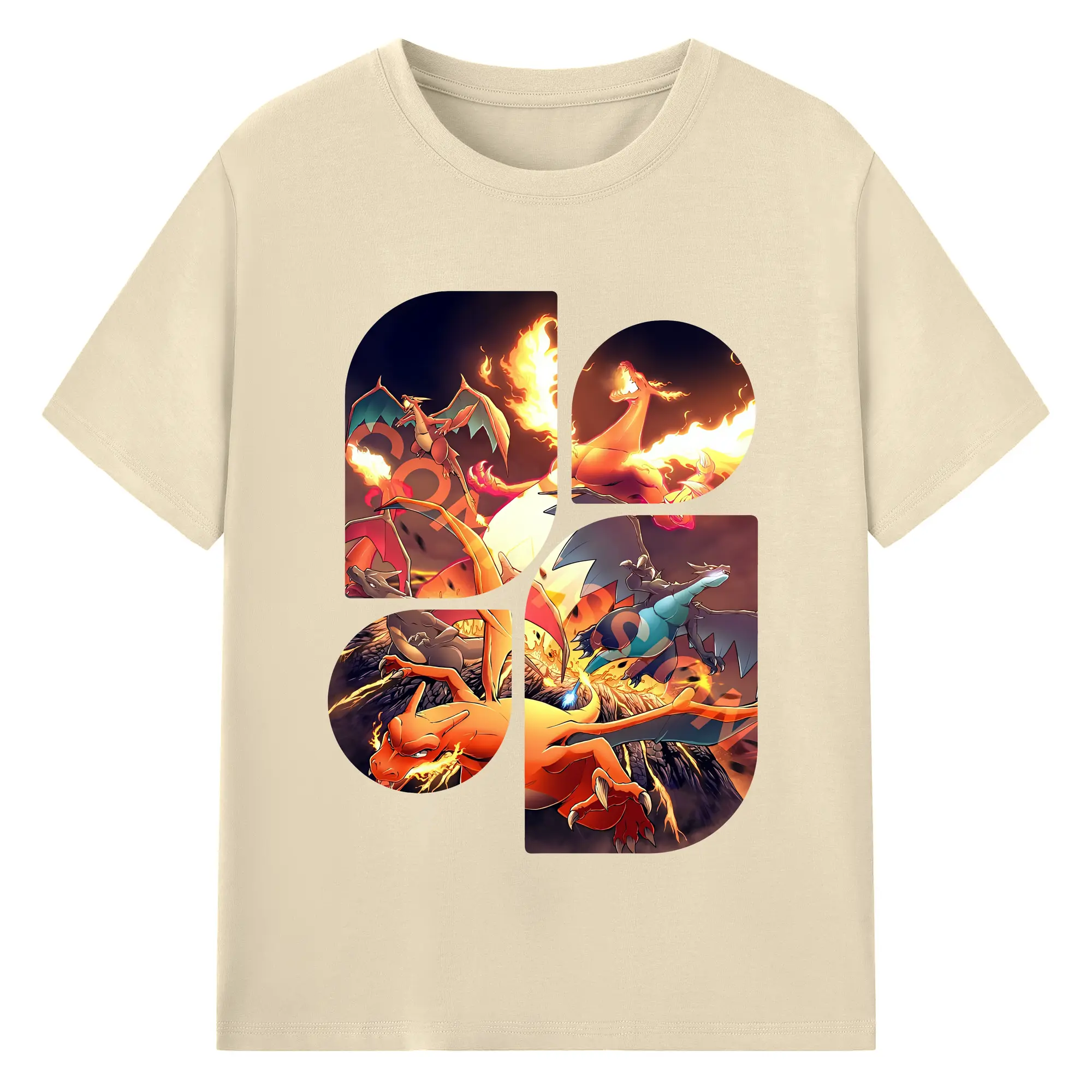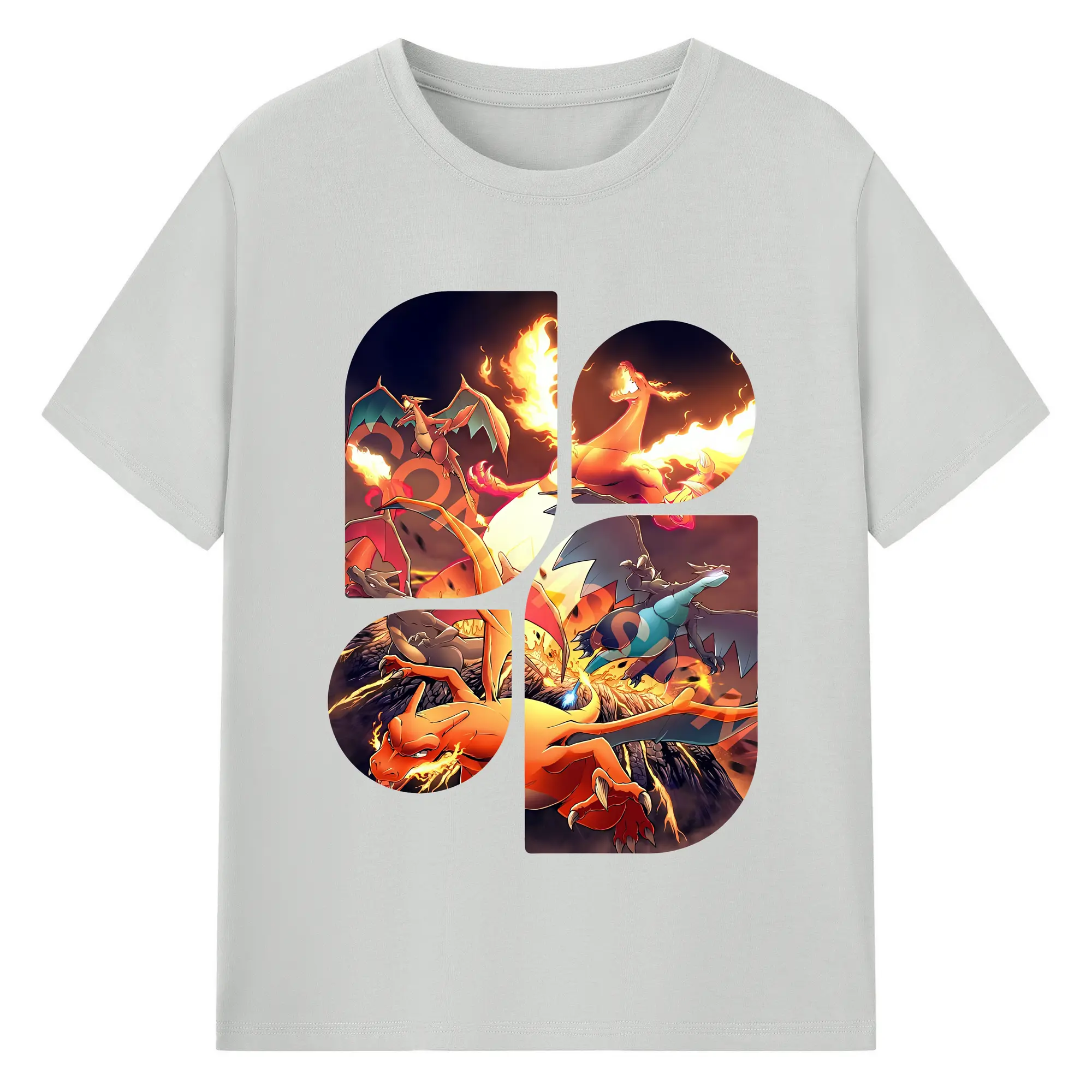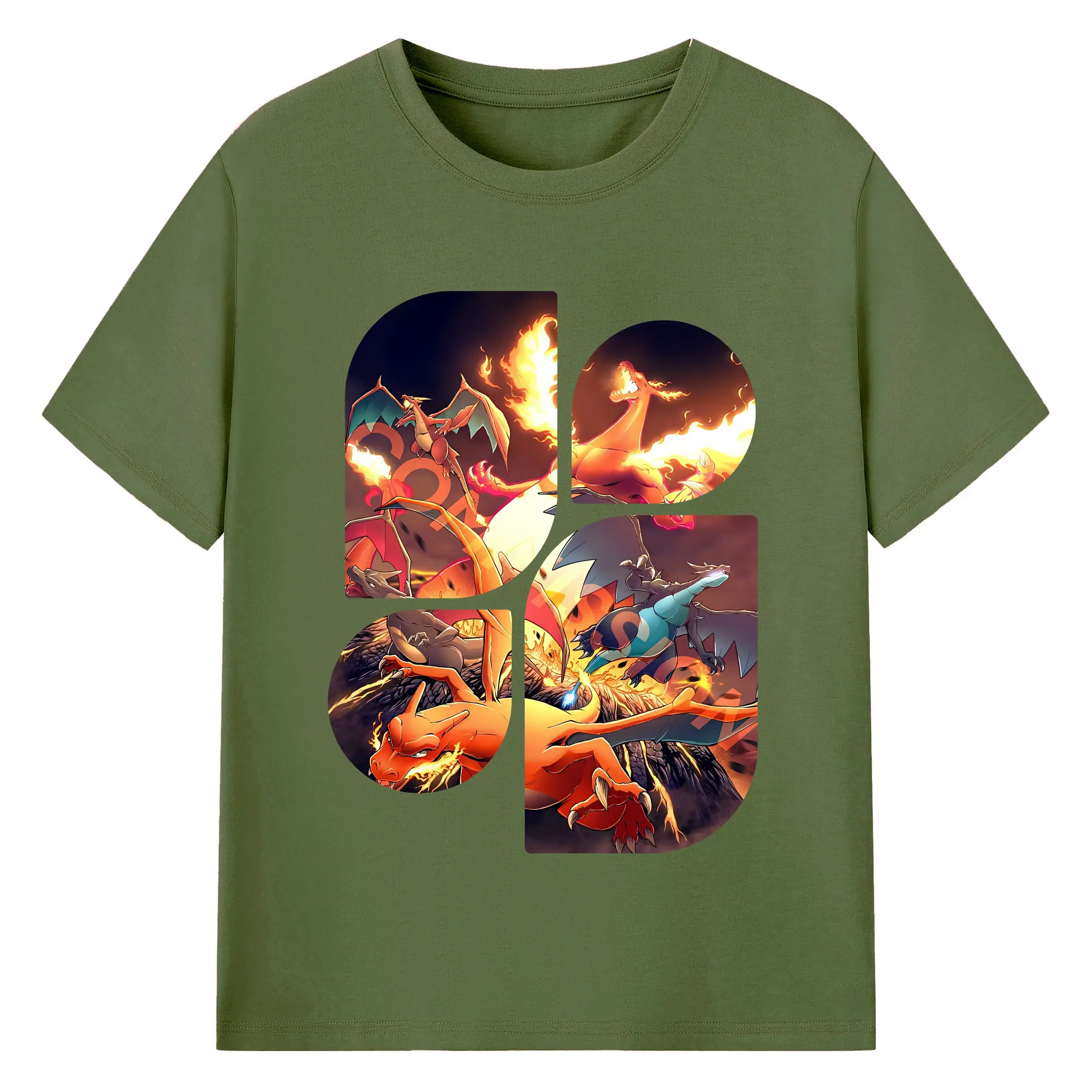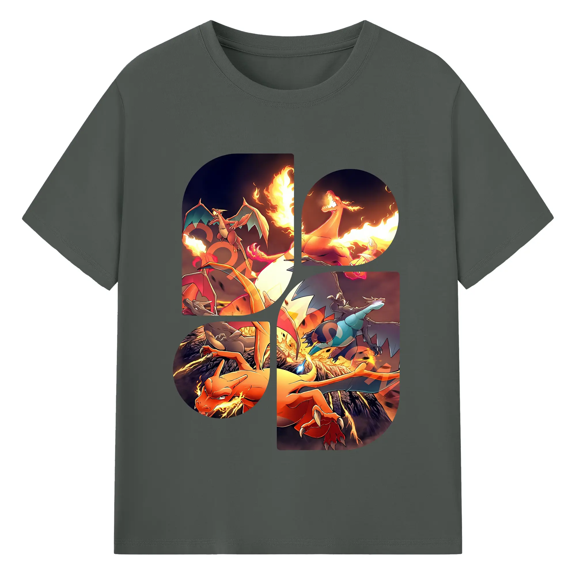 ポケモン グッズ,リザードン - 綿100% 半袖Tシャツ ・ バックプリント ・ 快適 通気性 ・ 日常使い 散歩 スポーツ用