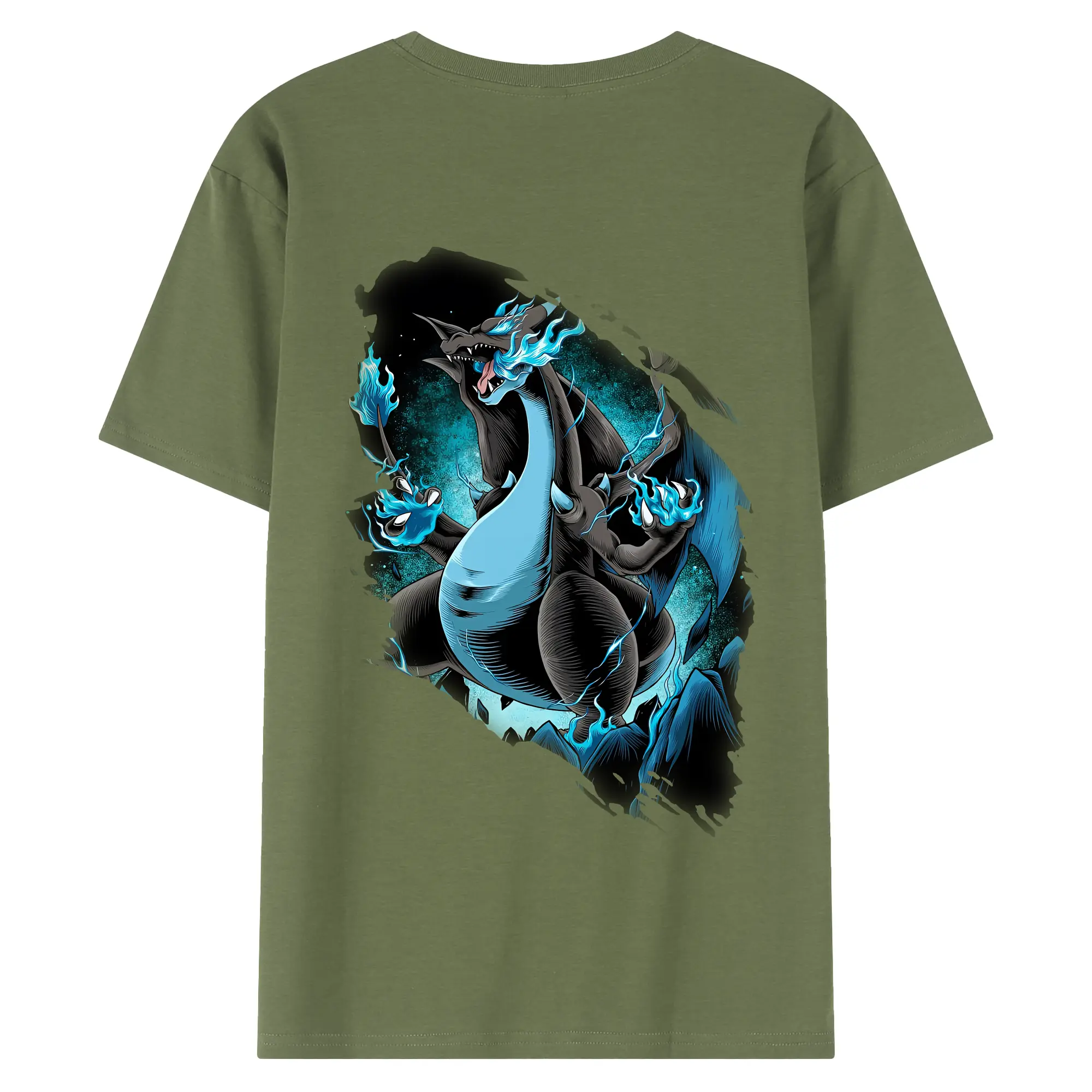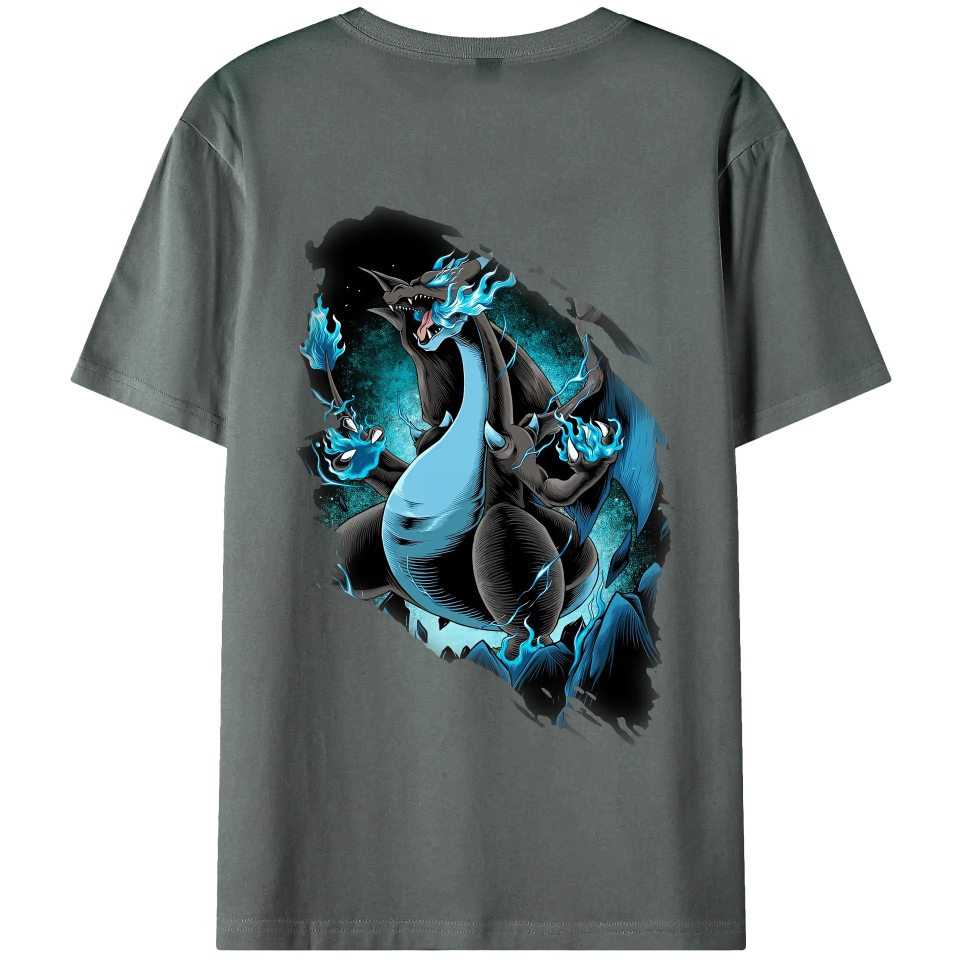 ポケモン グッズ,リザードン - 綿100% 半袖Tシャツ ・ フロントプリント ・ 快適 通気性 ・ 日常使い 散歩 スポーツ用