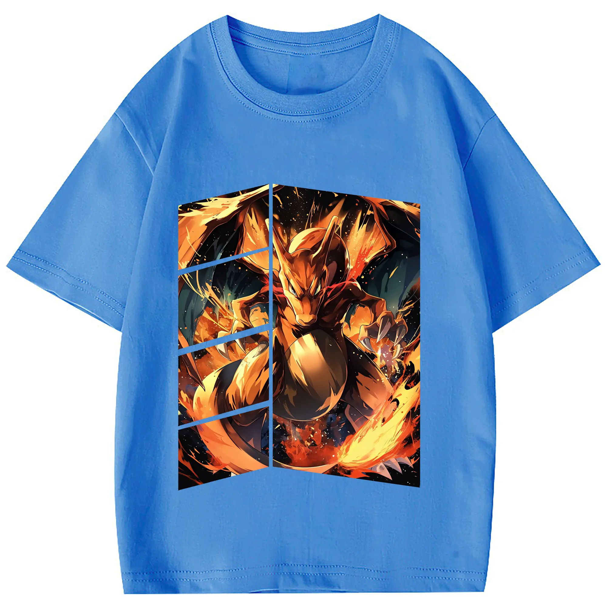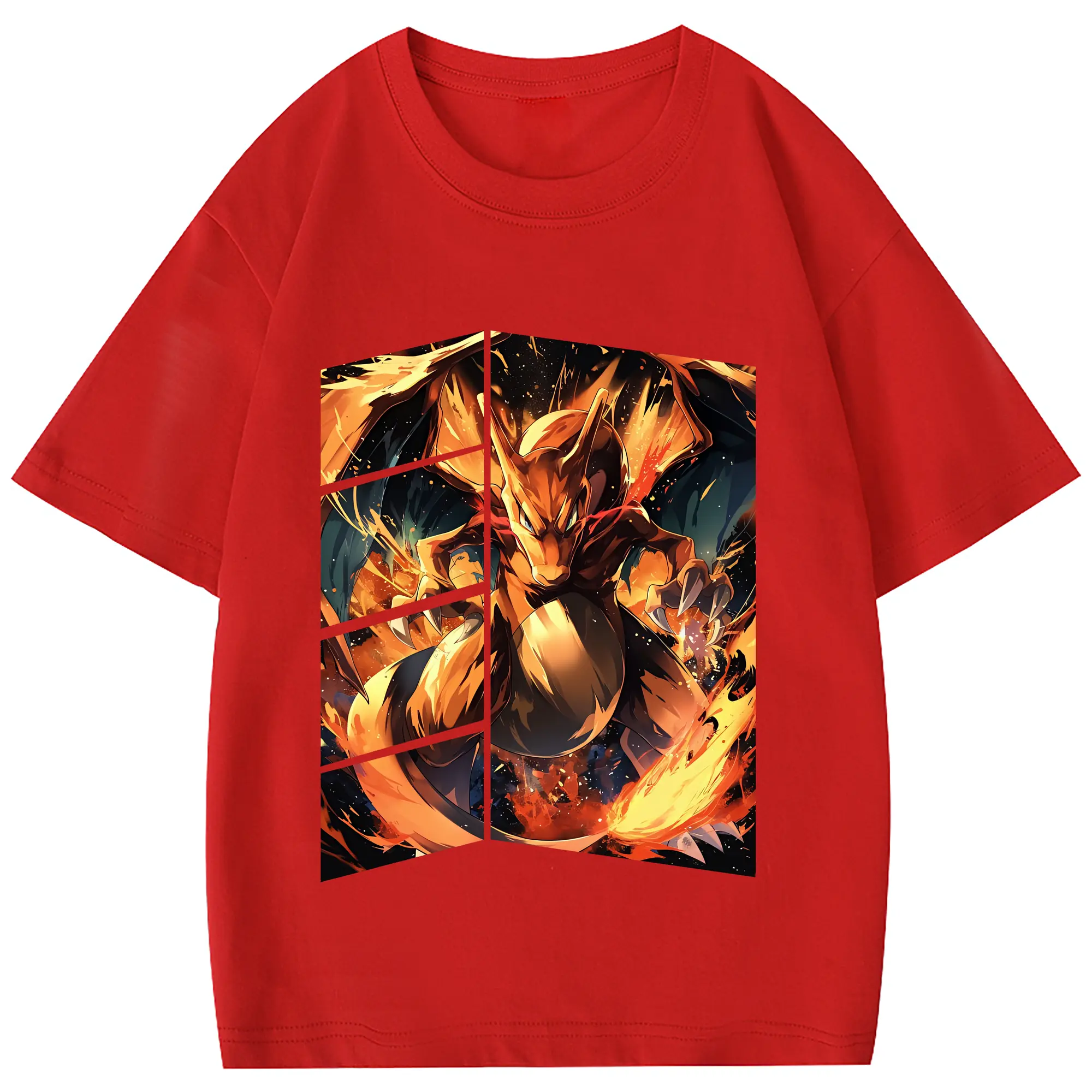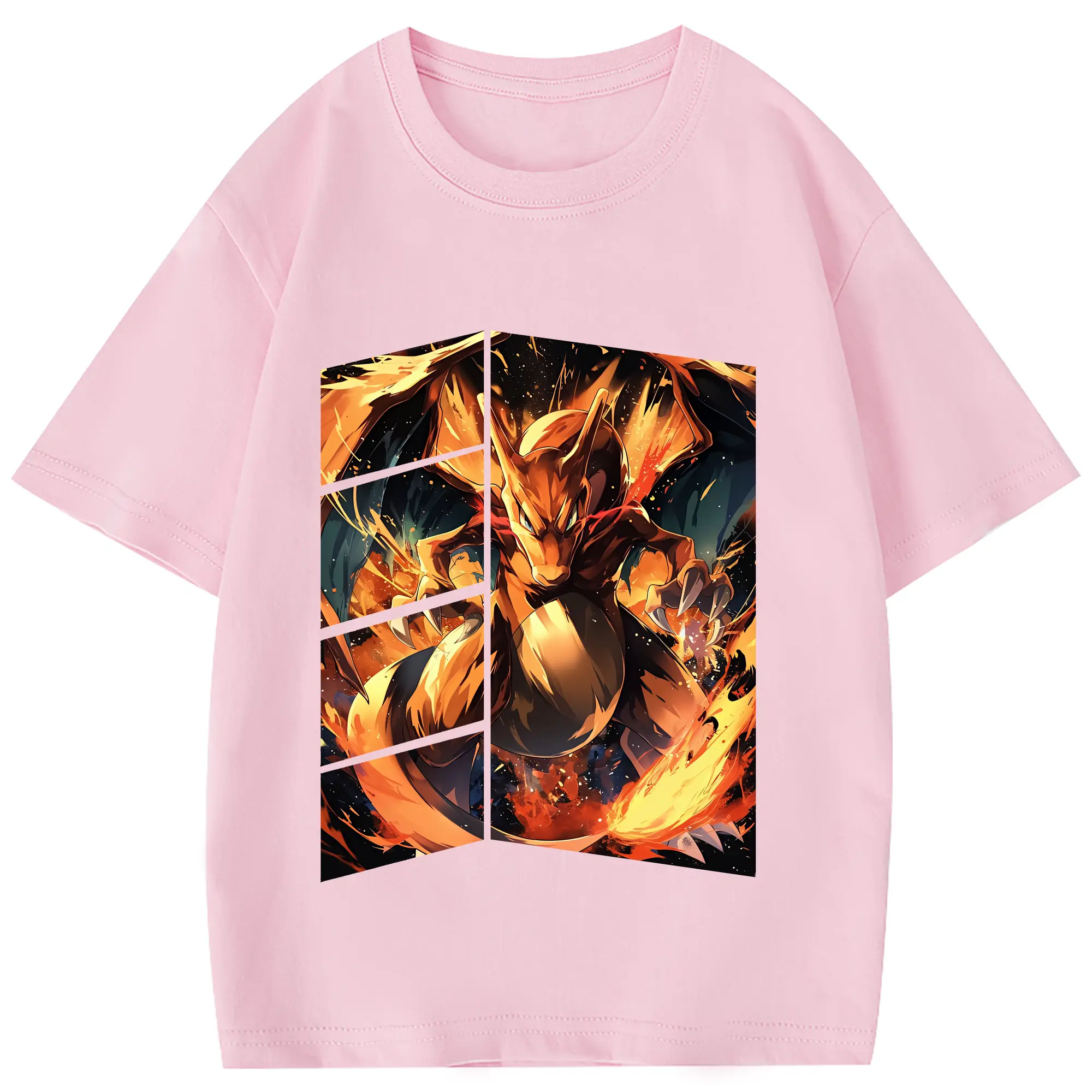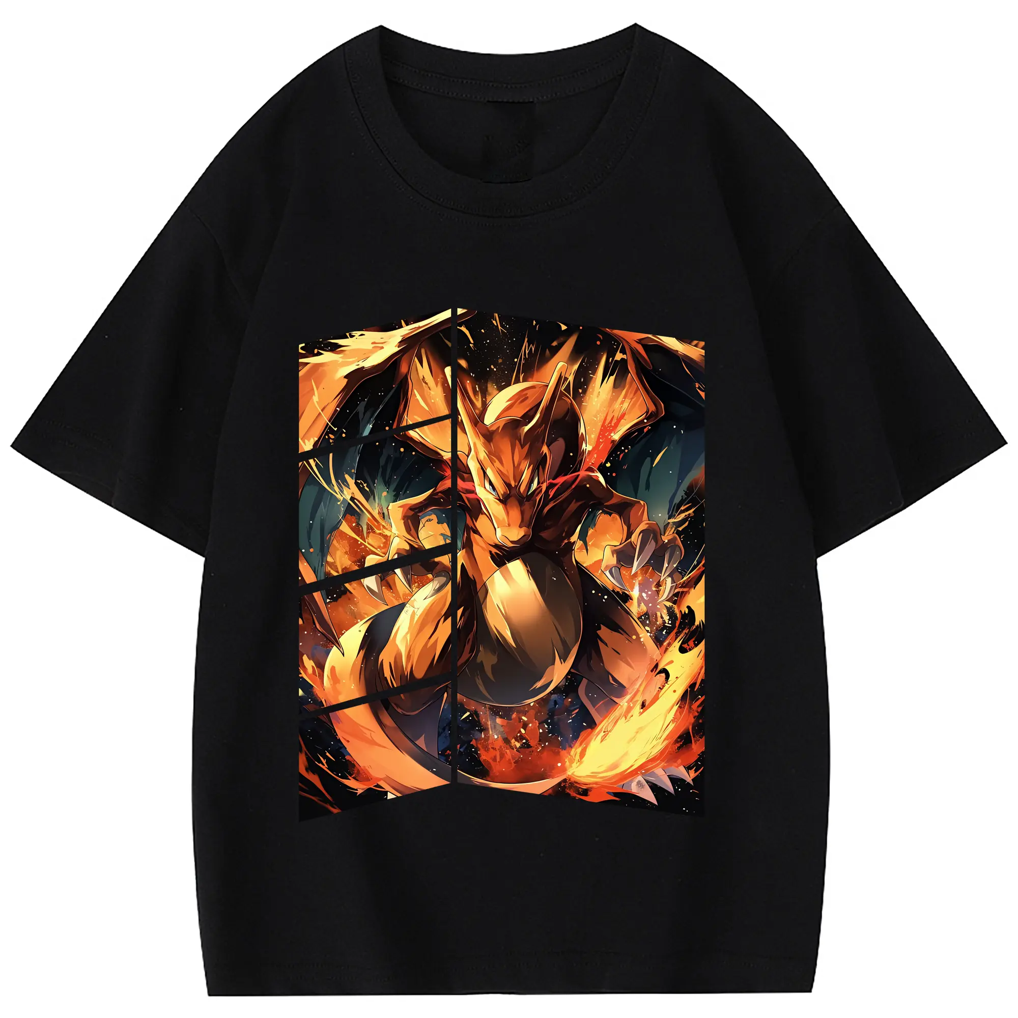 ポケモン グッズ,リザードン - 綿100% 半袖Tシャツ ・ フロントプリント ・ 快適 通気性 ・ 日常使い 散歩 スポーツ用