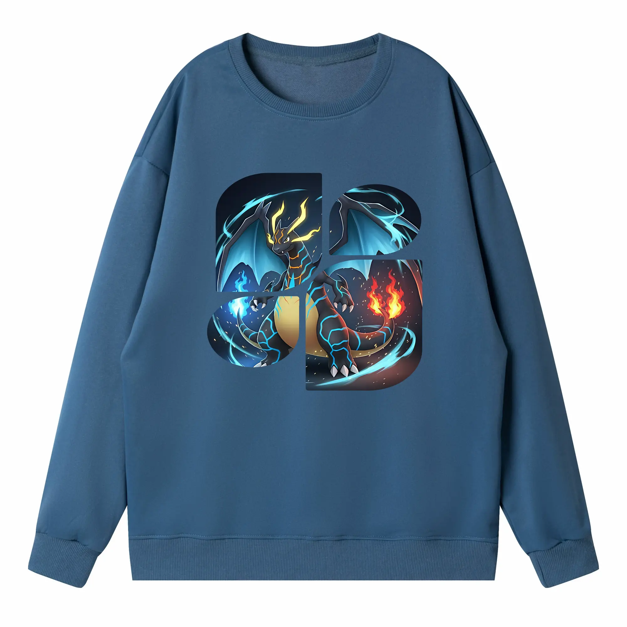 ポケモン グッズ,リザードン - 薄手 クルーネック スウェット 裏毛260g · ポリエステル 春秋向け カジュアル 男女兼用 · トレーナー デイリー スポーツ 散歩に最適