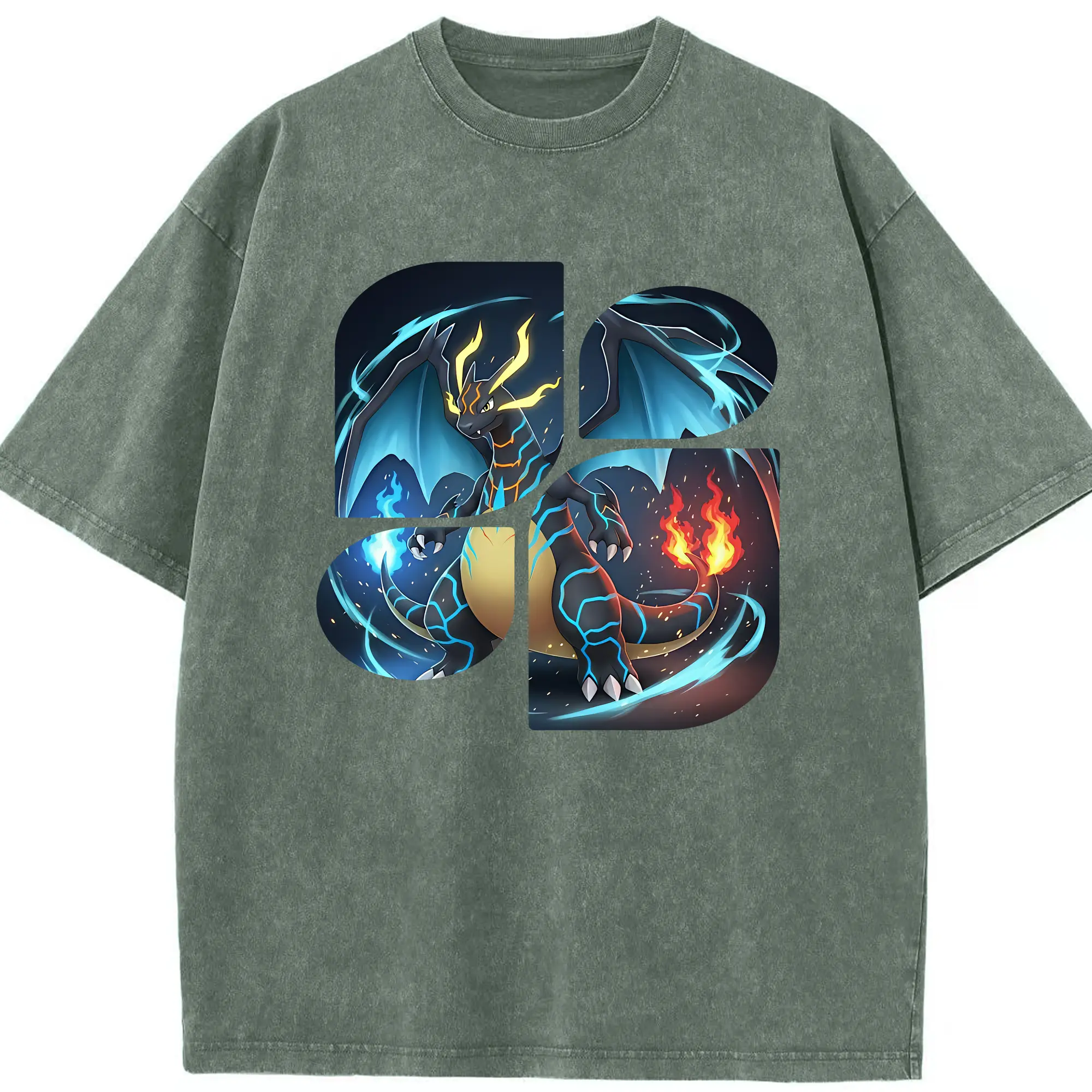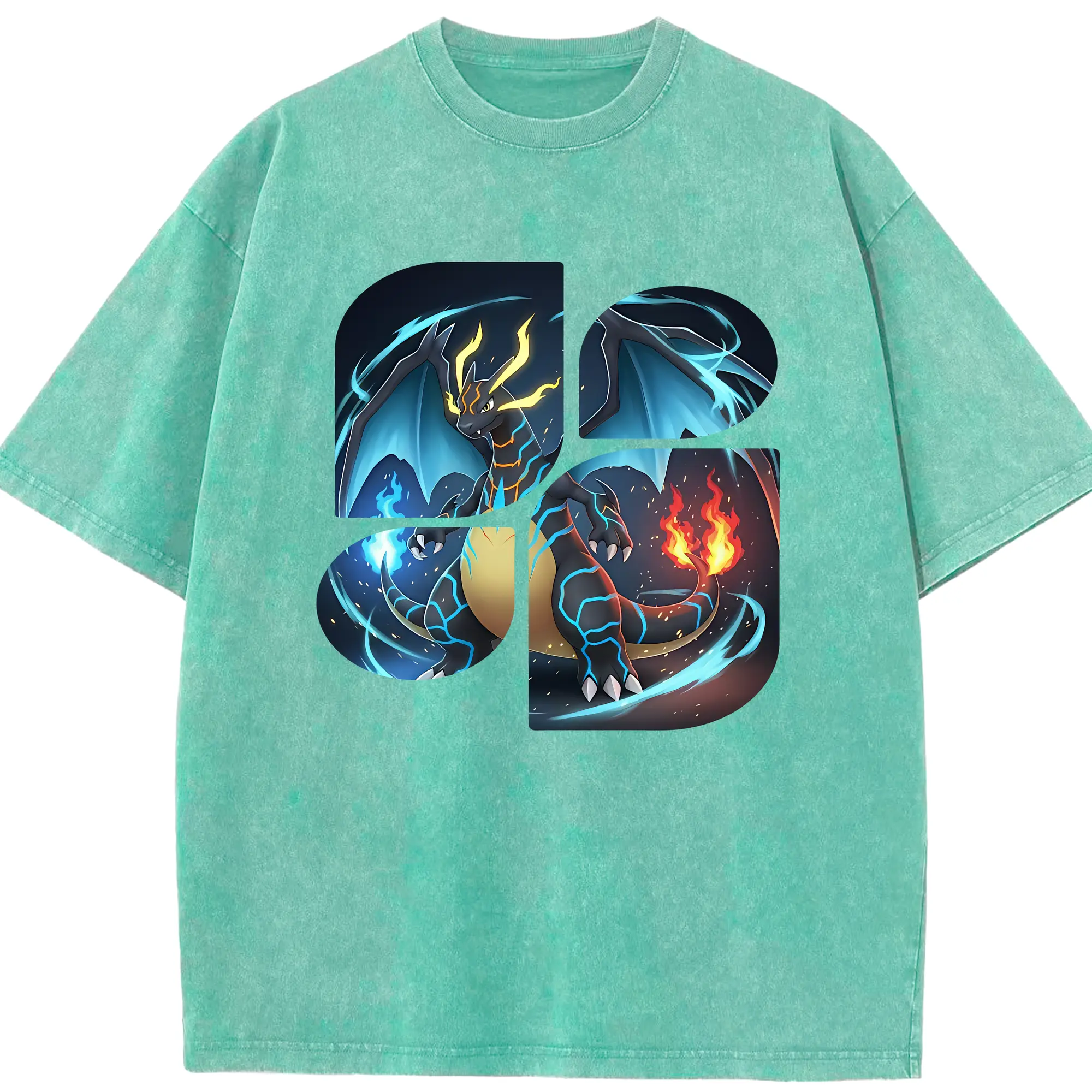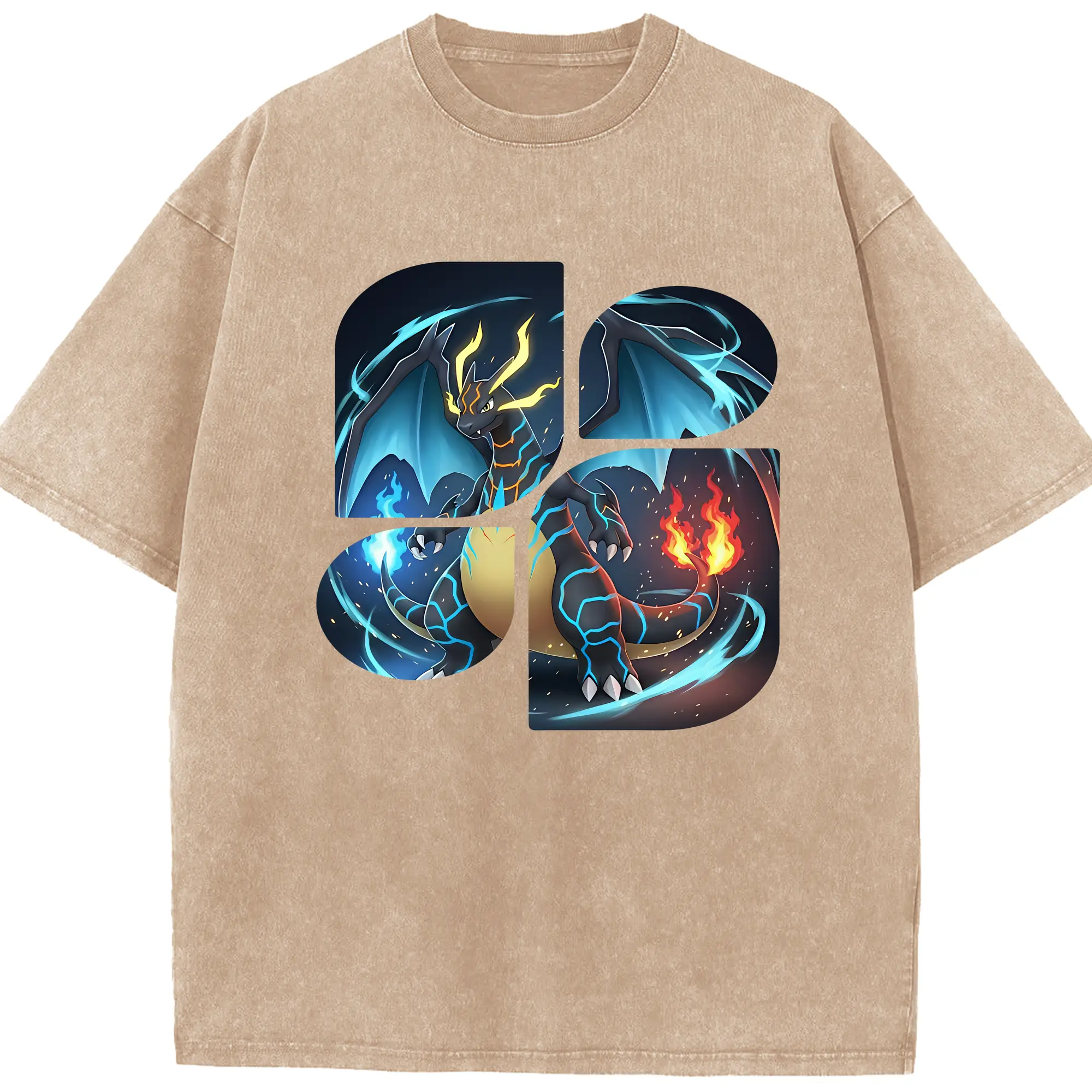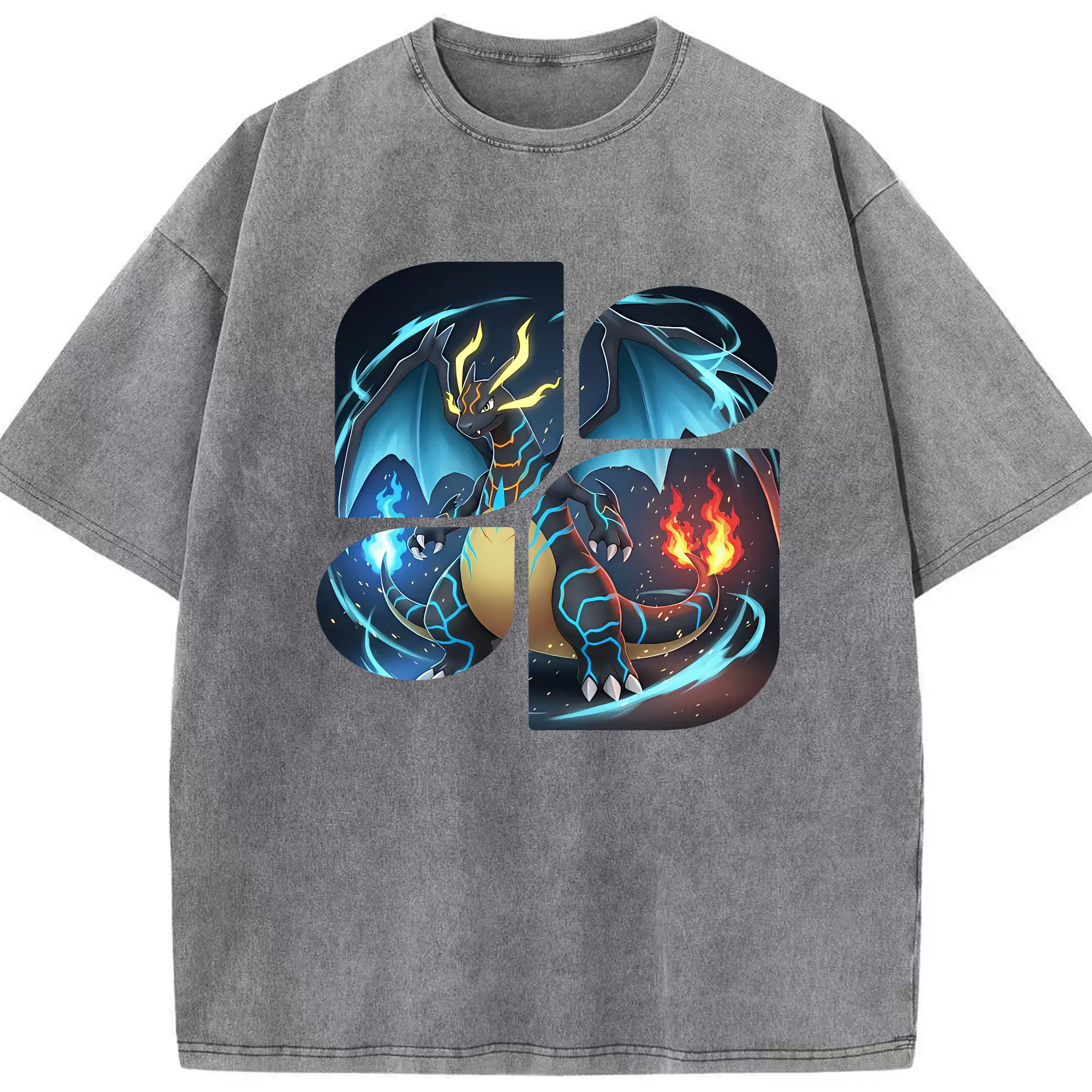 ポケモン グッズ,リザードン - 綿100% ヴィンテージ風 半袖Tシャツ ・ 背面プリント ・ 柔らか肌触り ・ 通気性 快適 ・ スポーツ カジュアル 外出用