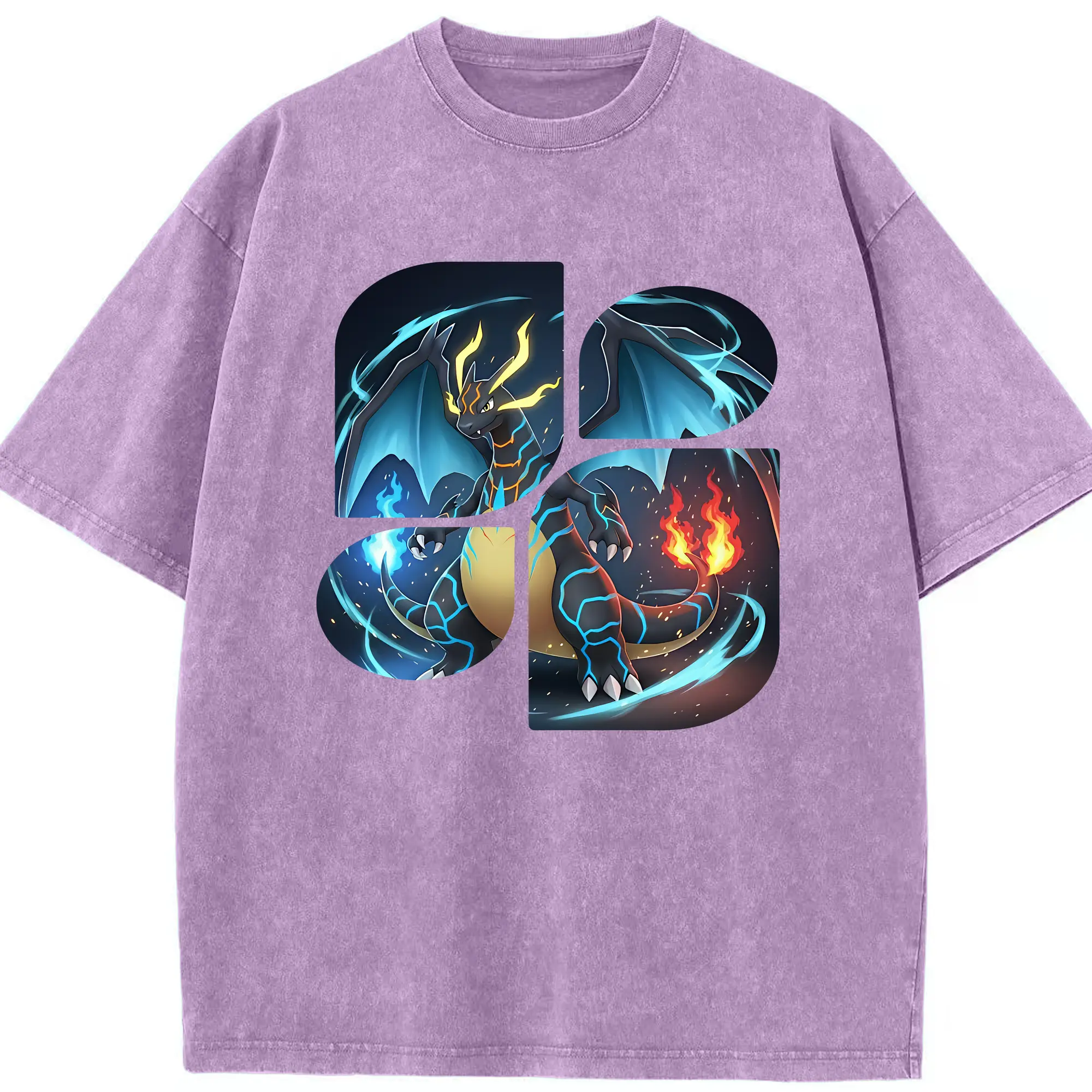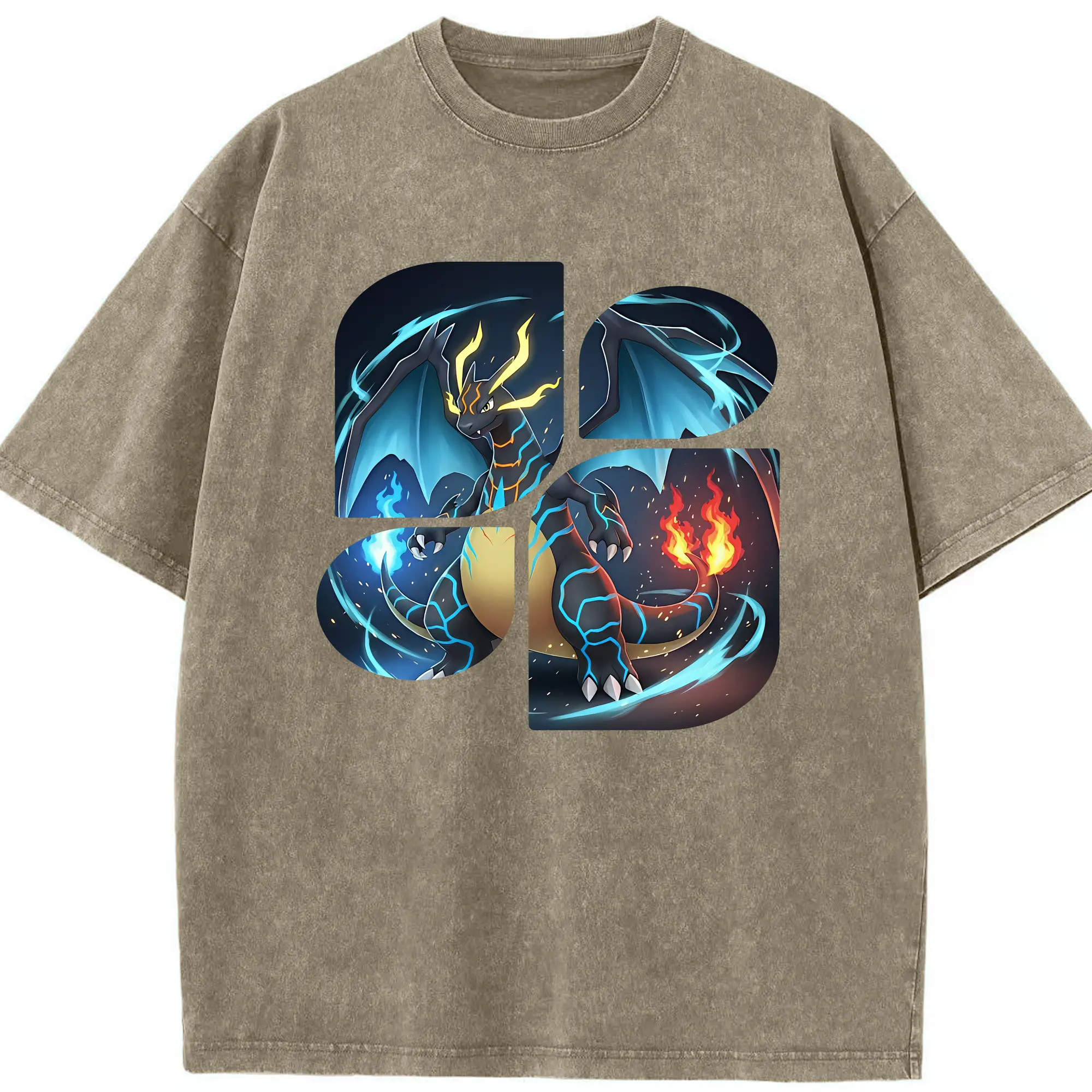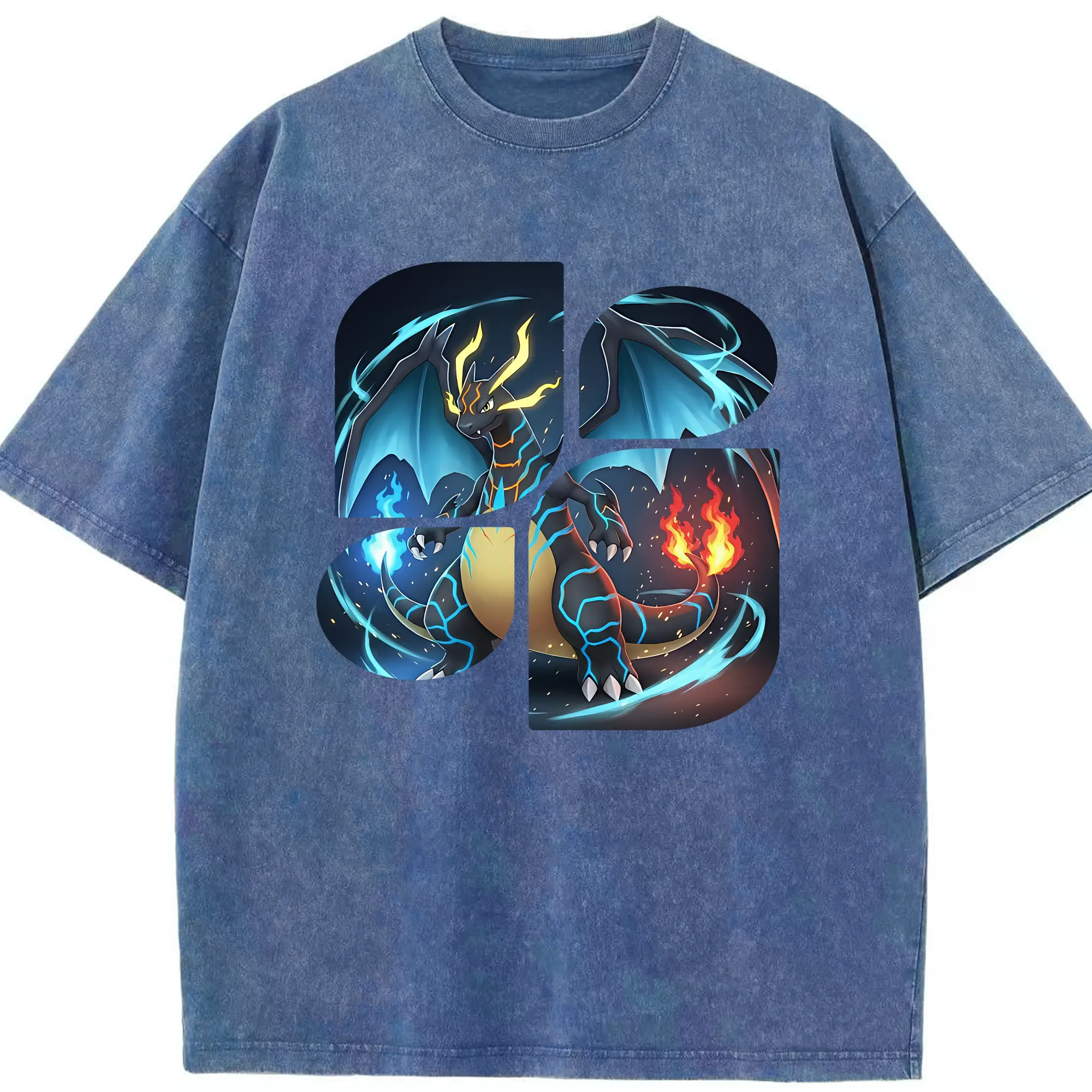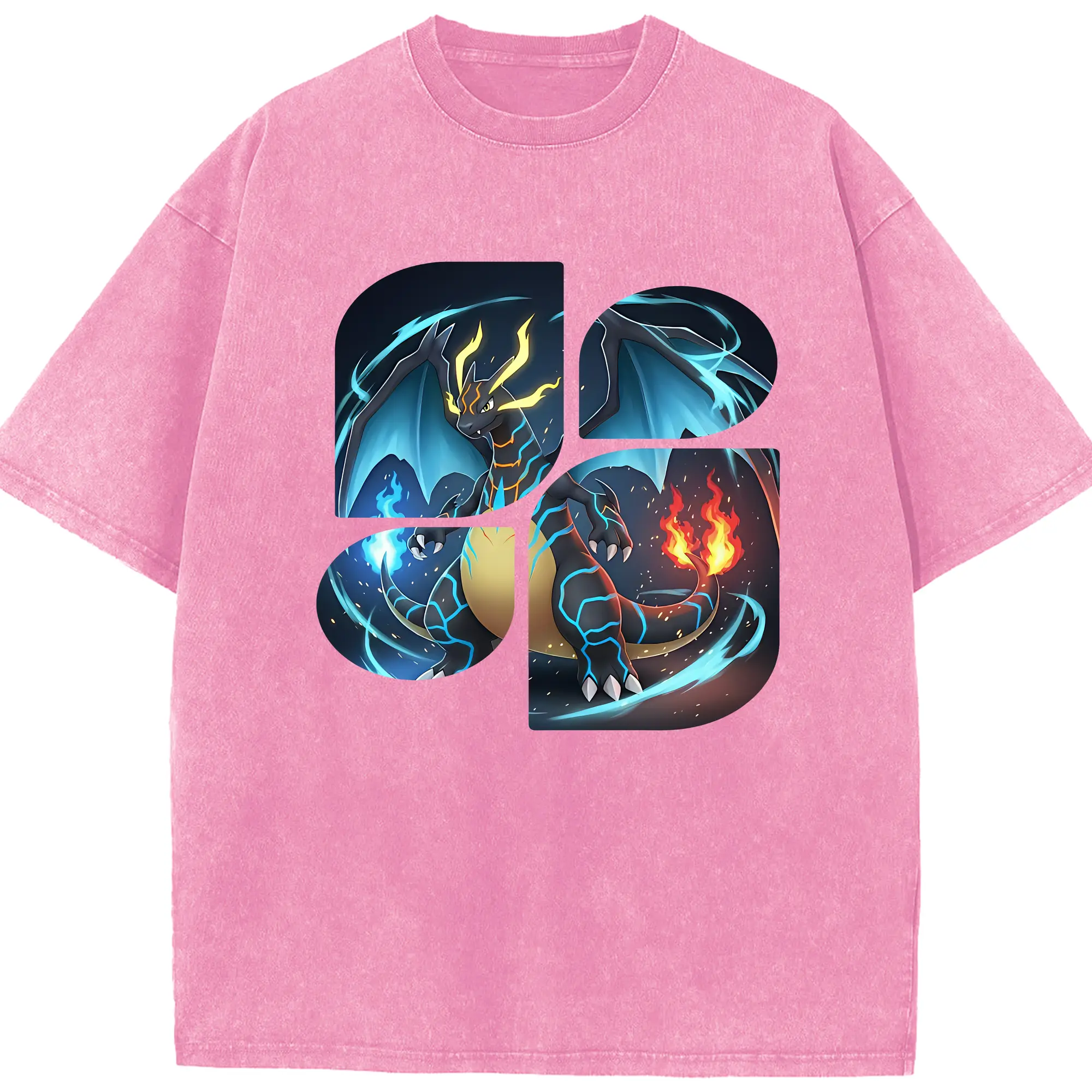 ポケモン グッズ,リザードン - 綿100% ヴィンテージ風 半袖Tシャツ ・ 背面プリント ・ 柔らか肌触り ・ 通気性 快適 ・ スポーツ カジュアル 外出用