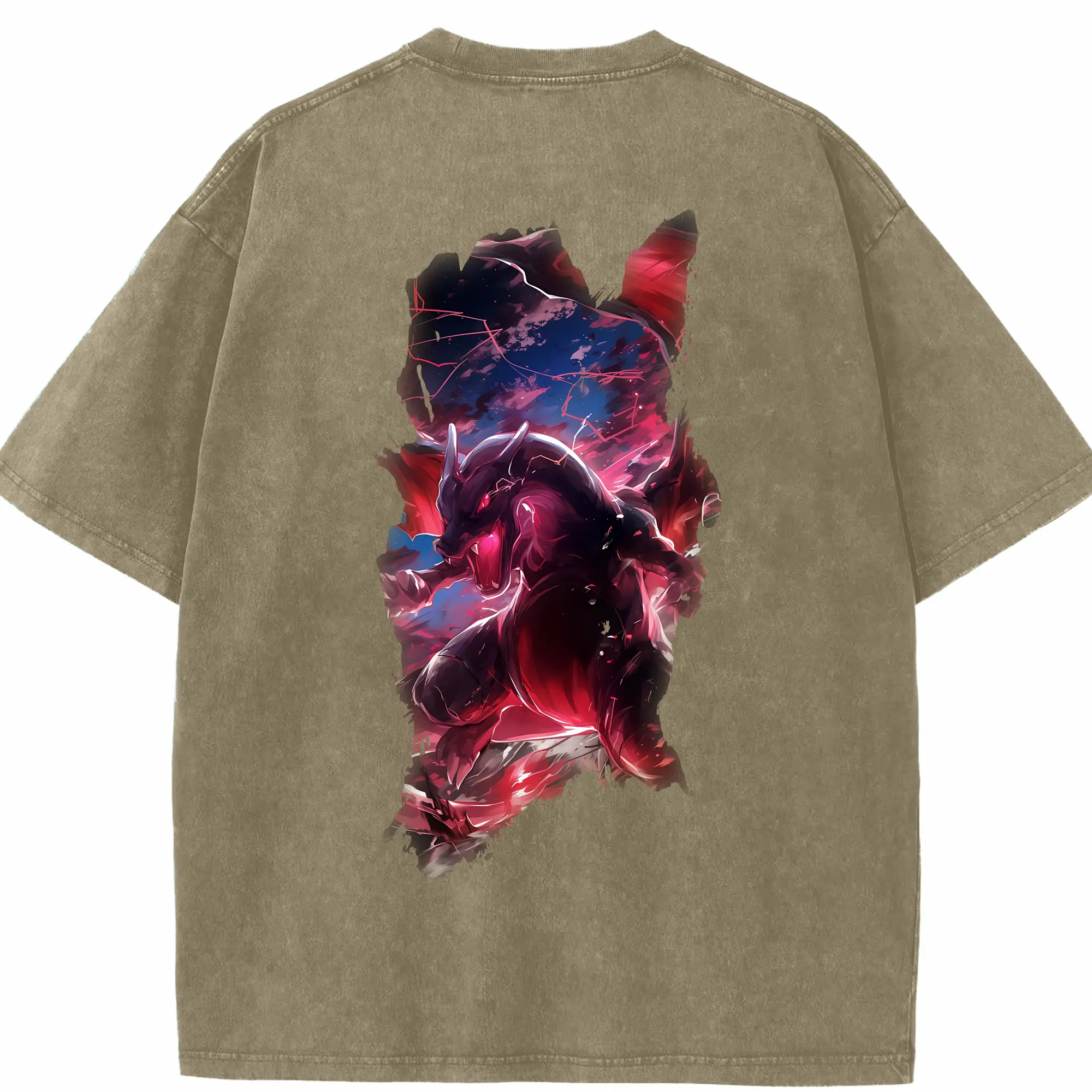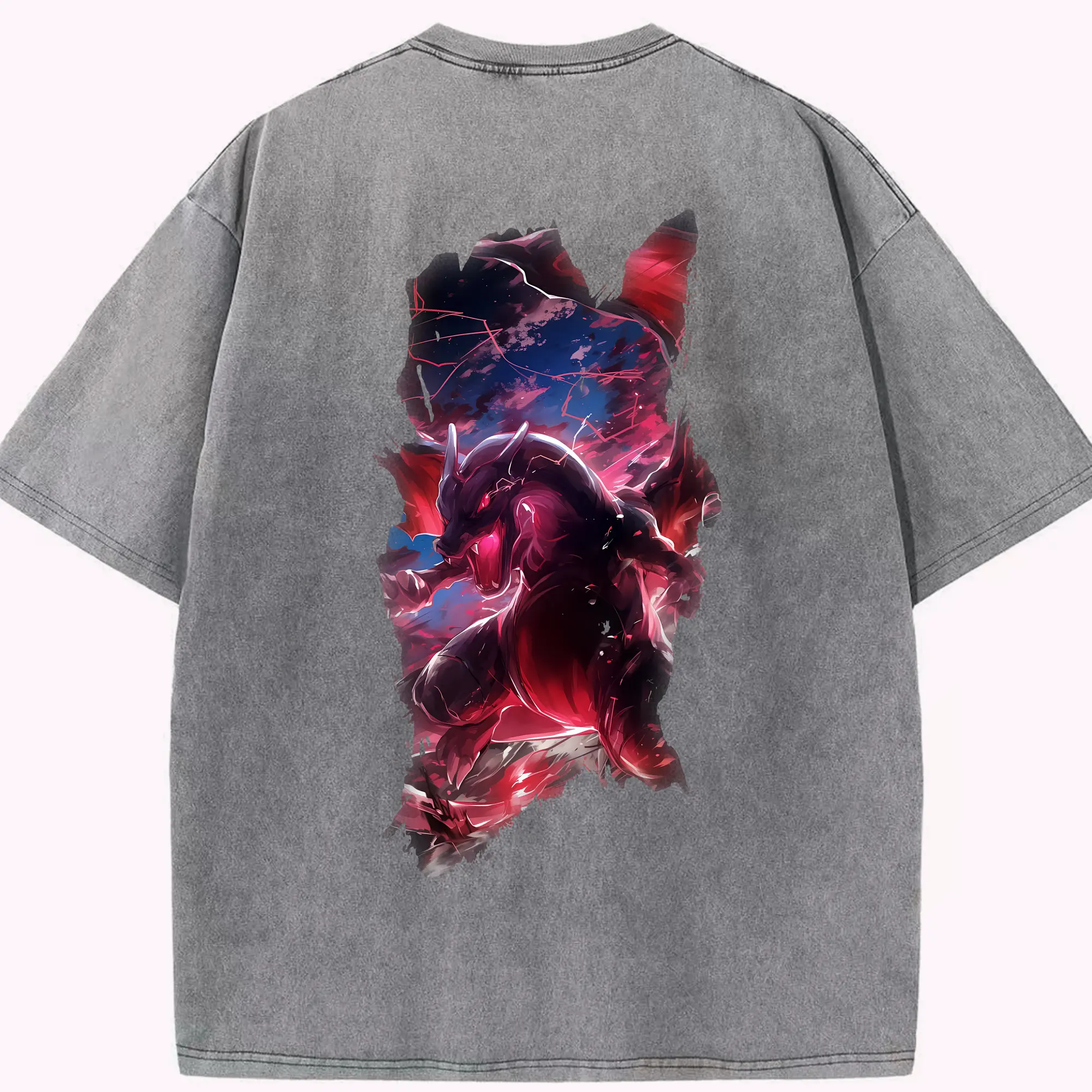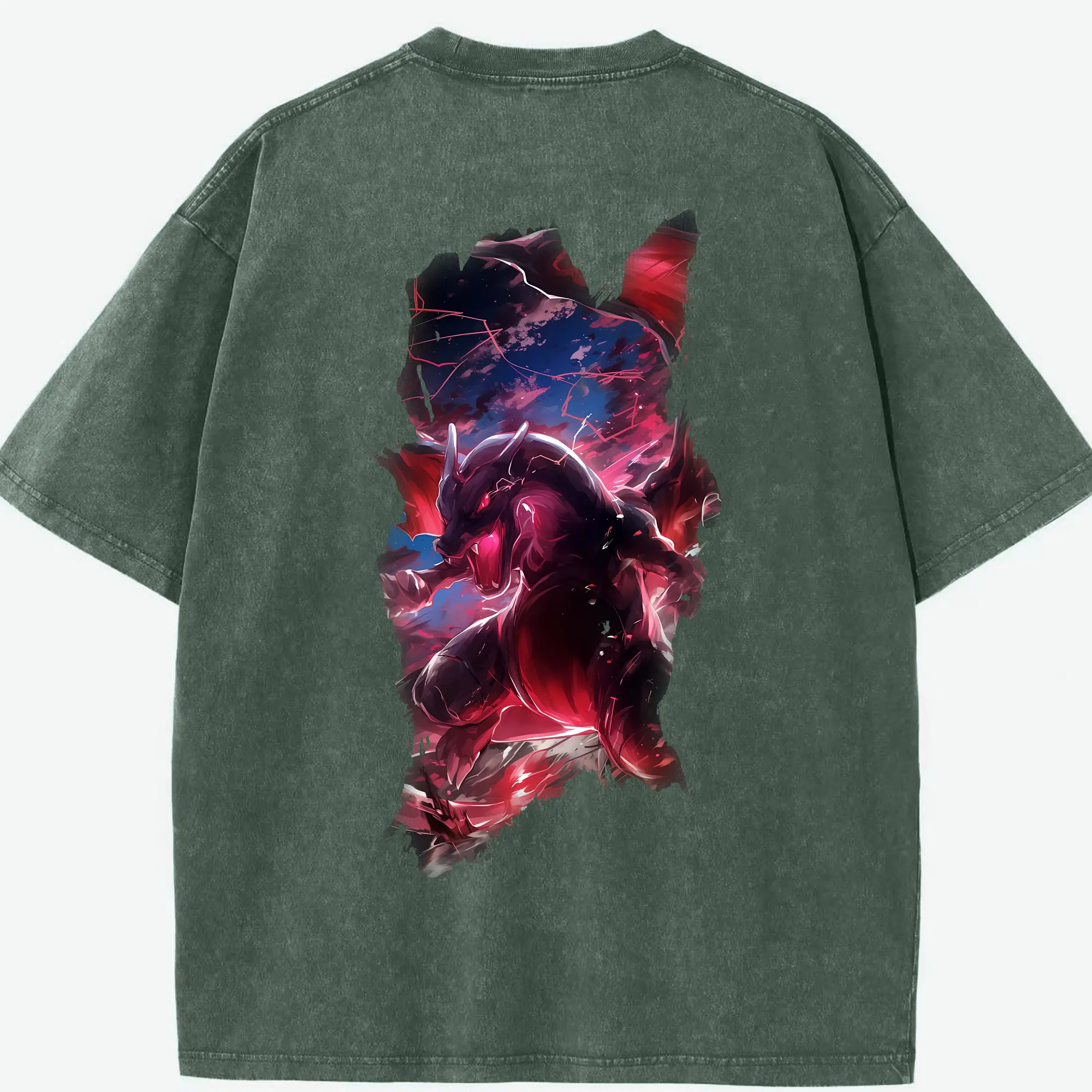 ポケモン グッズ,レックウザ - 綿100% ヴィンテージ風 半袖Tシャツ ・ 背面プリント ・ 柔らか肌触り ・ 通気性 快適 ・ スポーツ カジュアル 外出用