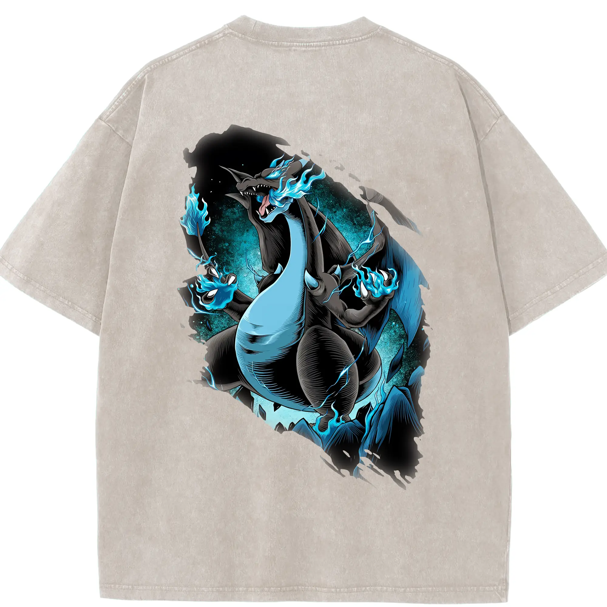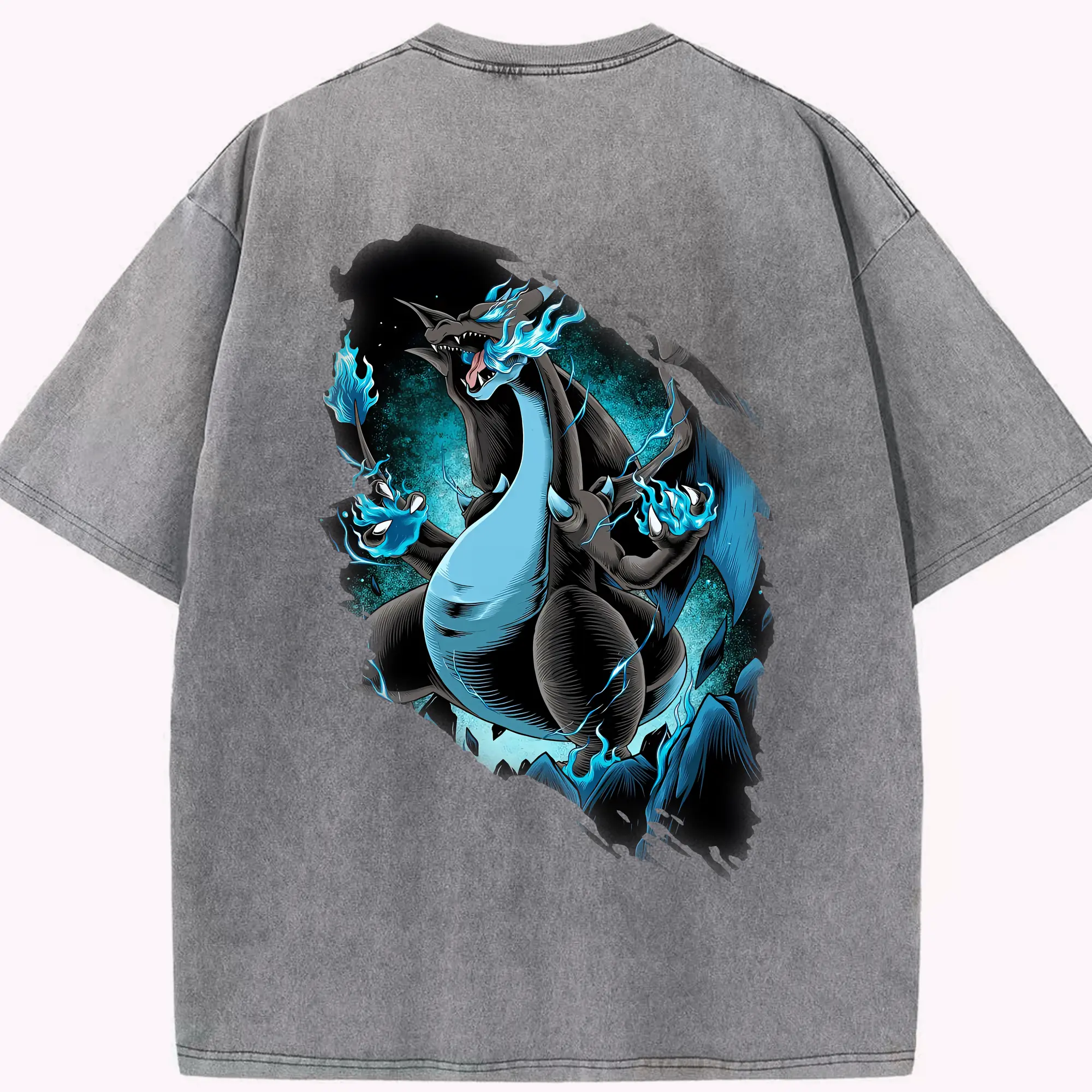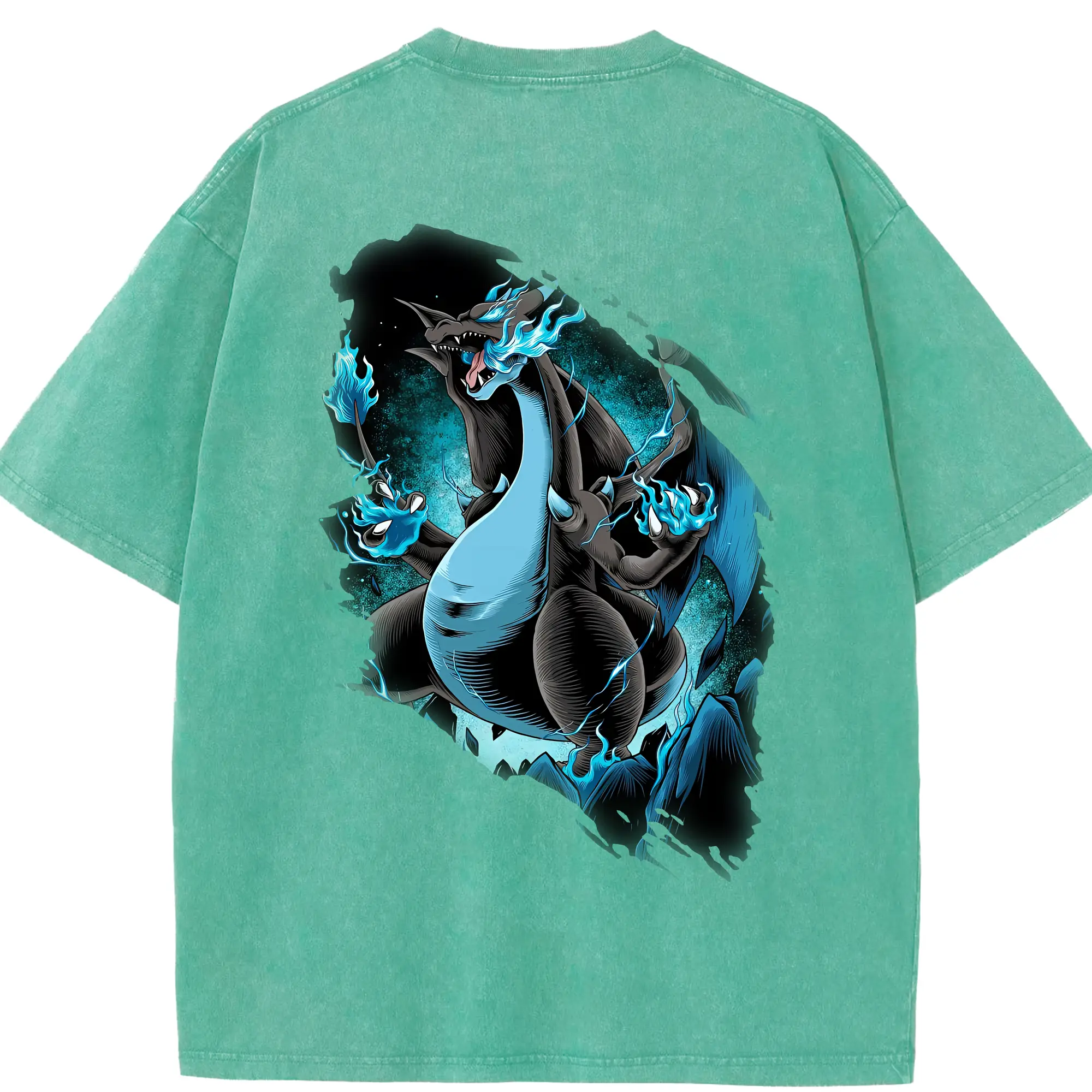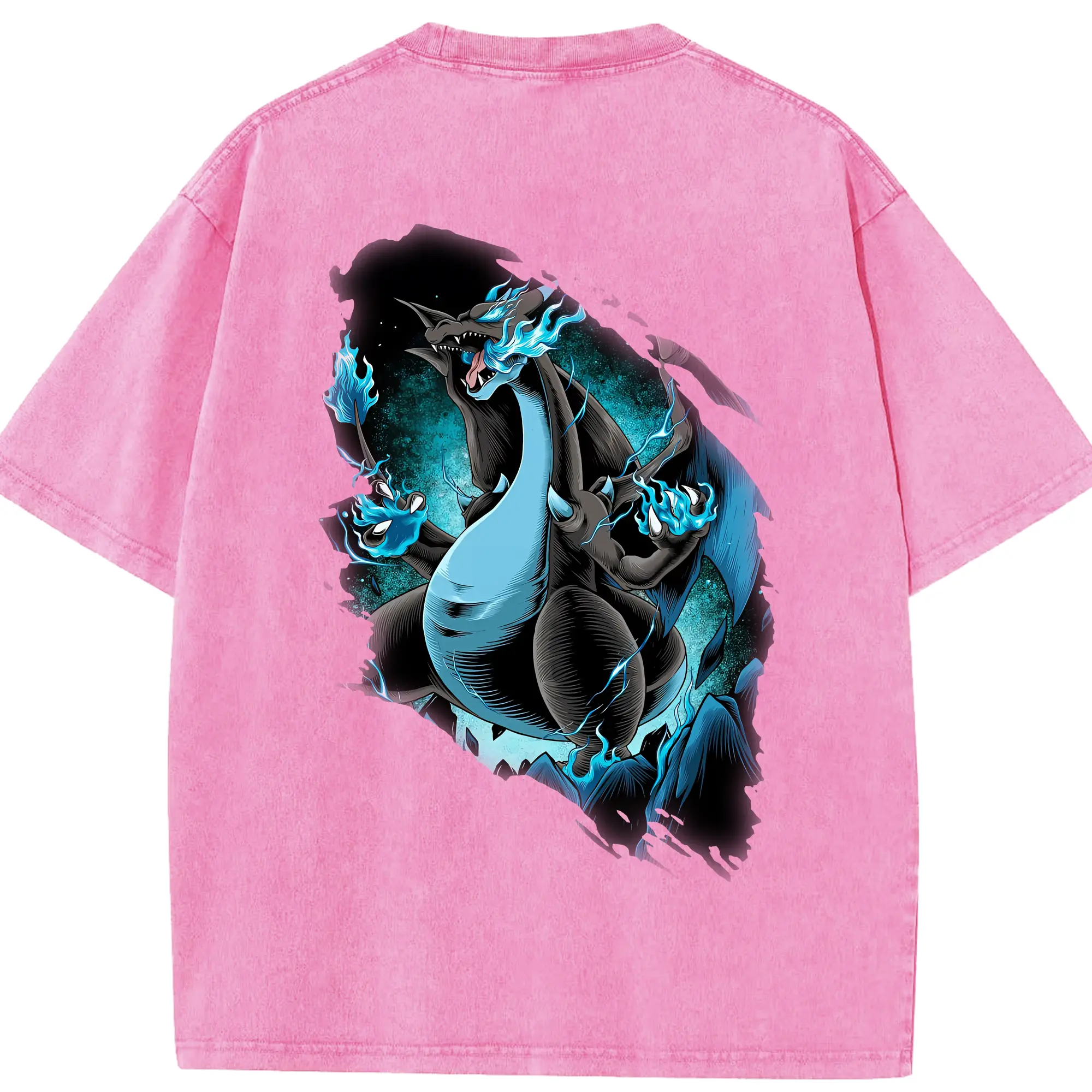 ポケモン グッズ,リザードン - 綿100% ヴィンテージ風 半袖Tシャツ ・ フロントプリント ・ 柔らか肌触り ・ 通気性 快適 ・ スポーツ カジュアル 外出用