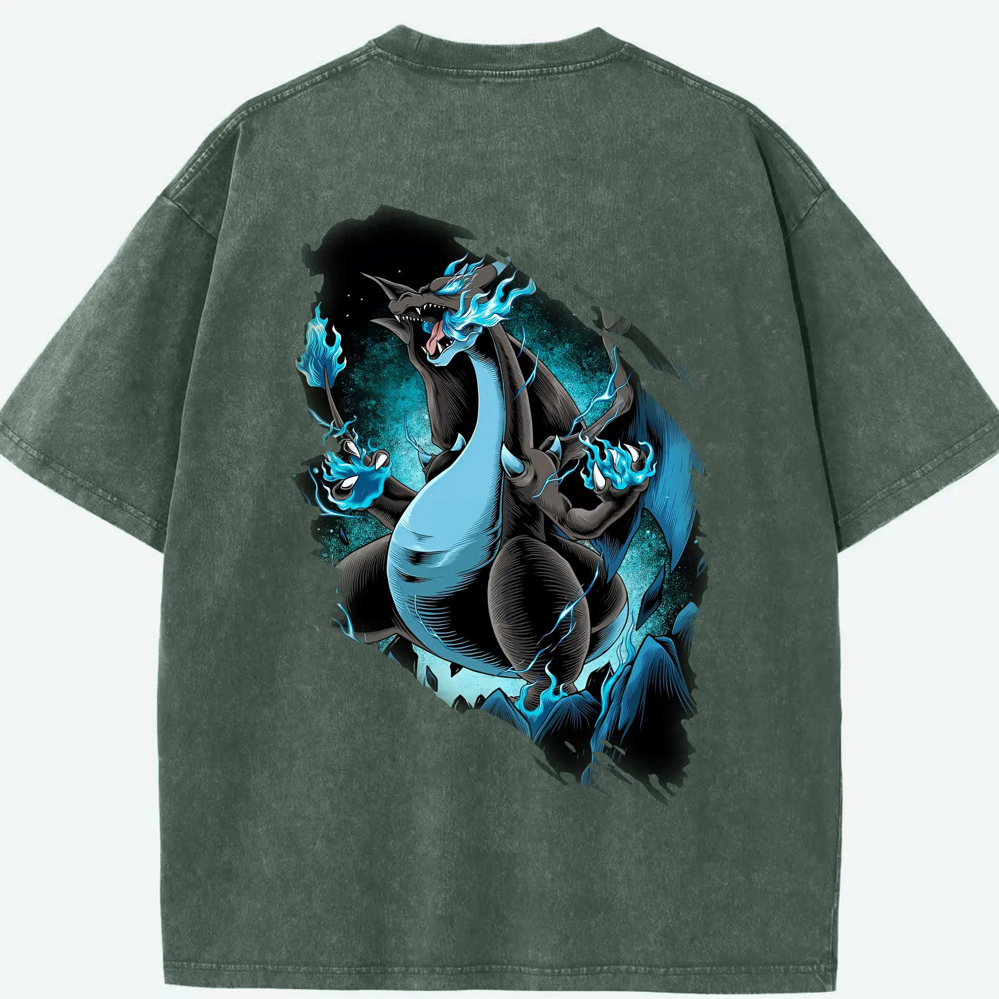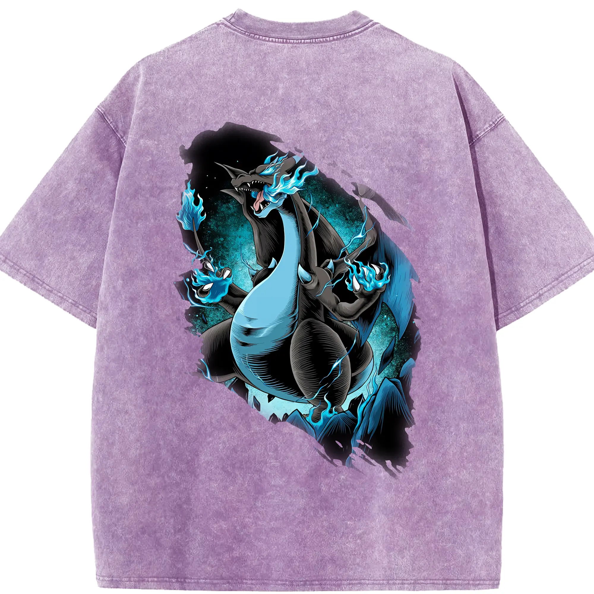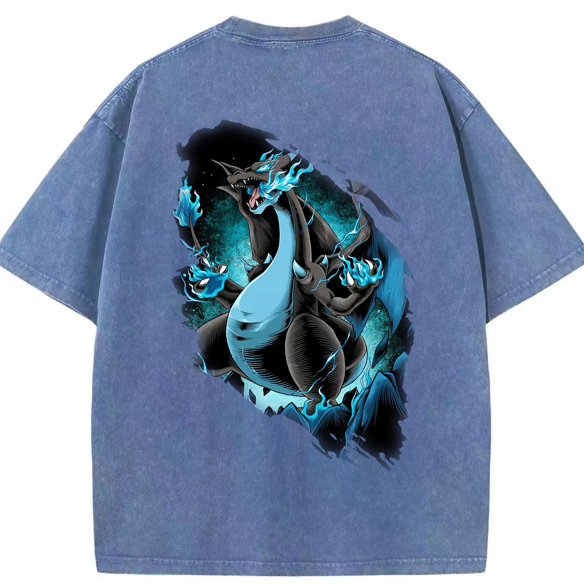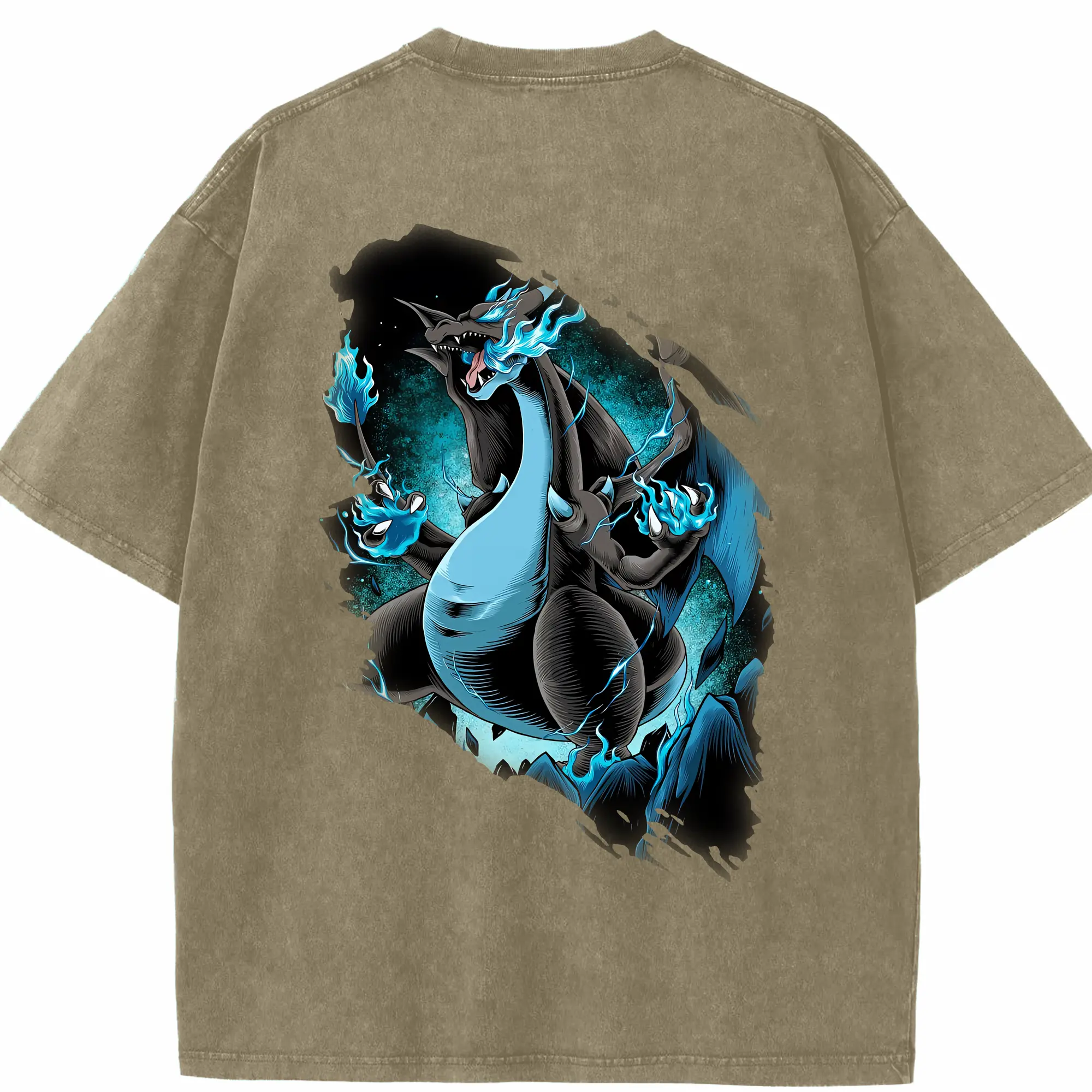 ポケモン グッズ,リザードン - 綿100% ヴィンテージ風 半袖Tシャツ ・ フロントプリント ・ 柔らか肌触り ・ 通気性 快適 ・ スポーツ カジュアル 外出用