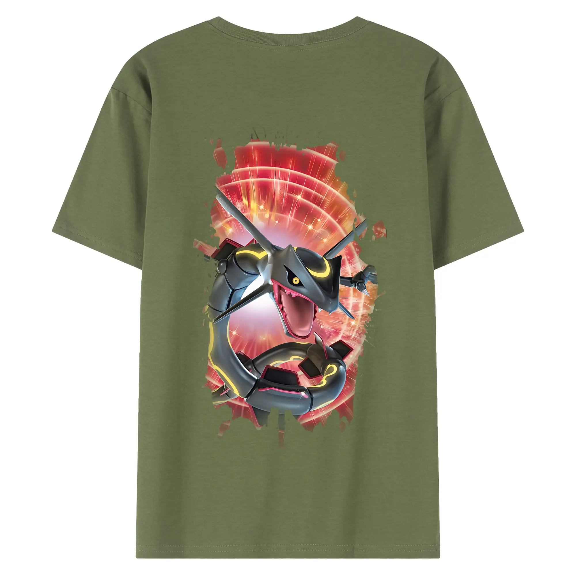 ポケモン グッズ,レックウザ - 綿100% 半袖Tシャツ ・ バックプリント ・ 快適 通気性 ・ 日常使い 散歩 スポーツ用