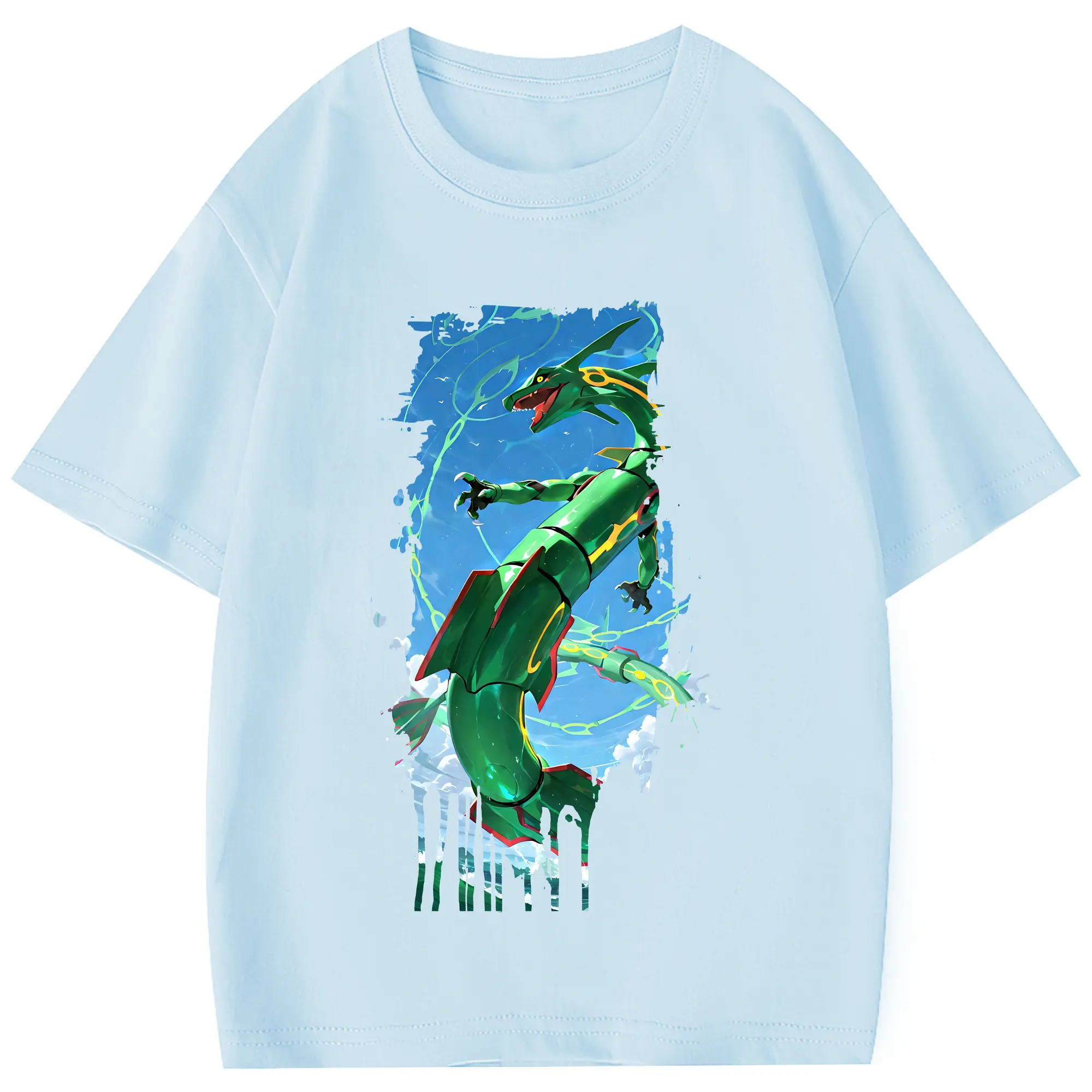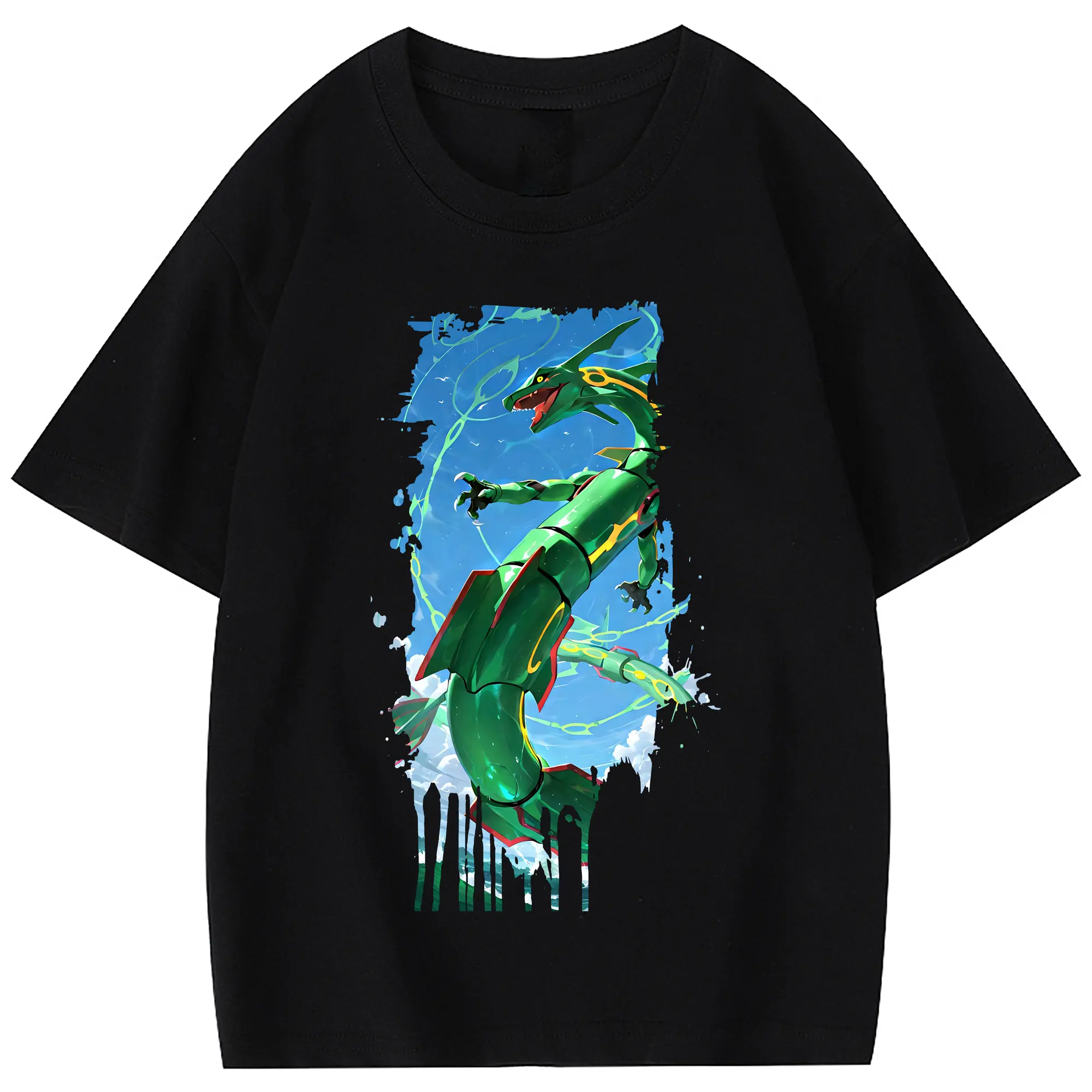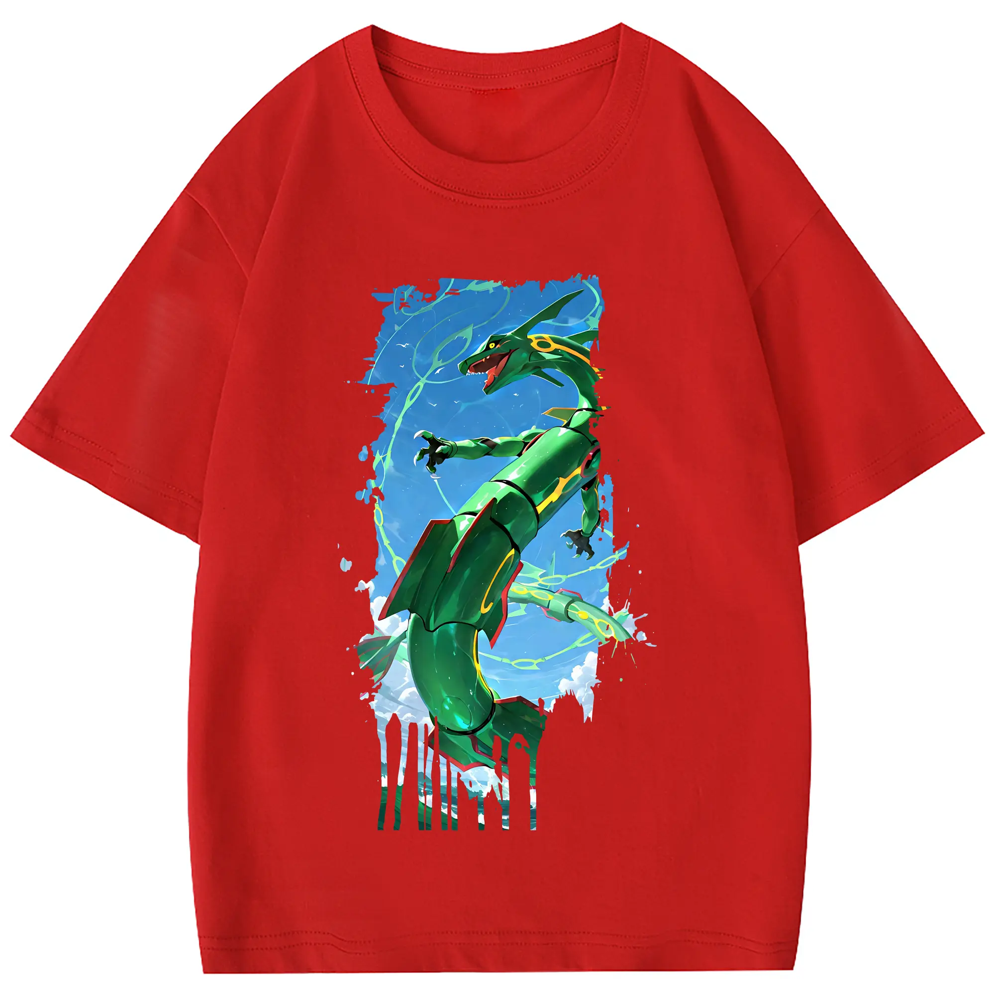 ポケモン グッズ,レックウザ - 綿100% 半袖Tシャツ ・ フロントプリント ・ 快適 通気性 ・ 日常使い 散歩 スポーツ用