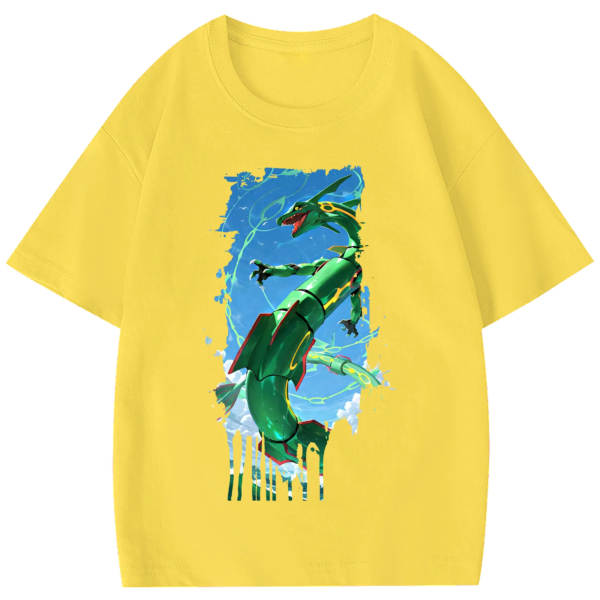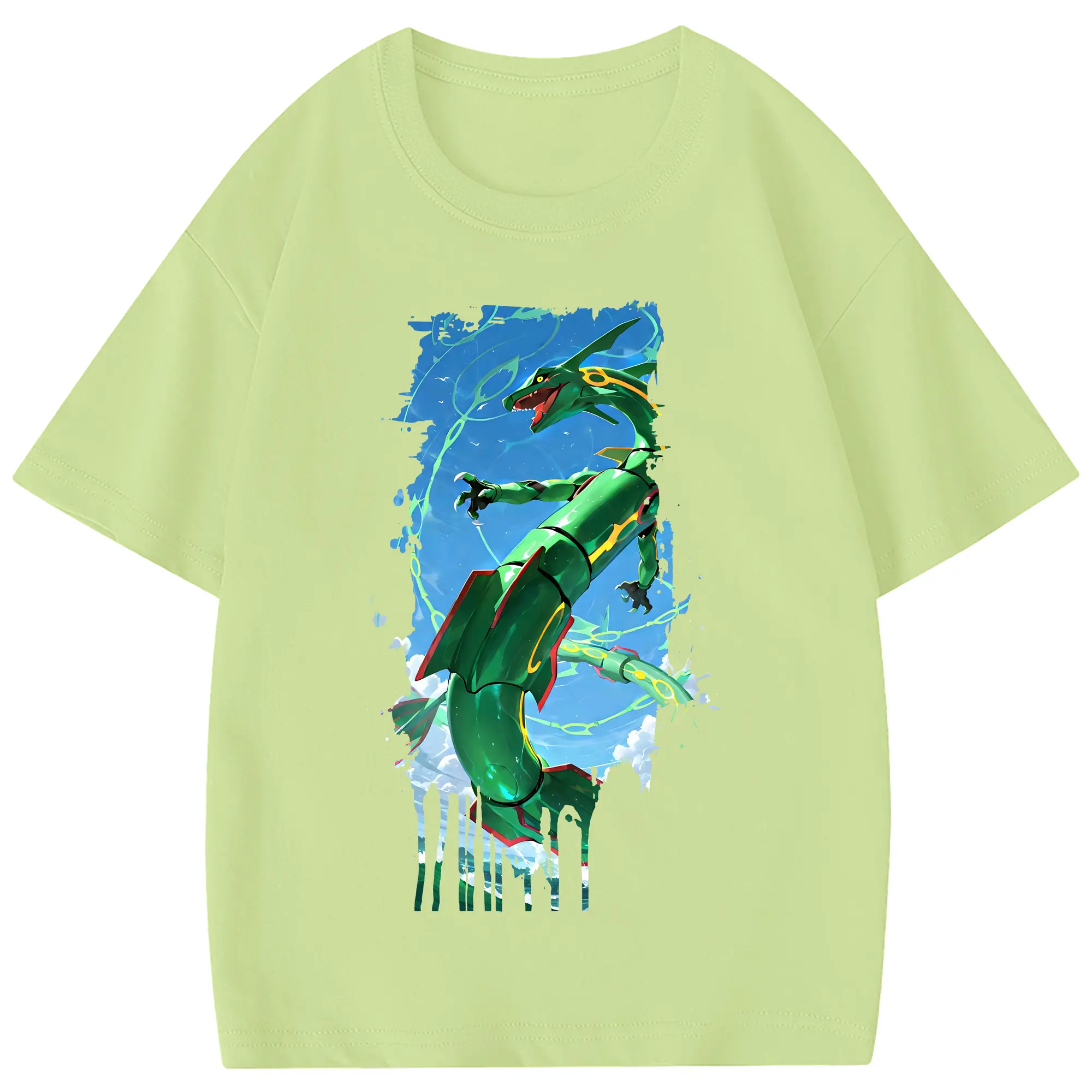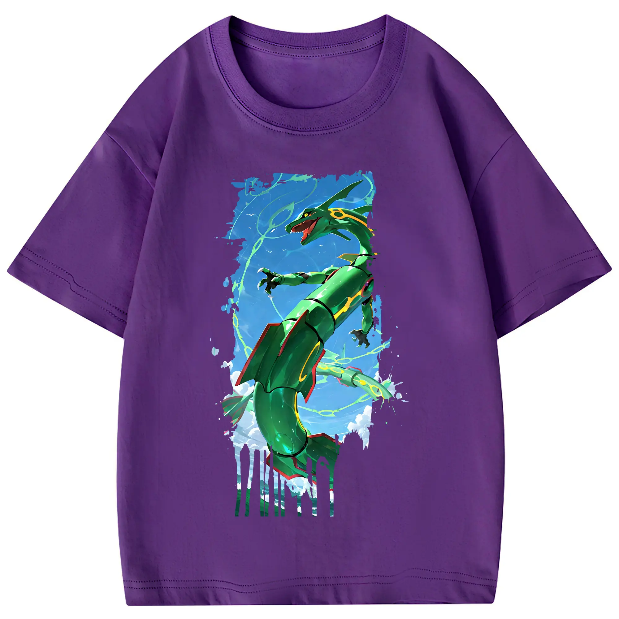 ポケモン グッズ,レックウザ - 綿100% 半袖Tシャツ ・ フロントプリント ・ 快適 通気性 ・ 日常使い 散歩 スポーツ用