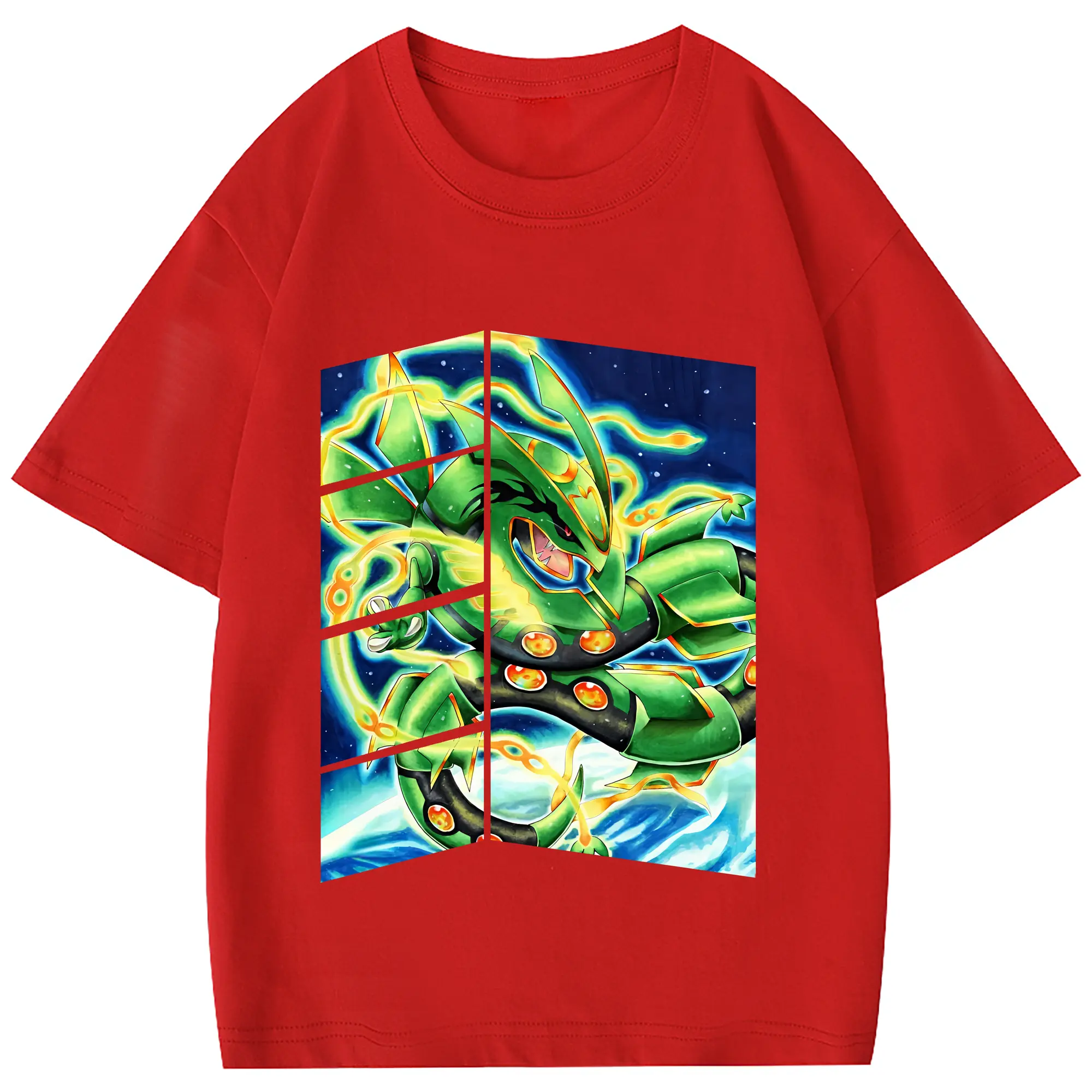 ポケモン グッズ,レックウザ - 綿100% 半袖Tシャツ ・ フロントプリント ・ 快適 通気性 ・ 日常使い 散歩 スポーツ用