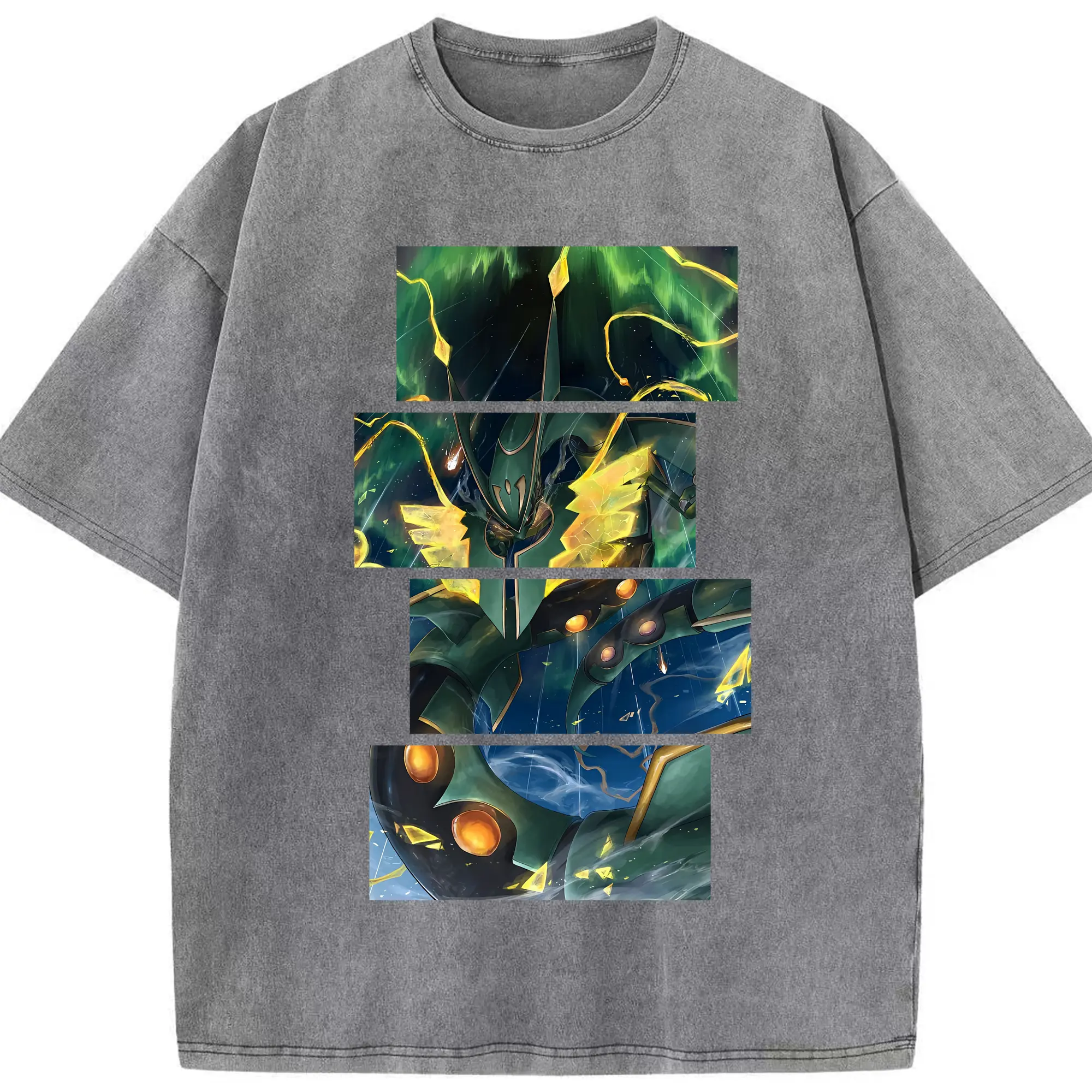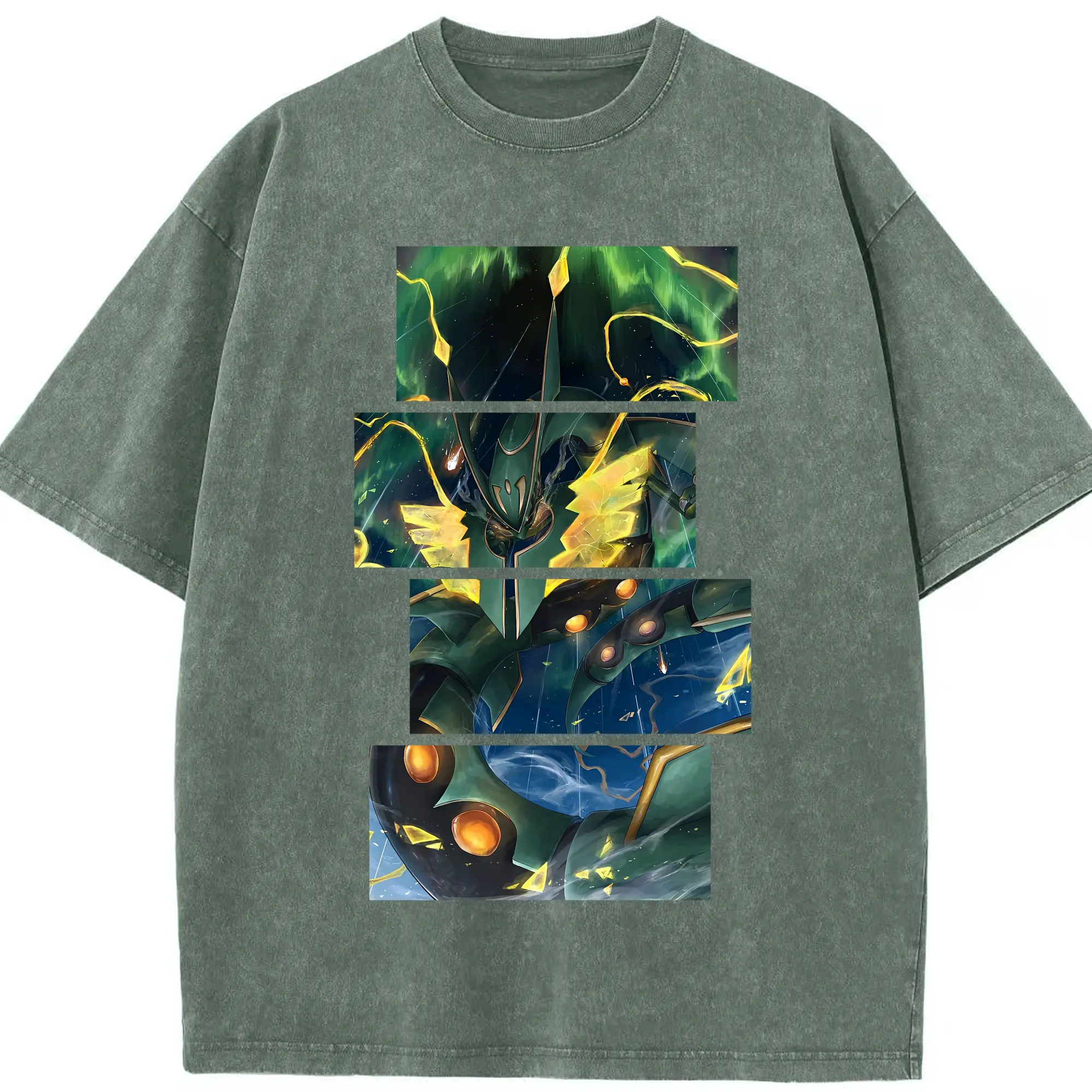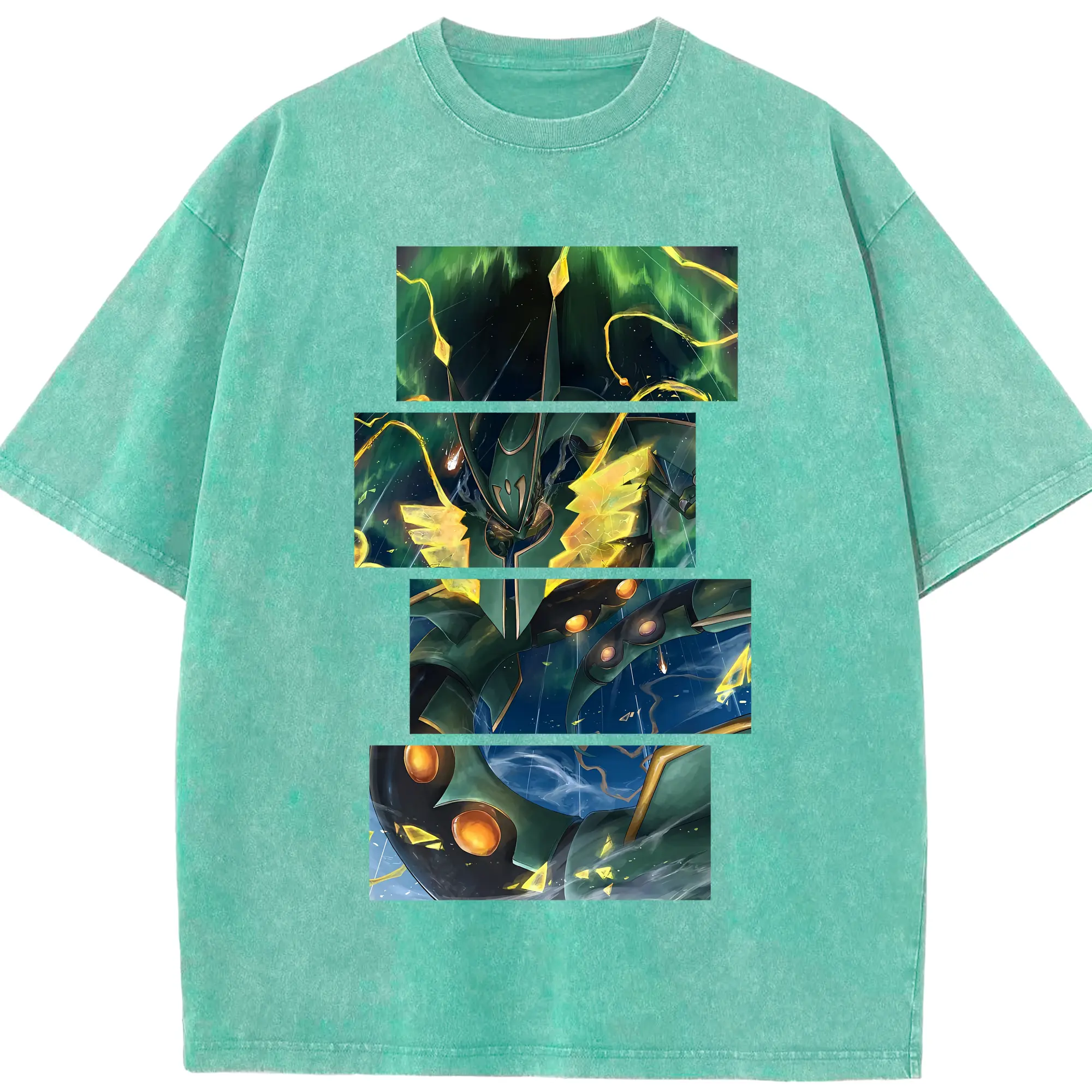 ポケモン グッズ,レックウザ - 綿100% ヴィンテージ風 半袖Tシャツ ・ 背面プリント ・ 柔らか肌触り ・ 通気性 快適 ・ スポーツ カジュアル 外出用