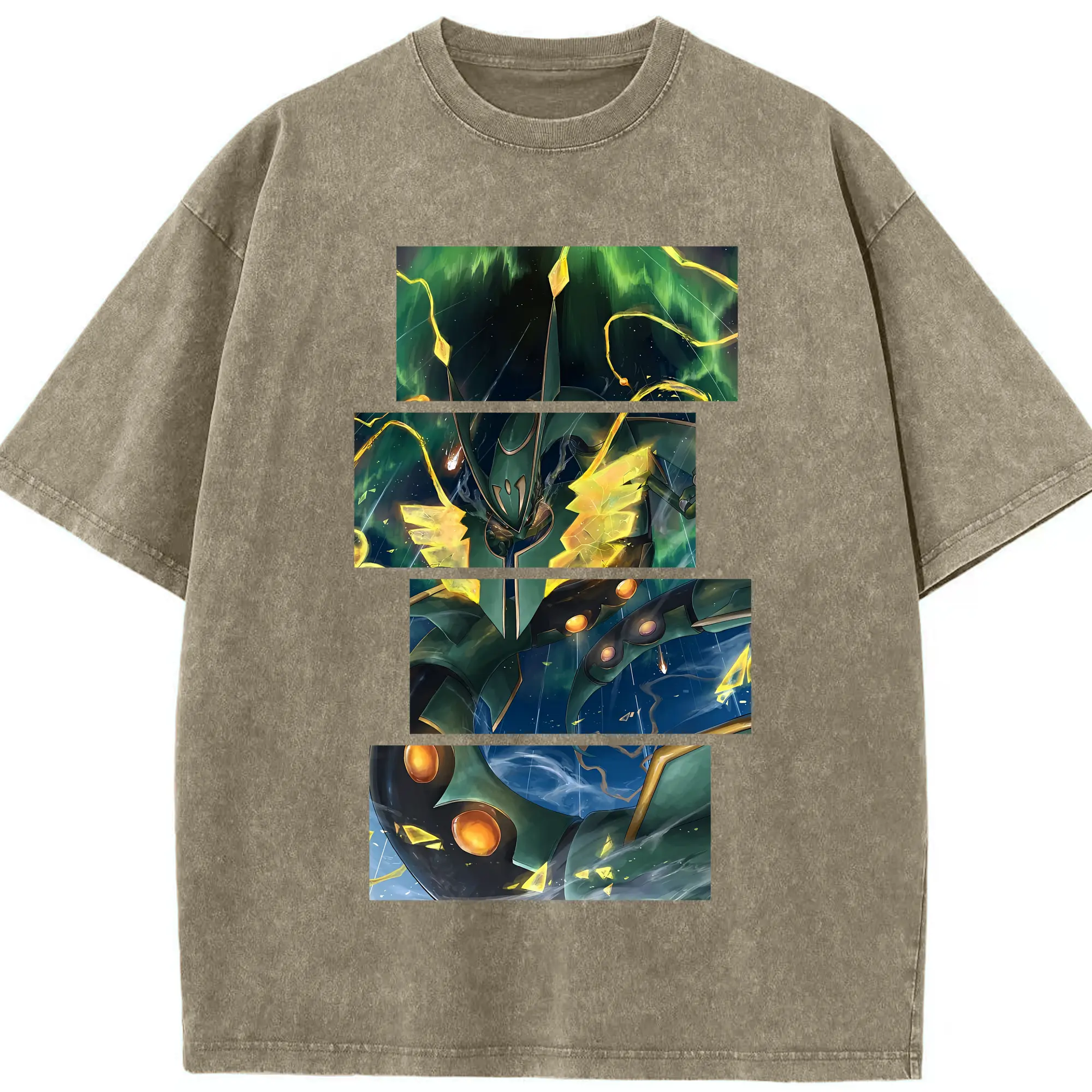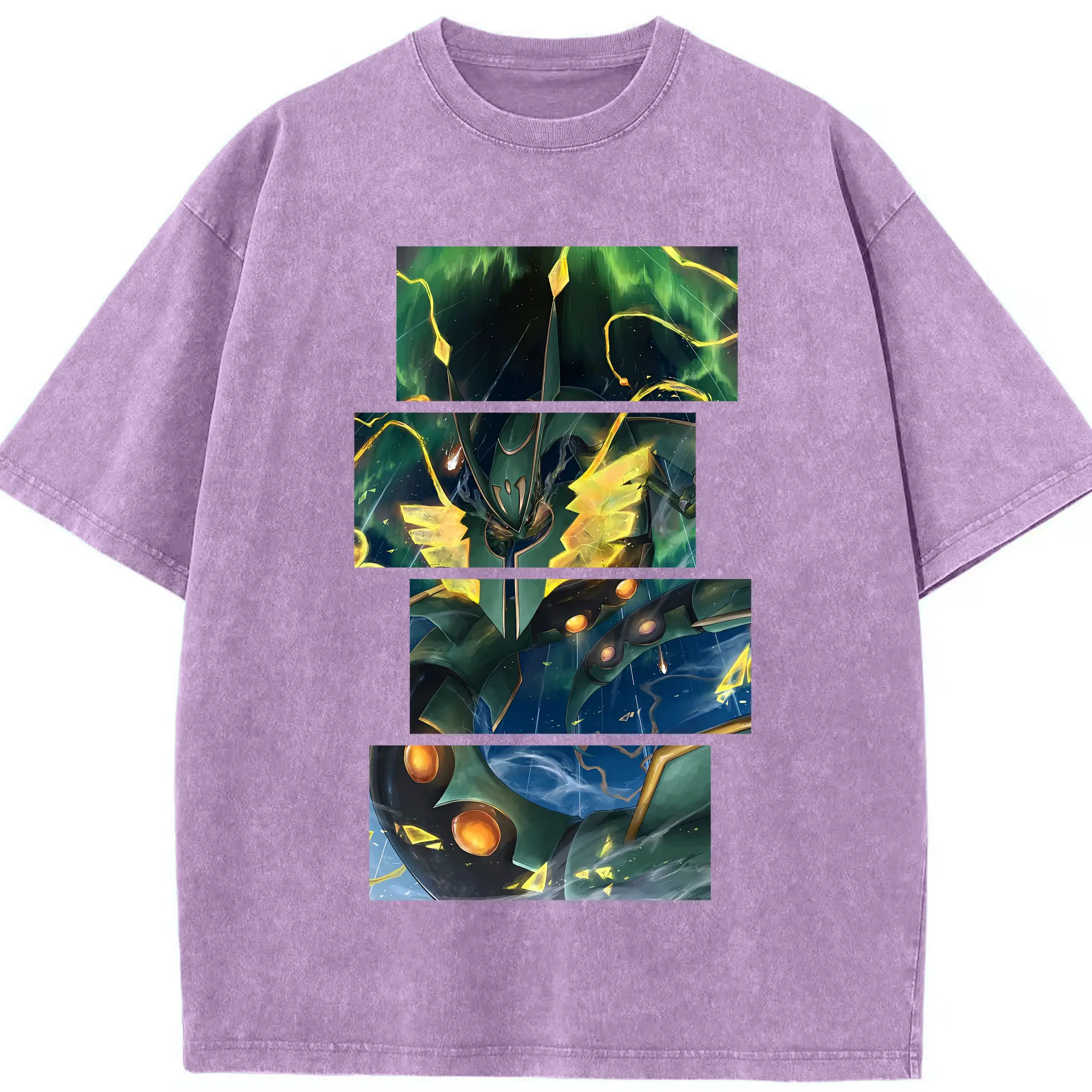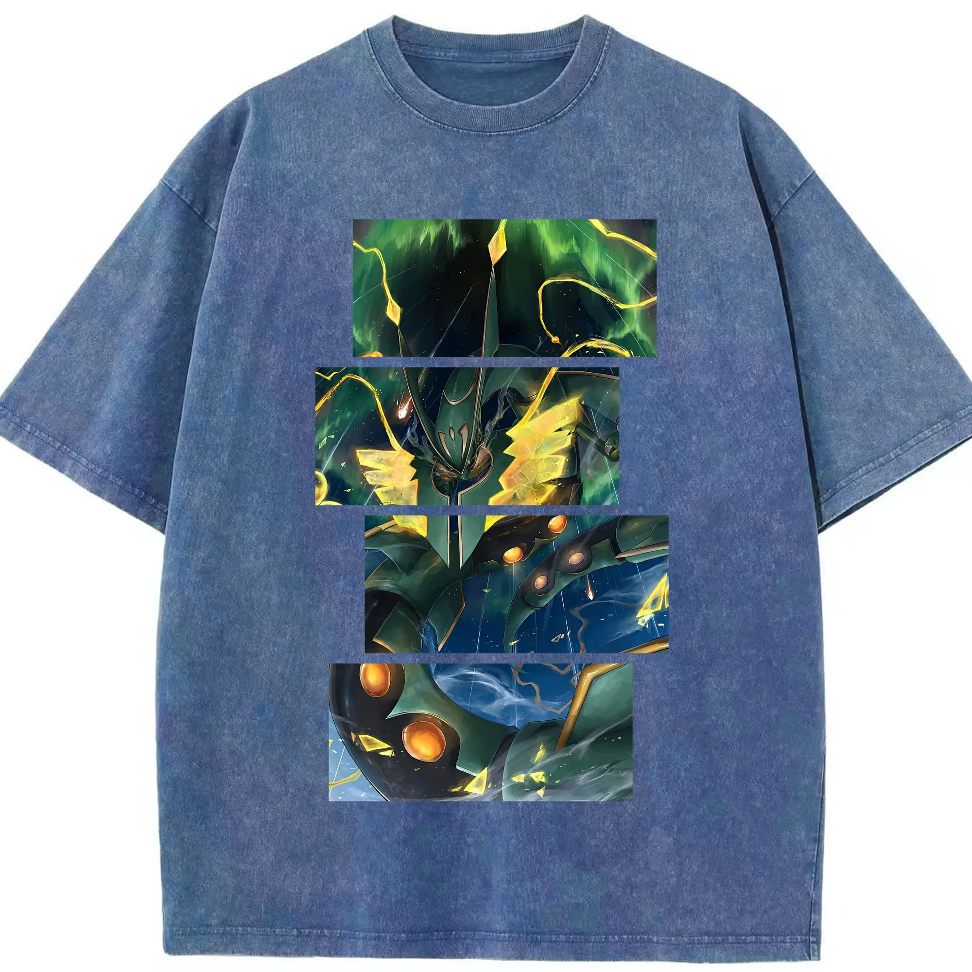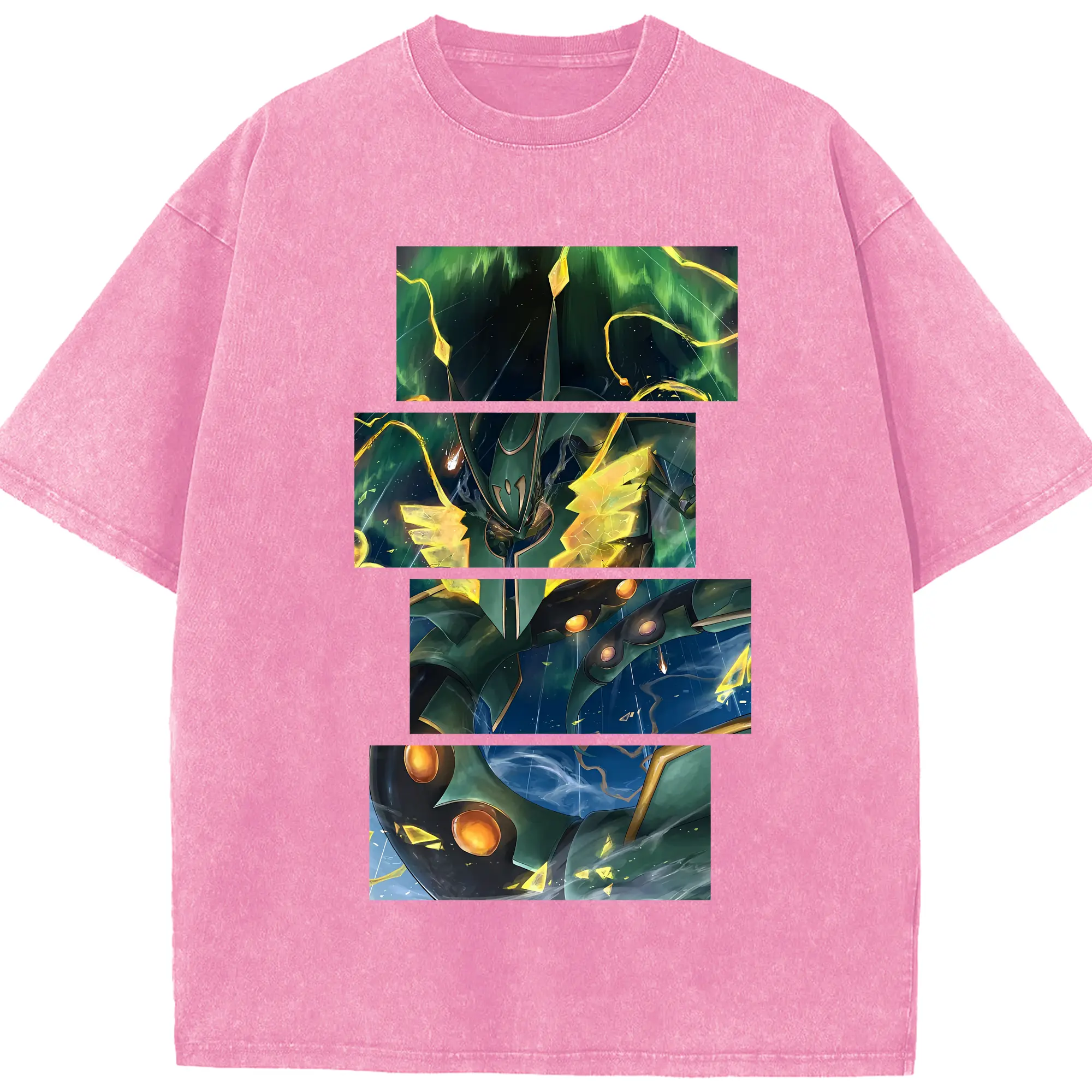 ポケモン グッズ,レックウザ - 綿100% ヴィンテージ風 半袖Tシャツ ・ 背面プリント ・ 柔らか肌触り ・ 通気性 快適 ・ スポーツ カジュアル 外出用