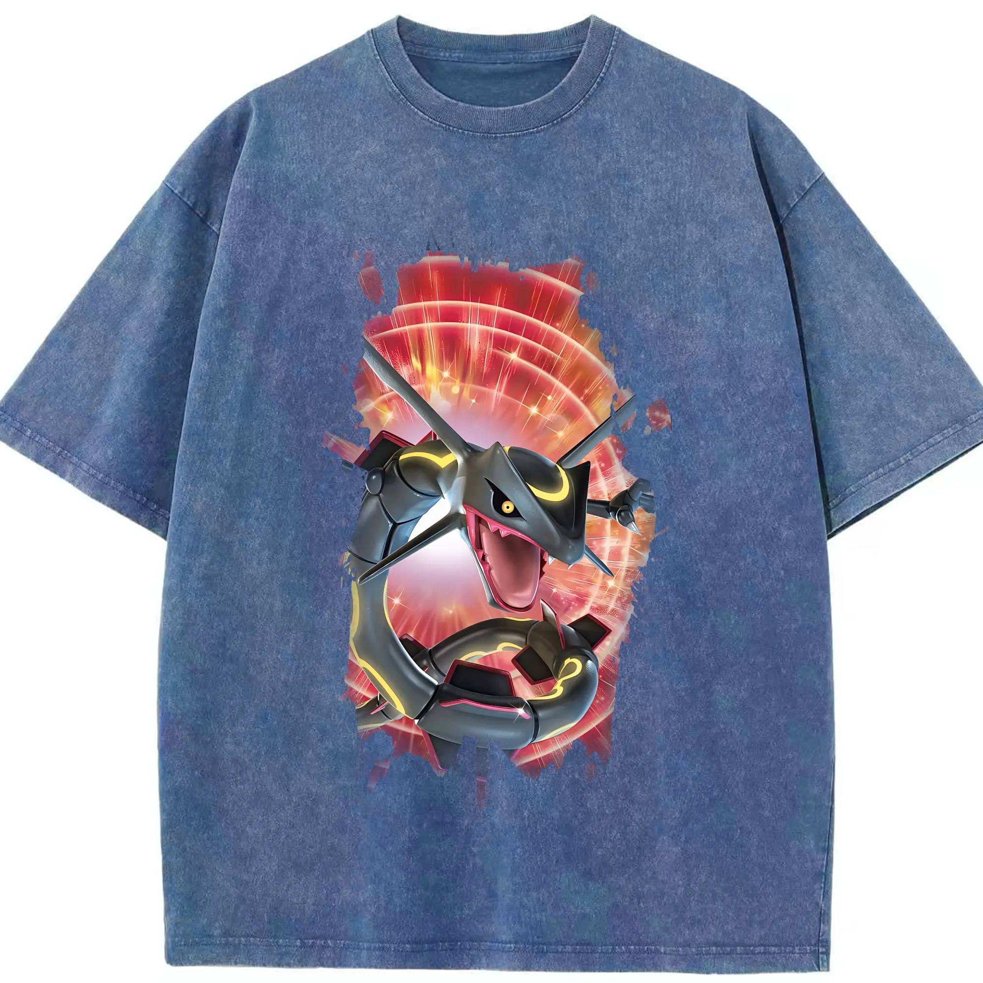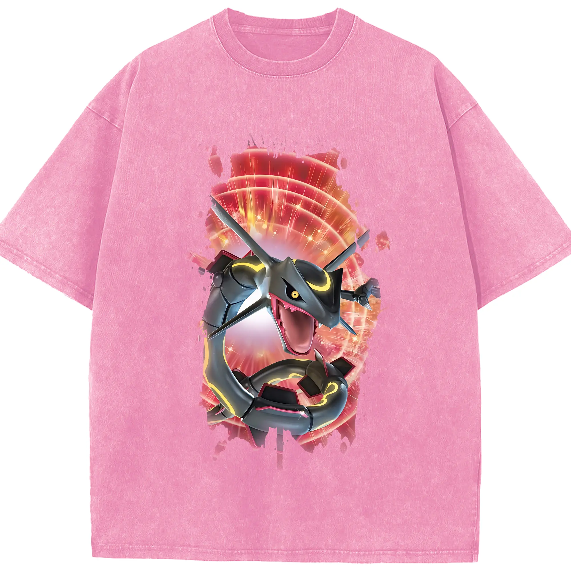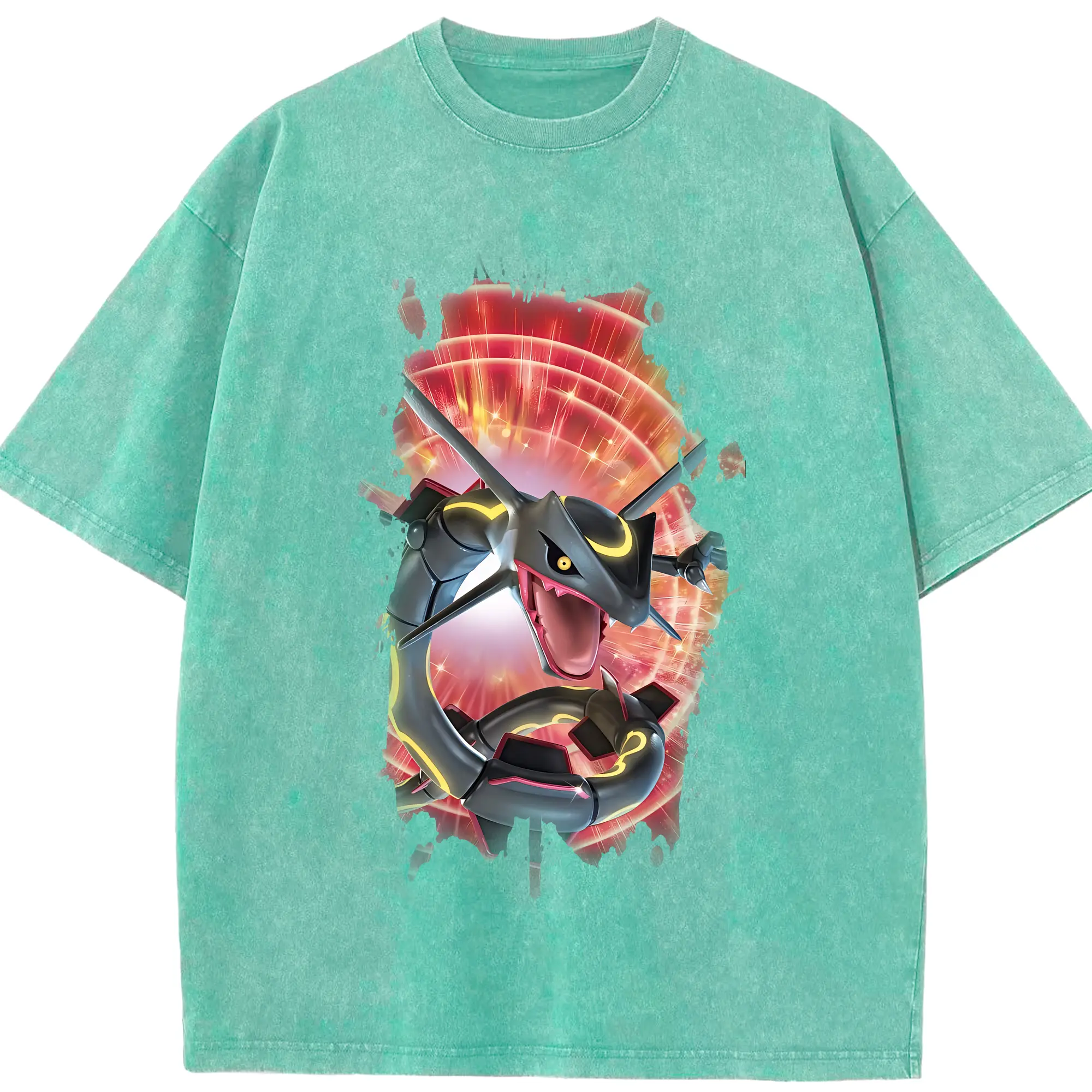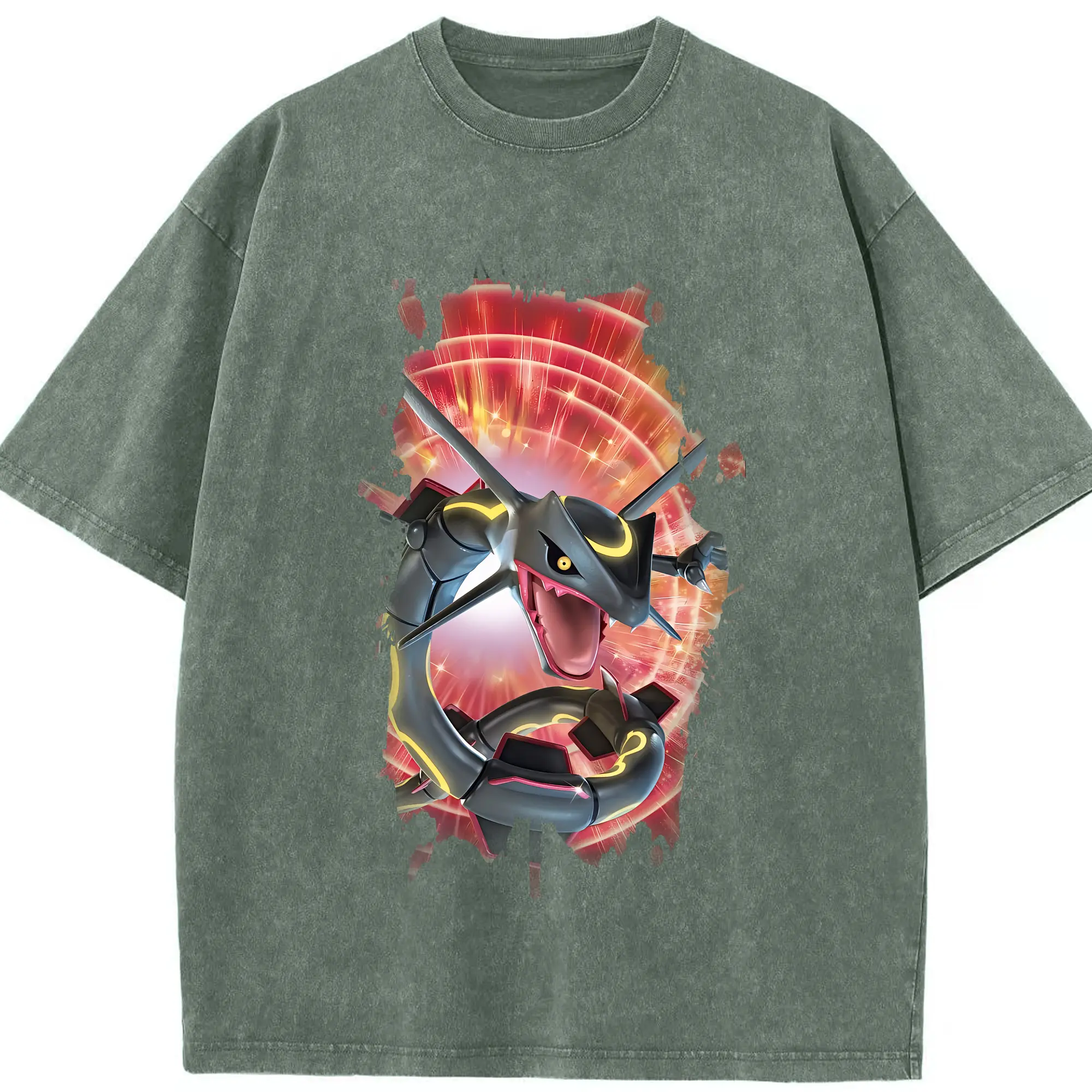 ポケモン グッズ,レックウザ - 綿100% ヴィンテージ風 半袖Tシャツ ・ 背面プリント ・ 柔らか肌触り ・ 通気性 快適 ・ スポーツ カジュアル 外出用