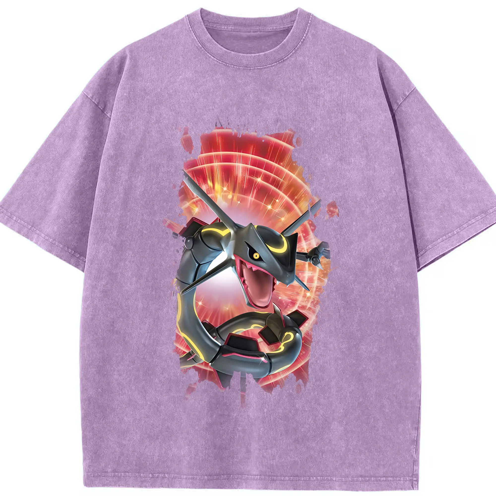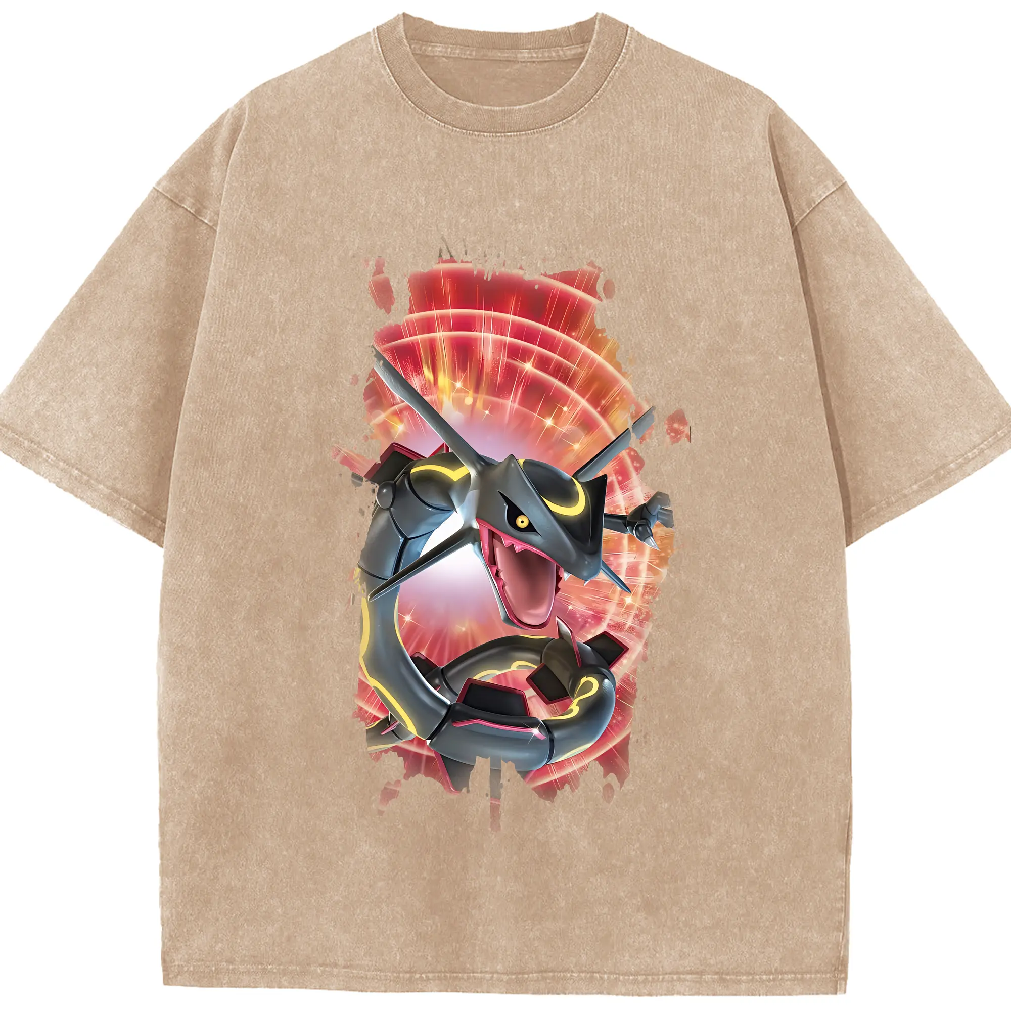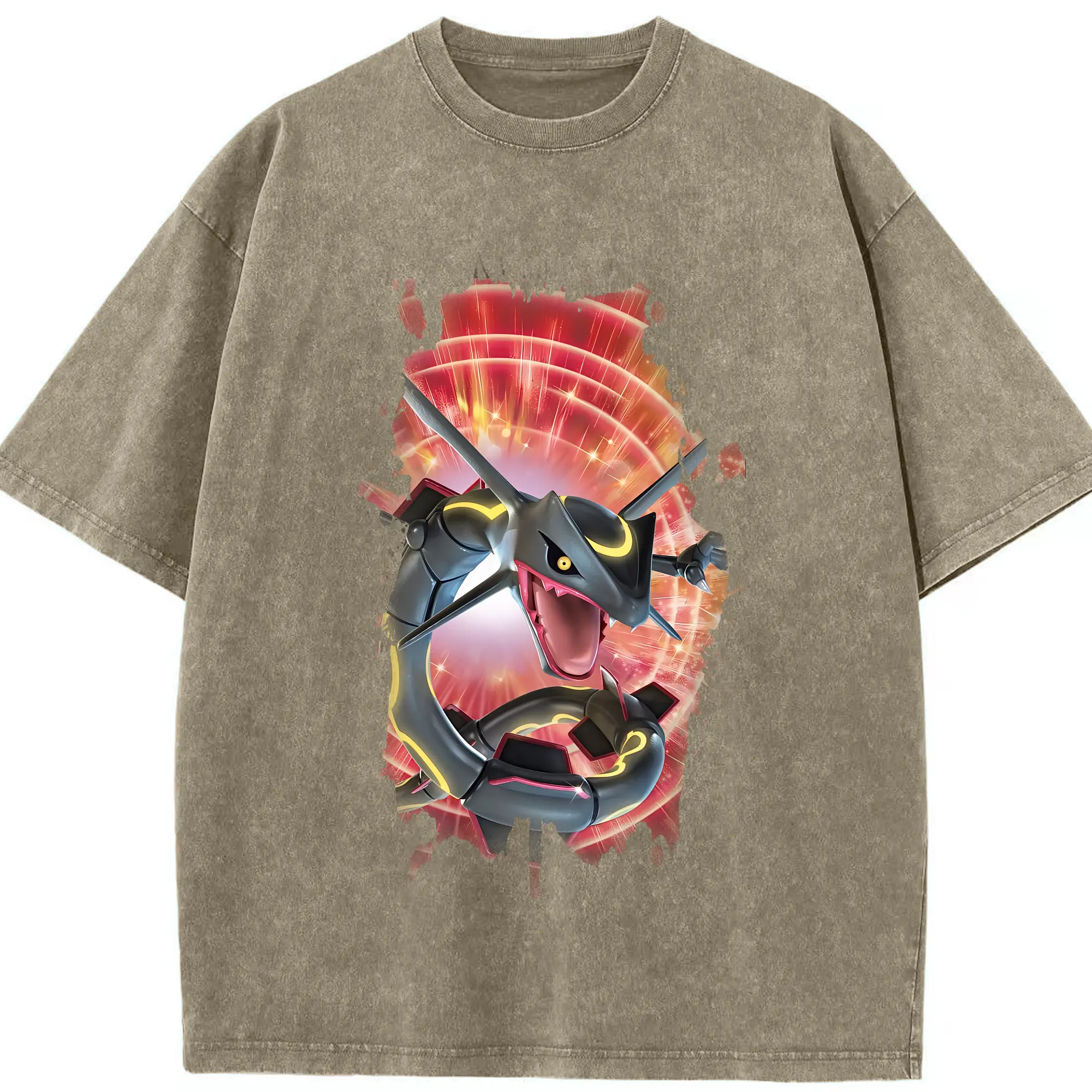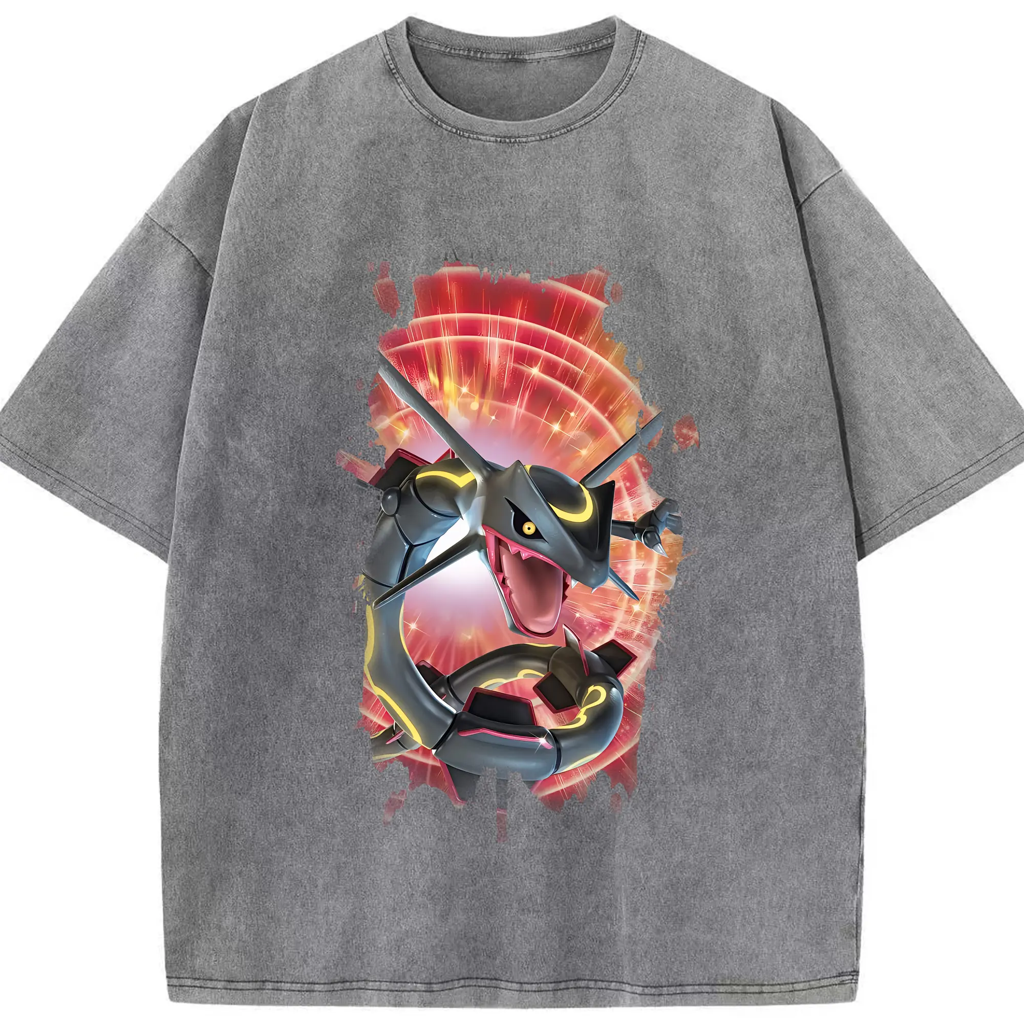 ポケモン グッズ,レックウザ - 綿100% ヴィンテージ風 半袖Tシャツ ・ 背面プリント ・ 柔らか肌触り ・ 通気性 快適 ・ スポーツ カジュアル 外出用