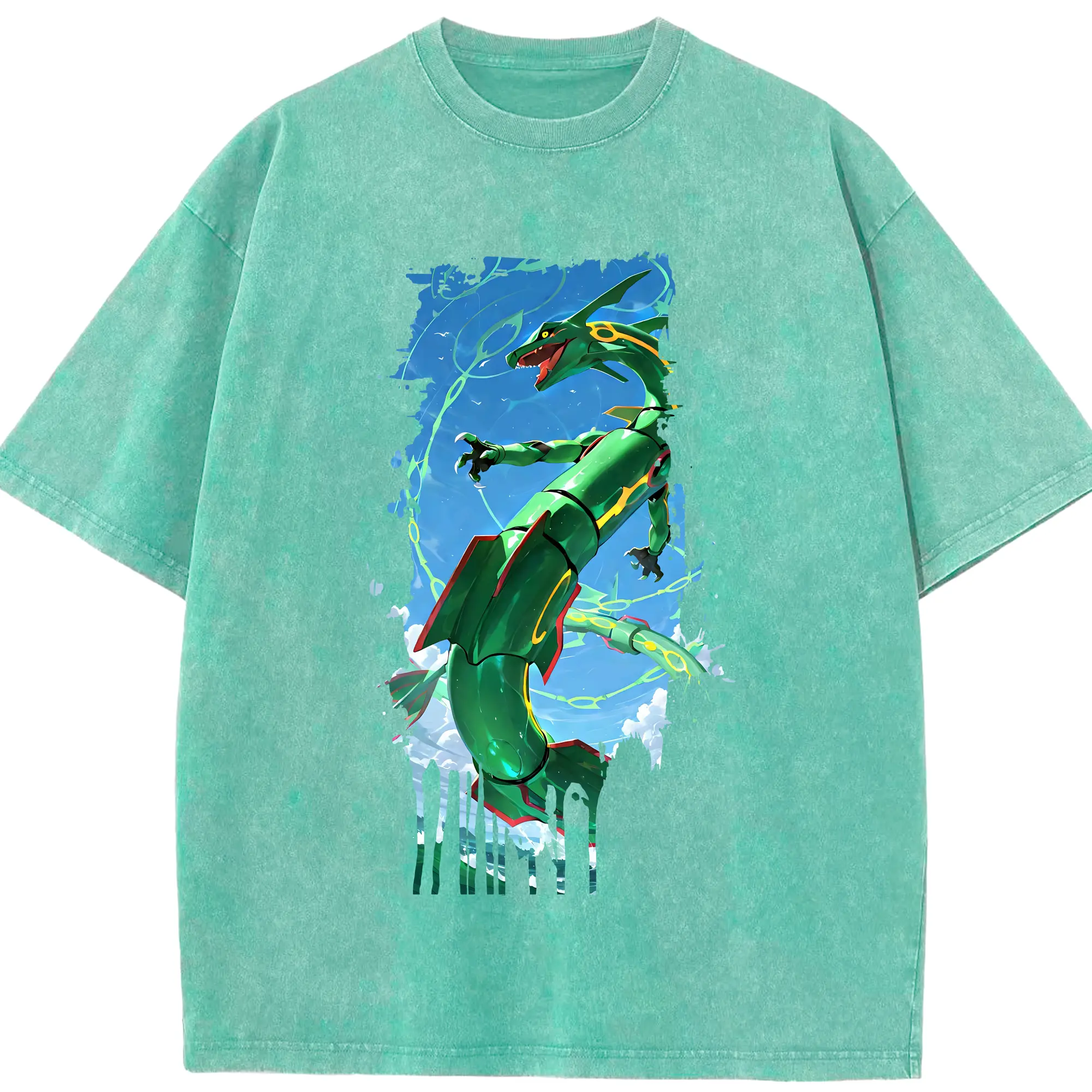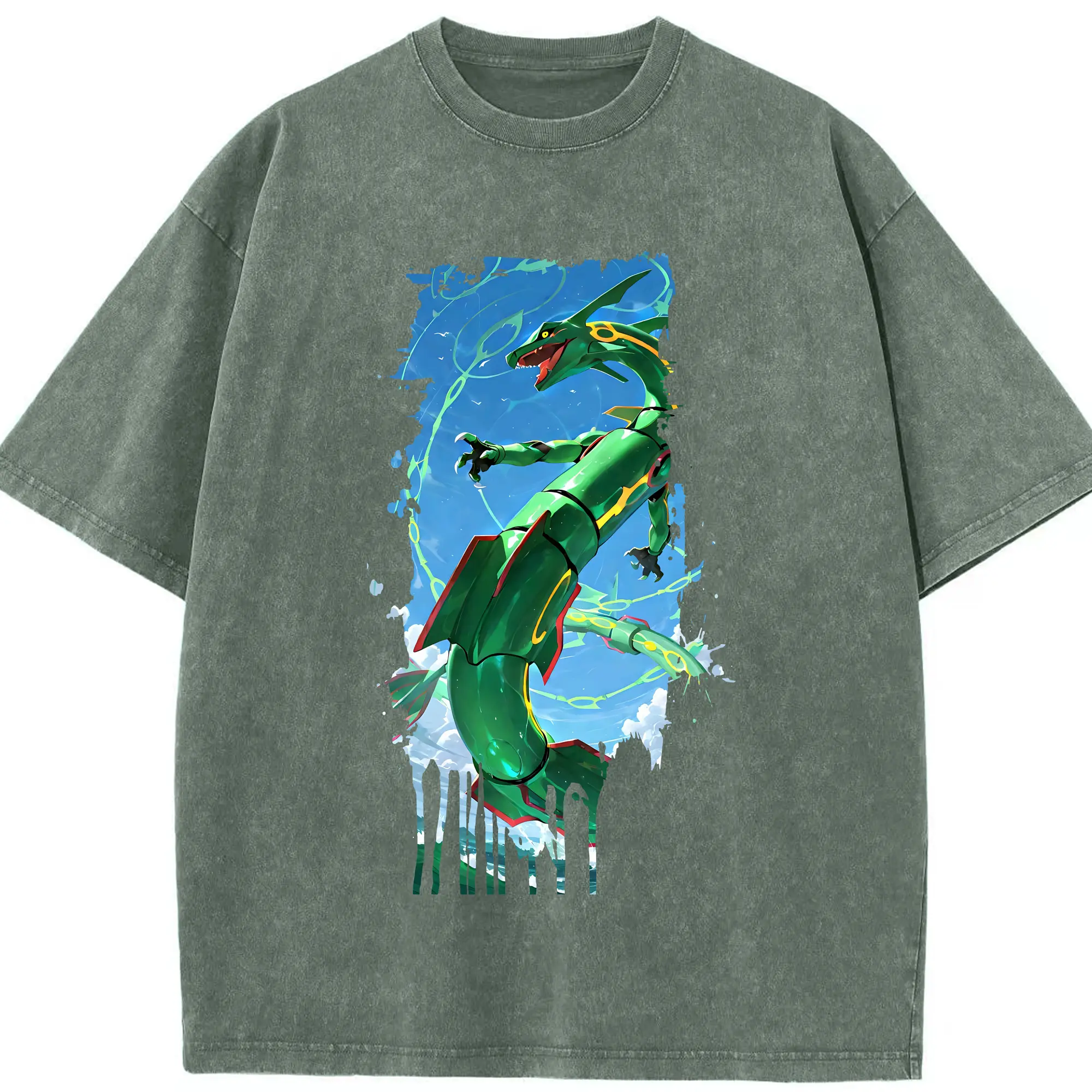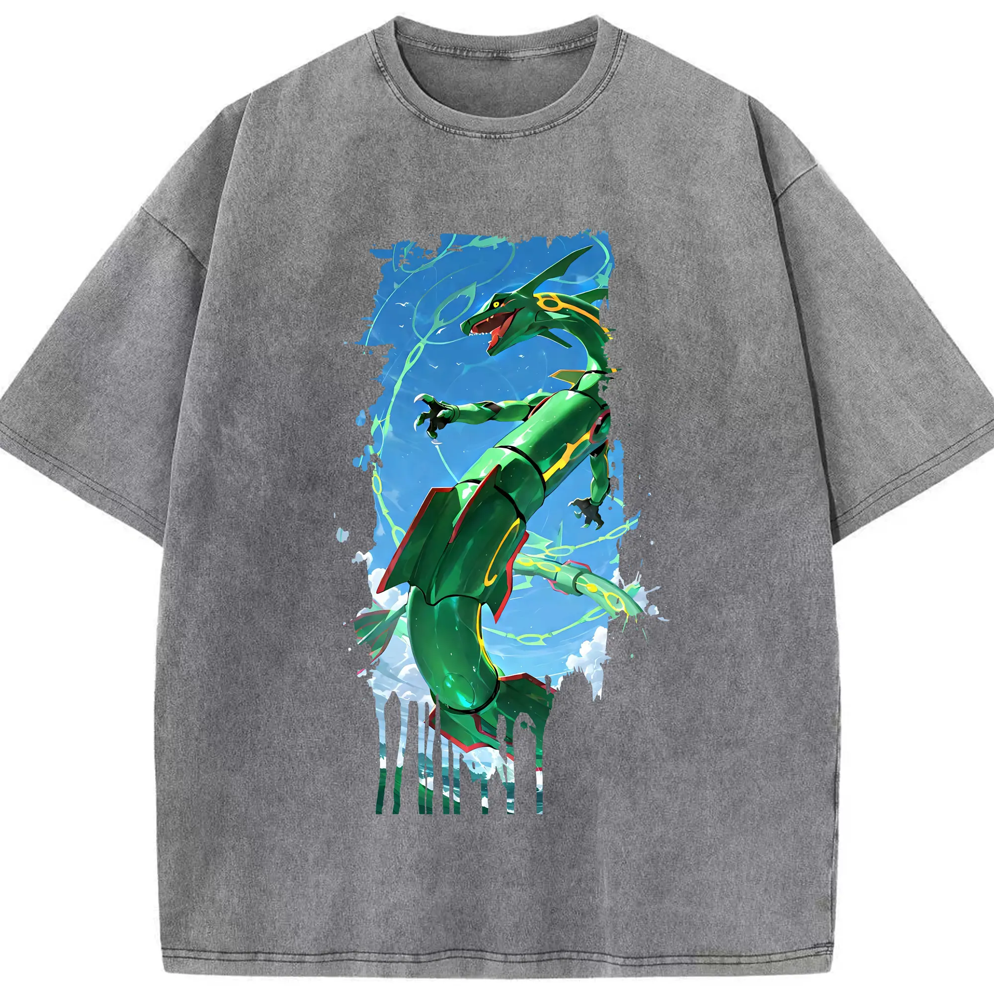 ポケモン グッズ,レックウザ - 綿100% ヴィンテージ風 半袖Tシャツ ・ 背面プリント ・ 柔らか肌触り ・ 通気性 快適 ・ スポーツ カジュアル 外出用