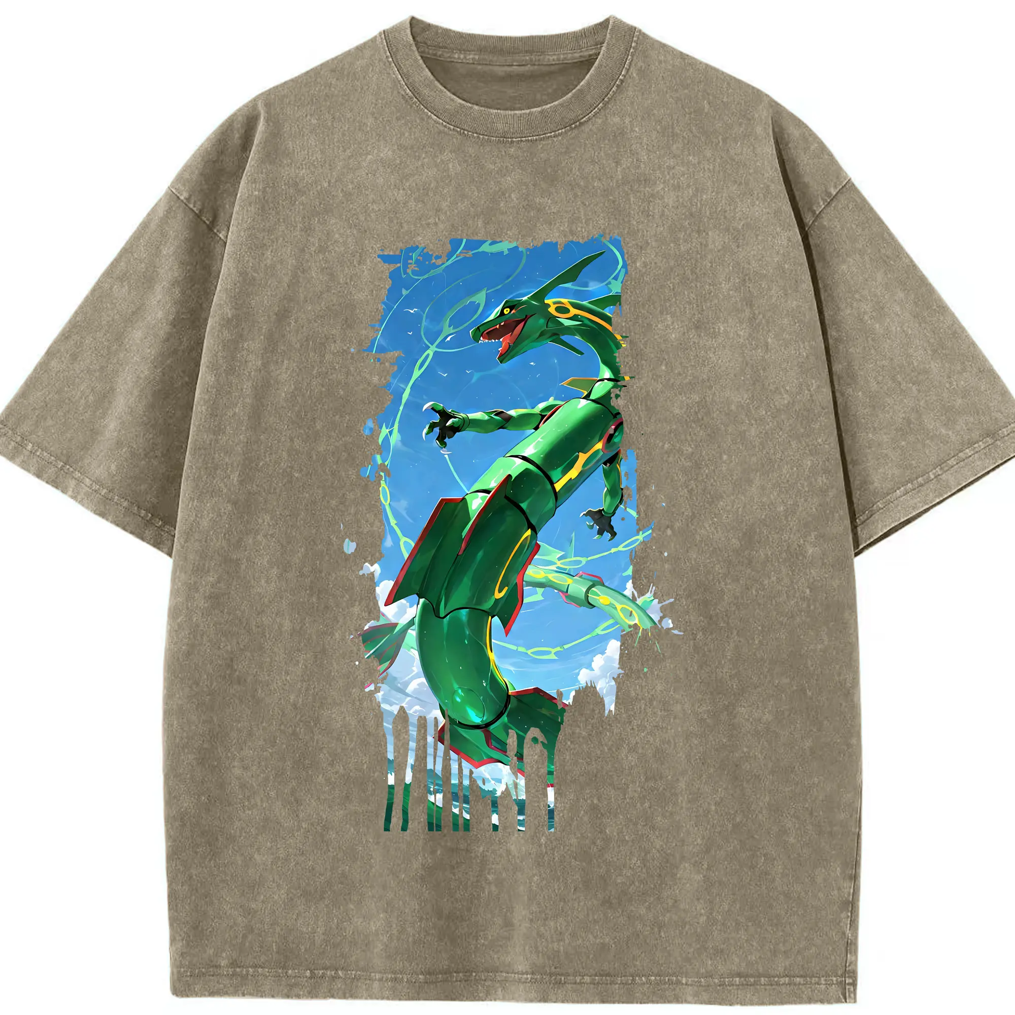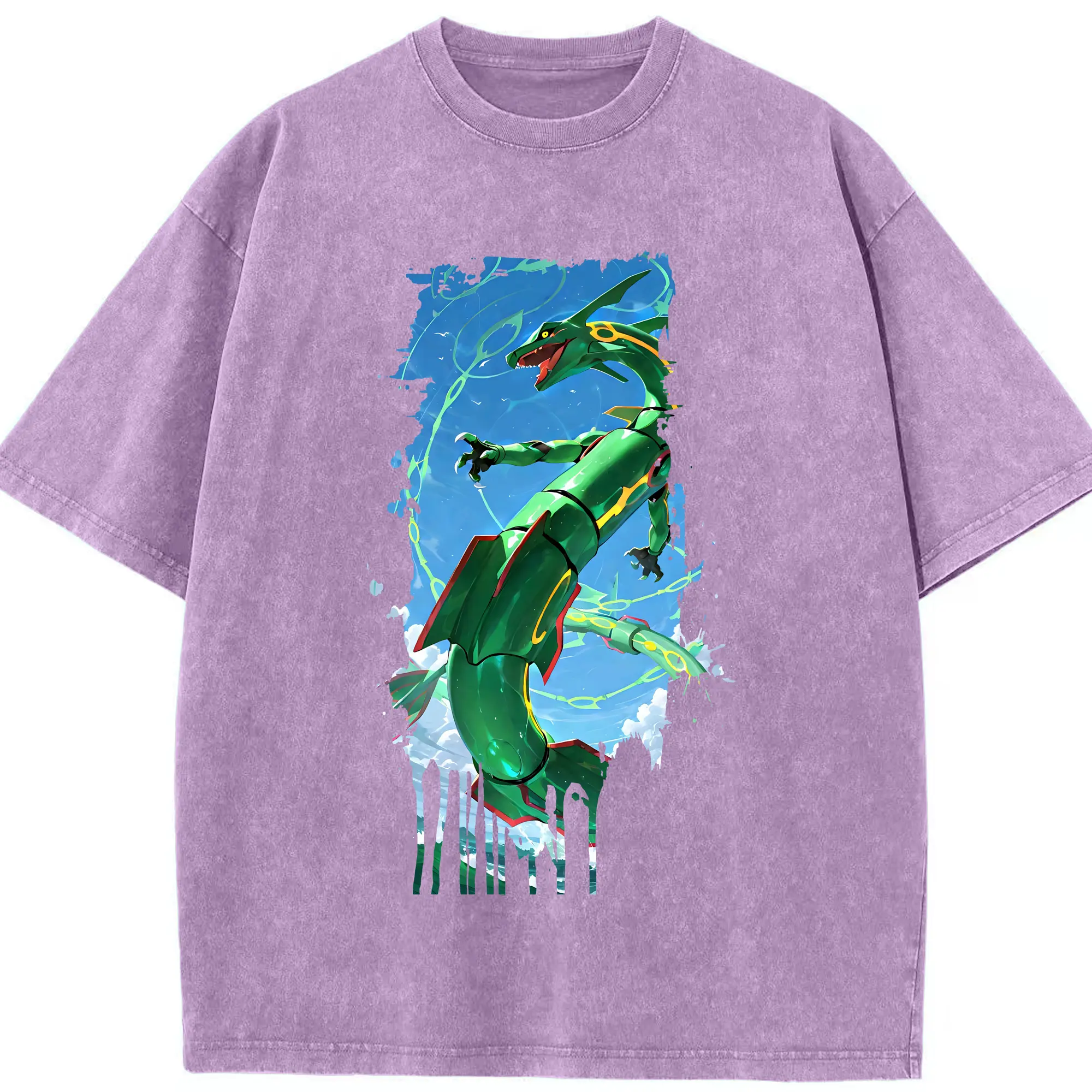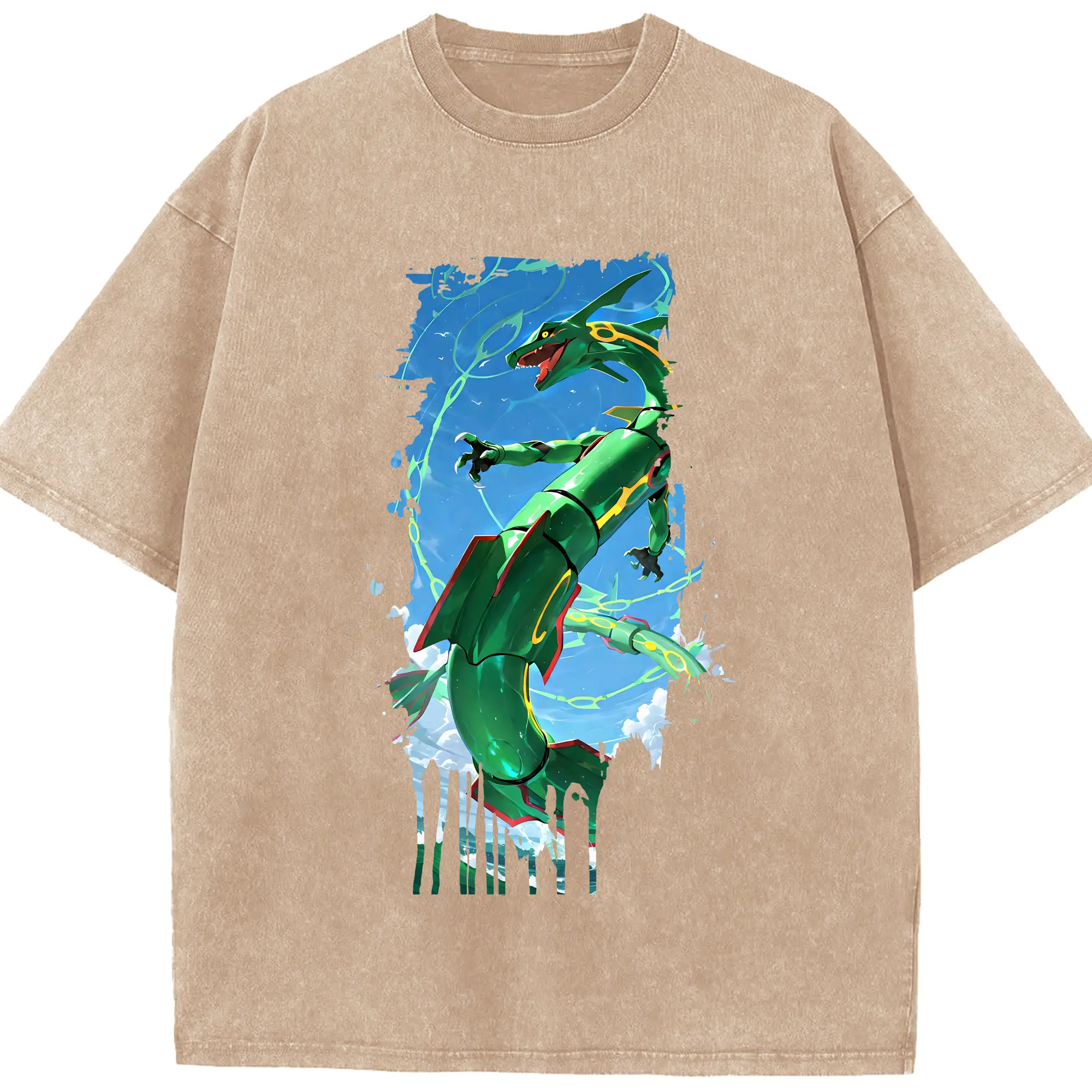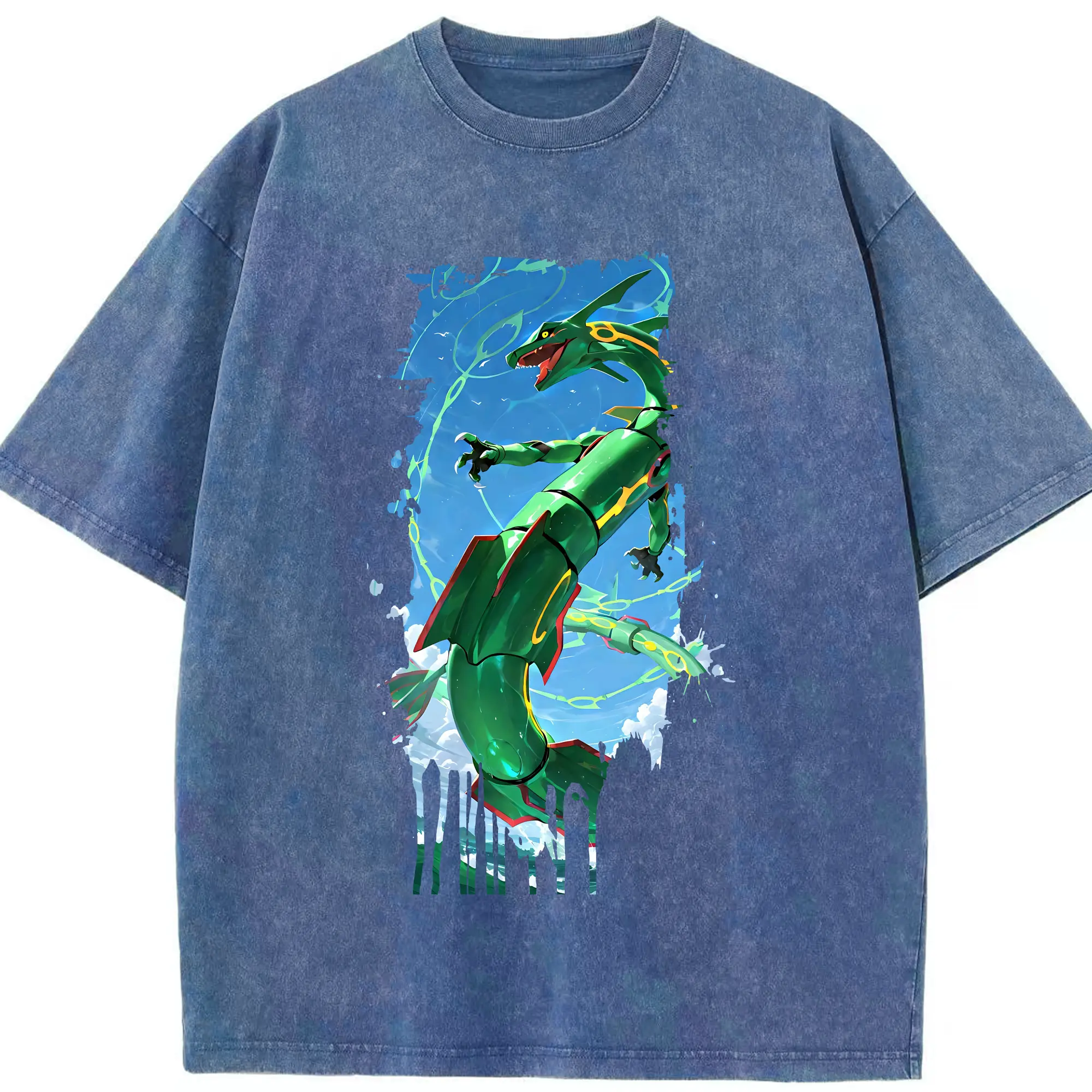 ポケモン グッズ,レックウザ - 綿100% ヴィンテージ風 半袖Tシャツ ・ 背面プリント ・ 柔らか肌触り ・ 通気性 快適 ・ スポーツ カジュアル 外出用