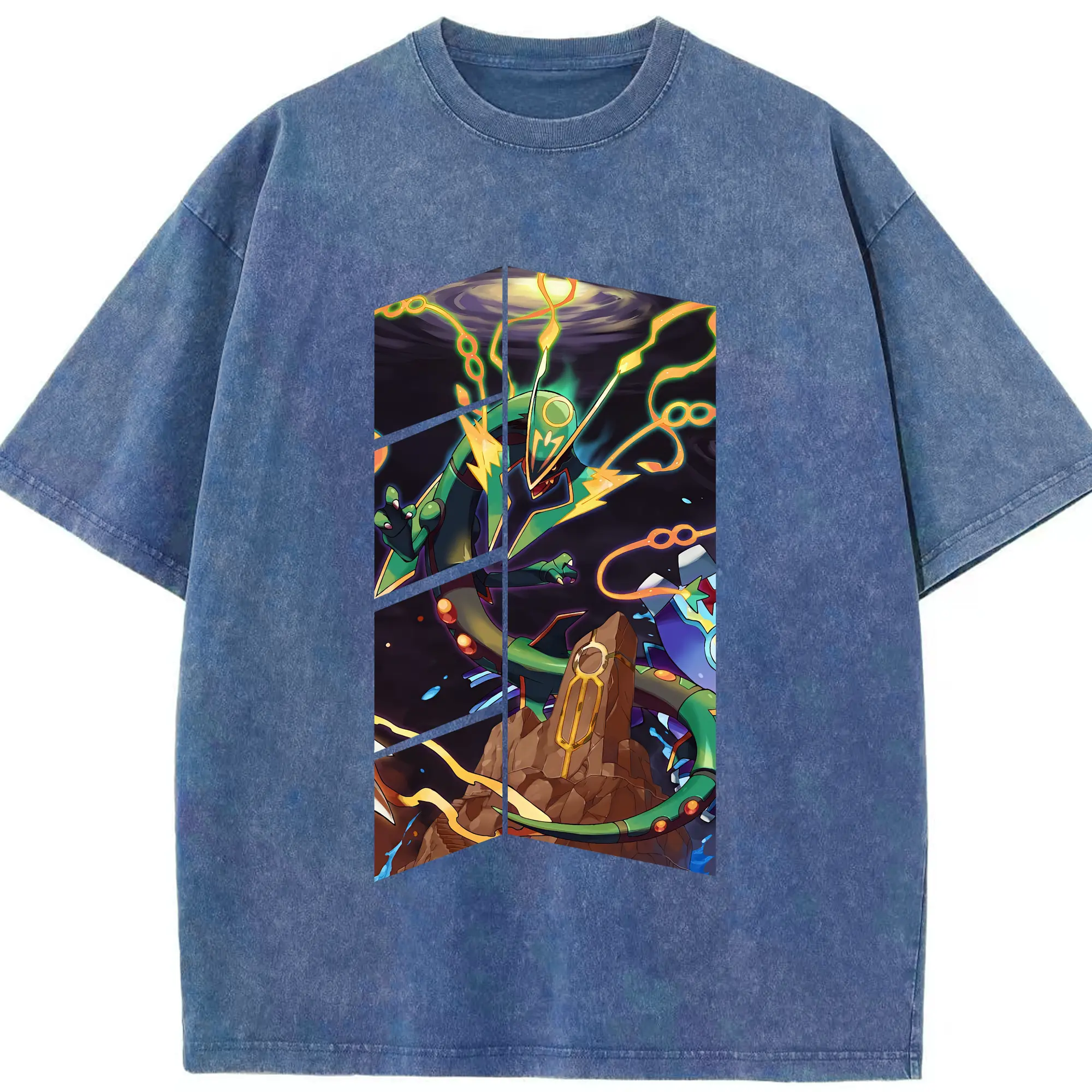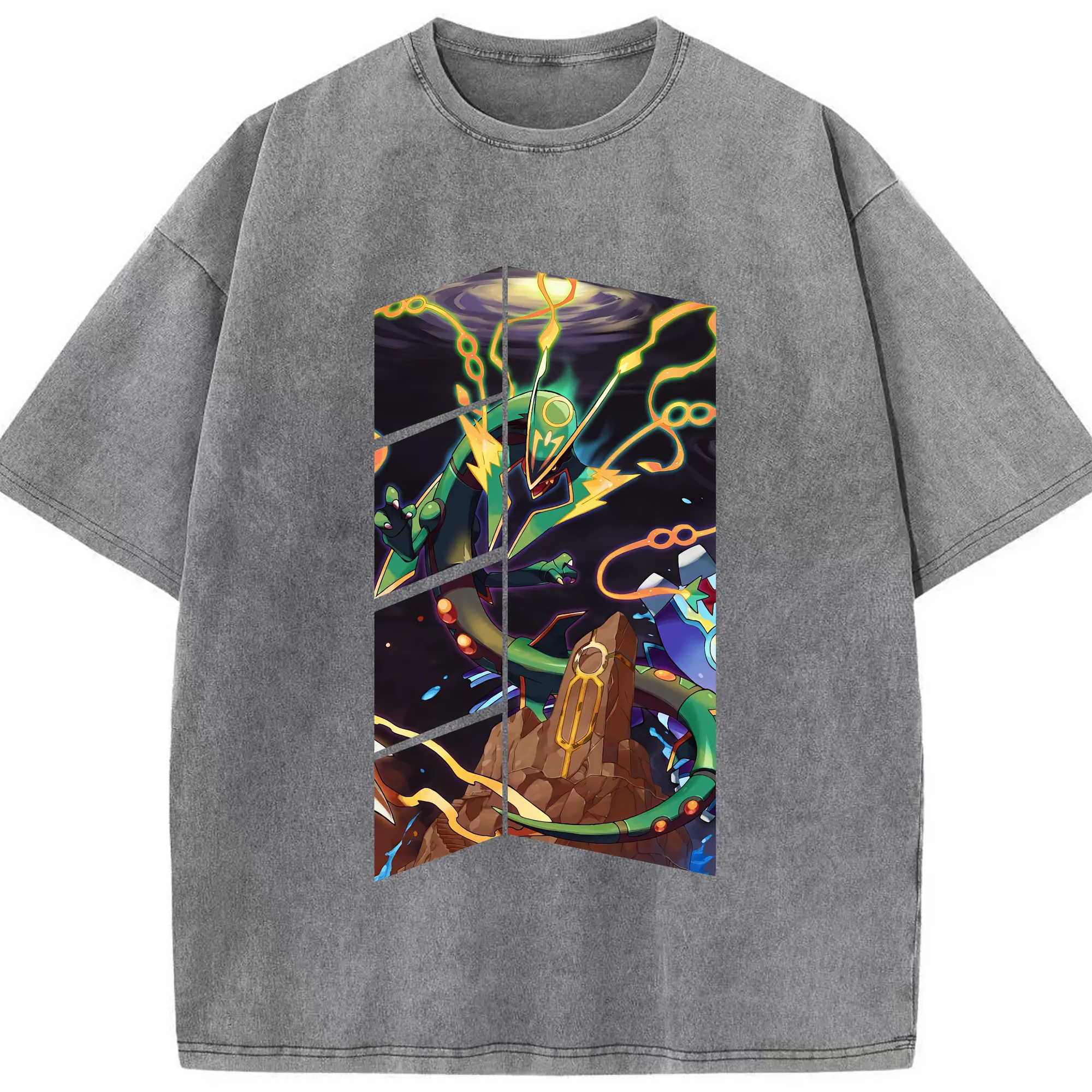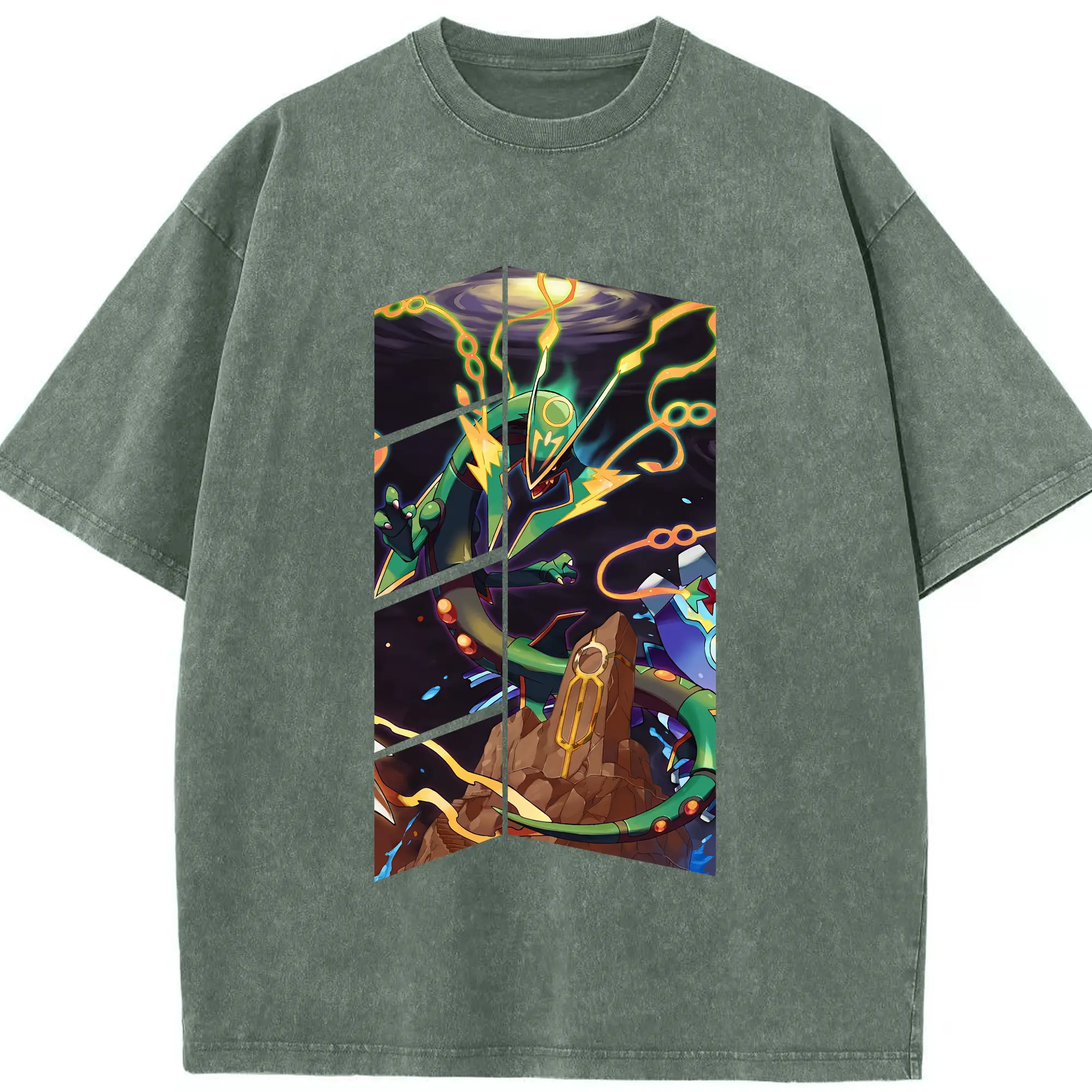 ポケモン グッズ,レックウザ - 綿100% ヴィンテージ風 半袖Tシャツ ・ 背面プリント ・ 柔らか肌触り ・ 通気性 快適 ・ スポーツ カジュアル 外出用