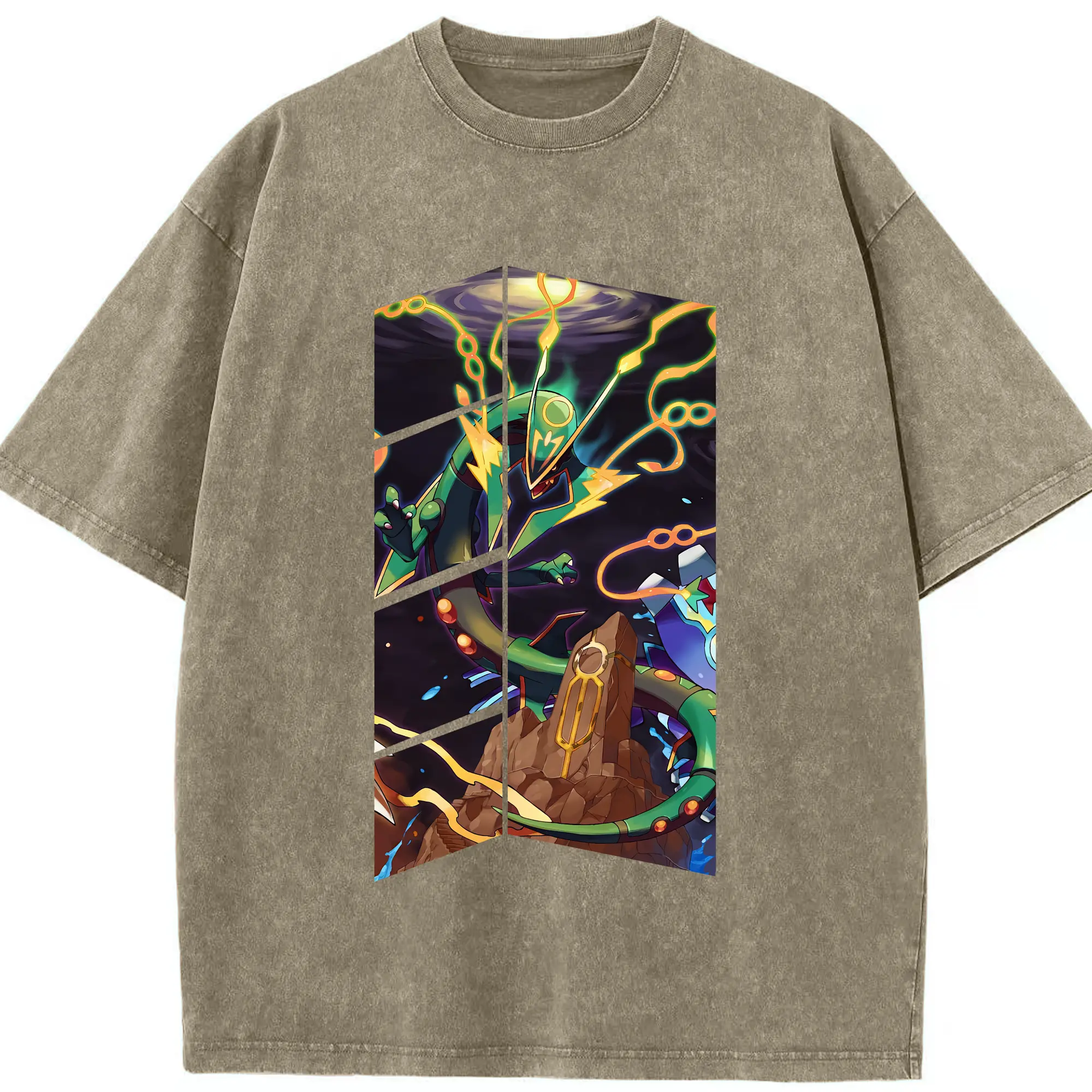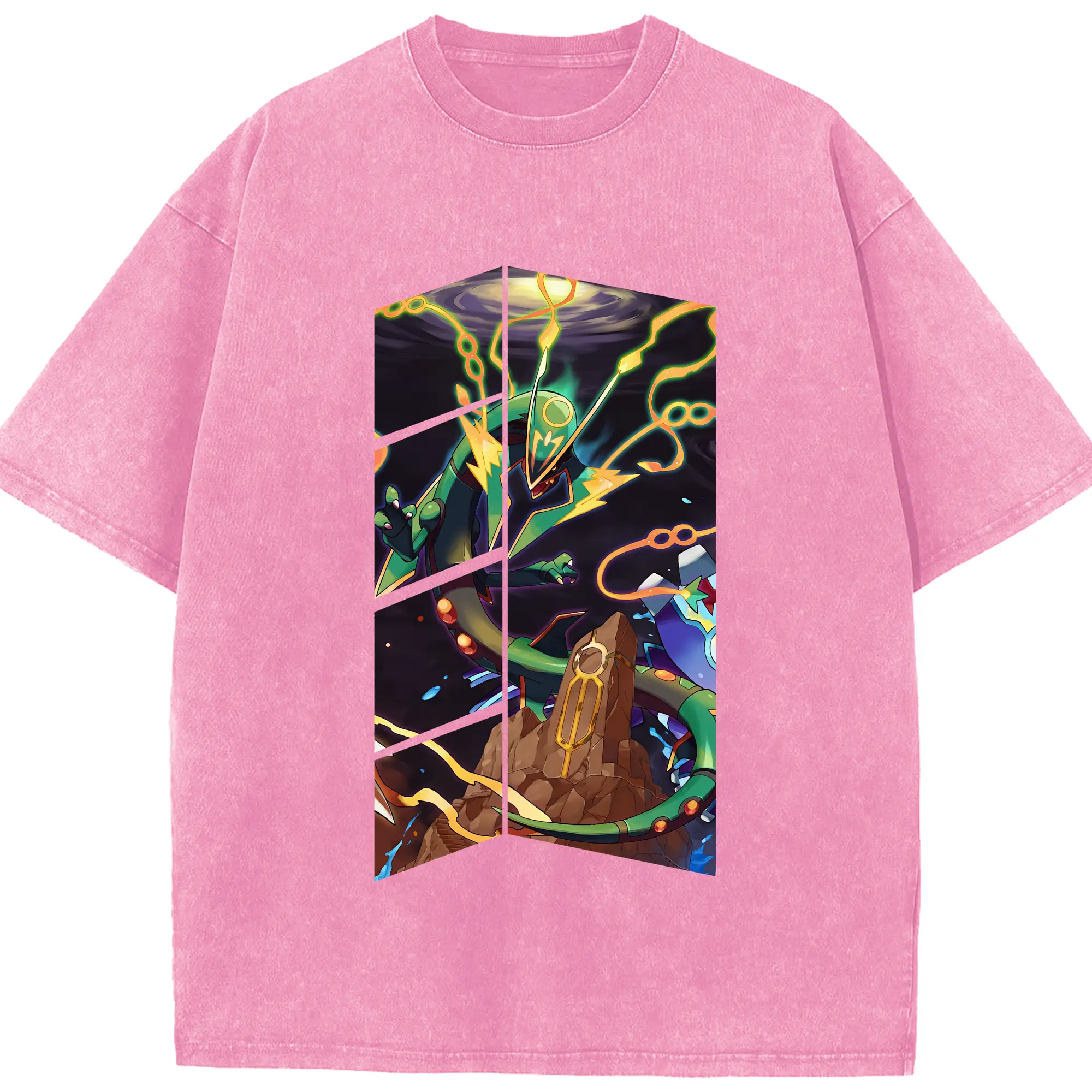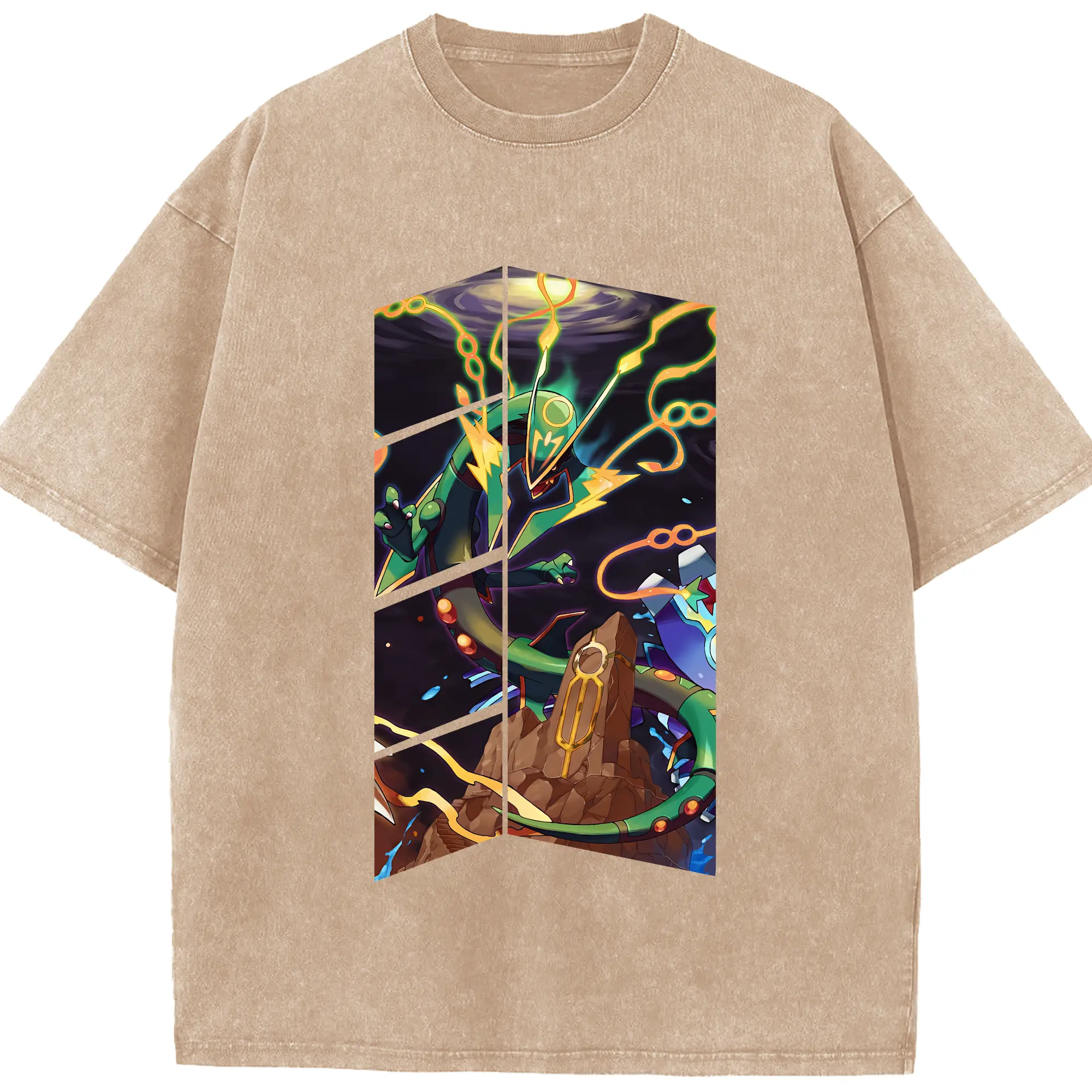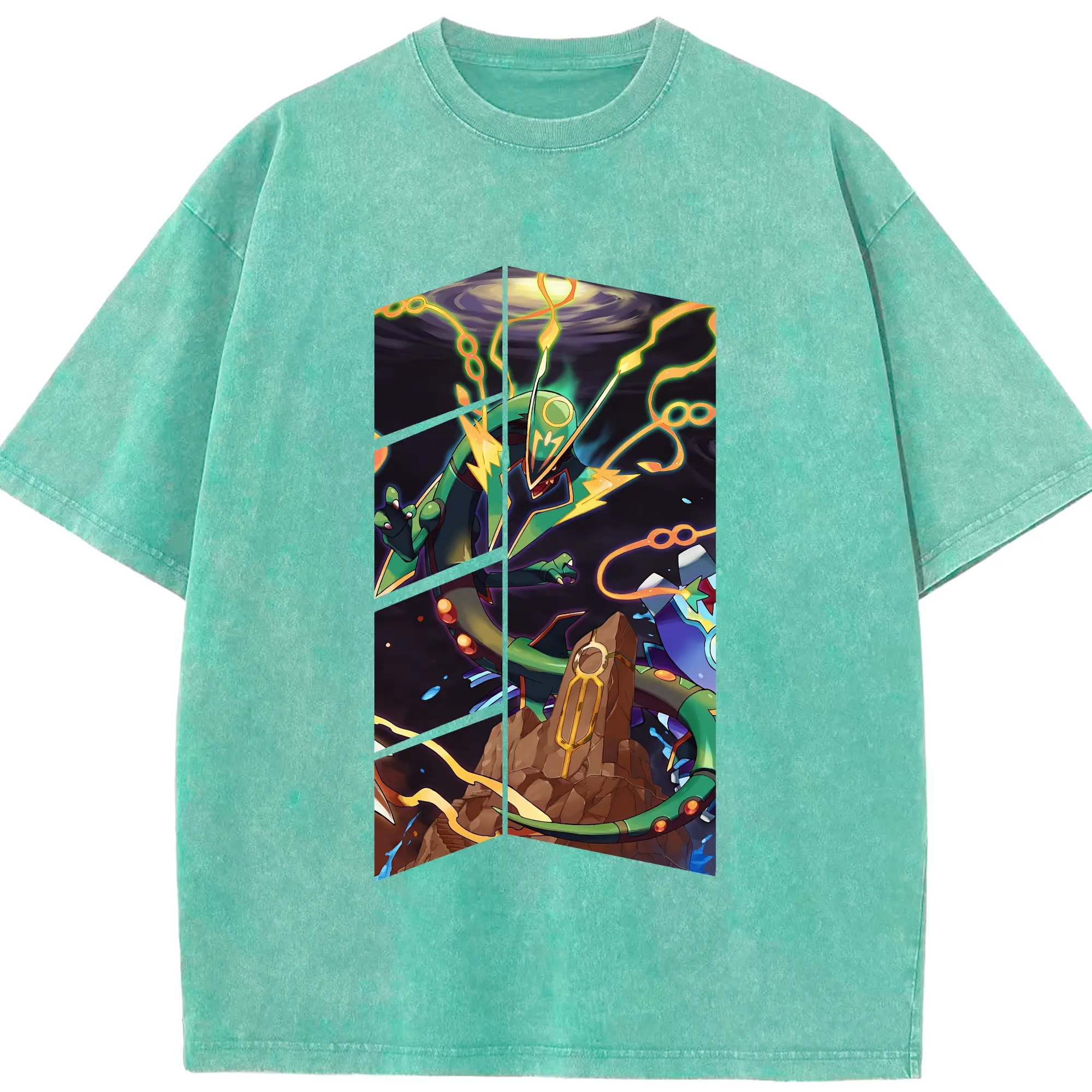 ポケモン グッズ,レックウザ - 綿100% ヴィンテージ風 半袖Tシャツ ・ 背面プリント ・ 柔らか肌触り ・ 通気性 快適 ・ スポーツ カジュアル 外出用