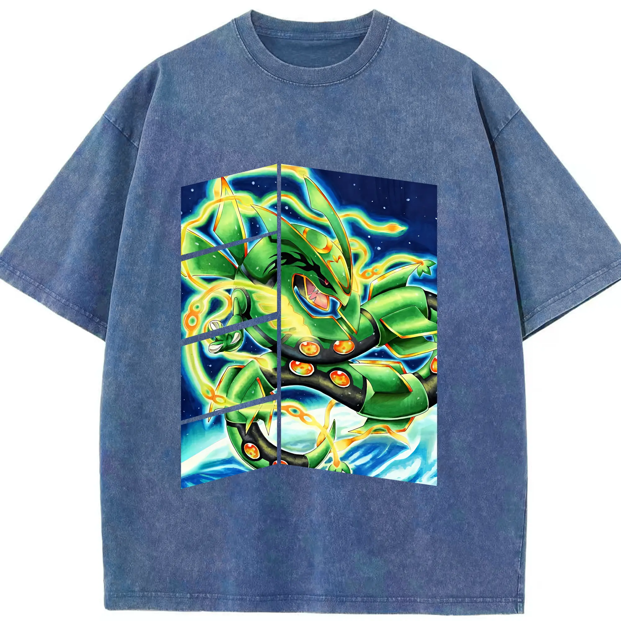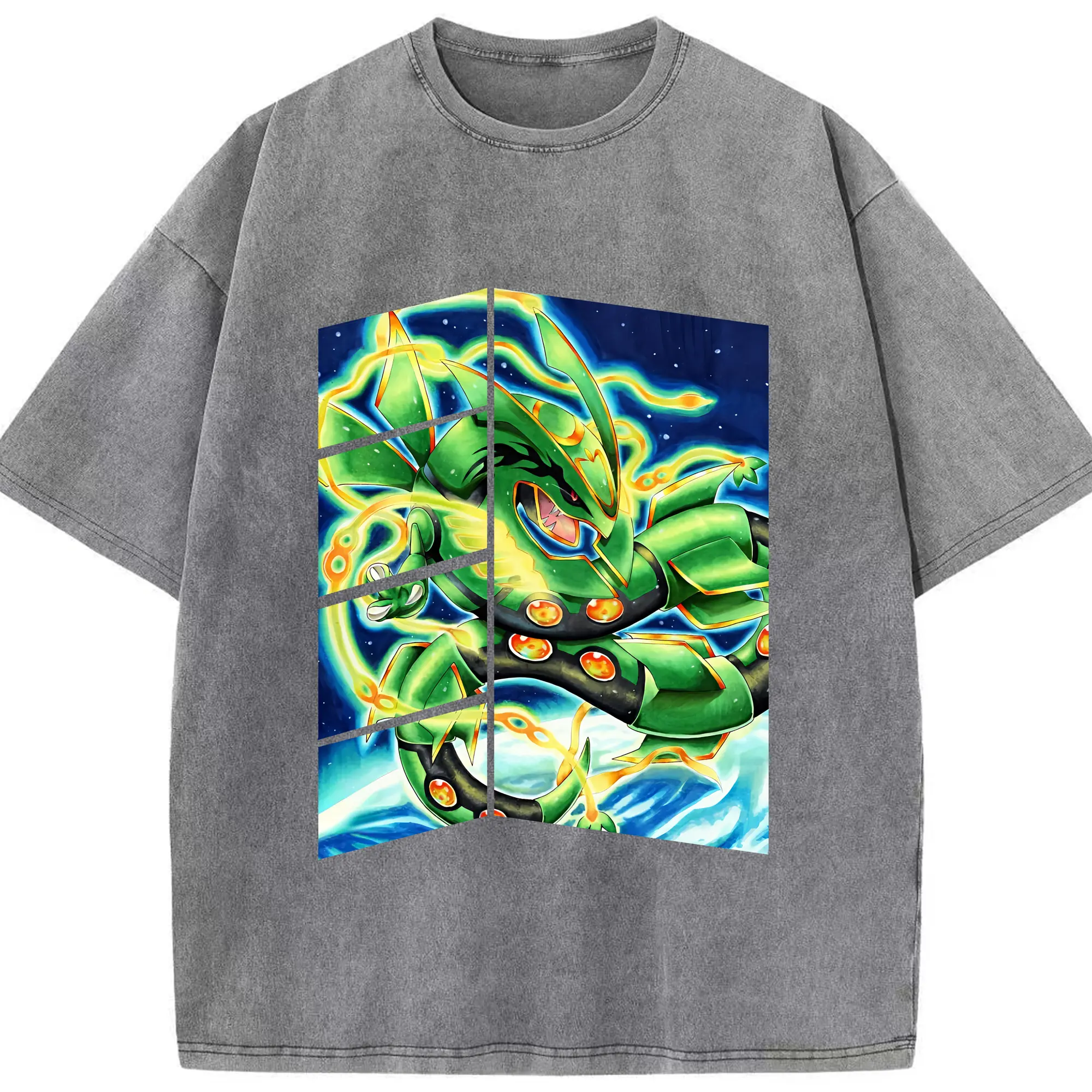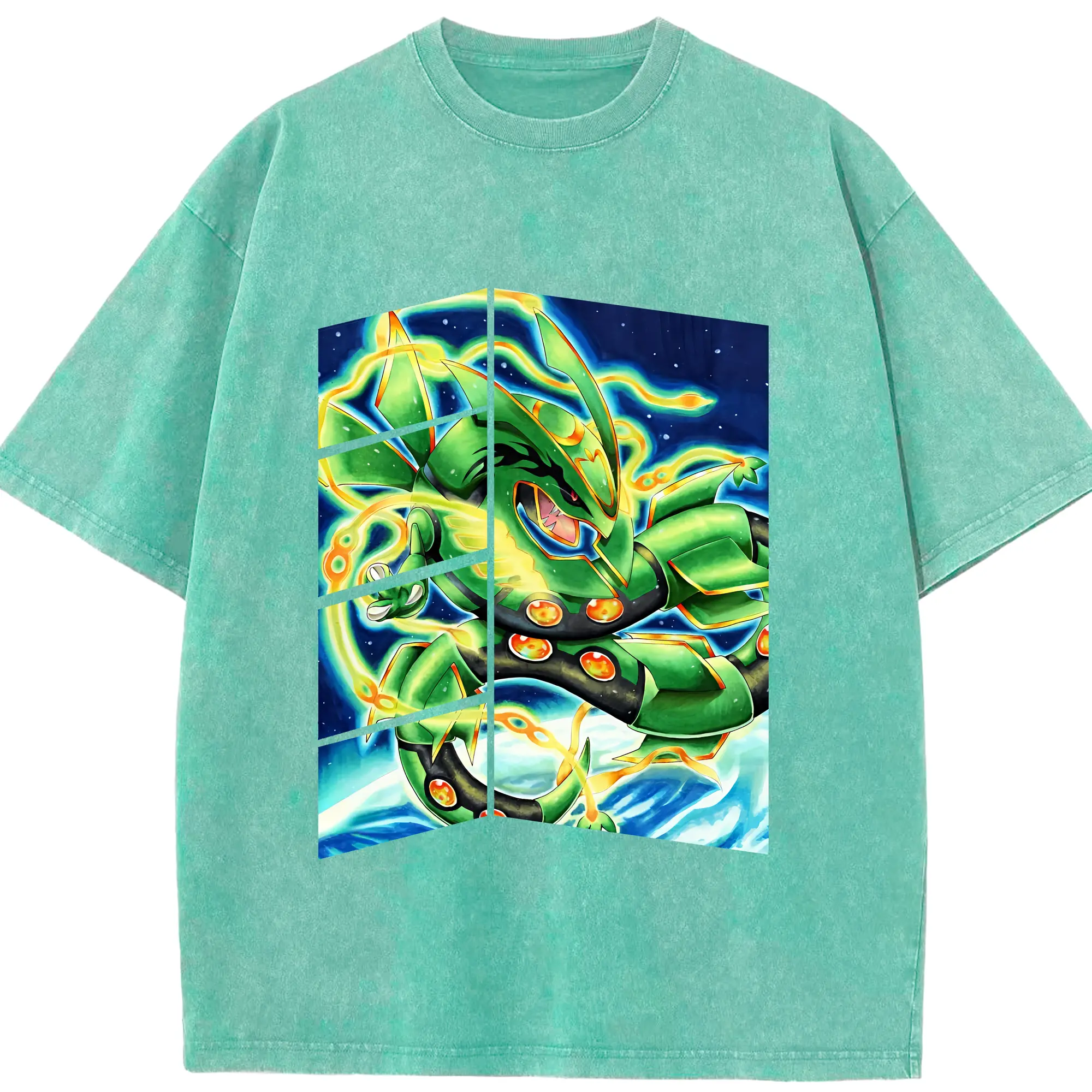 ポケモン グッズ,レックウザ - 綿100% ヴィンテージ風 半袖Tシャツ ・ 背面プリント ・ 柔らか肌触り ・ 通気性 快適 ・ スポーツ カジュアル 外出用