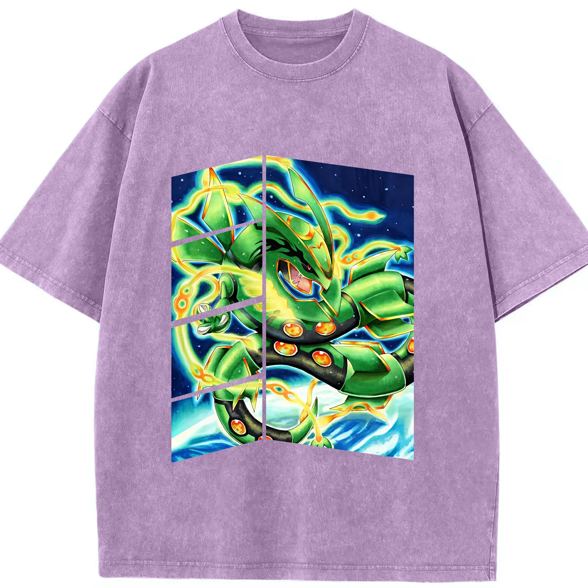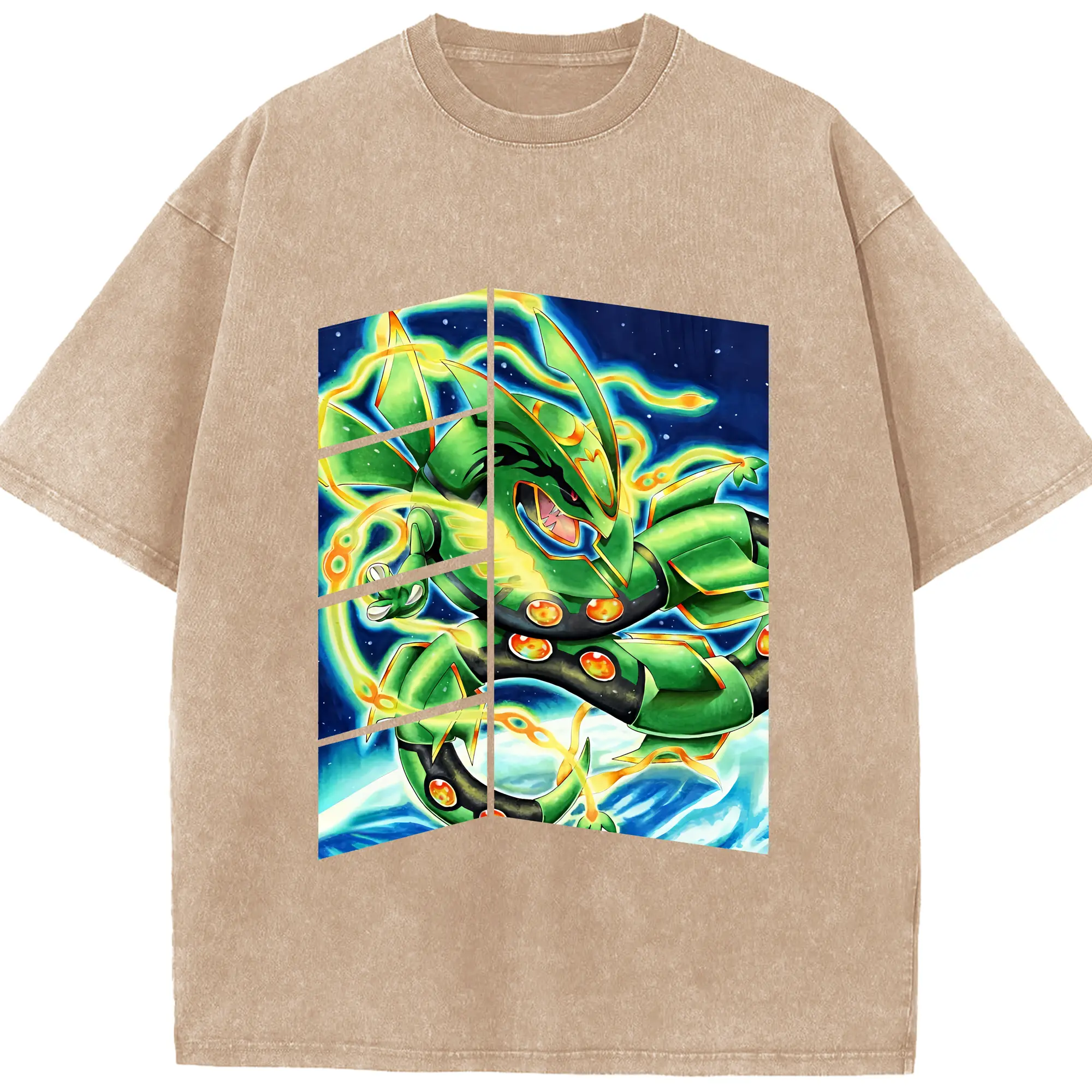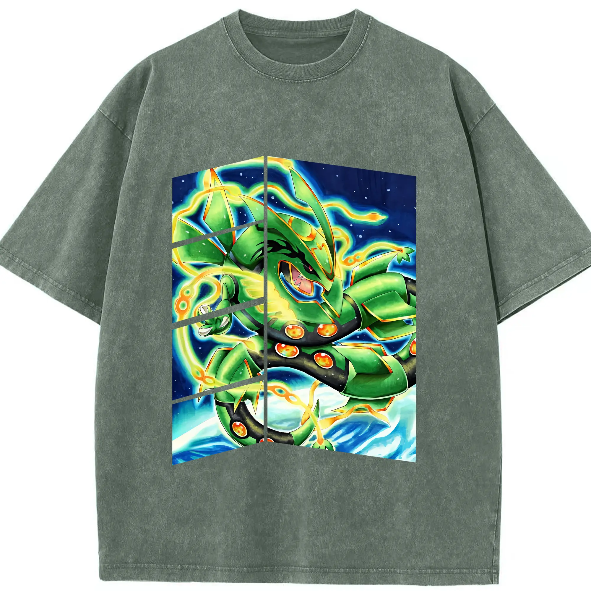 ポケモン グッズ,レックウザ - 綿100% ヴィンテージ風 半袖Tシャツ ・ 背面プリント ・ 柔らか肌触り ・ 通気性 快適 ・ スポーツ カジュアル 外出用