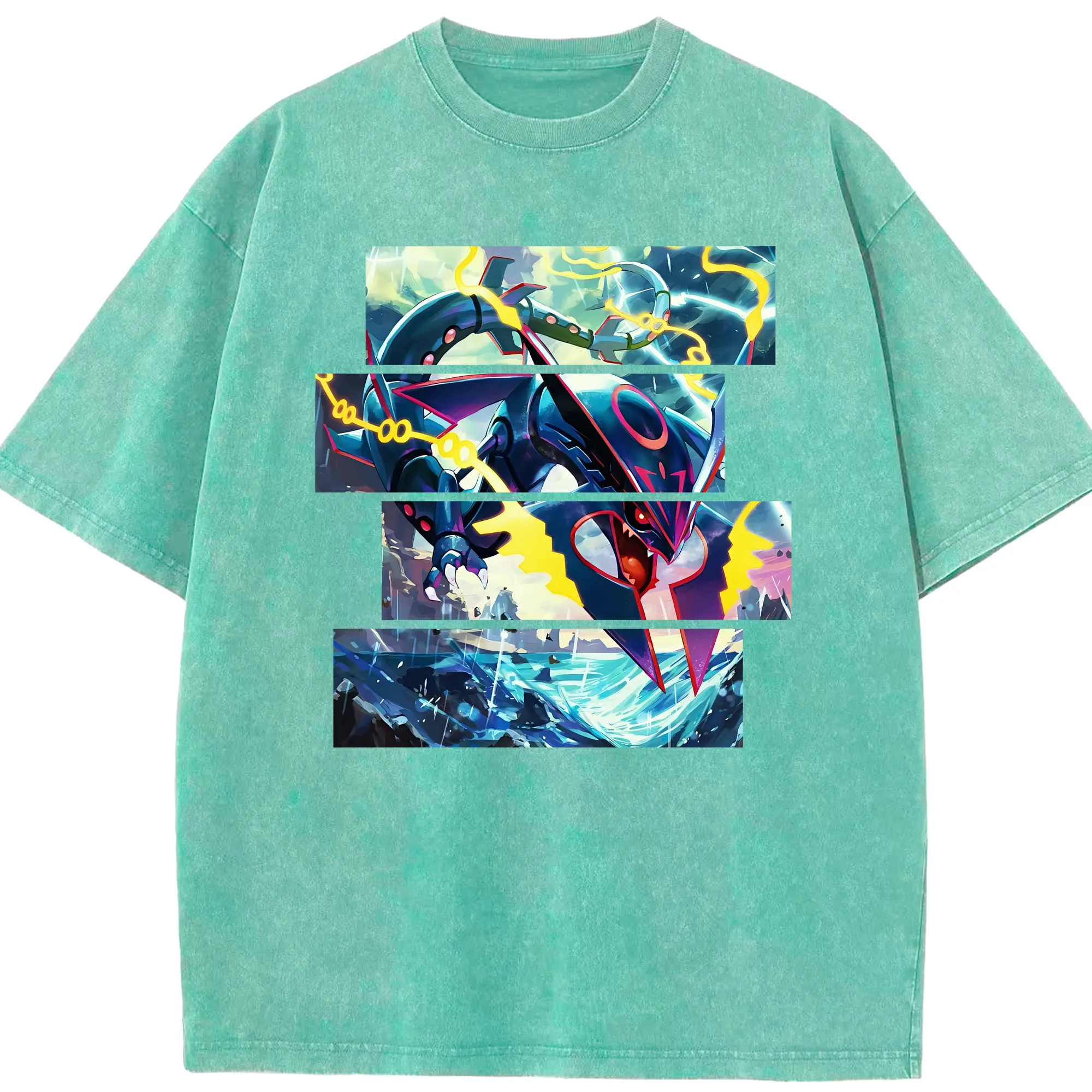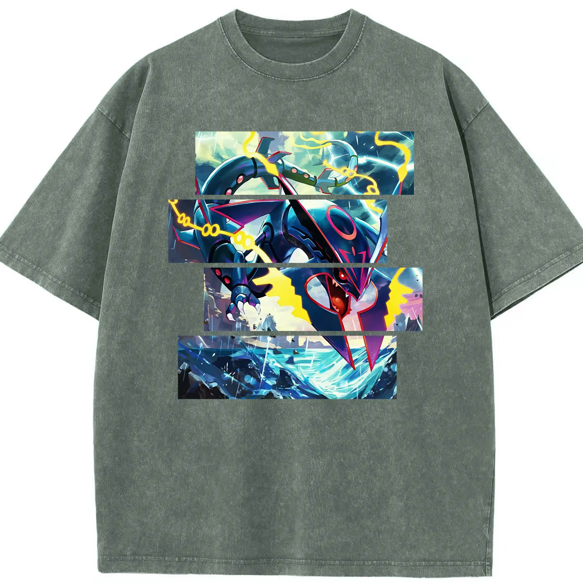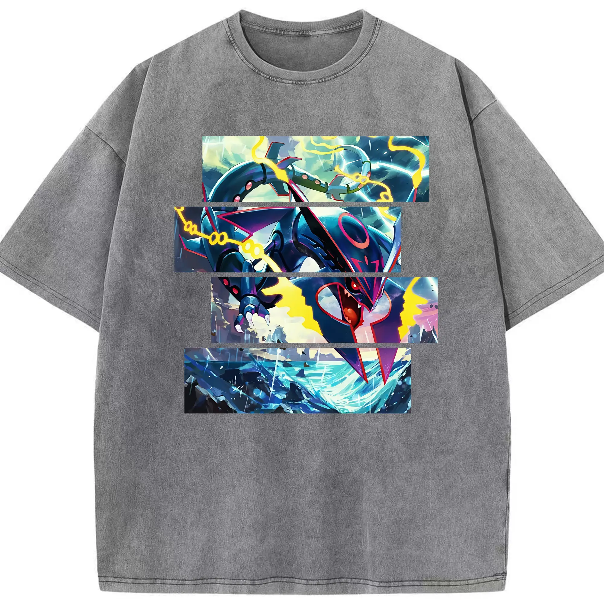 ポケモン グッズ,レックウザ - 綿100% ヴィンテージ風 半袖Tシャツ ・ 背面プリント ・ 柔らか肌触り ・ 通気性 快適 ・ スポーツ カジュアル 外出用
