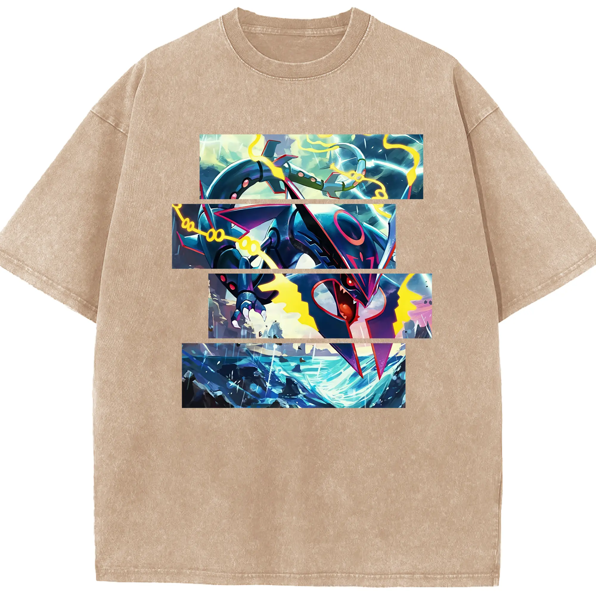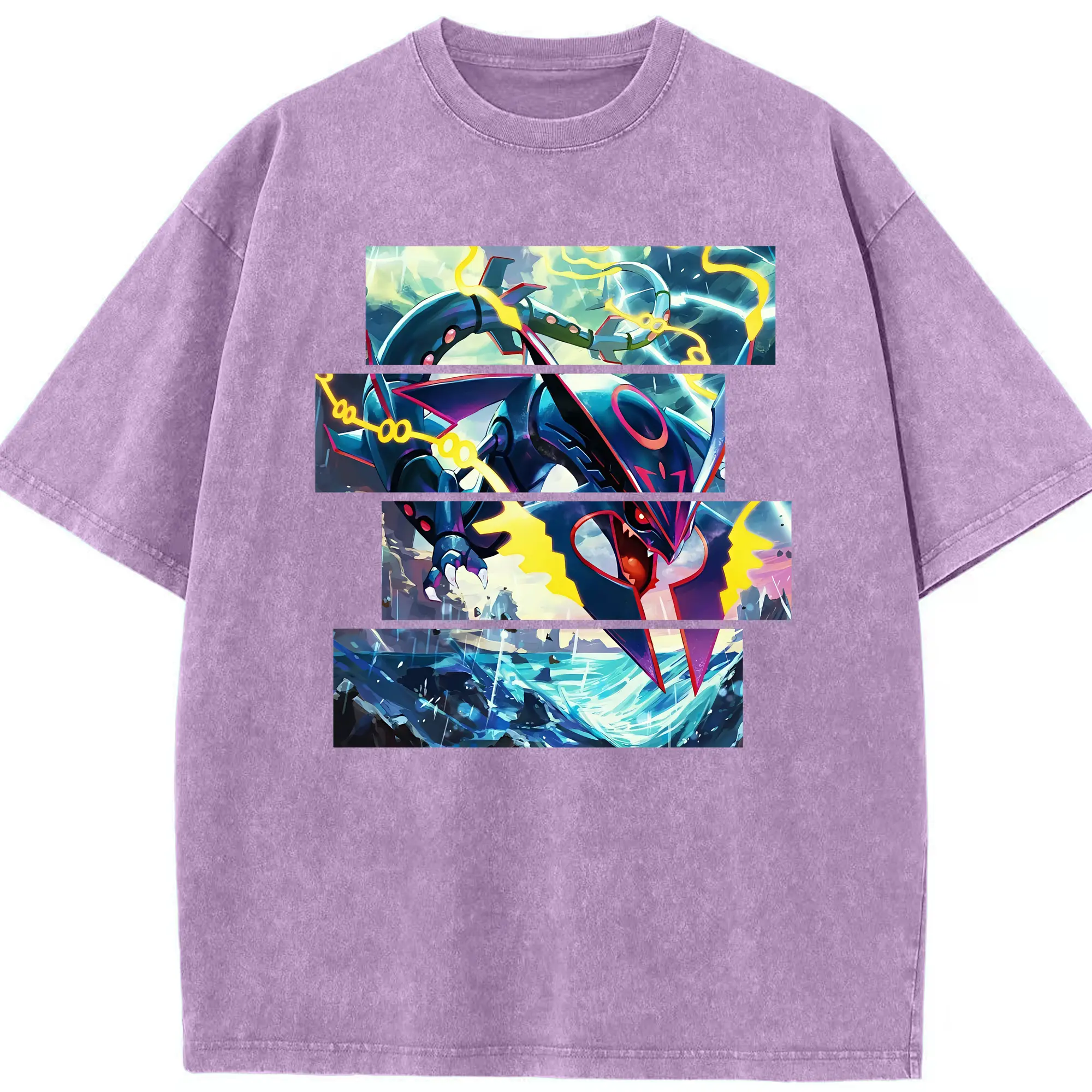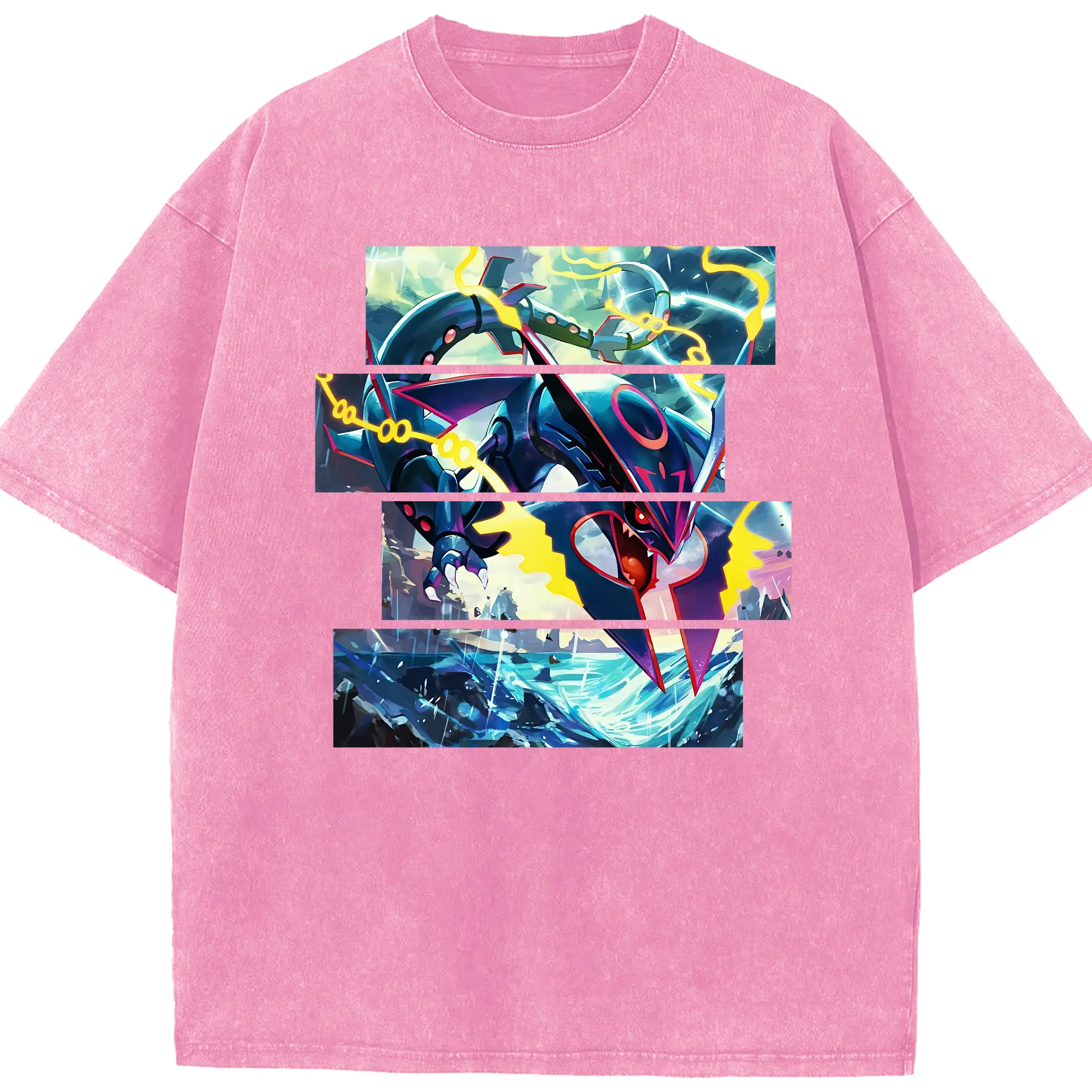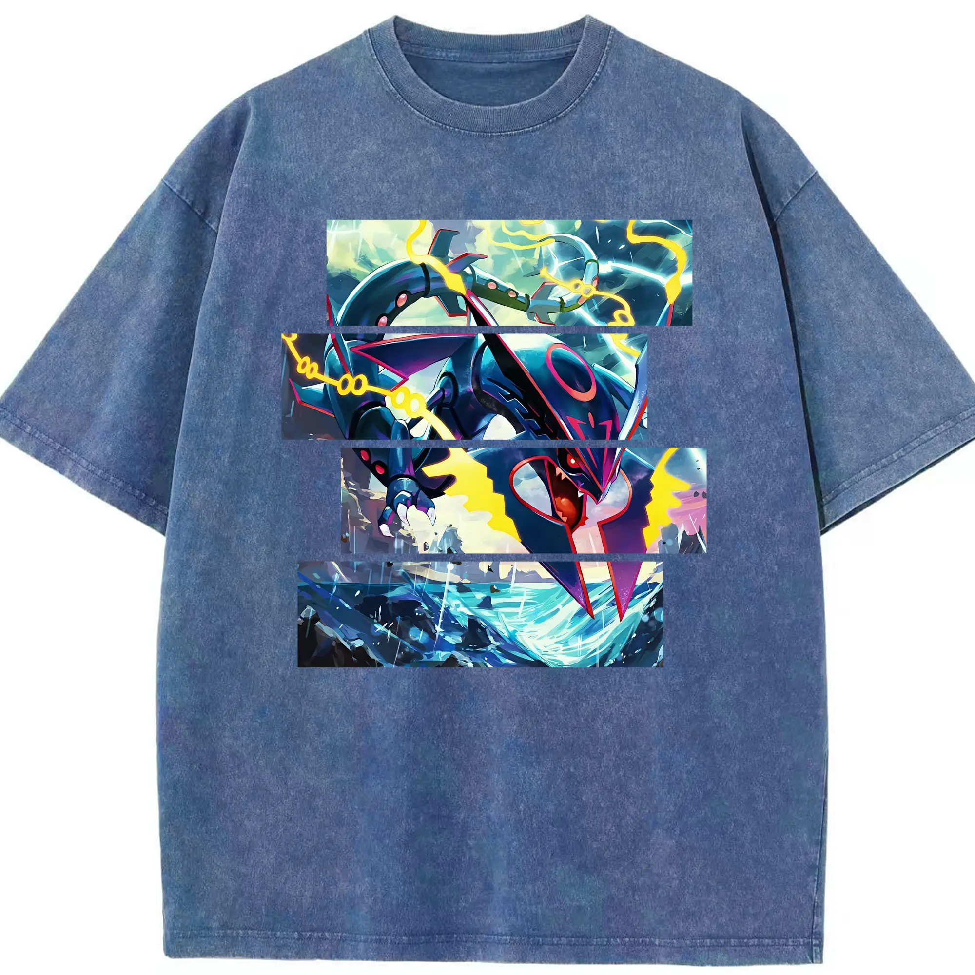 ポケモン グッズ,レックウザ - 綿100% ヴィンテージ風 半袖Tシャツ ・ 背面プリント ・ 柔らか肌触り ・ 通気性 快適 ・ スポーツ カジュアル 外出用